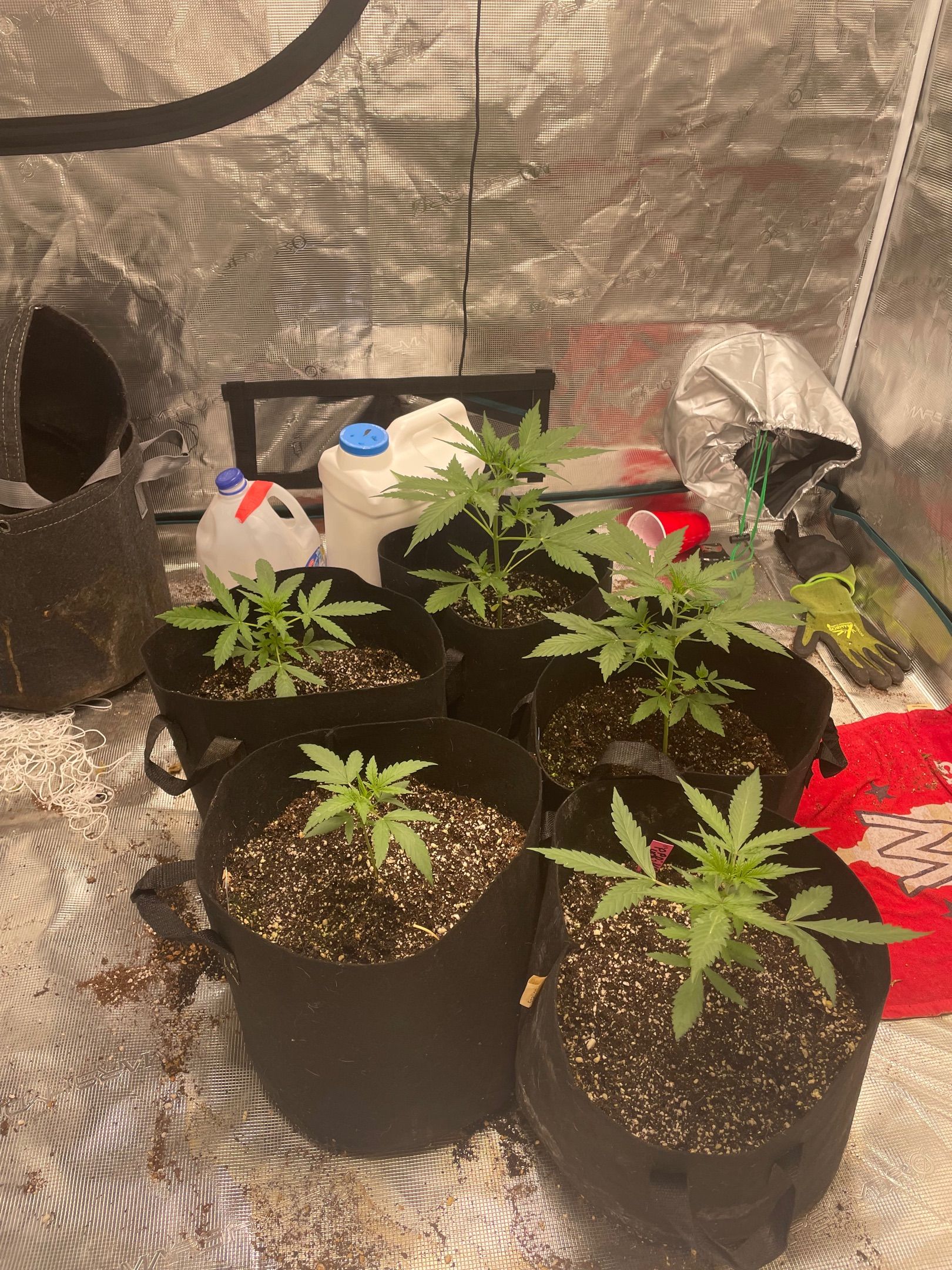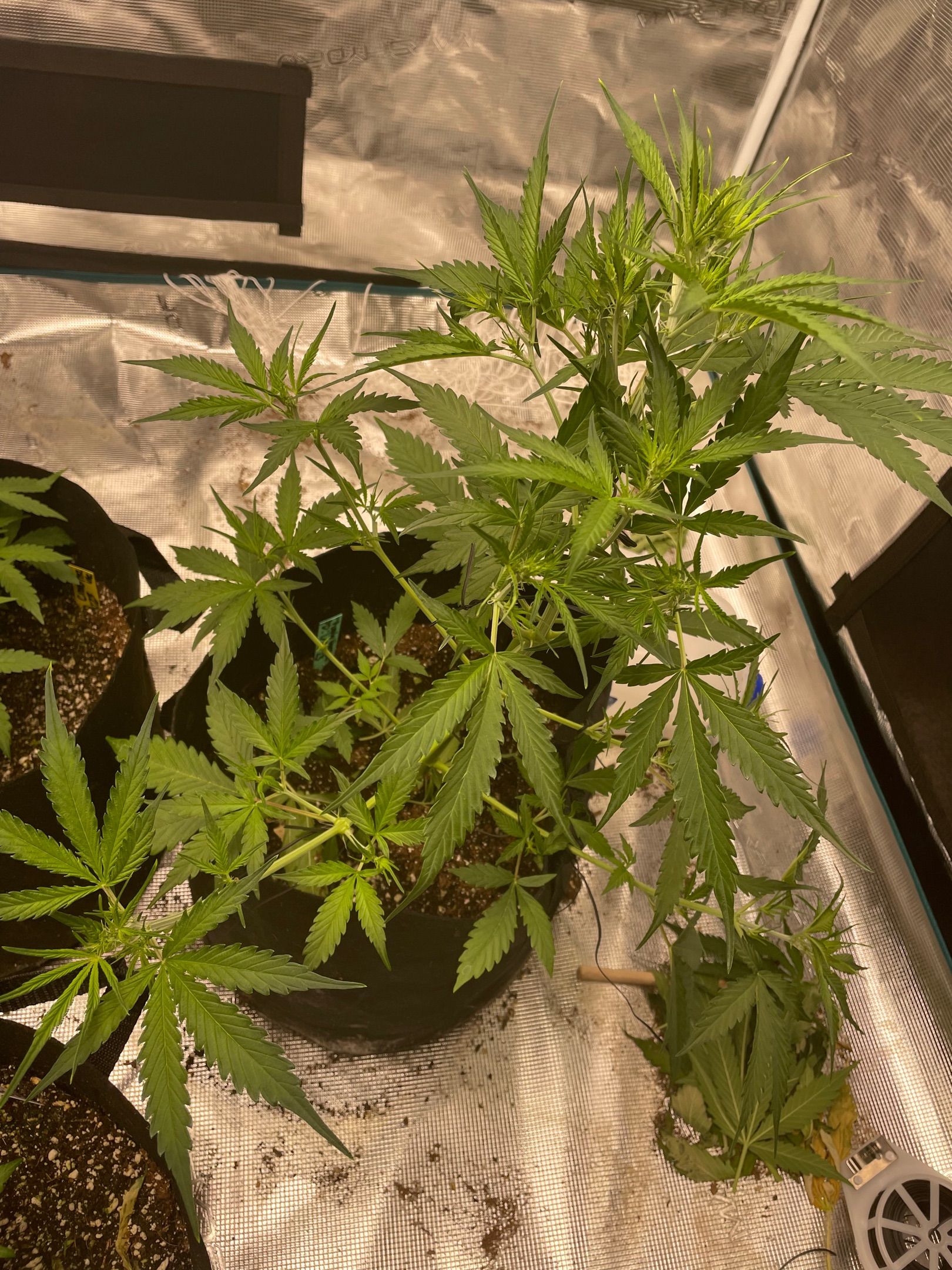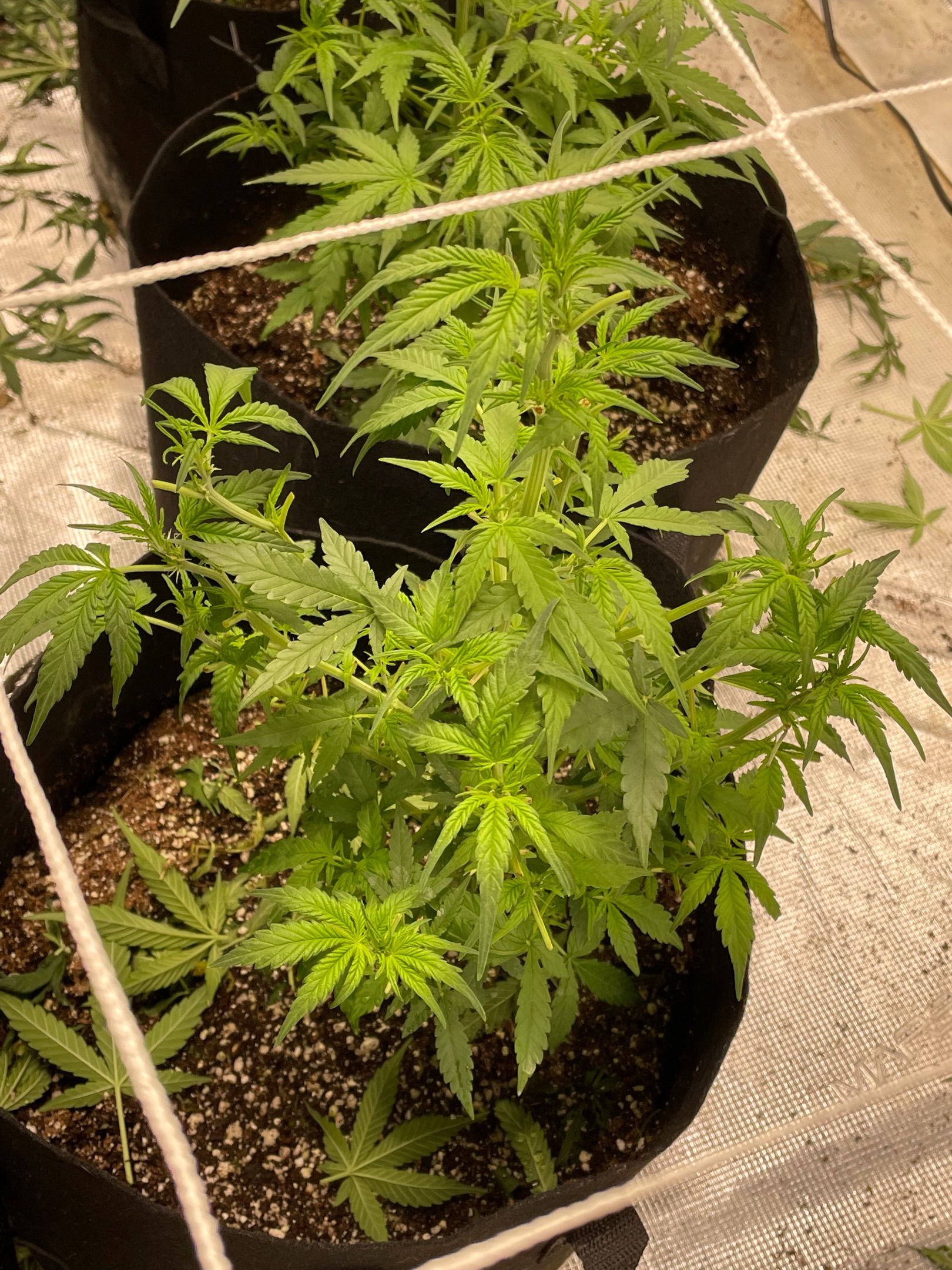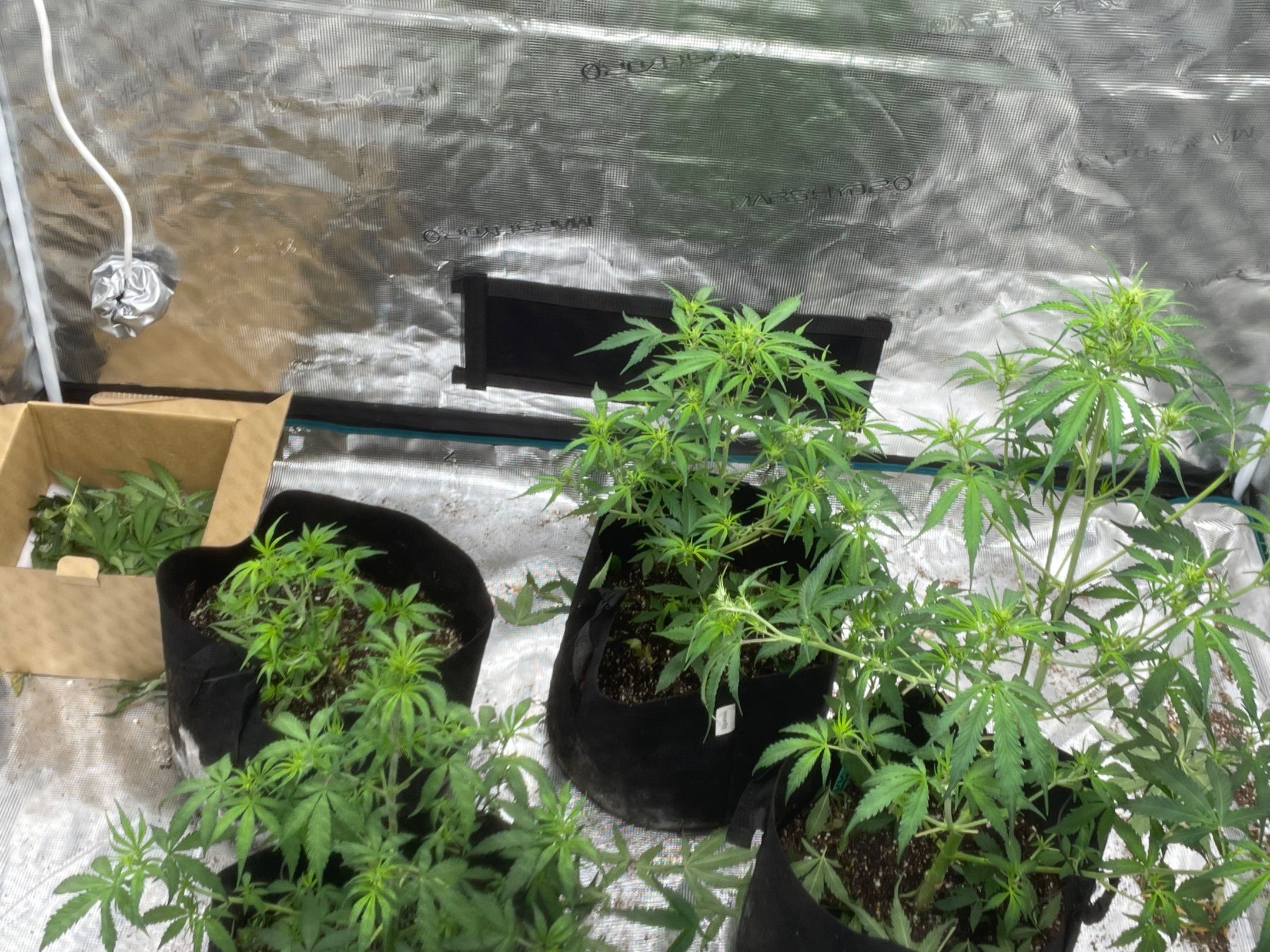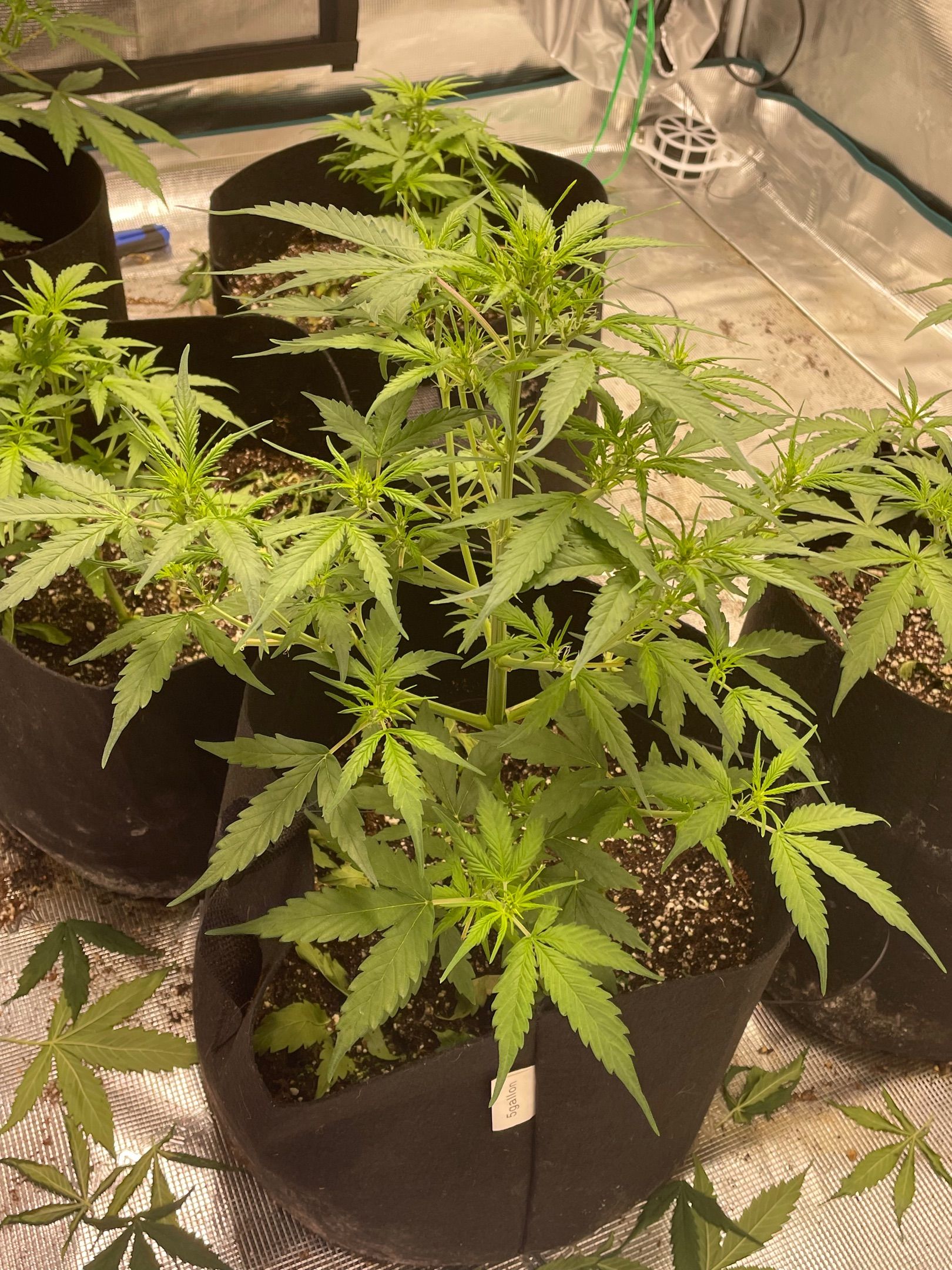 All 5 plants had major fan leaves trimmed off