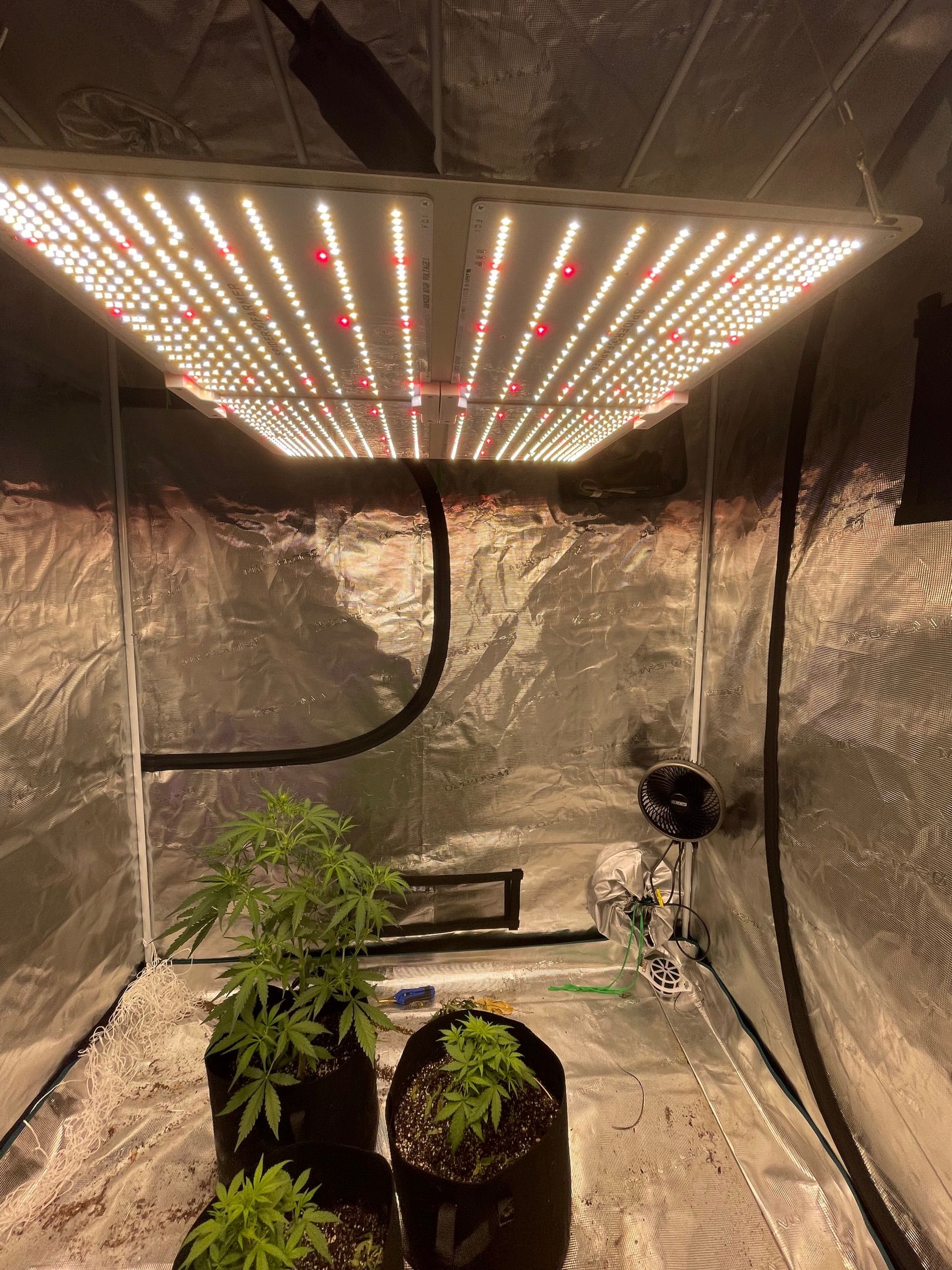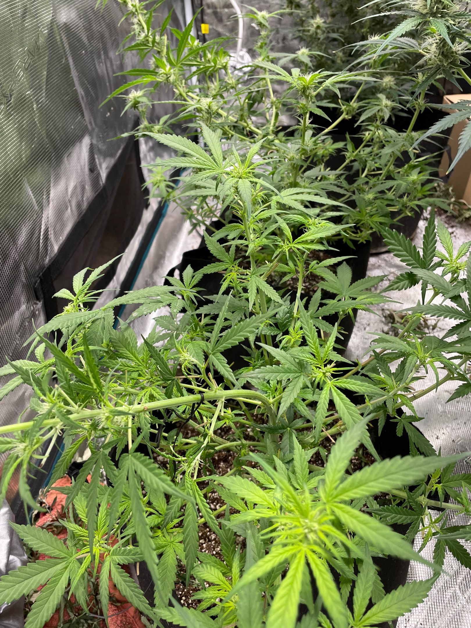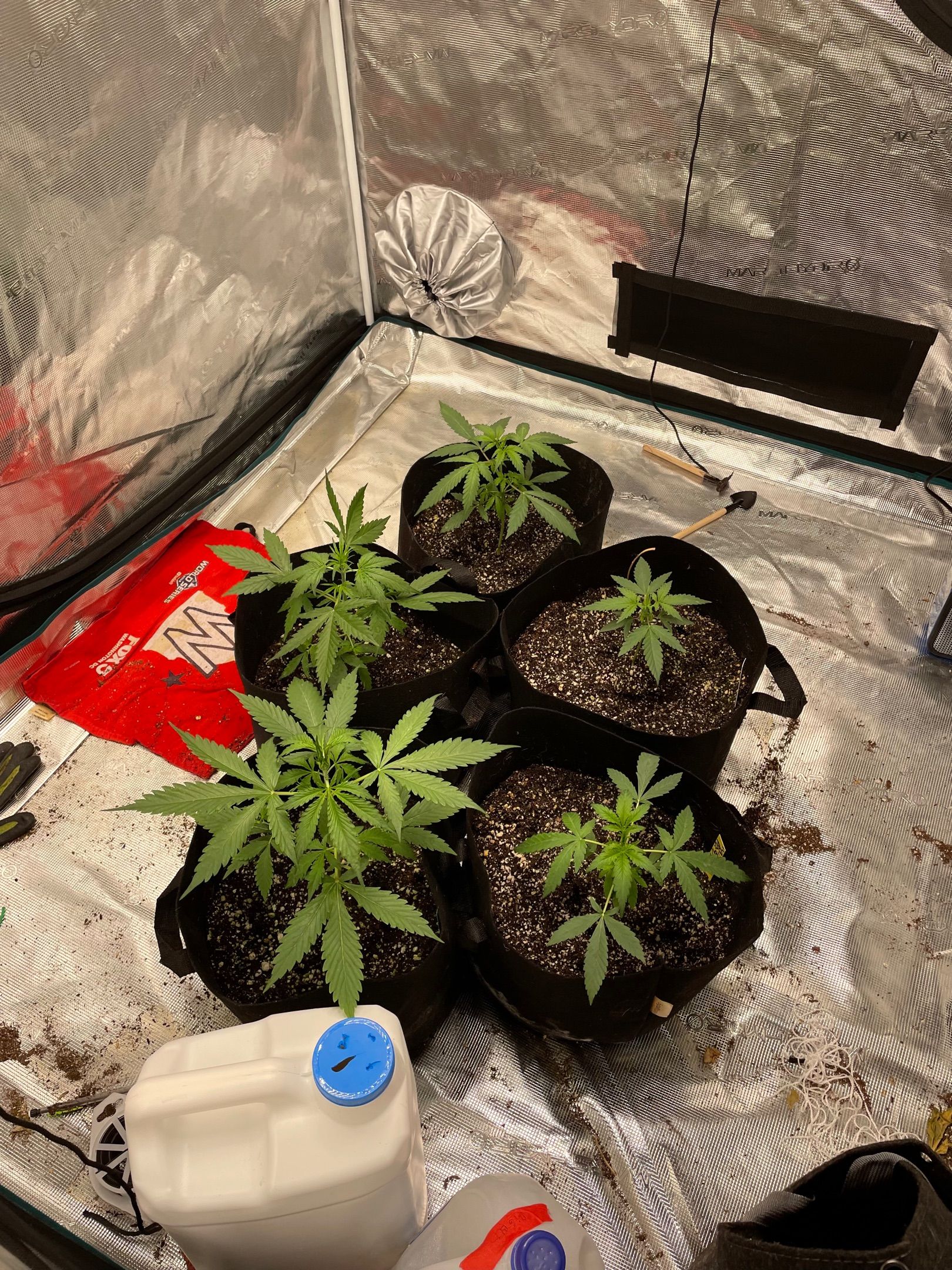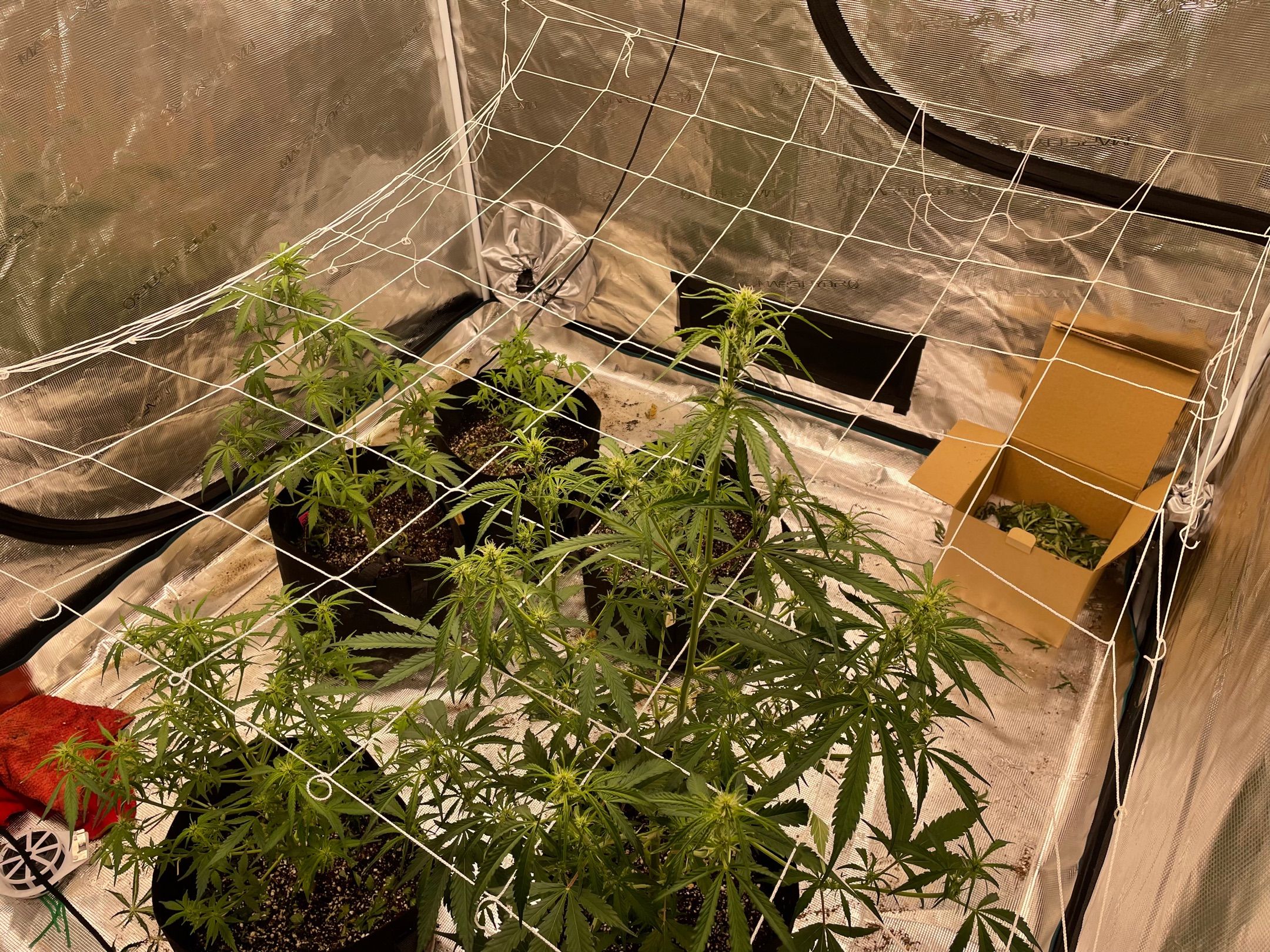 All 5 plants had major fan leaves trimmed off