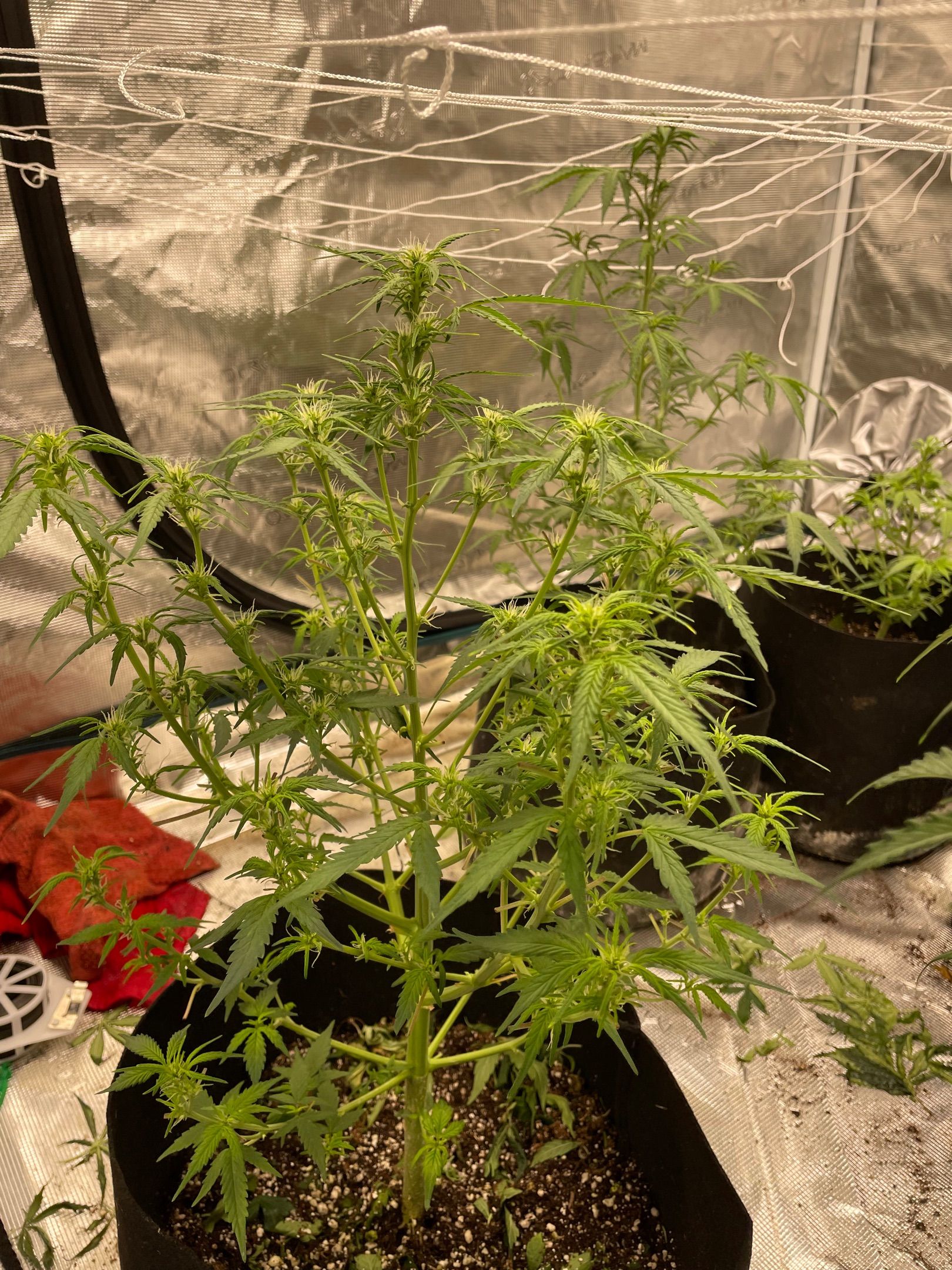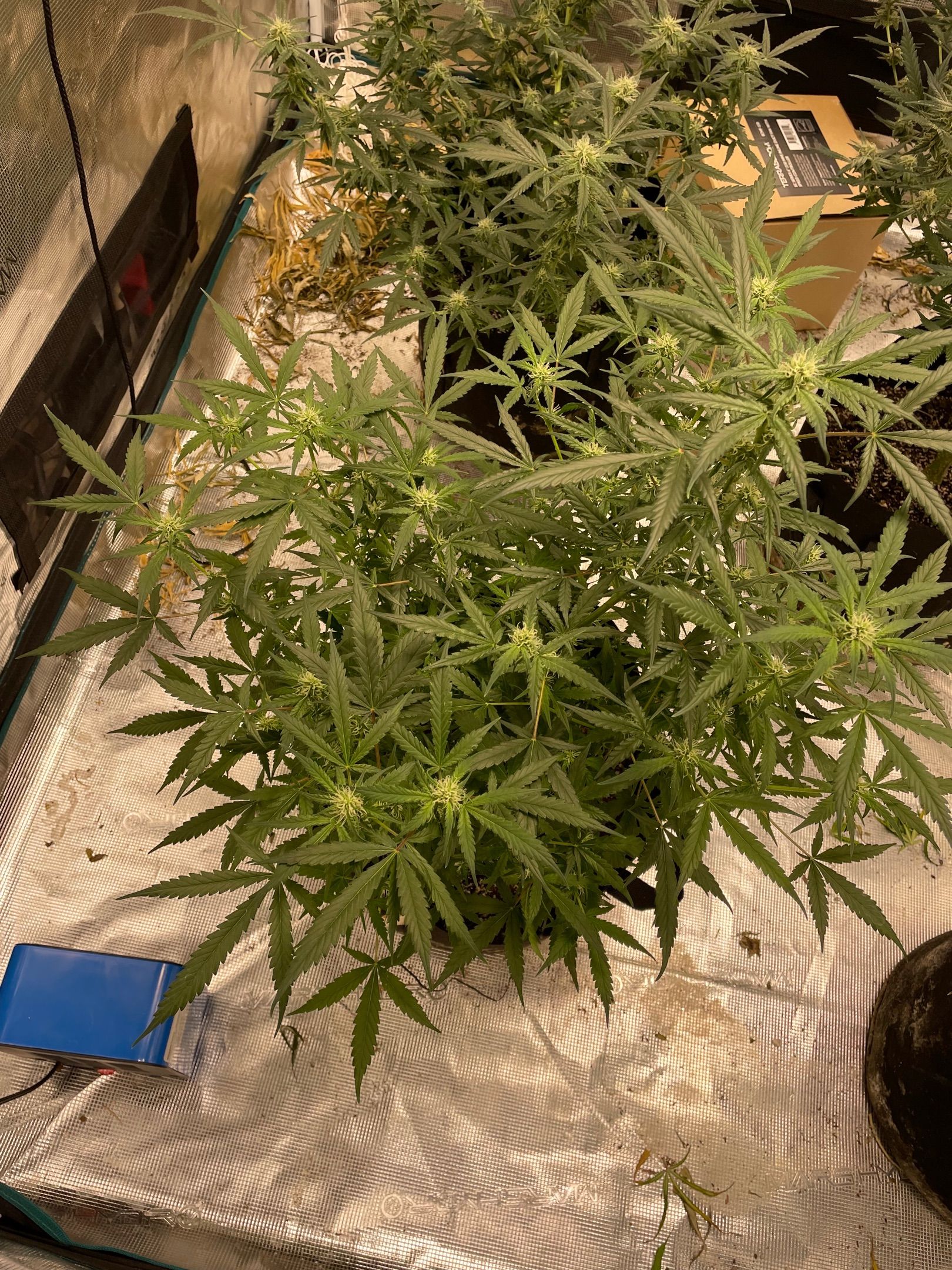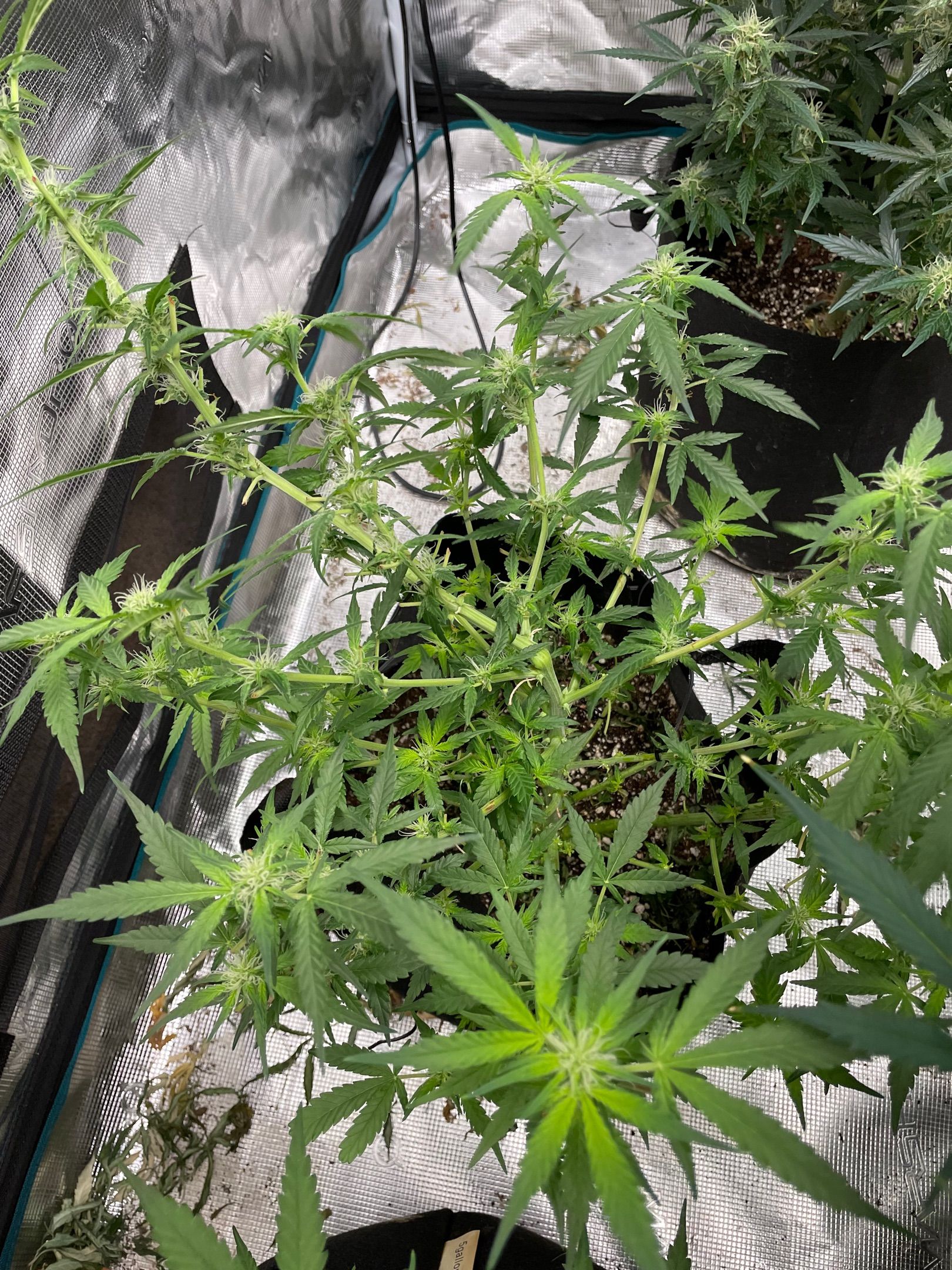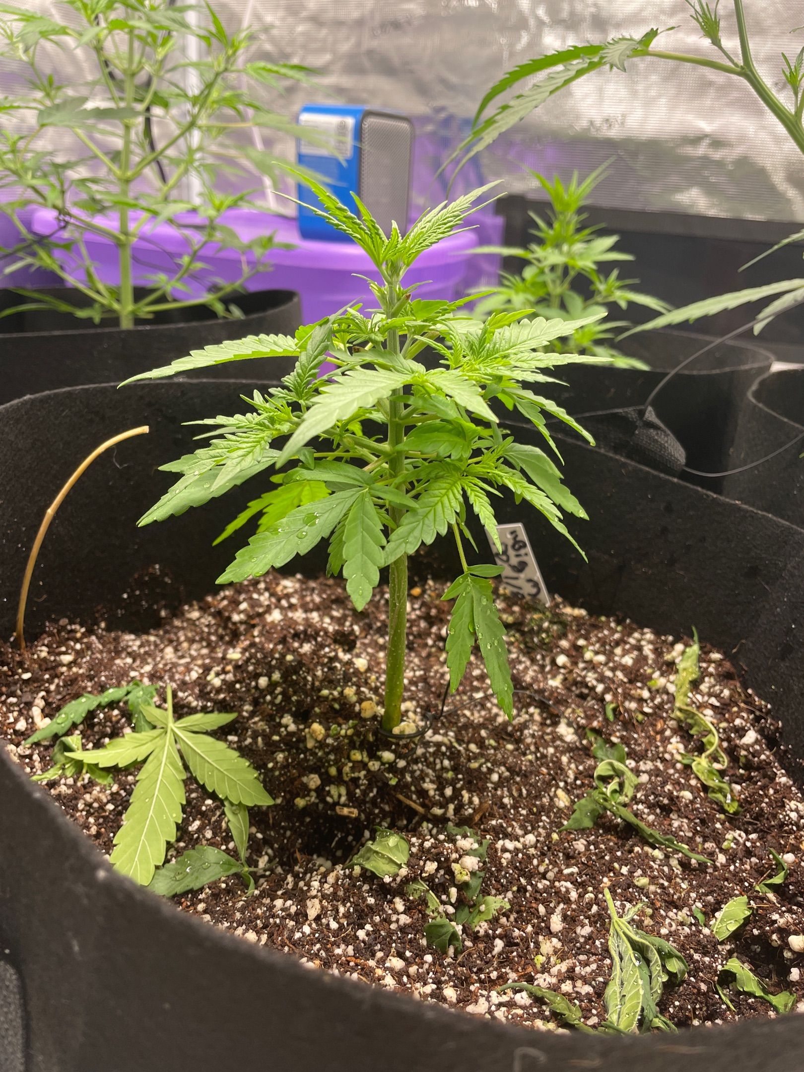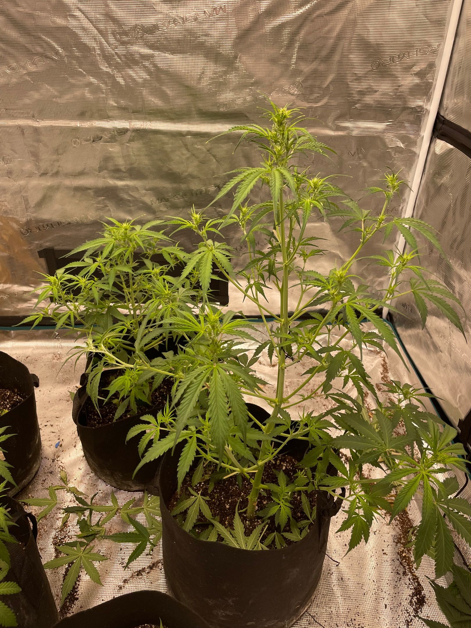 All 5 plants had major fan leaves trimmed off