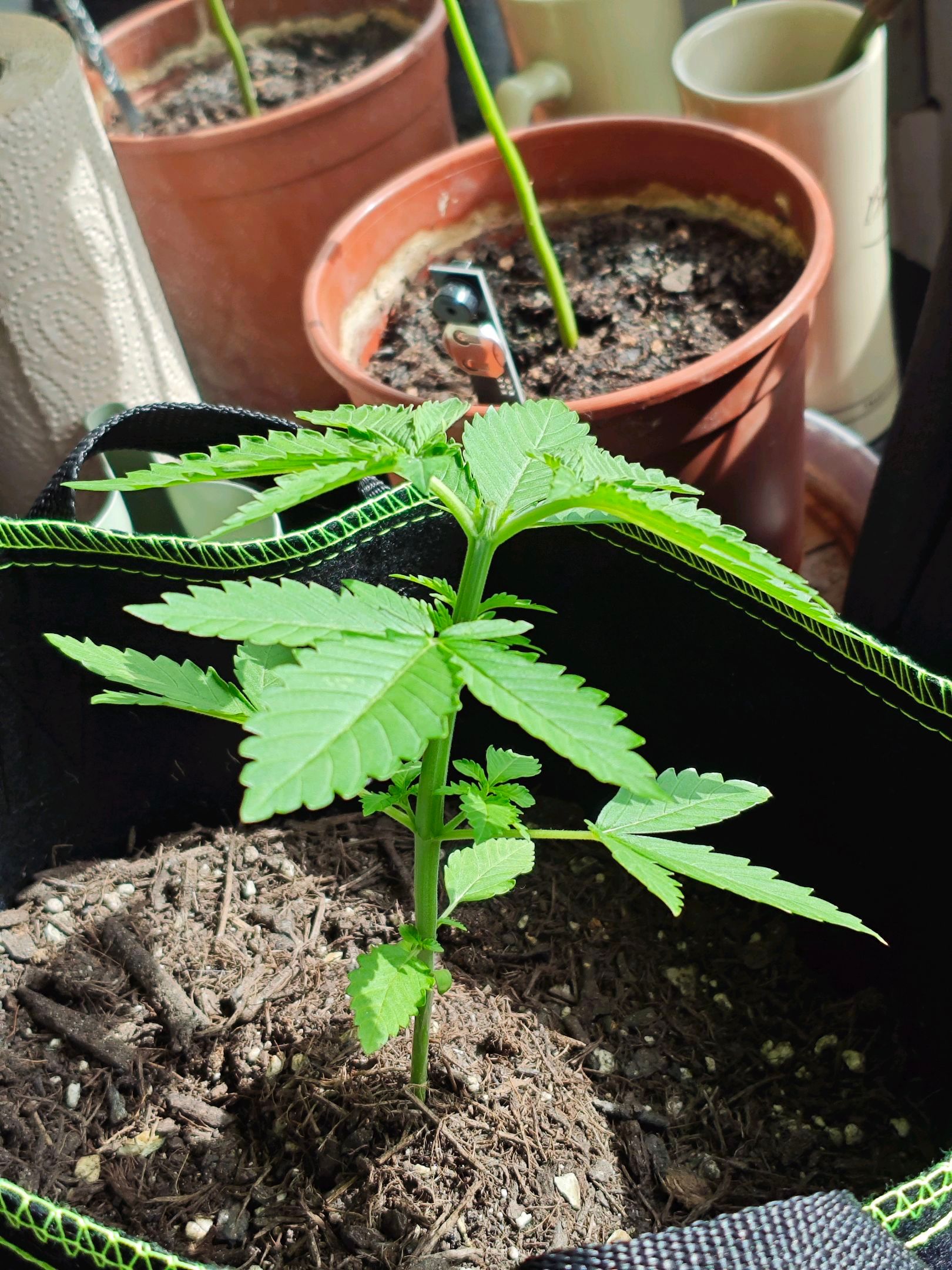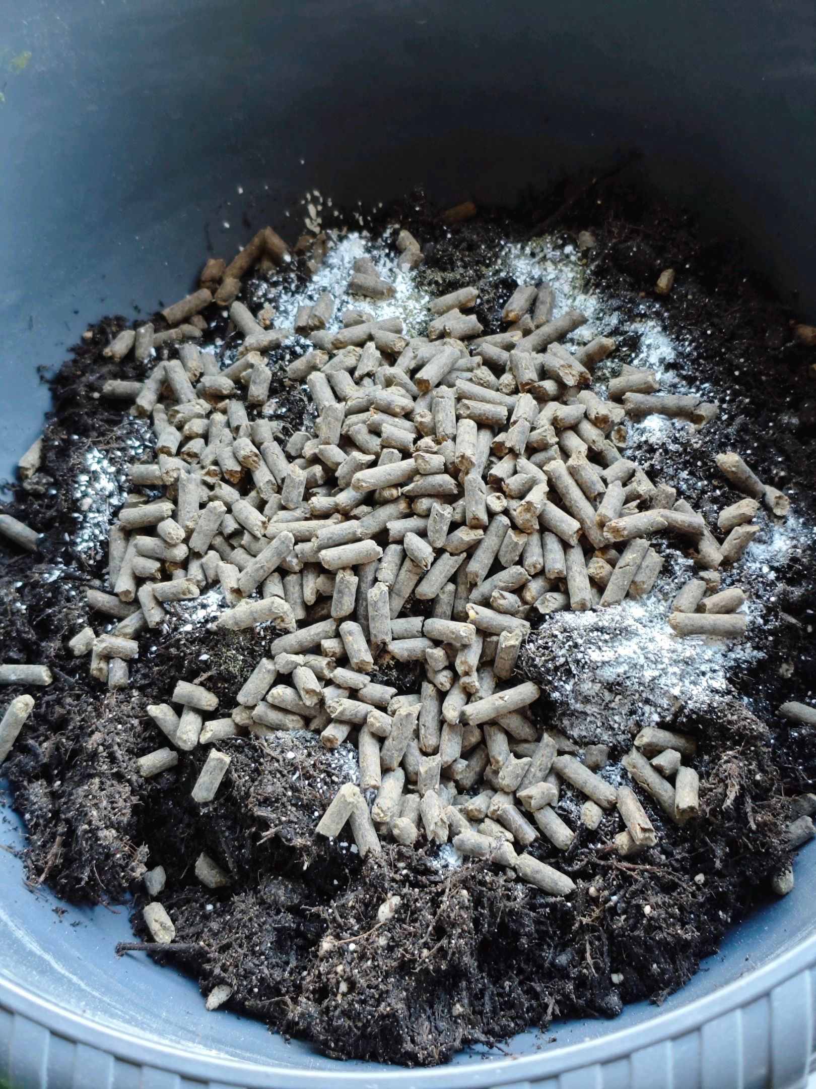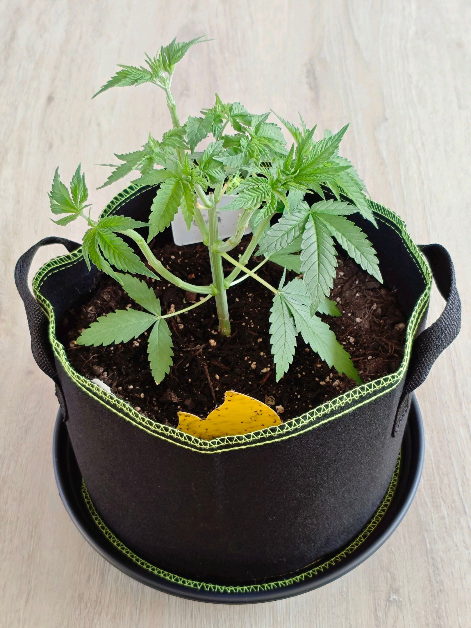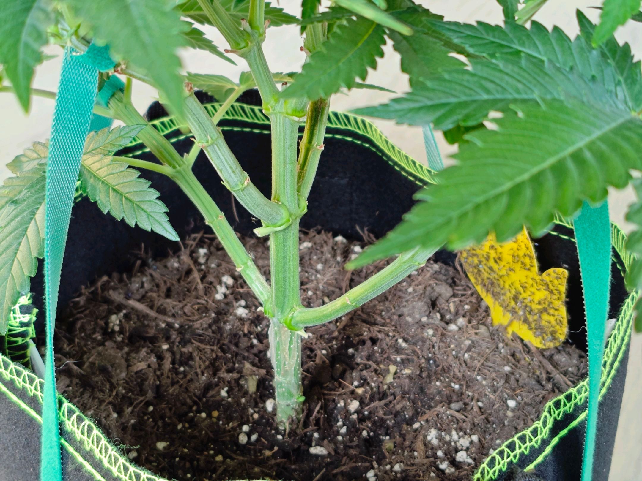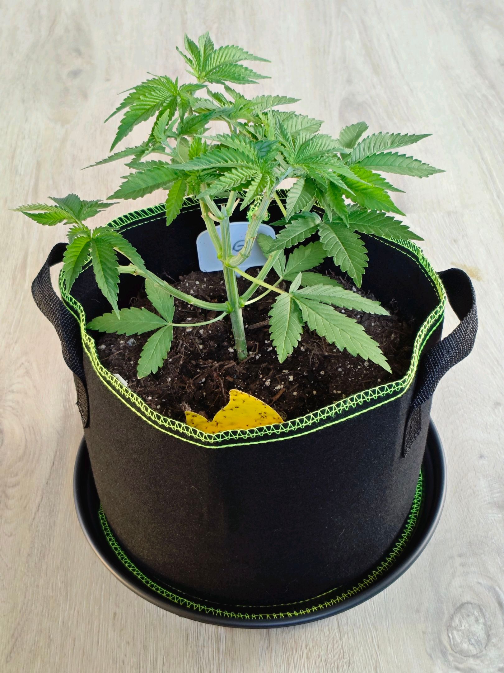 Plant looks healthy, so I chose to fill up the plant bag it's growing in with some more soil. The mixture is organic universal soil, chicken manure pellets, a little bit of finely crushed egg shells and a tiny pinch of mycorrhizal inoculant.