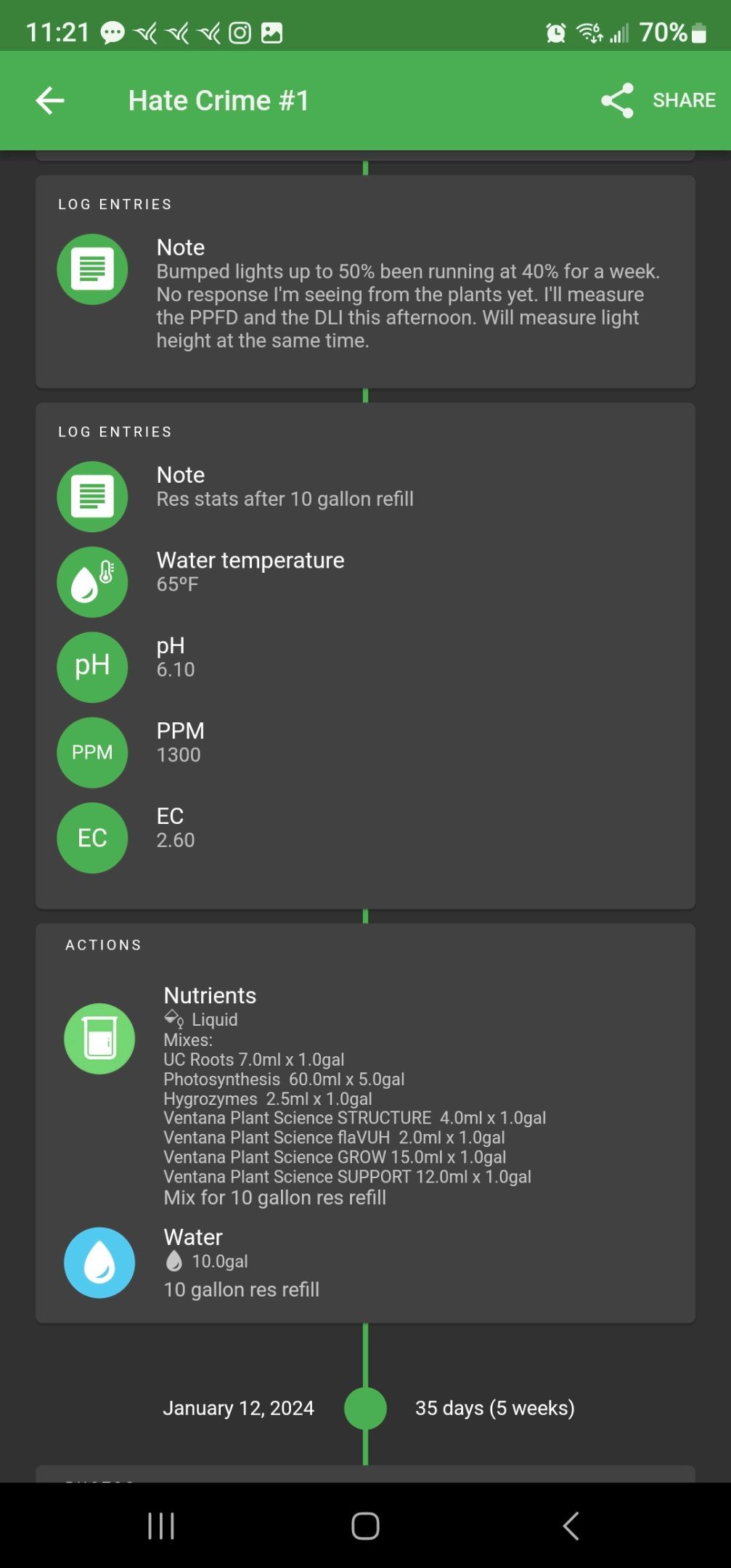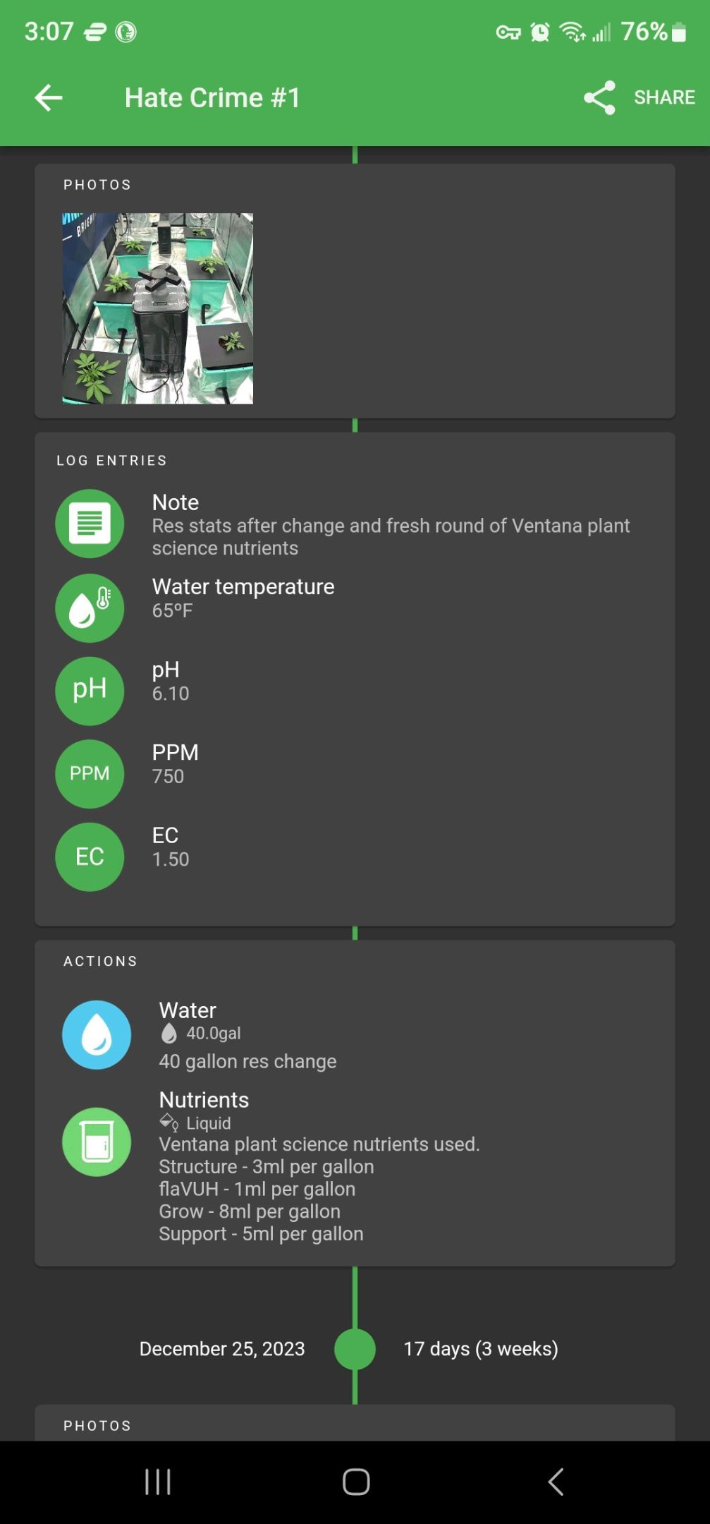 Added 2 more ml per gallon of Ventana grow to the res totaling 10 ml per gallon. The plants reacted liked I hoped with the higher ec. Will check the rec and update the res stats later this a afternoon.
