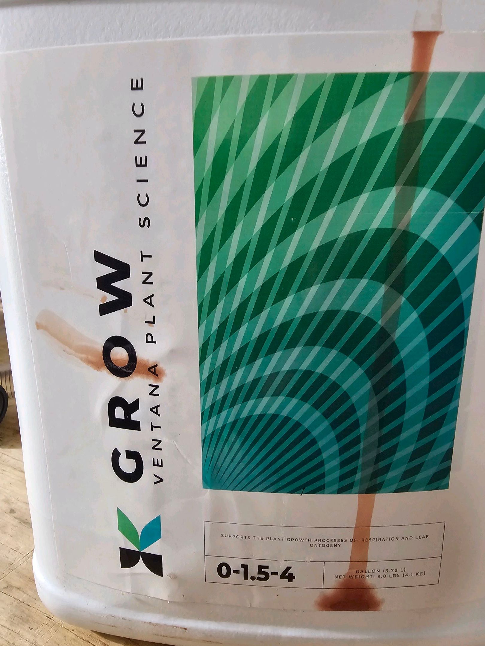 Ventana plant science Structure 5 ml per gallon Photosynthesis 2.5 ml per gallon Hugrozymes 2.5 ml per gallon Uc roots 7 ml per gallon flaVUH 2 ml per gallon Grow 15 ml per gallon Support 12 ml per gallon