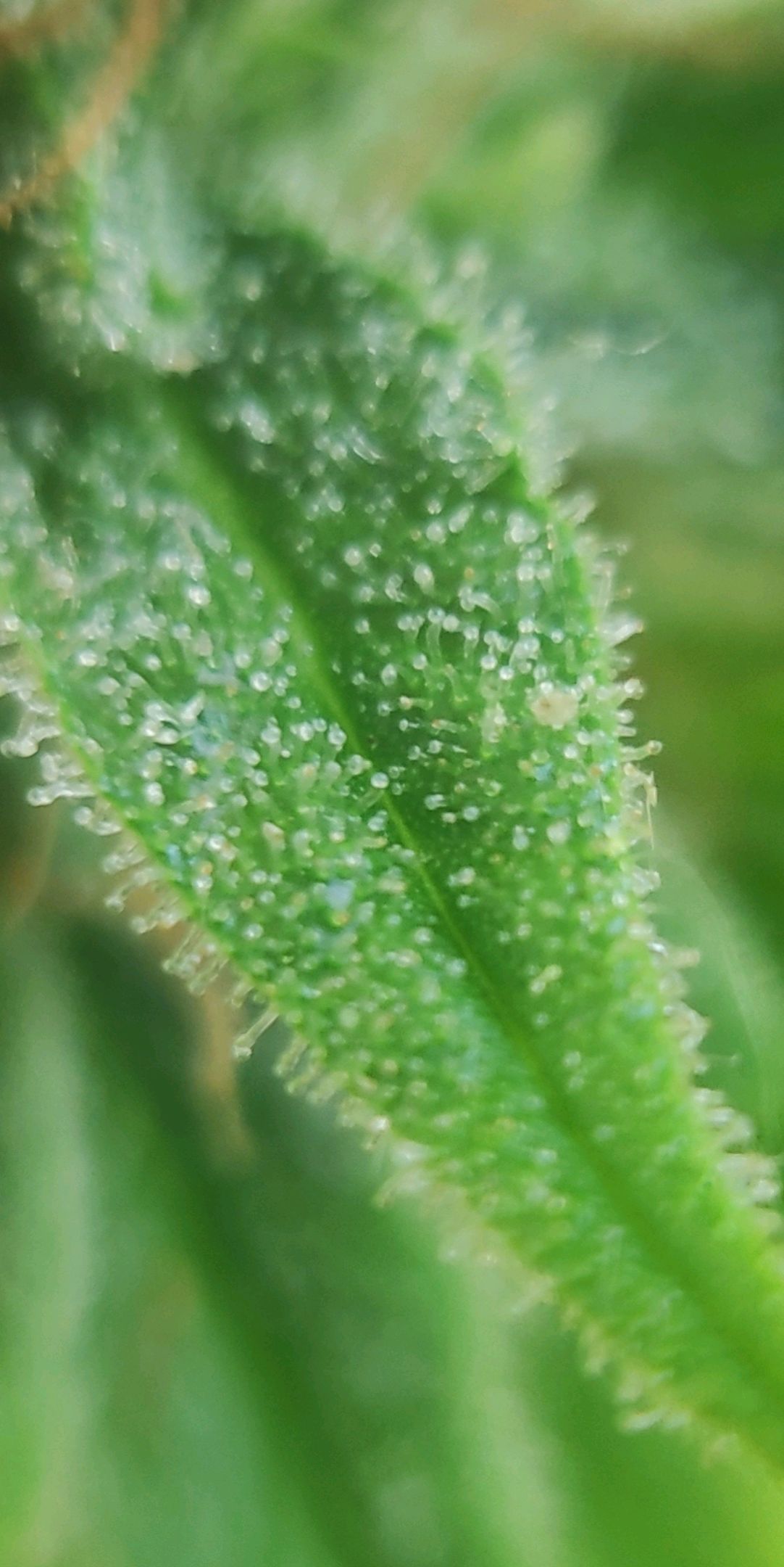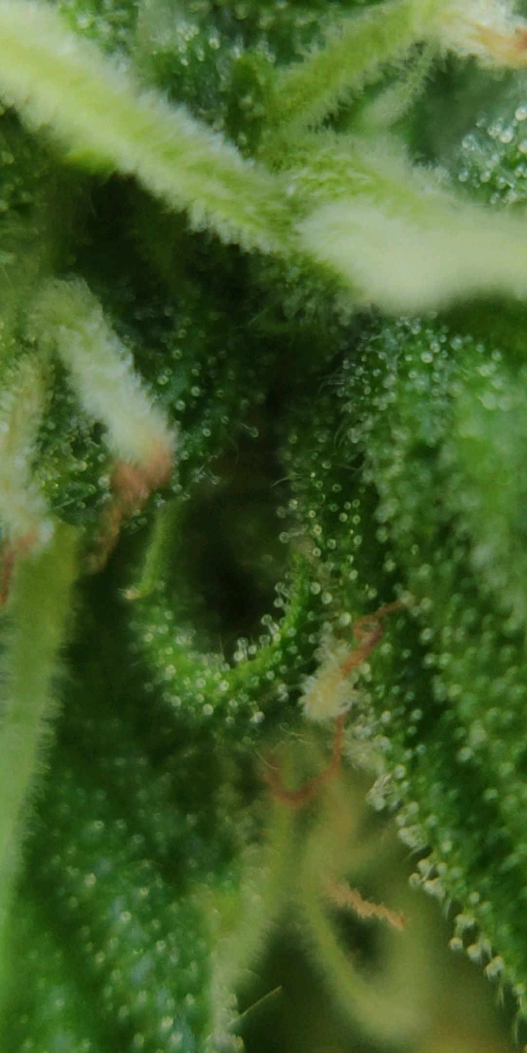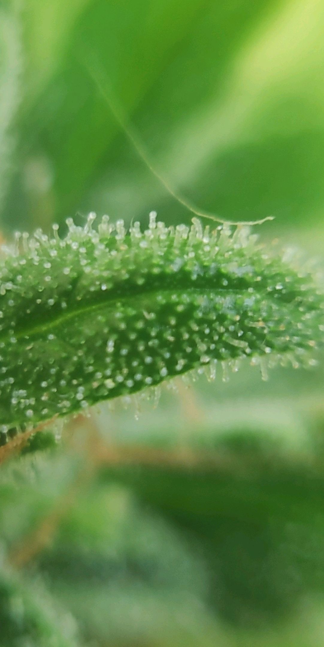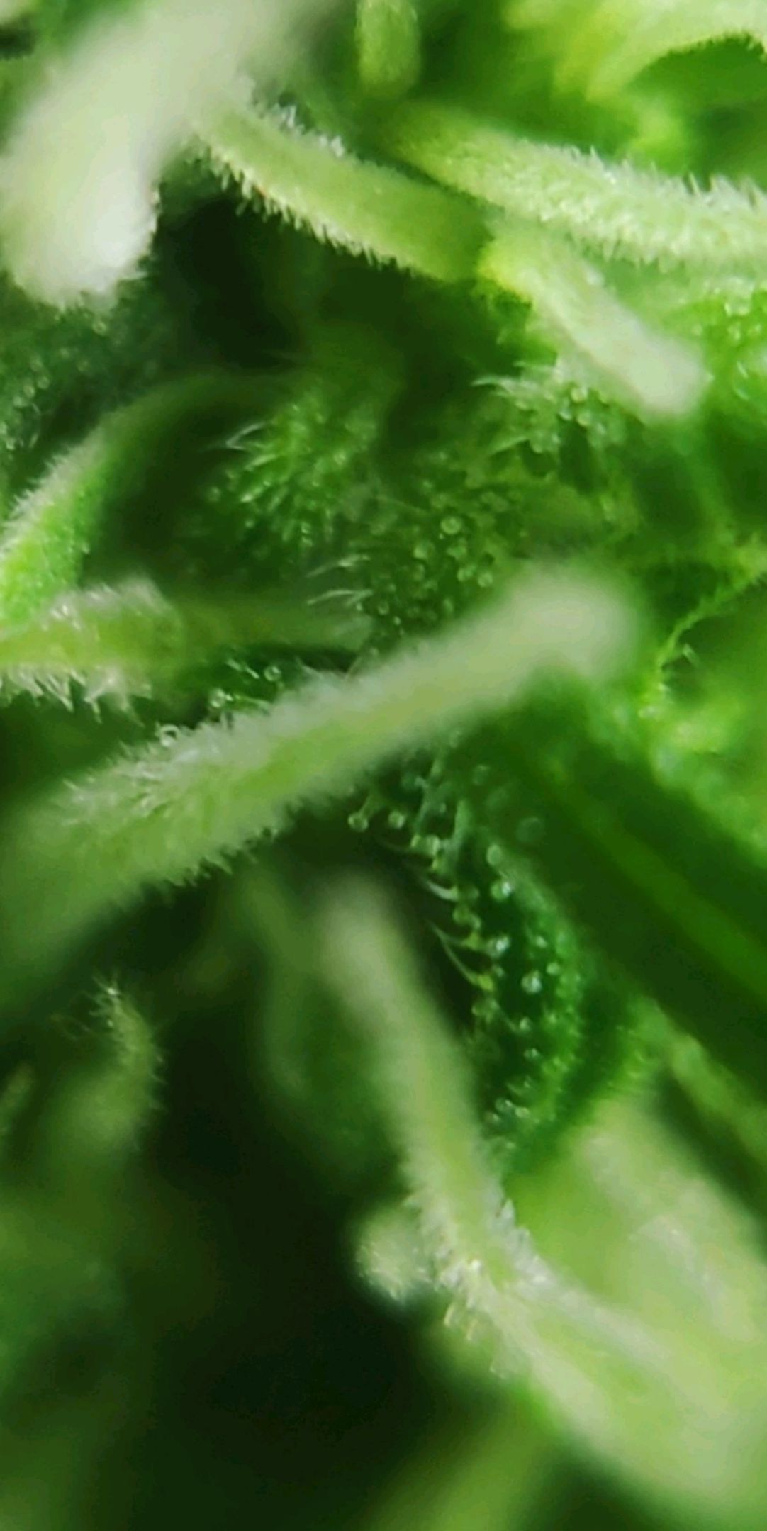 La floraison se poursuit. Quelques trichomes commencent à apparaître. L'odeur est vraiment sympa 💚💚