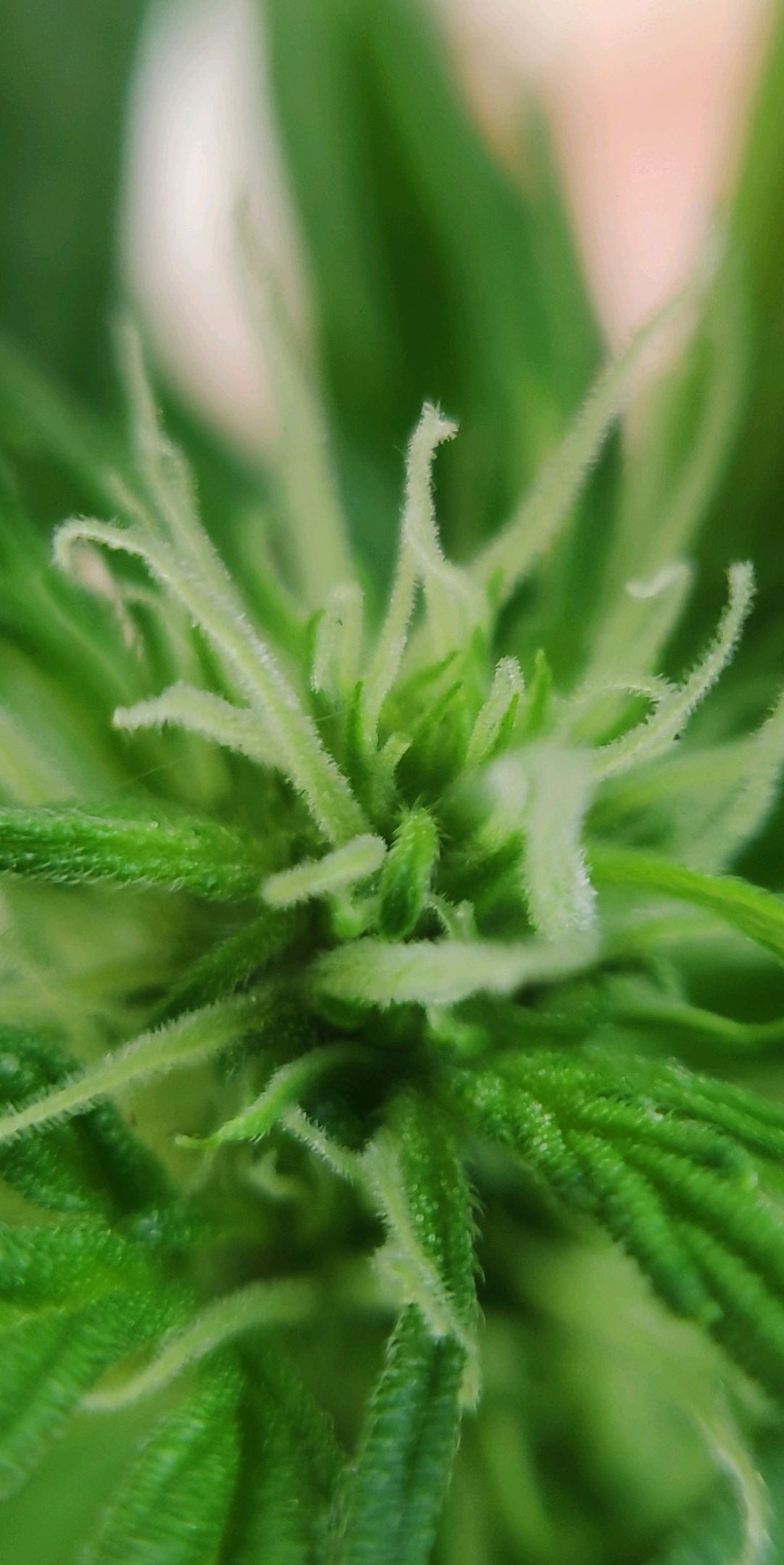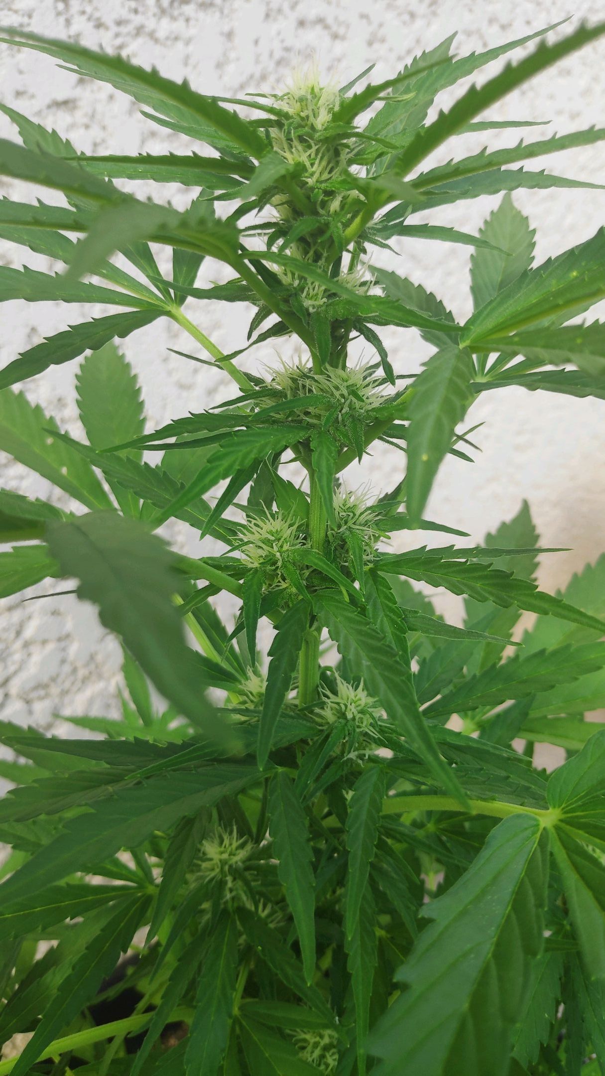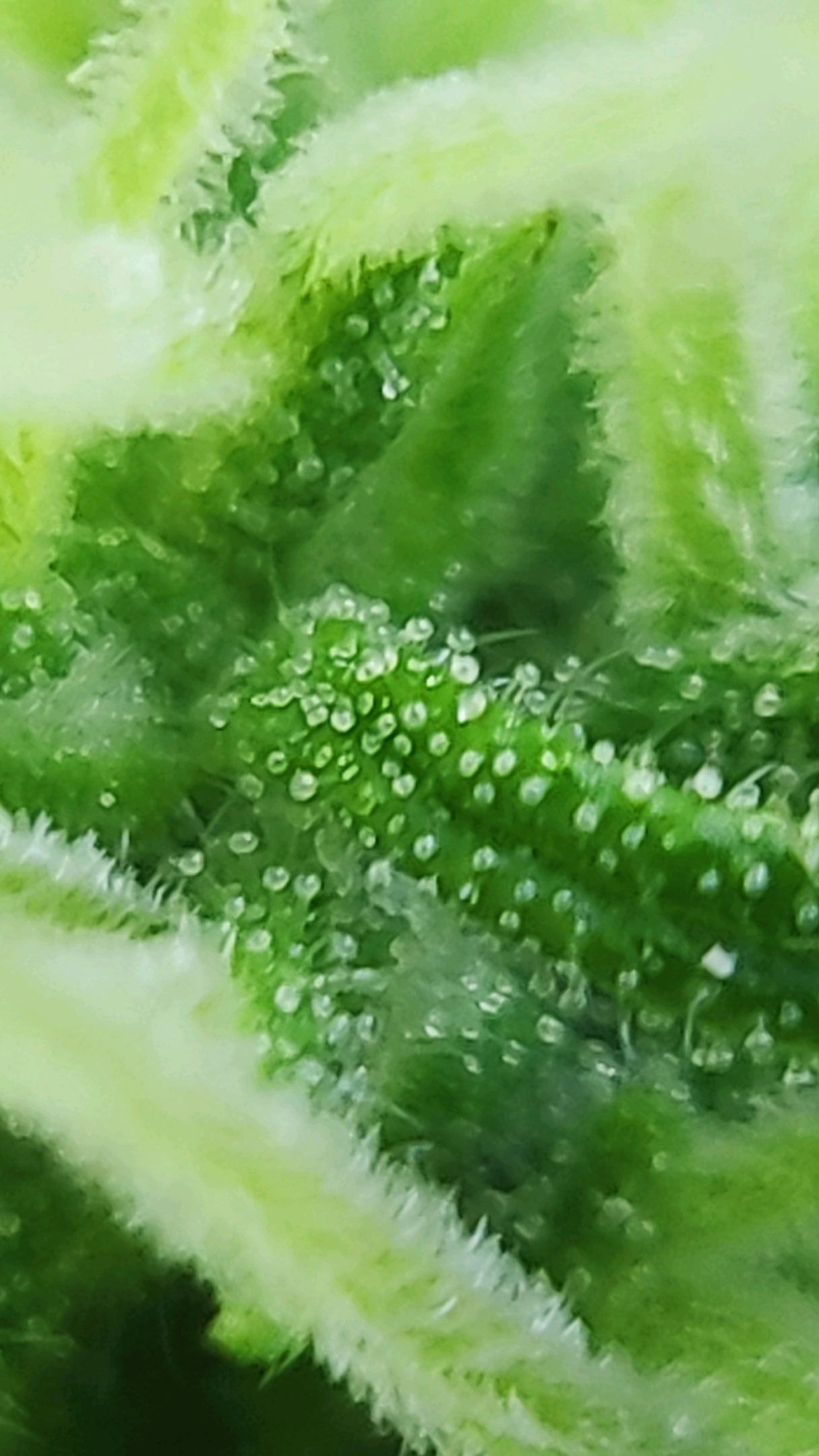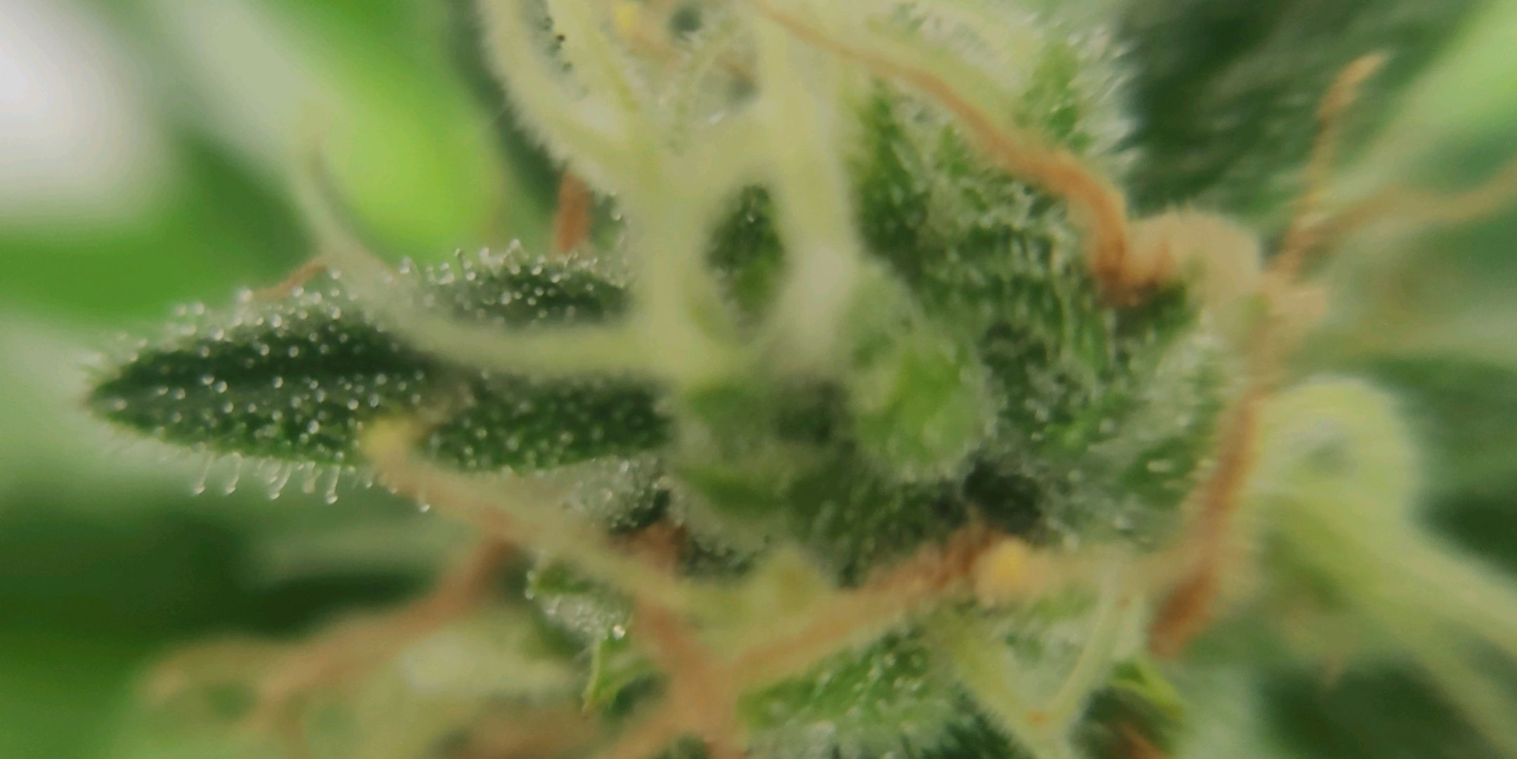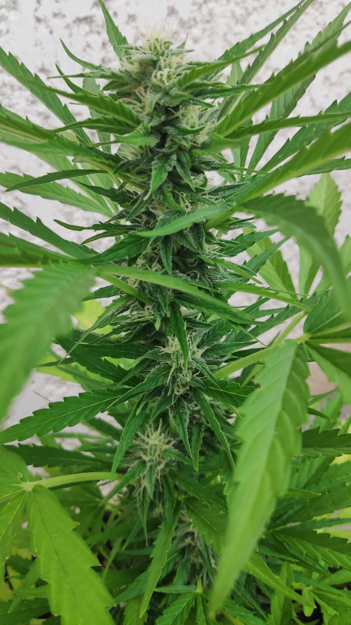 La floraison se poursuit. Quelques trichomes commencent à apparaître. L'odeur est vraiment sympa 💚💚