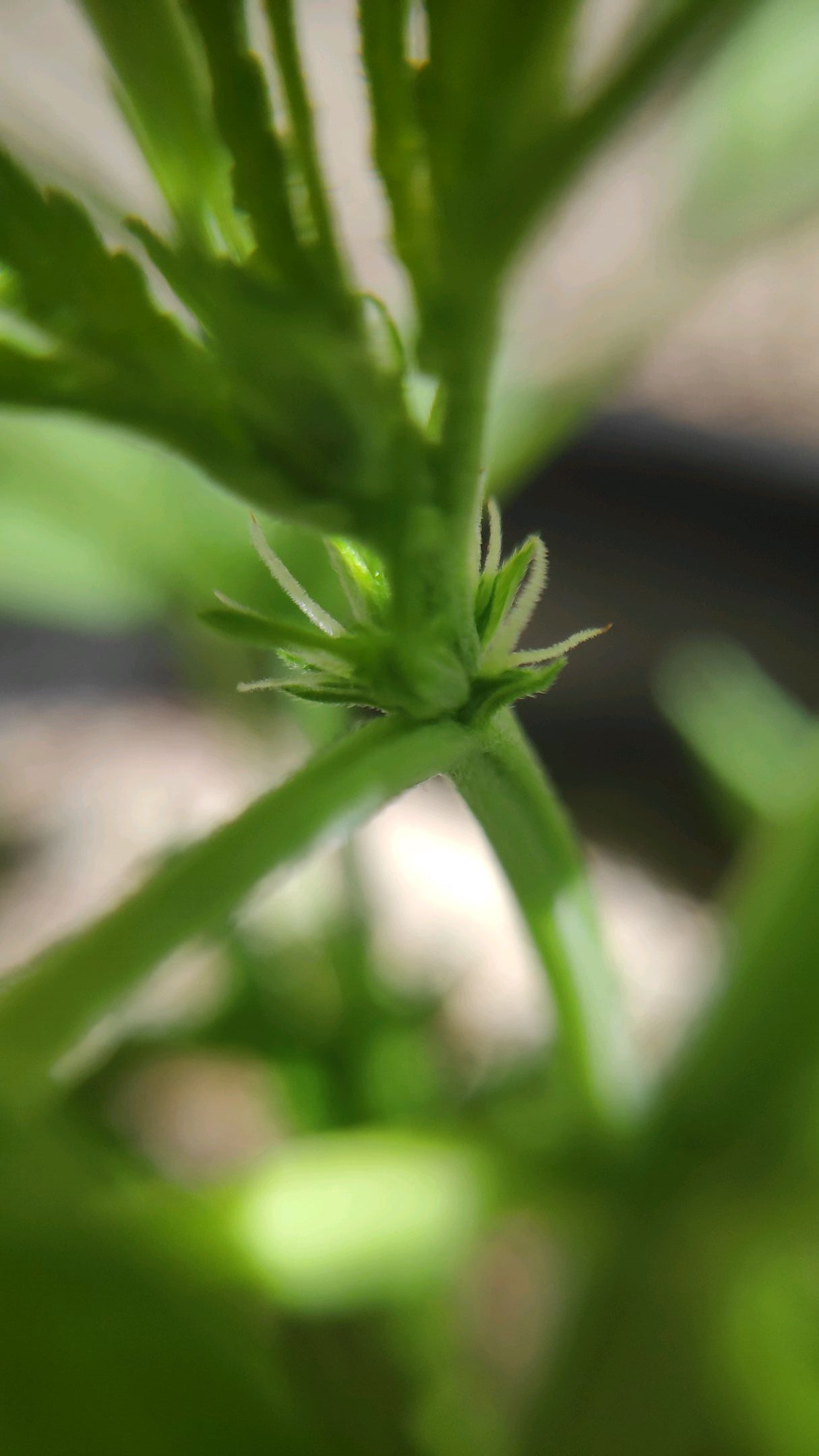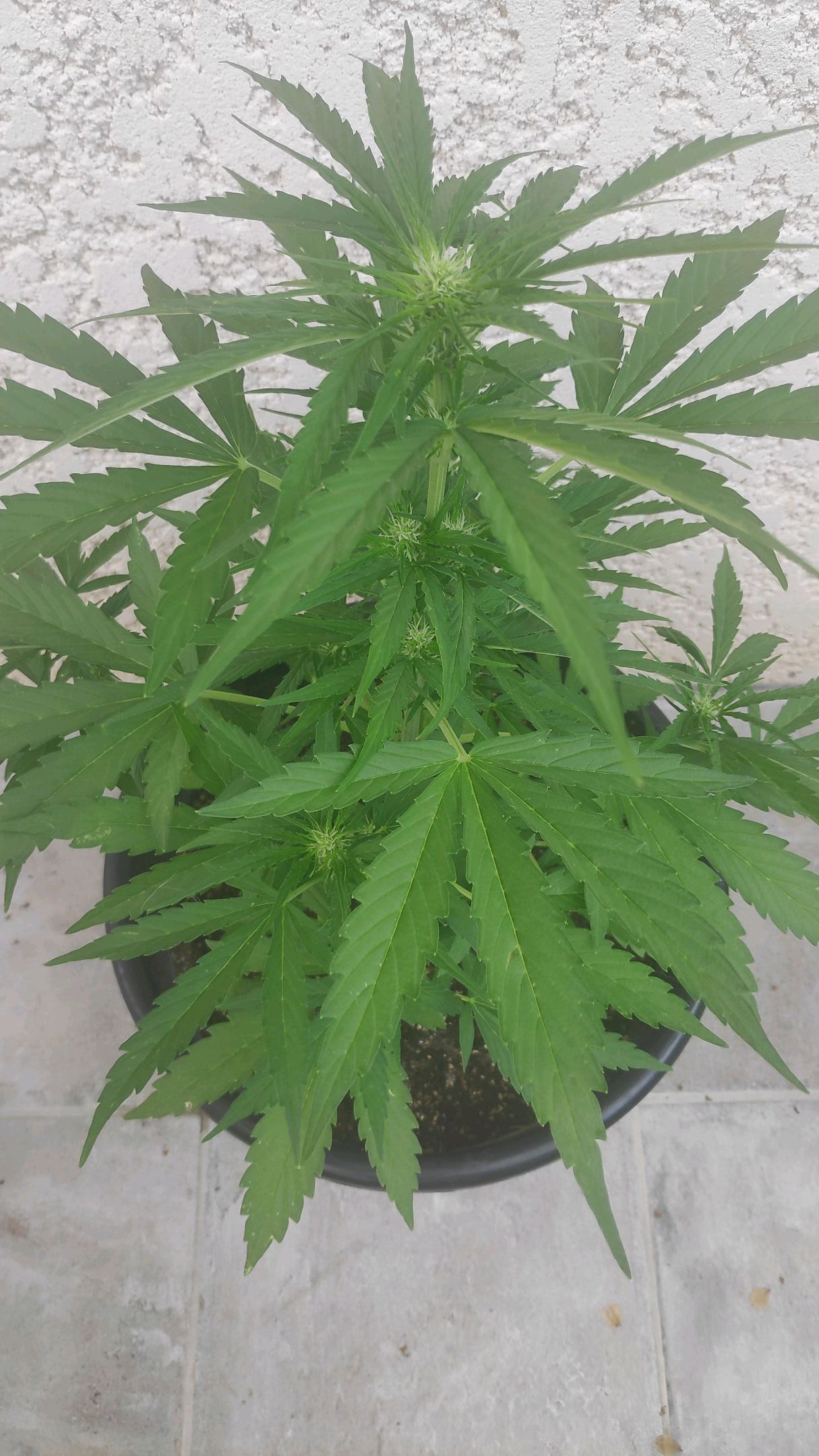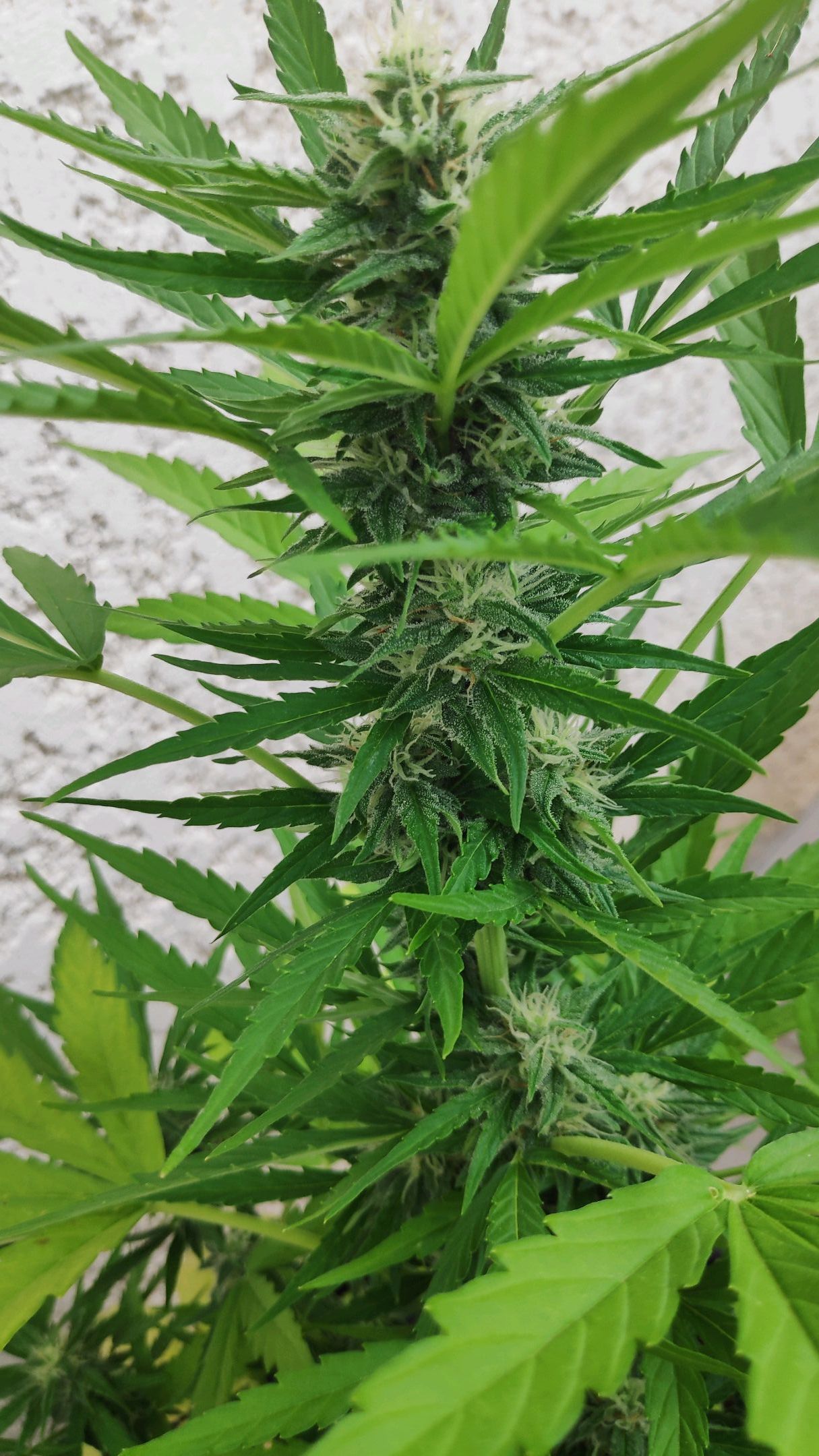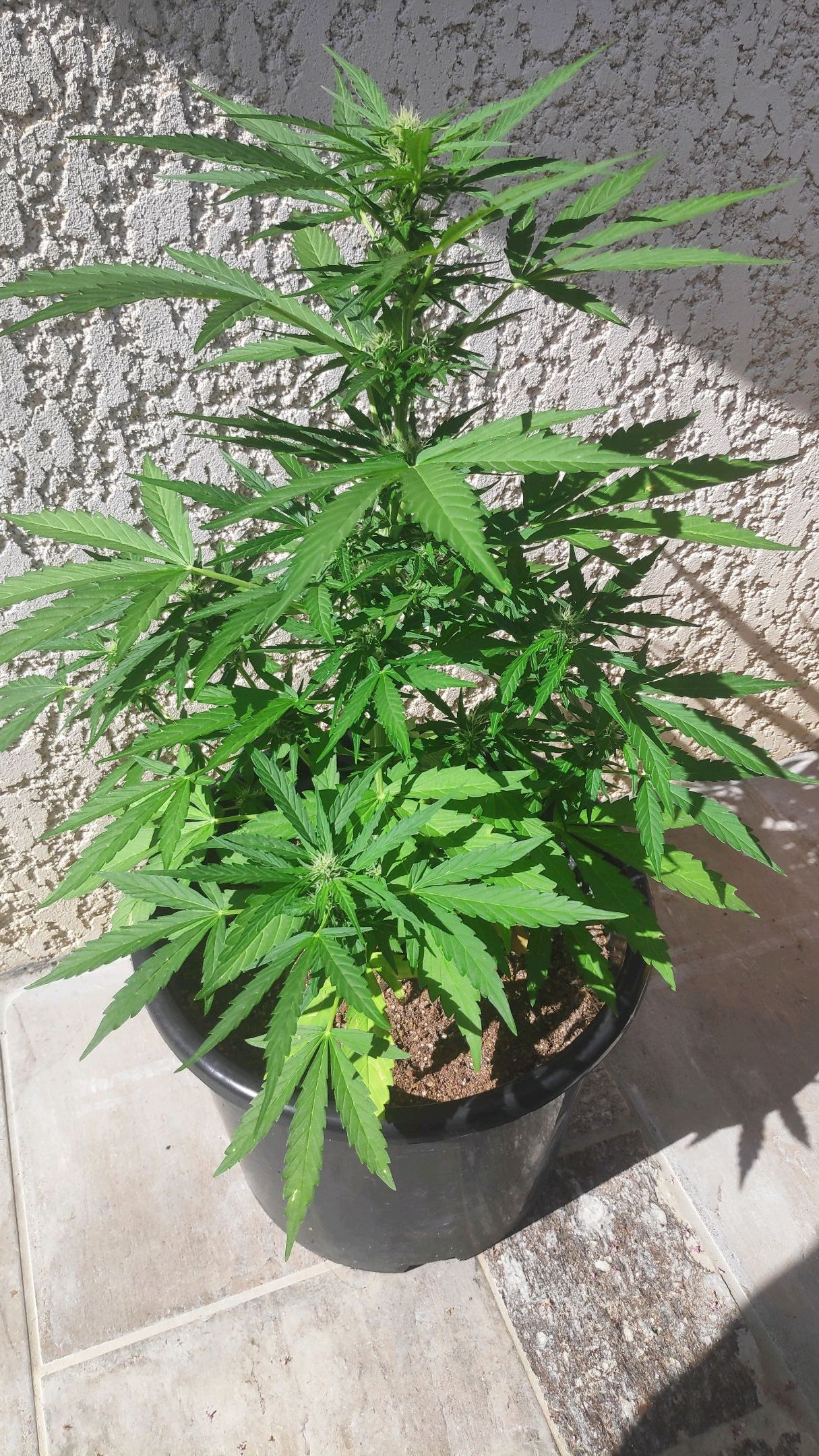 La floraison se poursuit. Quelques trichomes commencent à apparaître. L'odeur est vraiment sympa 💚💚