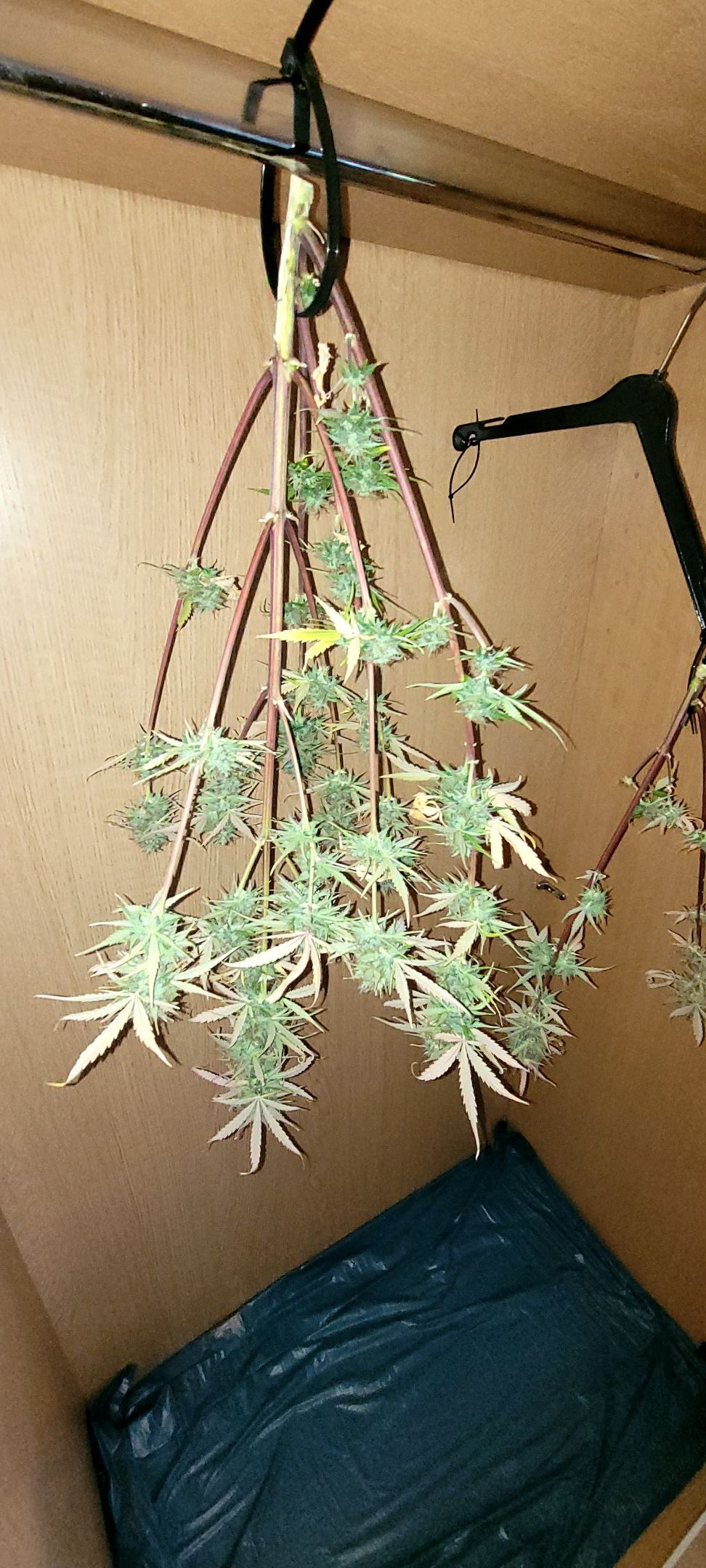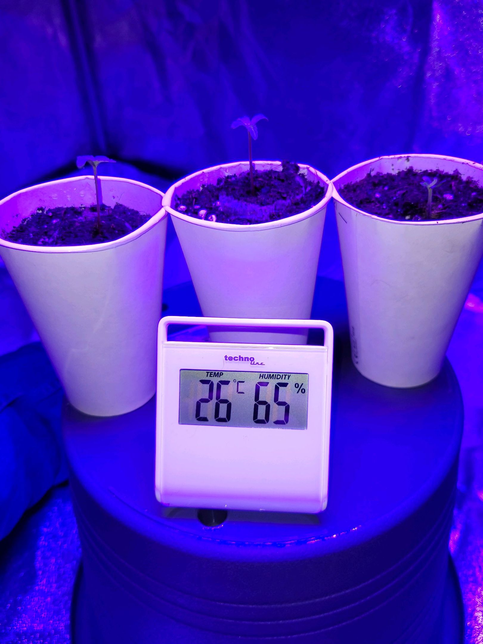 26 Grad / 62% Feuchtigkeit um die Luftfeuchtigkeit etwas zu erhöhen habe ich ein feuchtes Handtuch in die Growbox gehangen