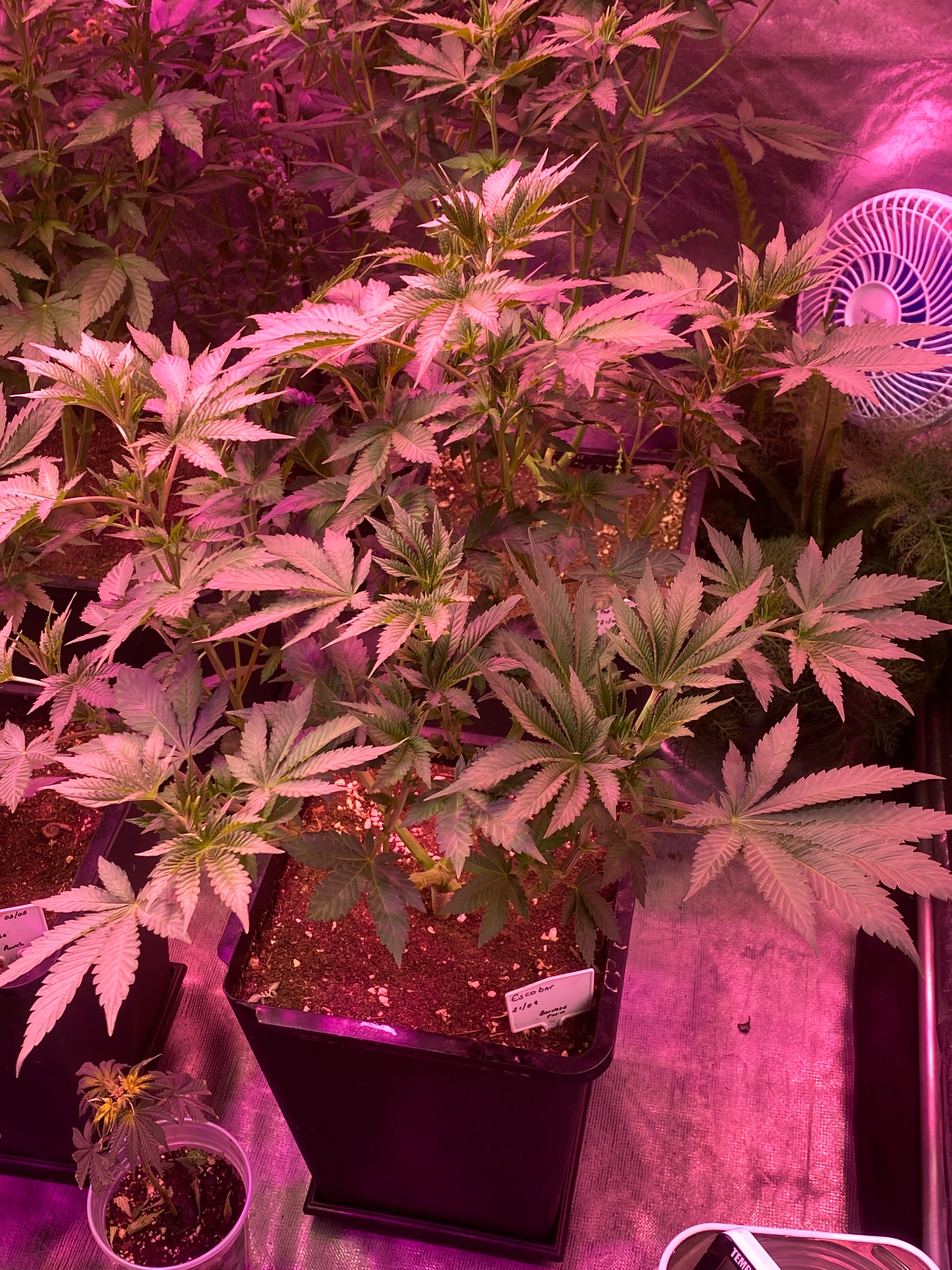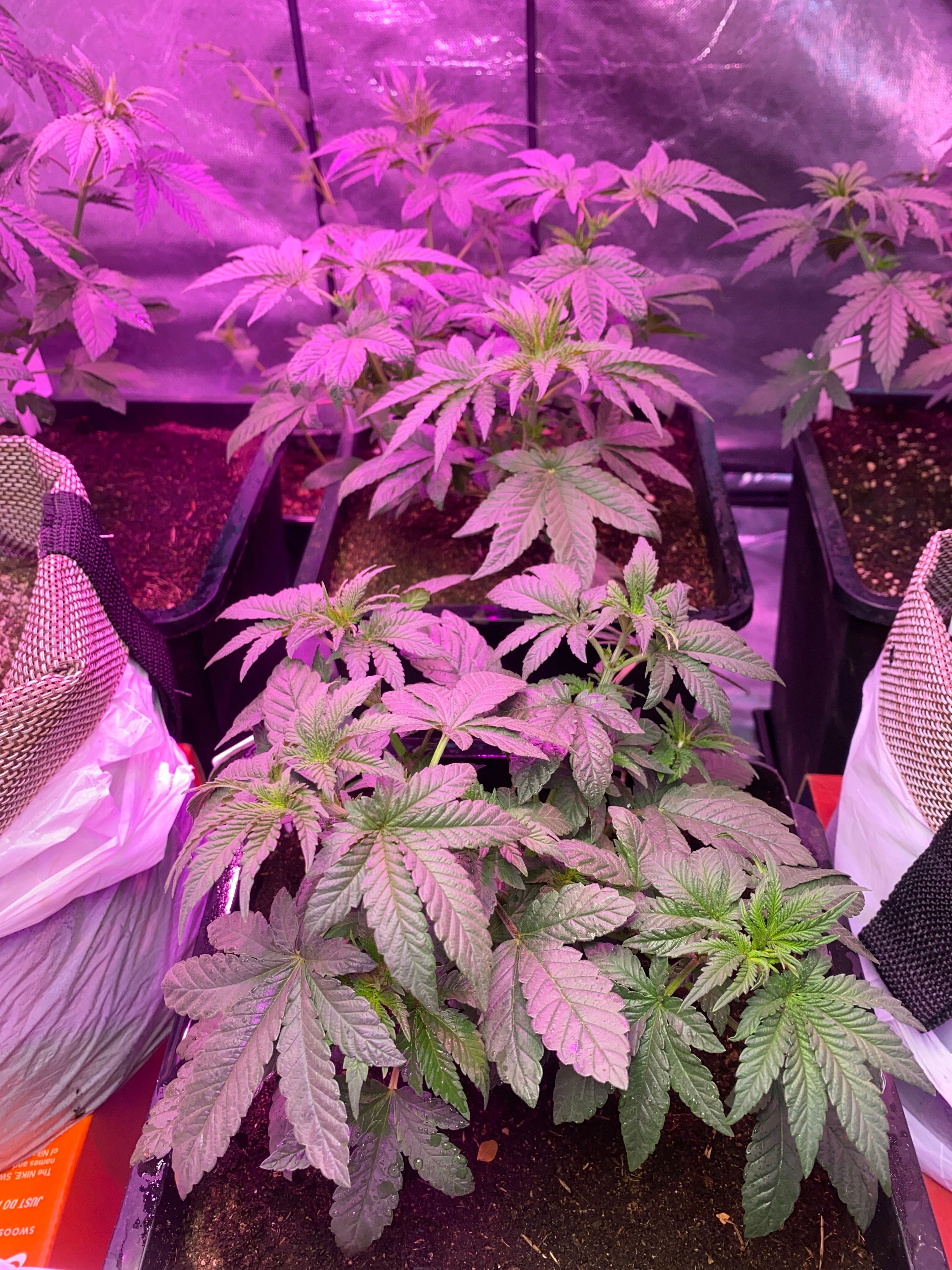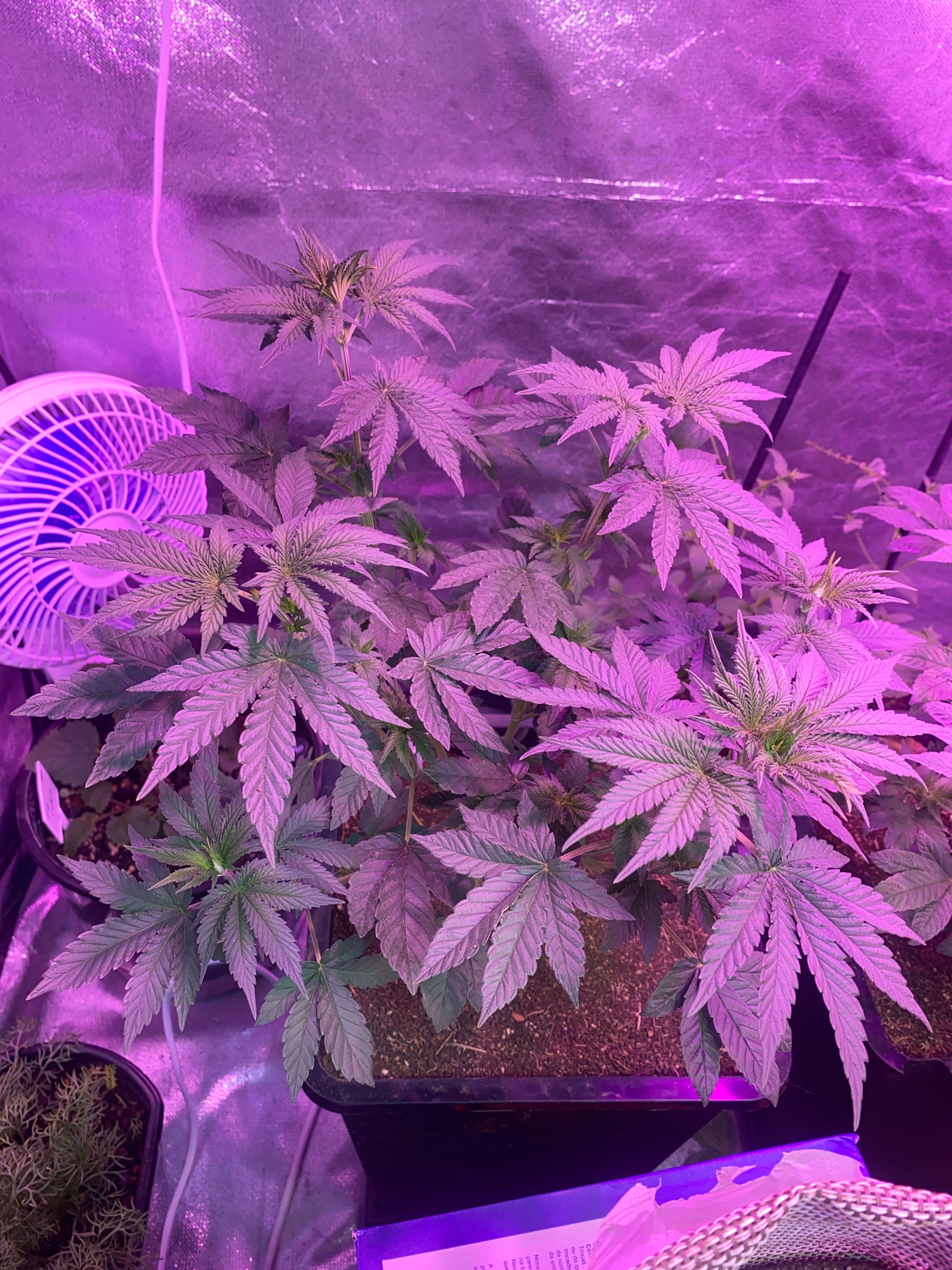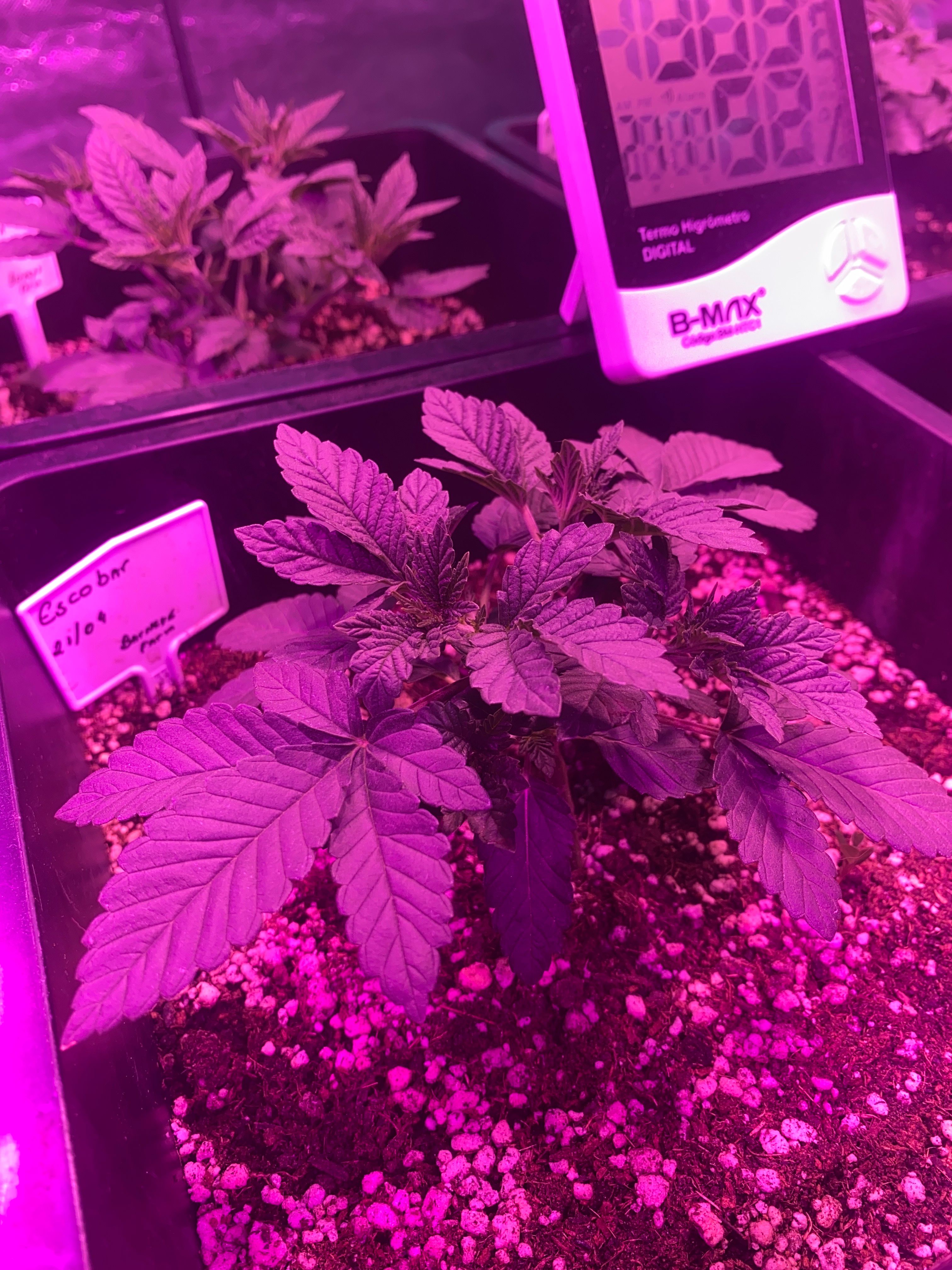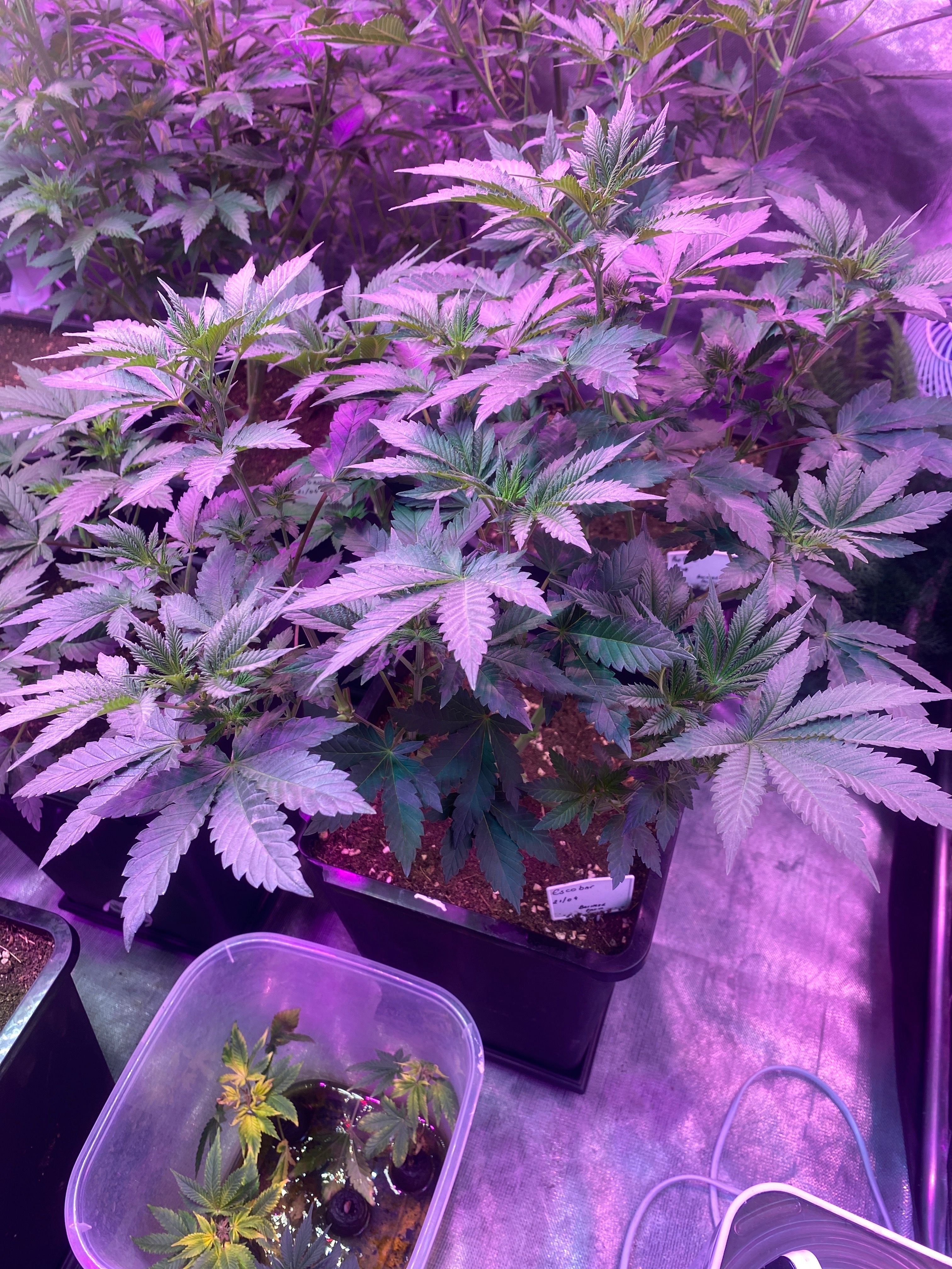 Plantas saudáveis. Amarelos indo pro roxo em decorrência da natureza da strain. Lindas e já apresentando cheiro bom.