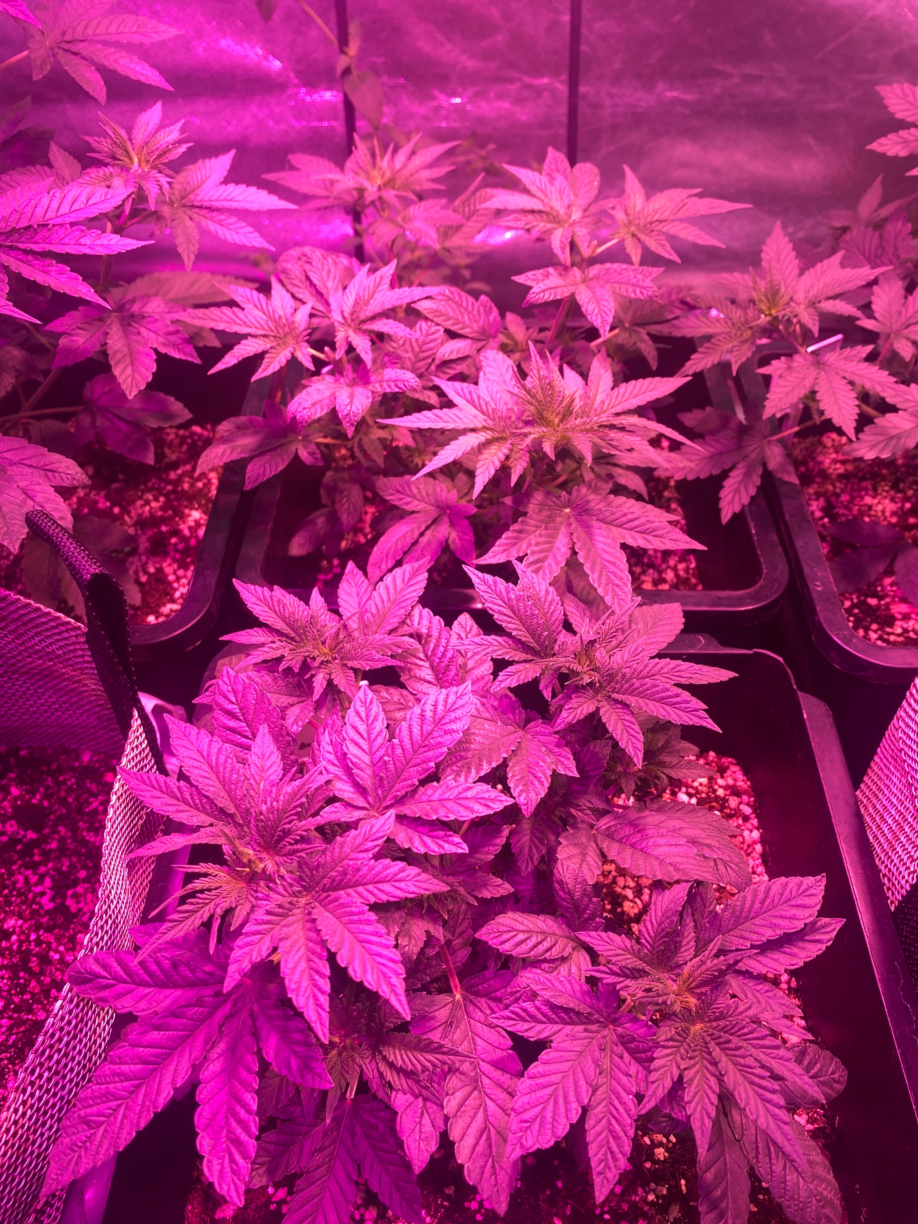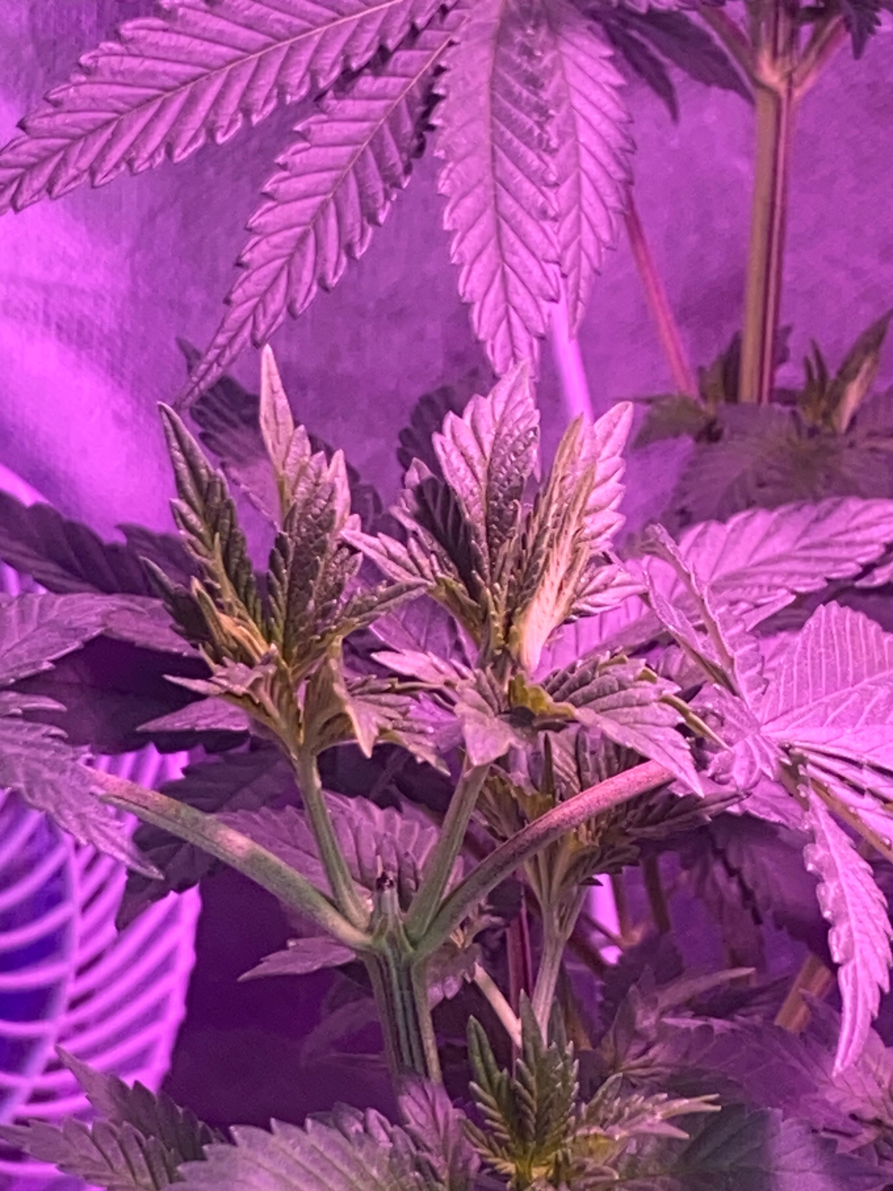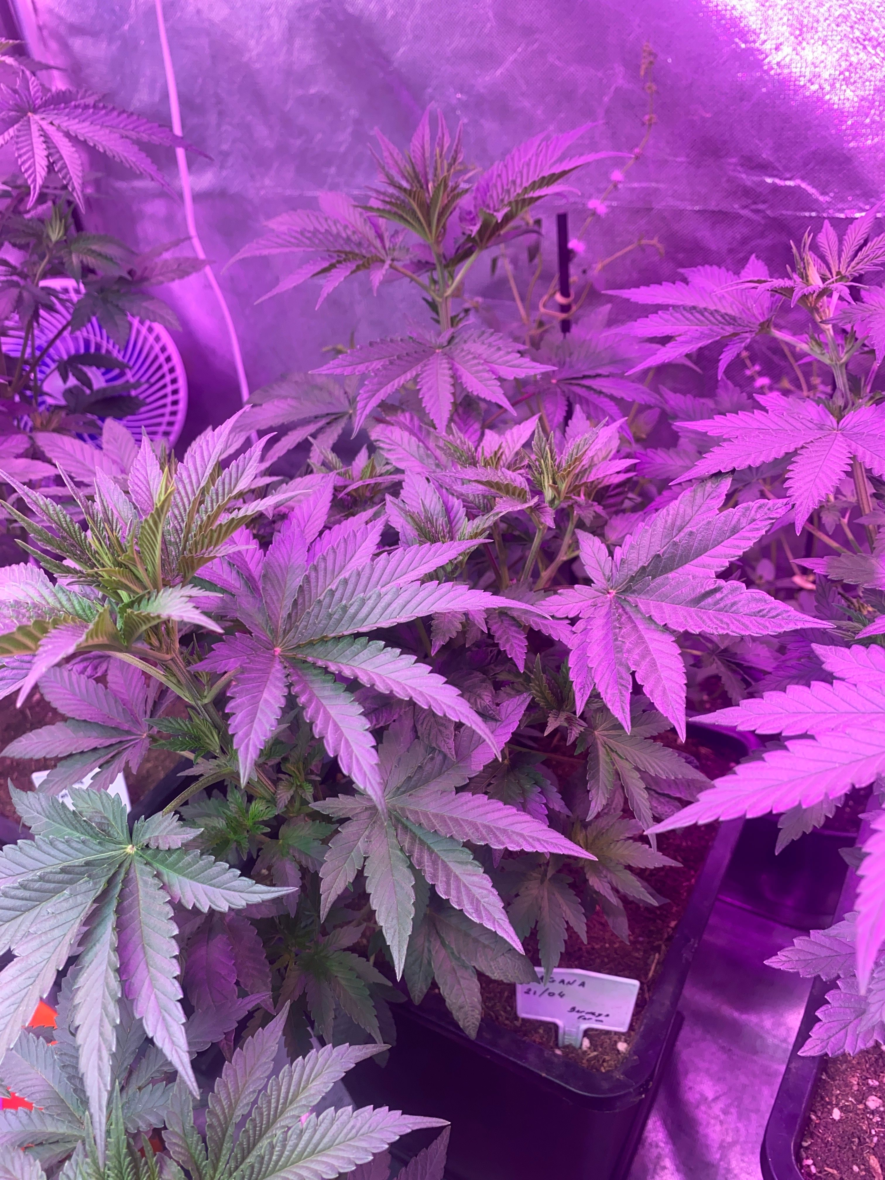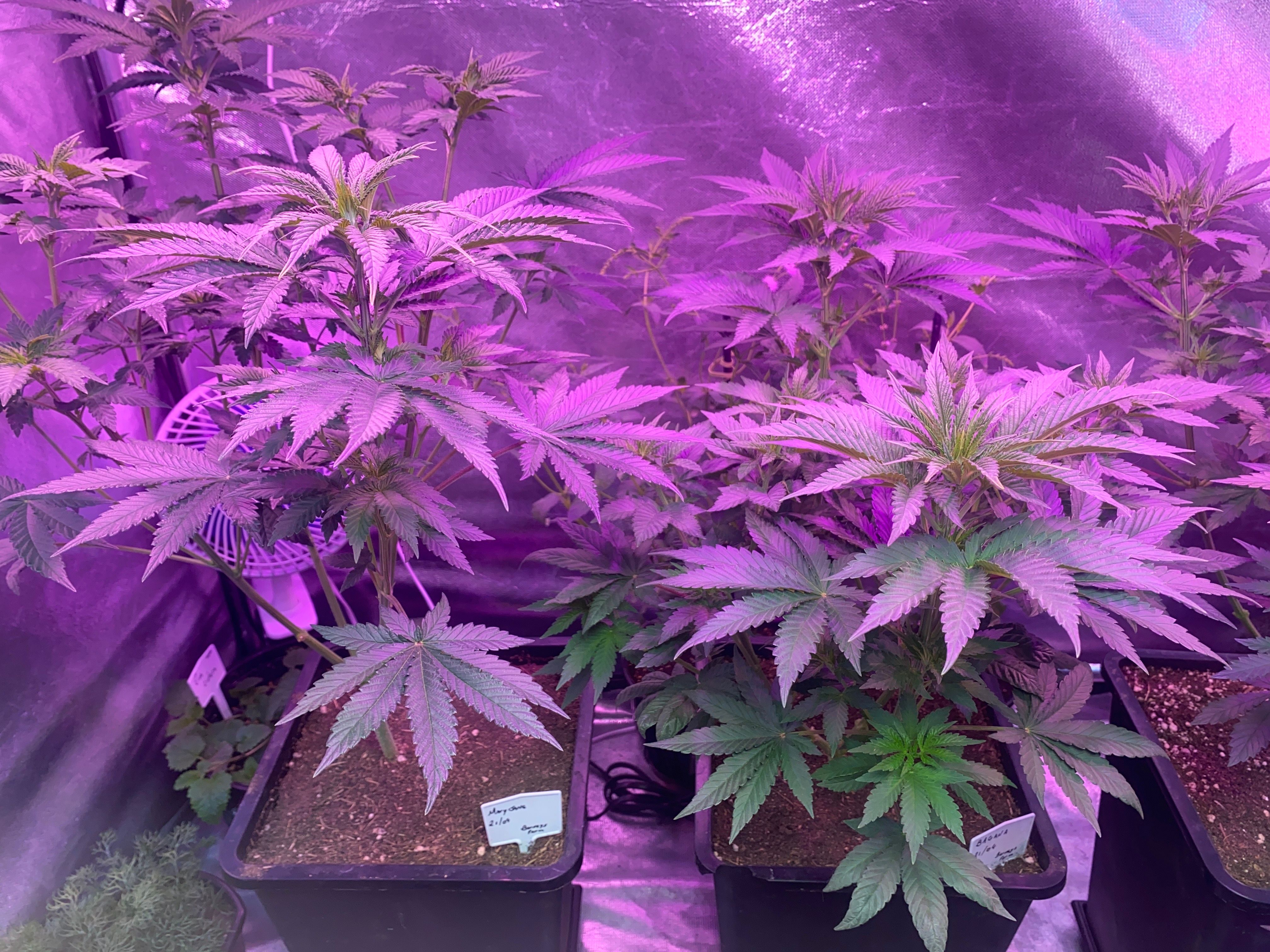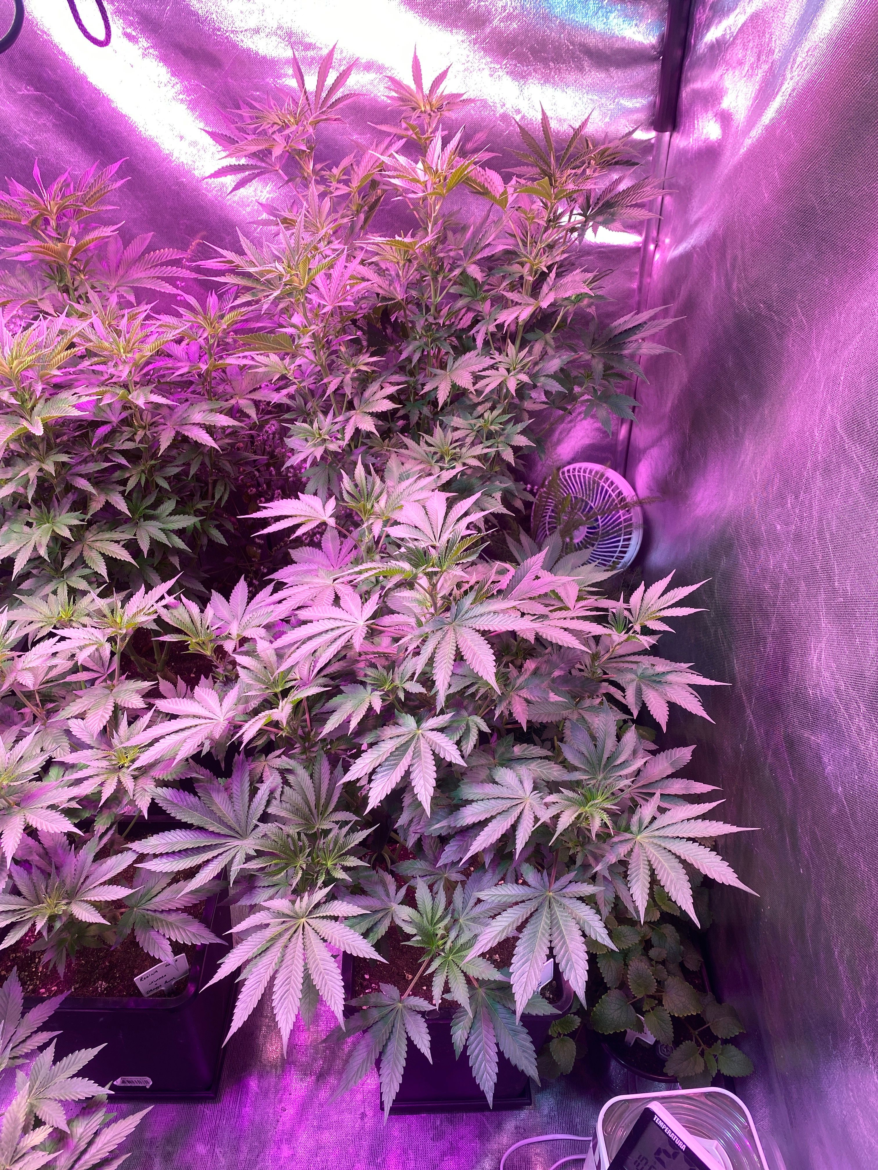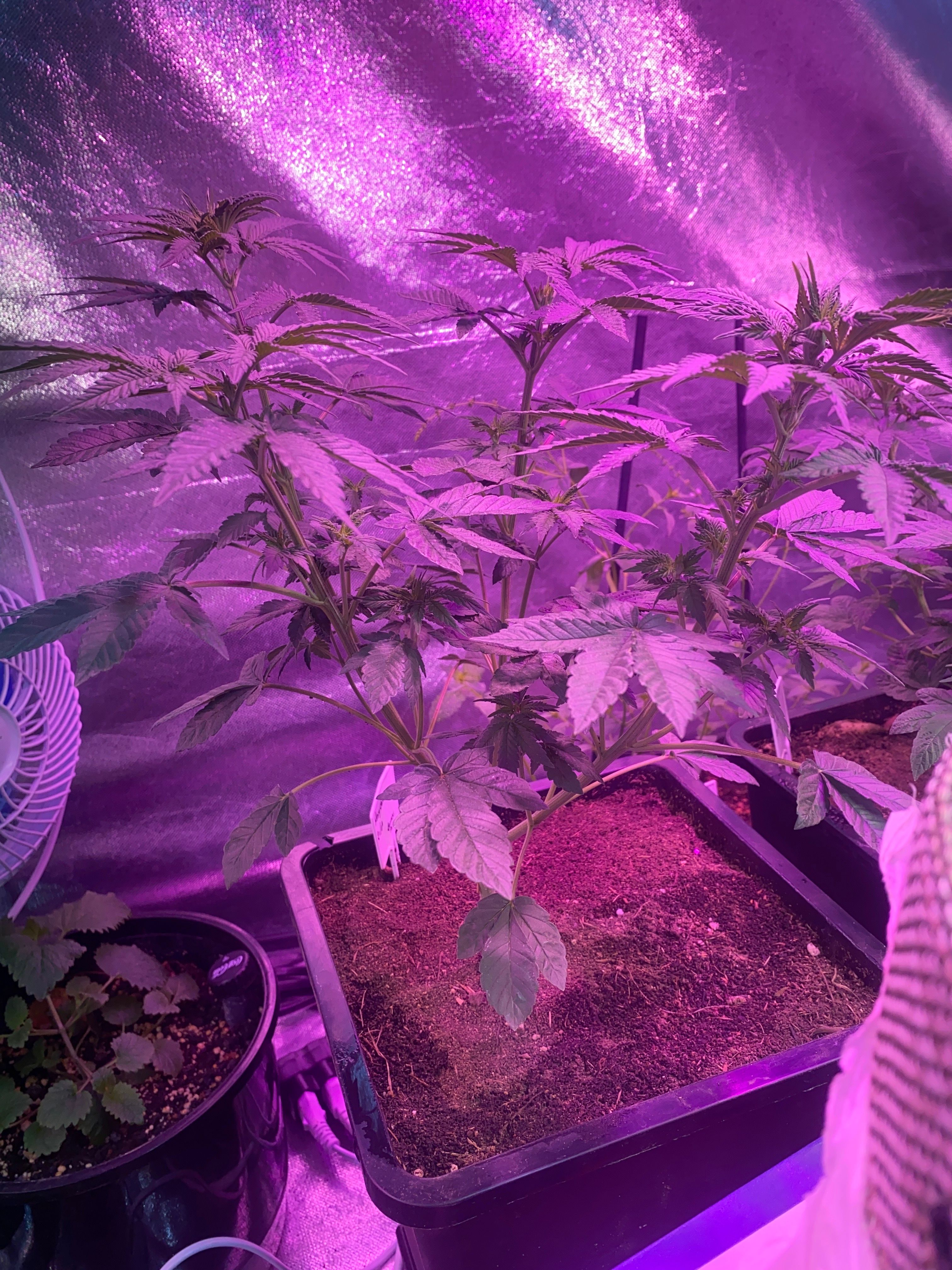 Plantas saudáveis. Amarelos indo pro roxo em decorrência da natureza da strain. Lindas e já apresentando cheiro bom.