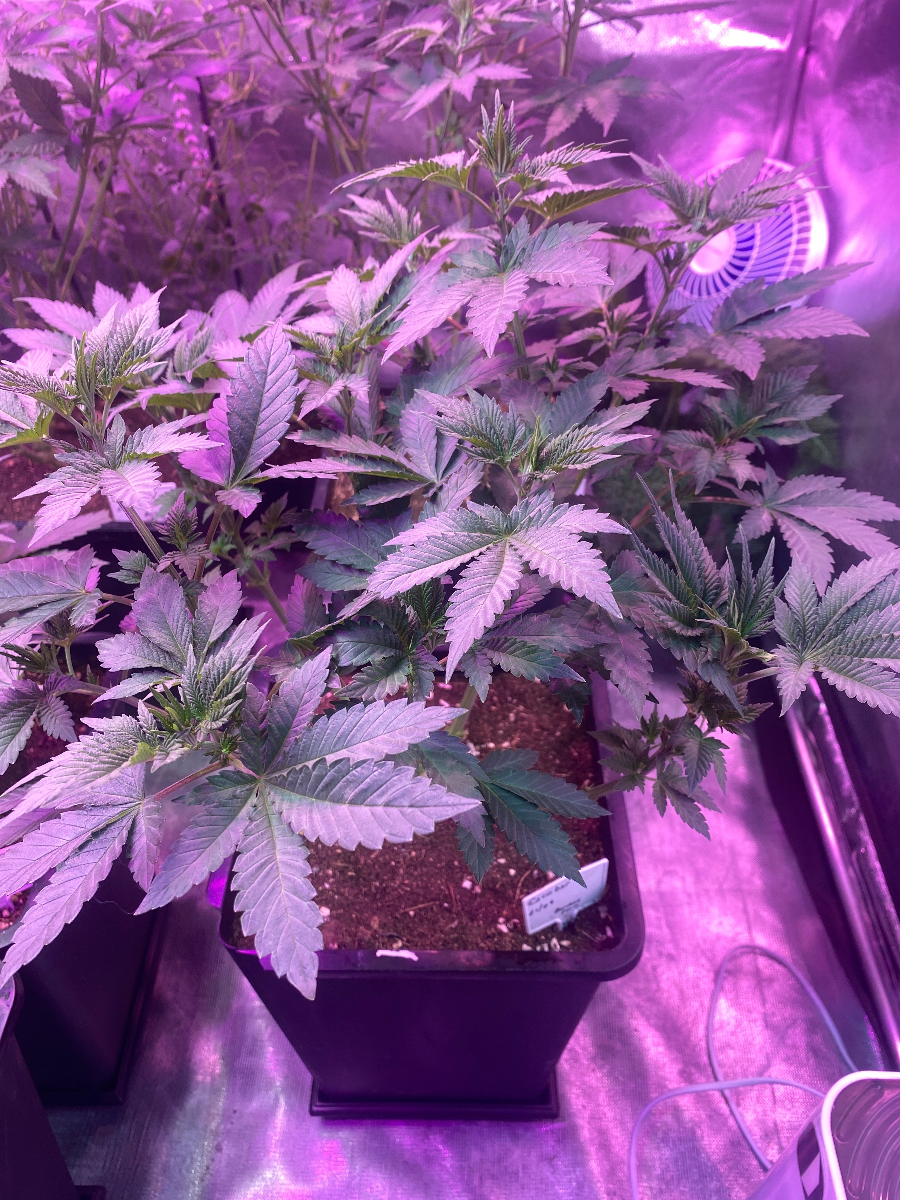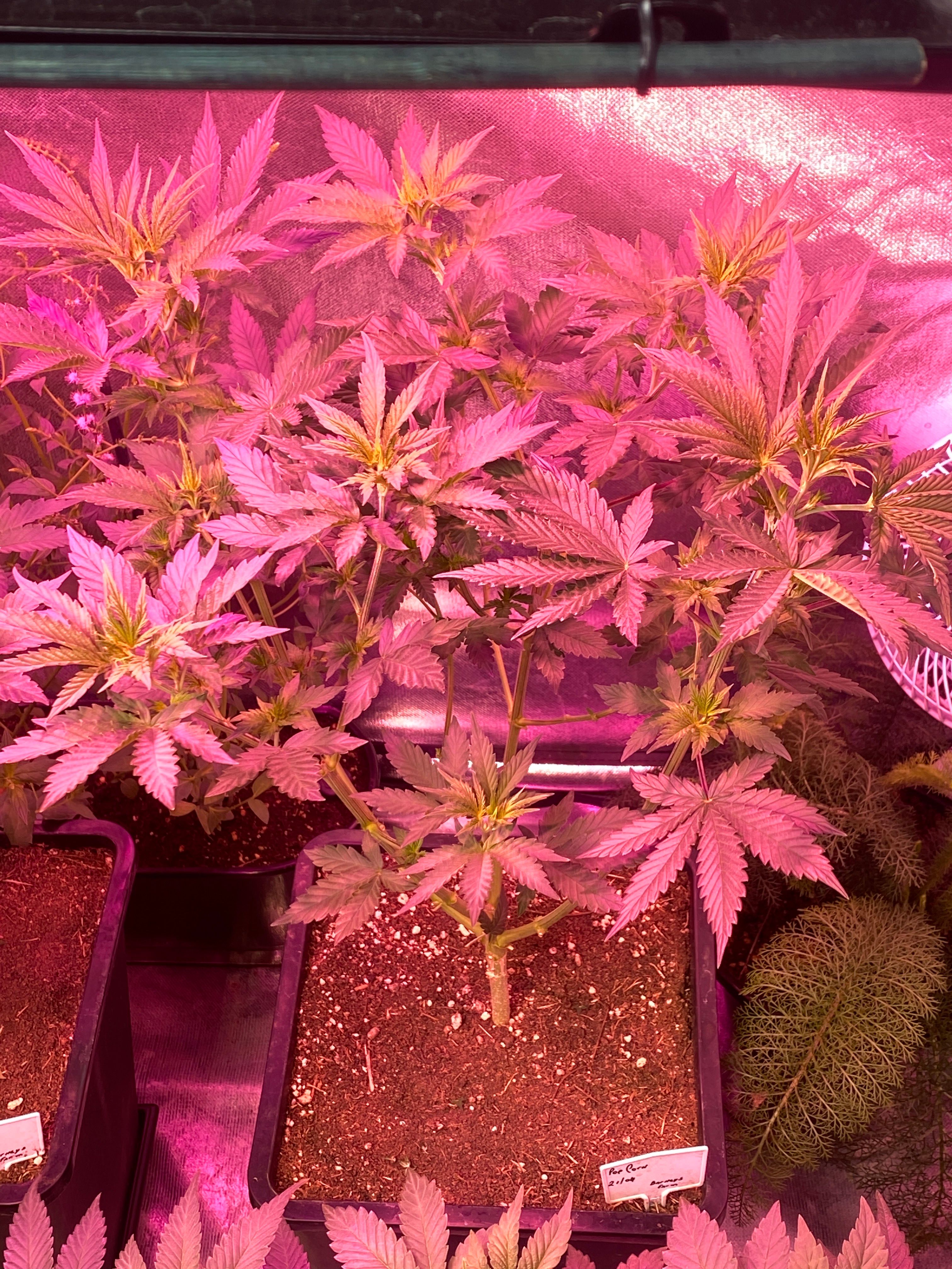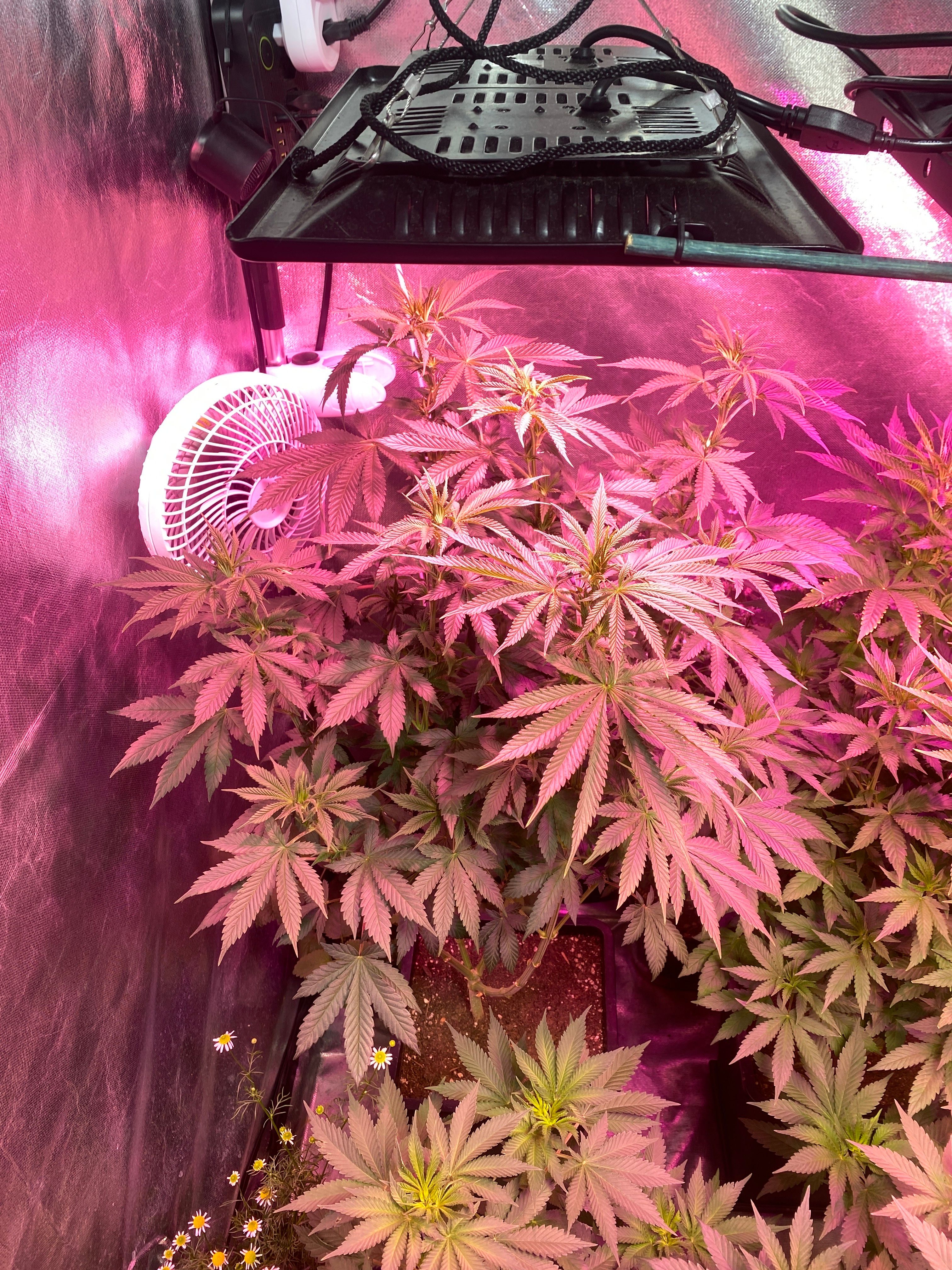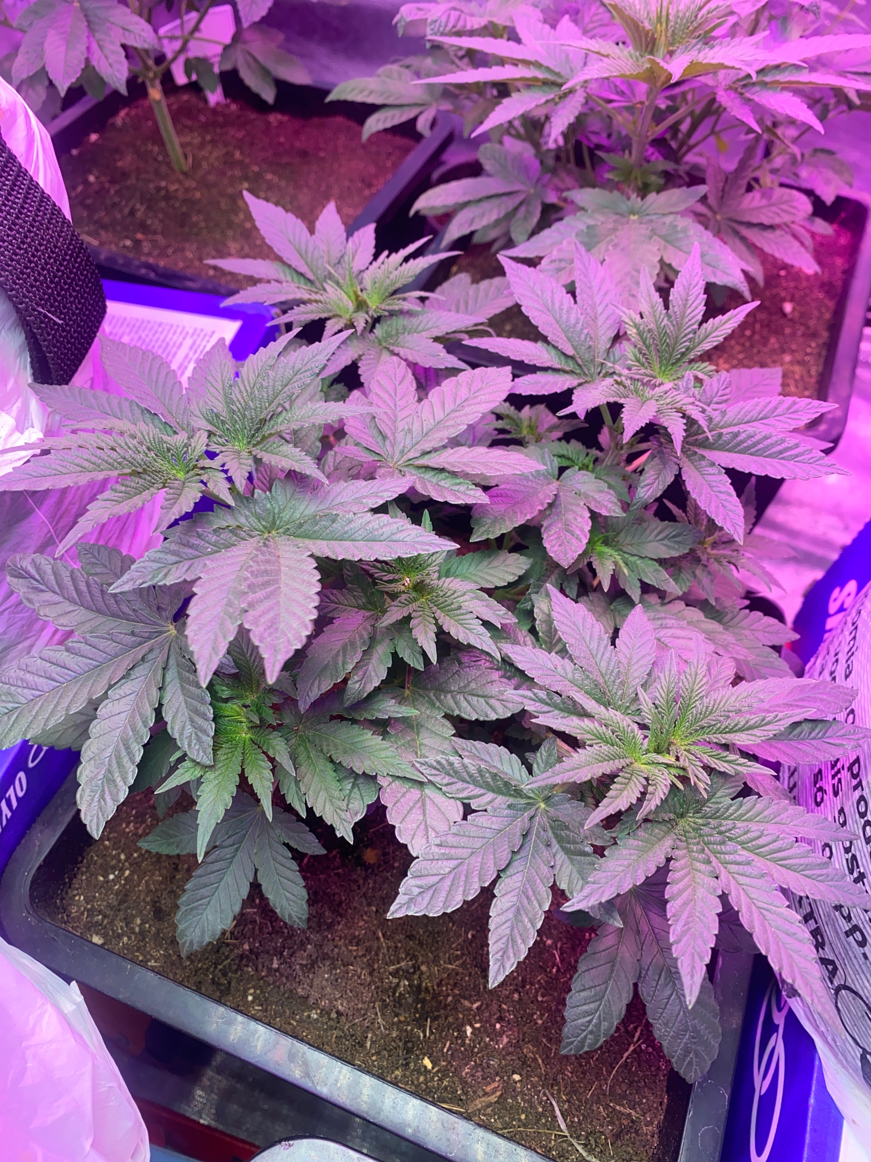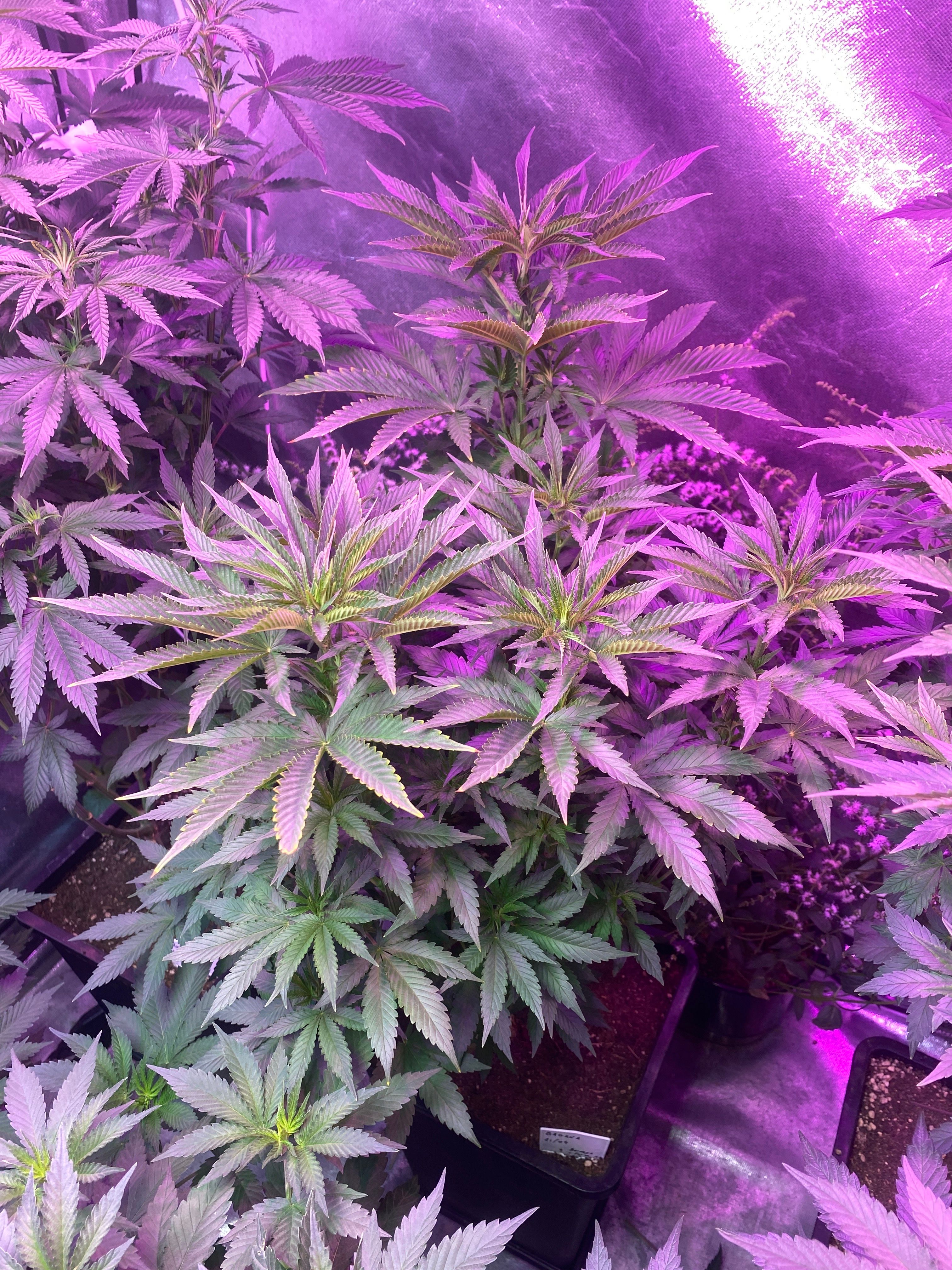 Plantas saudáveis. Amarelos indo pro roxo em decorrência da natureza da strain. Lindas e já apresentando cheiro bom.