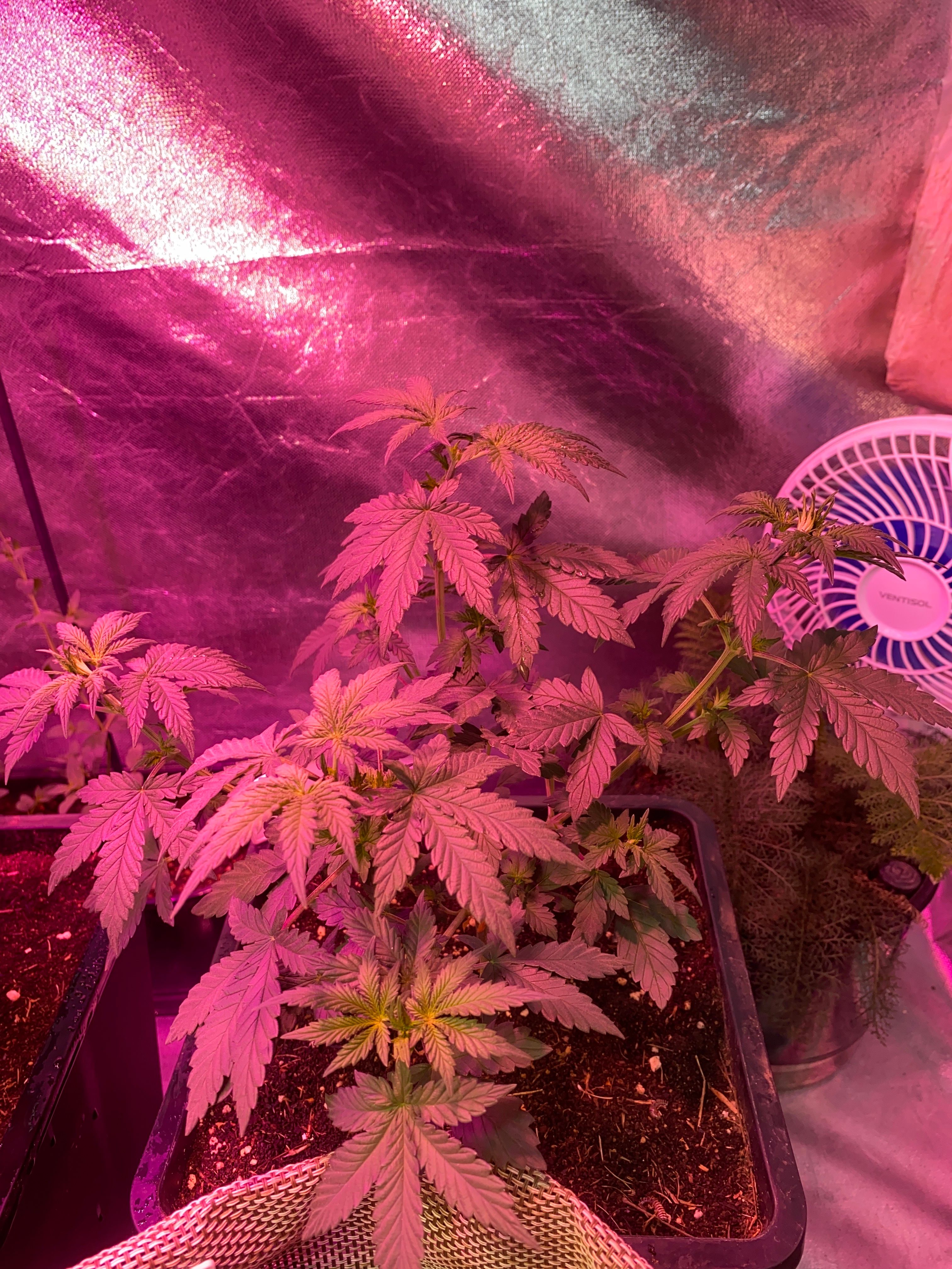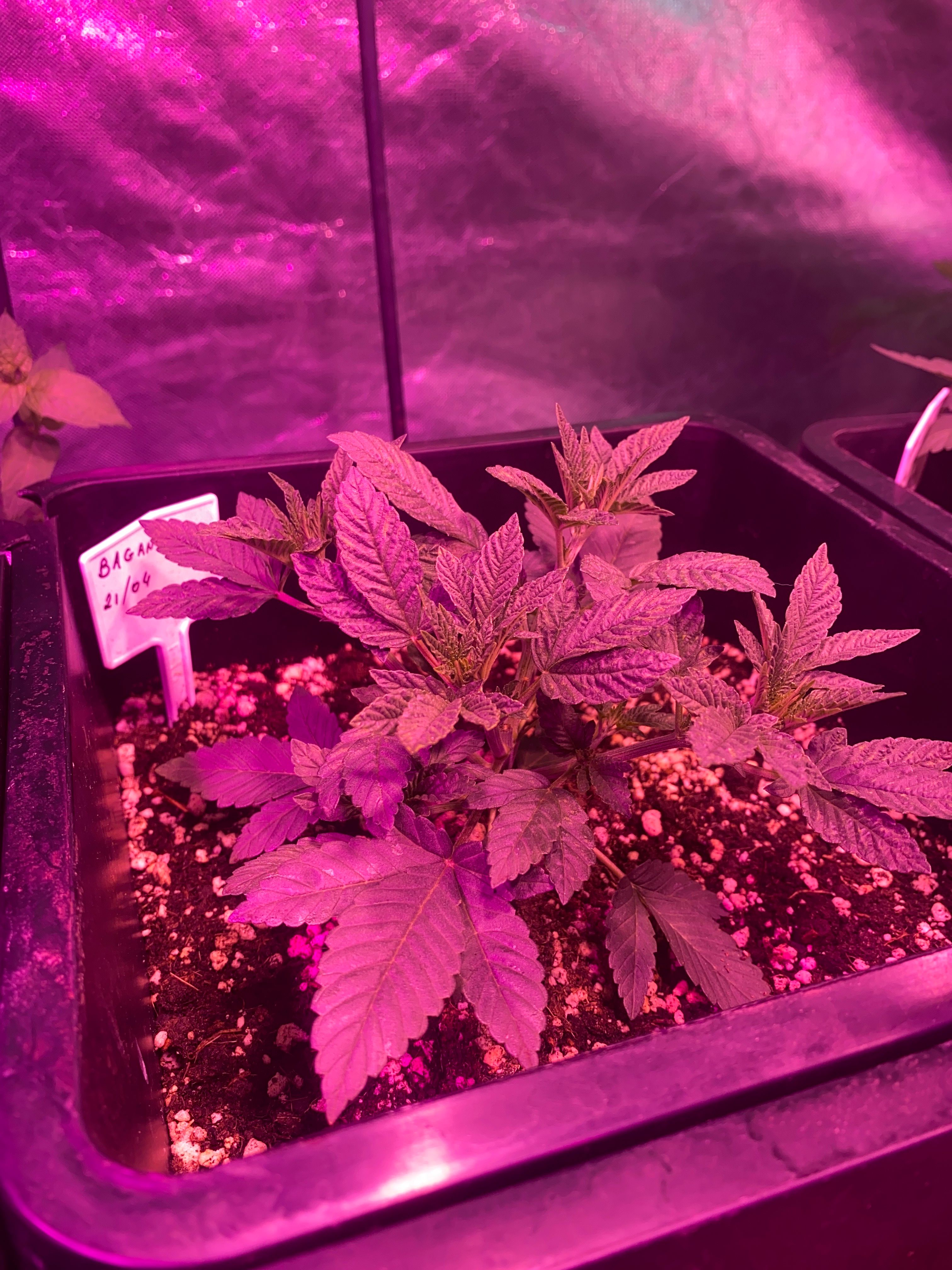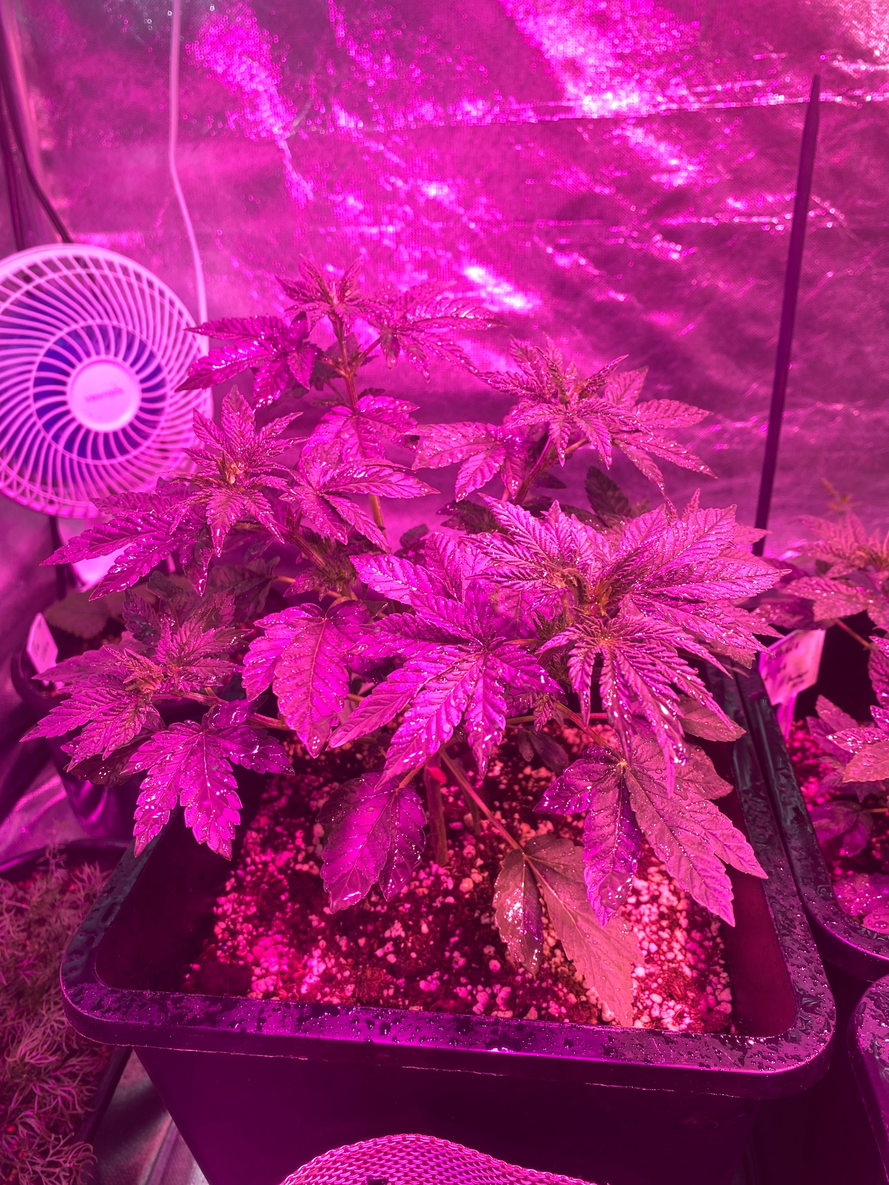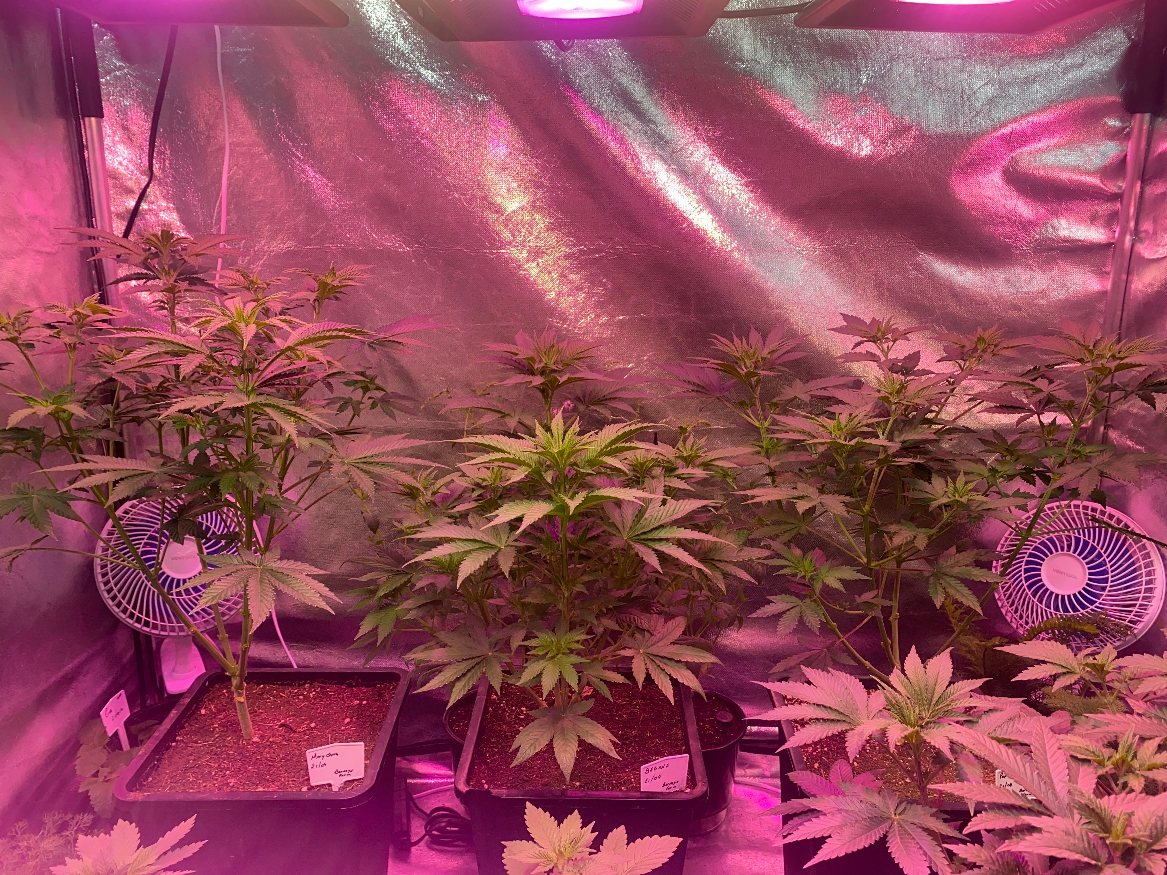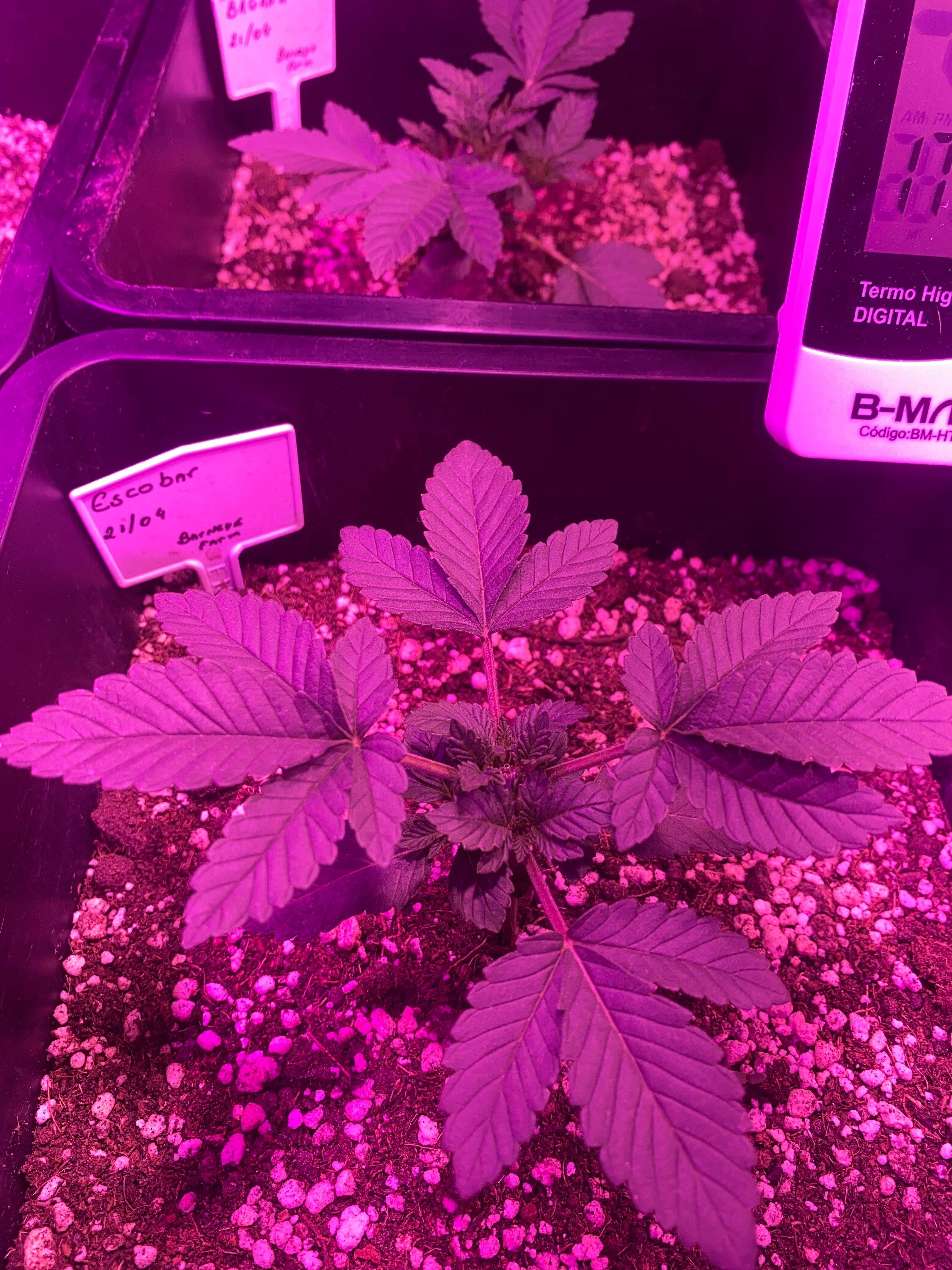 Plantas saudáveis. Amarelos indo pro roxo em decorrência da natureza da strain. Lindas e já apresentando cheiro bom.