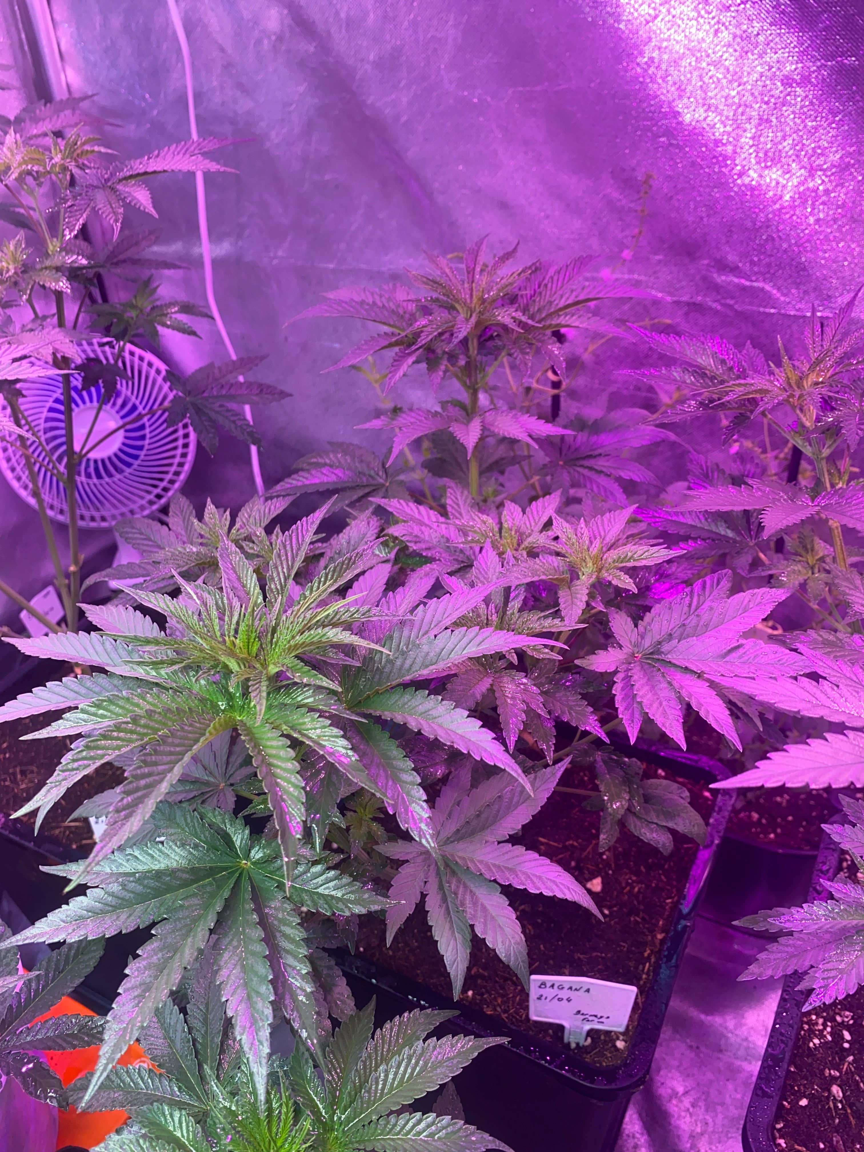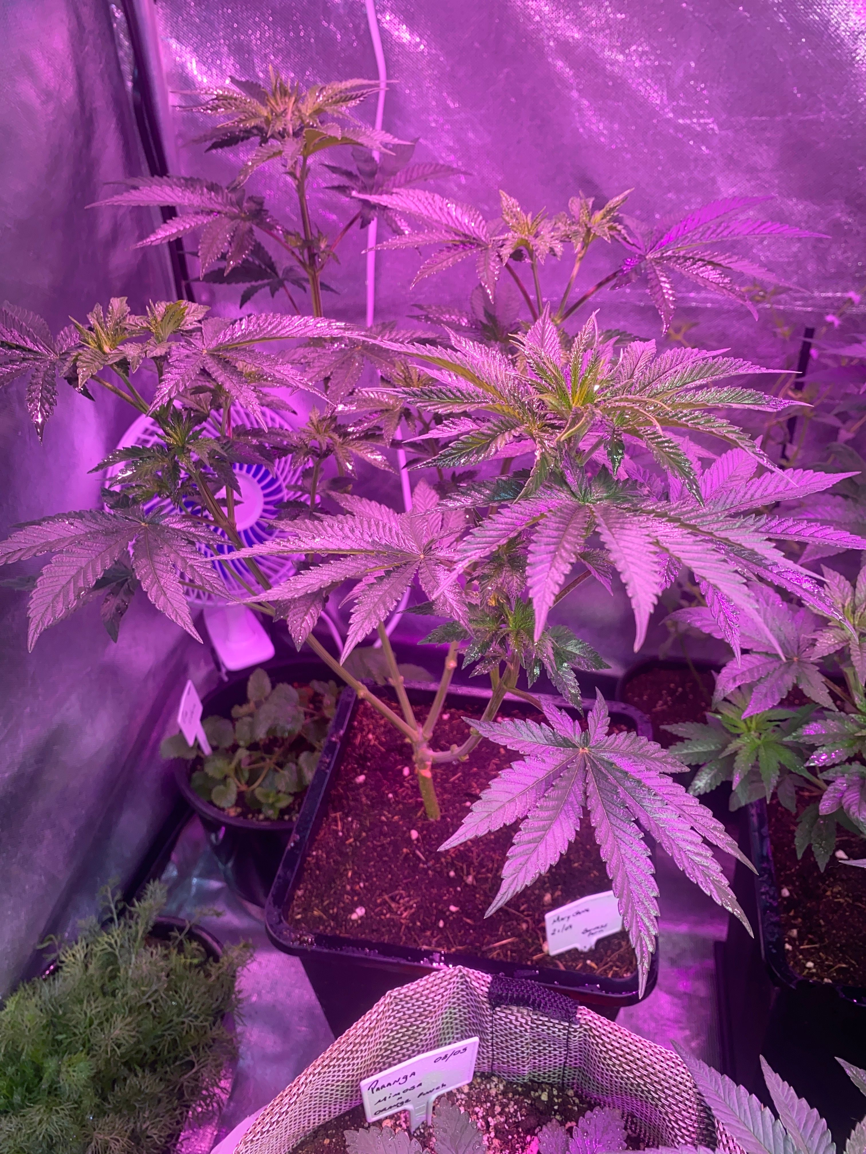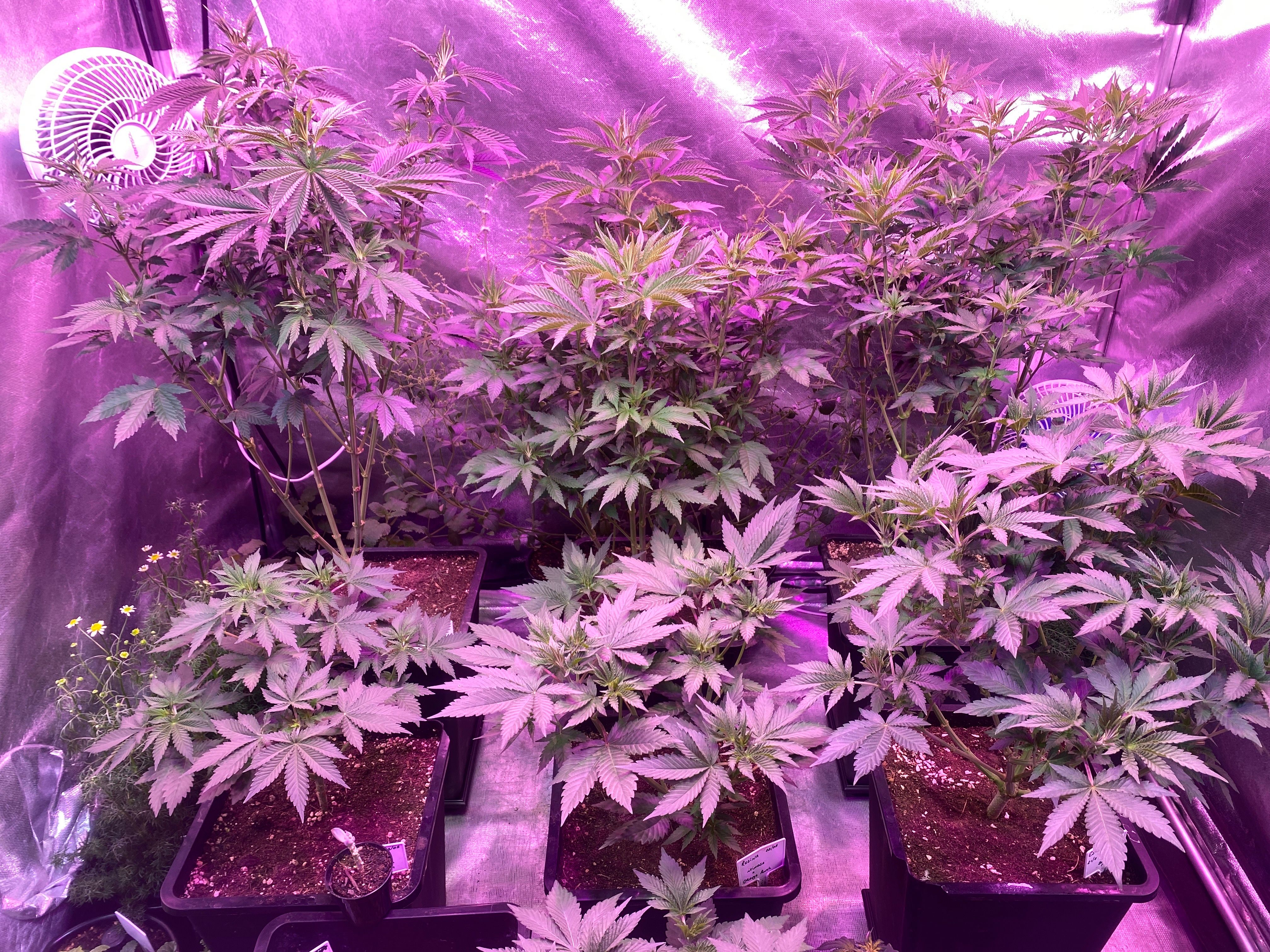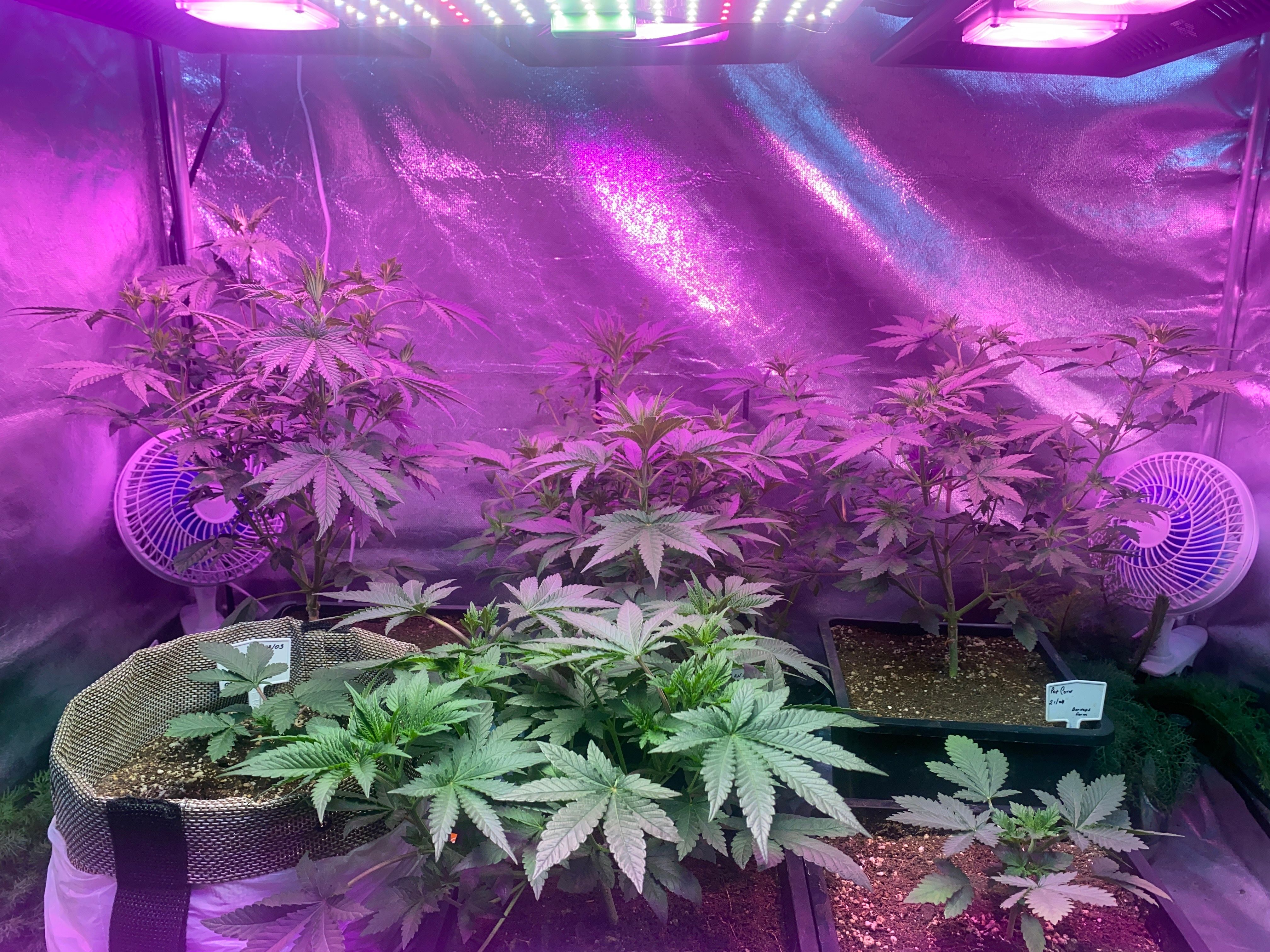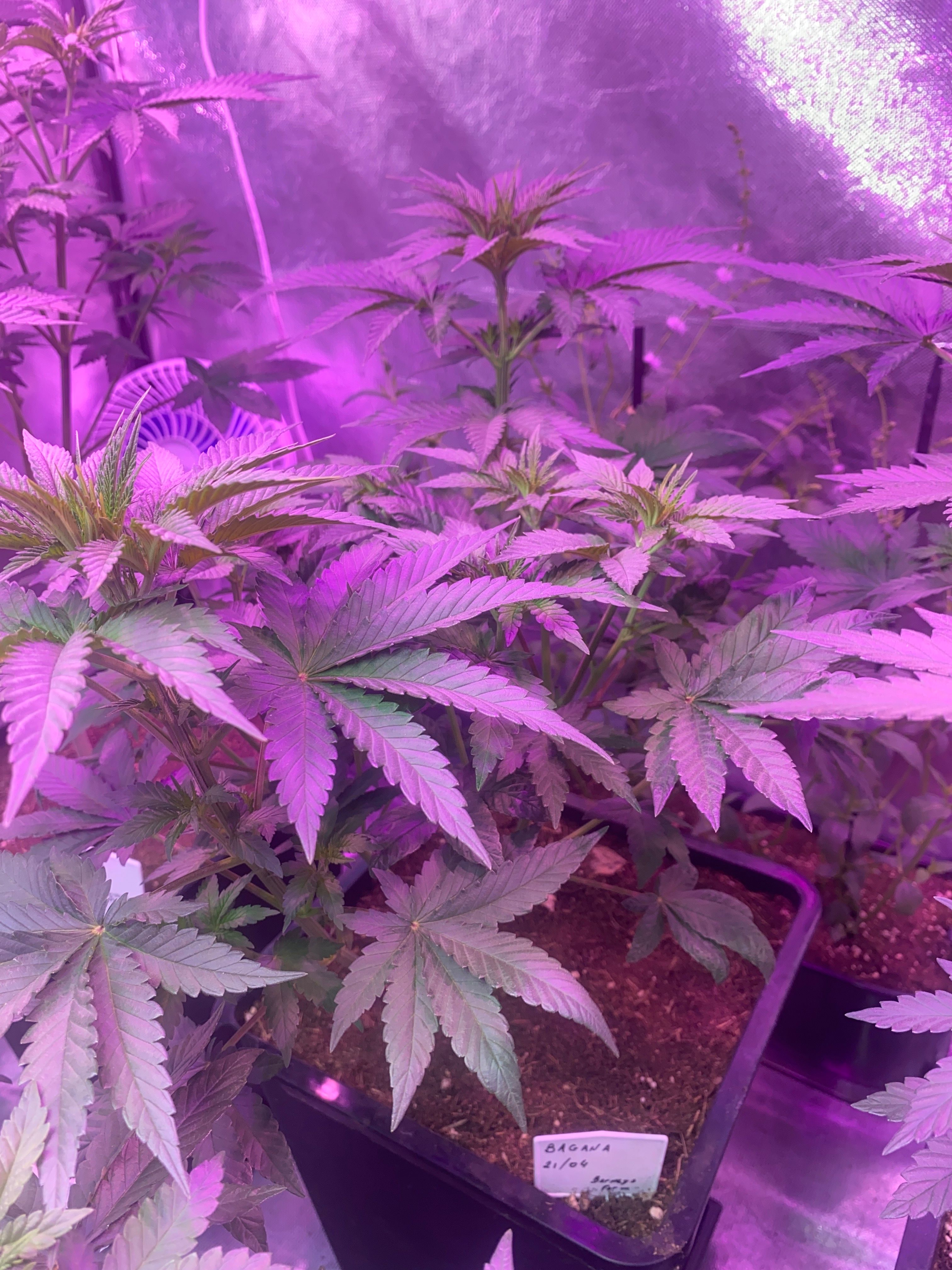 Plantas saudáveis. Amarelos indo pro roxo em decorrência da natureza da strain. Lindas e já apresentando cheiro bom.