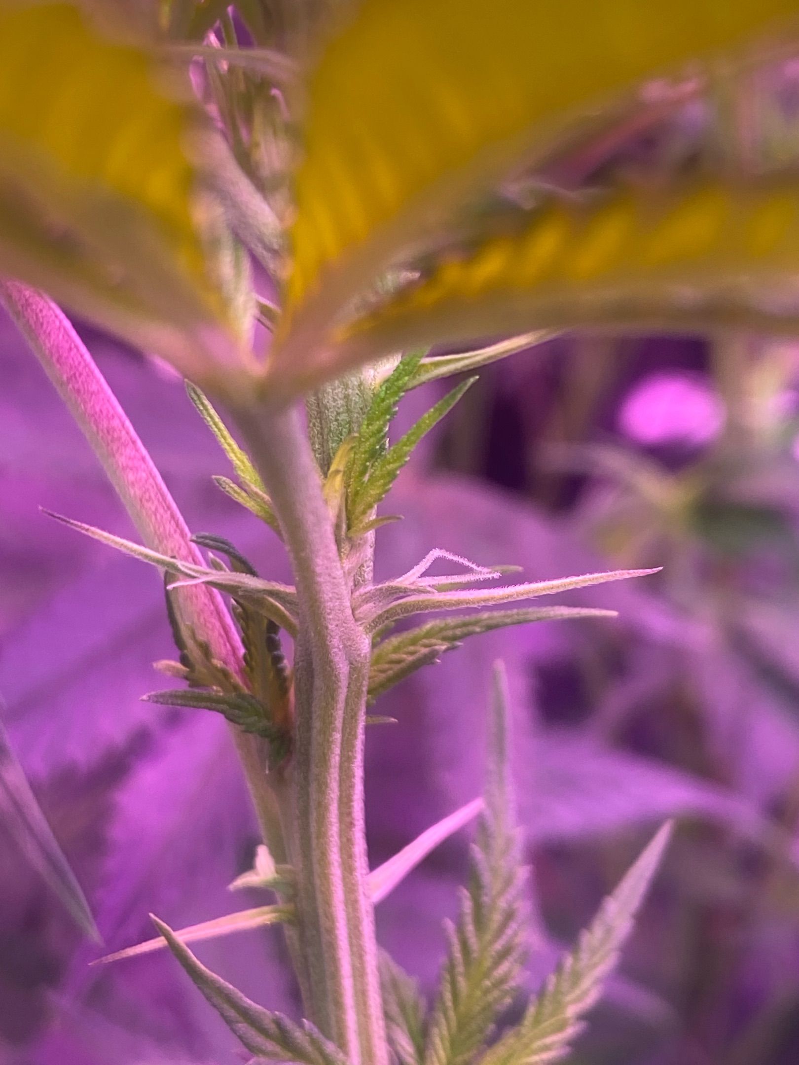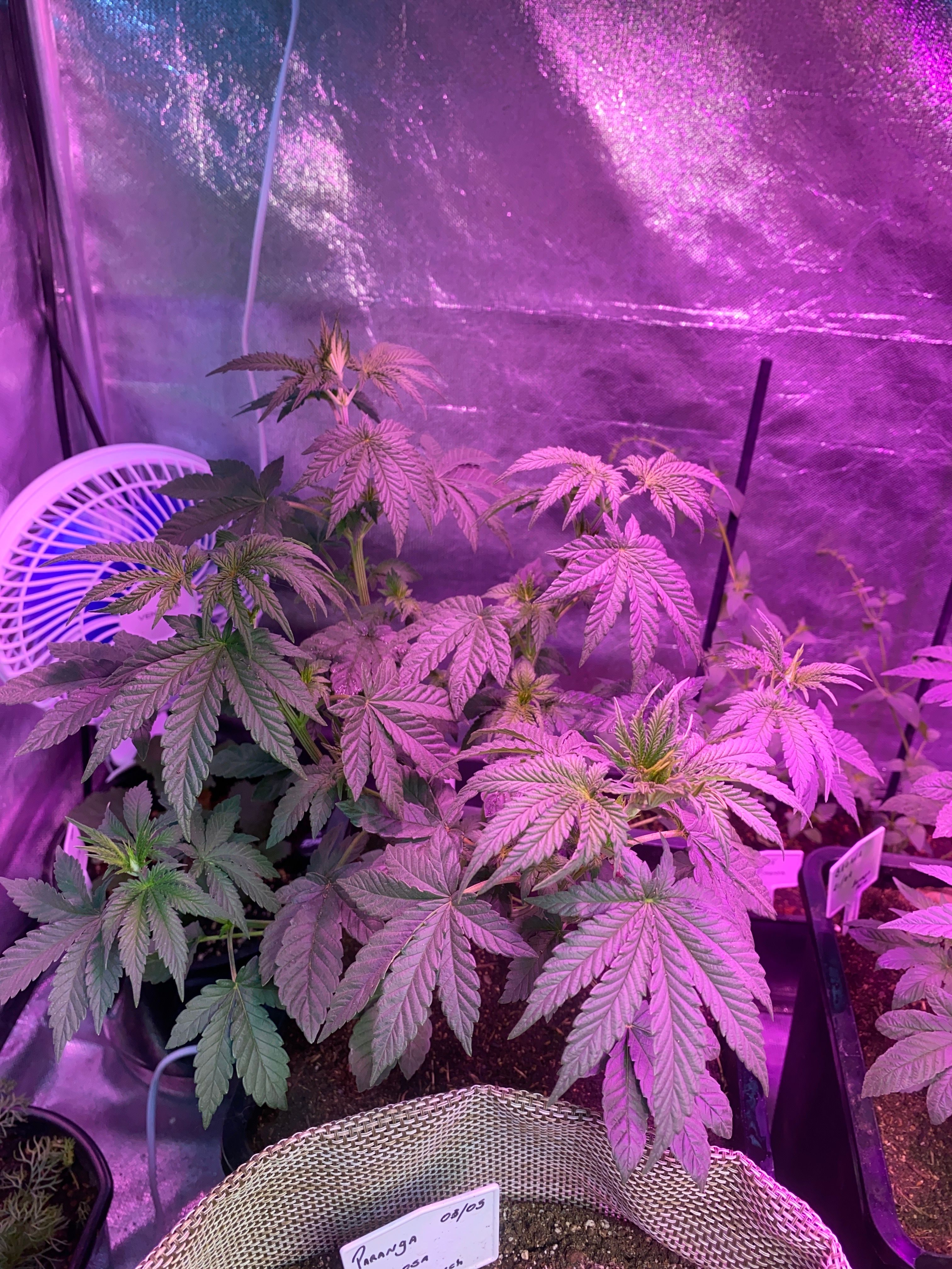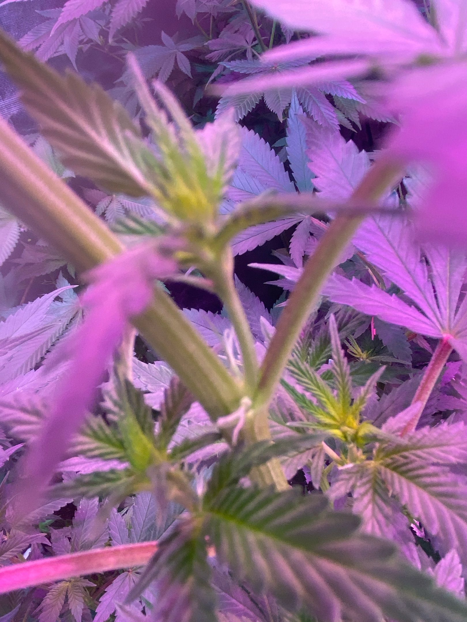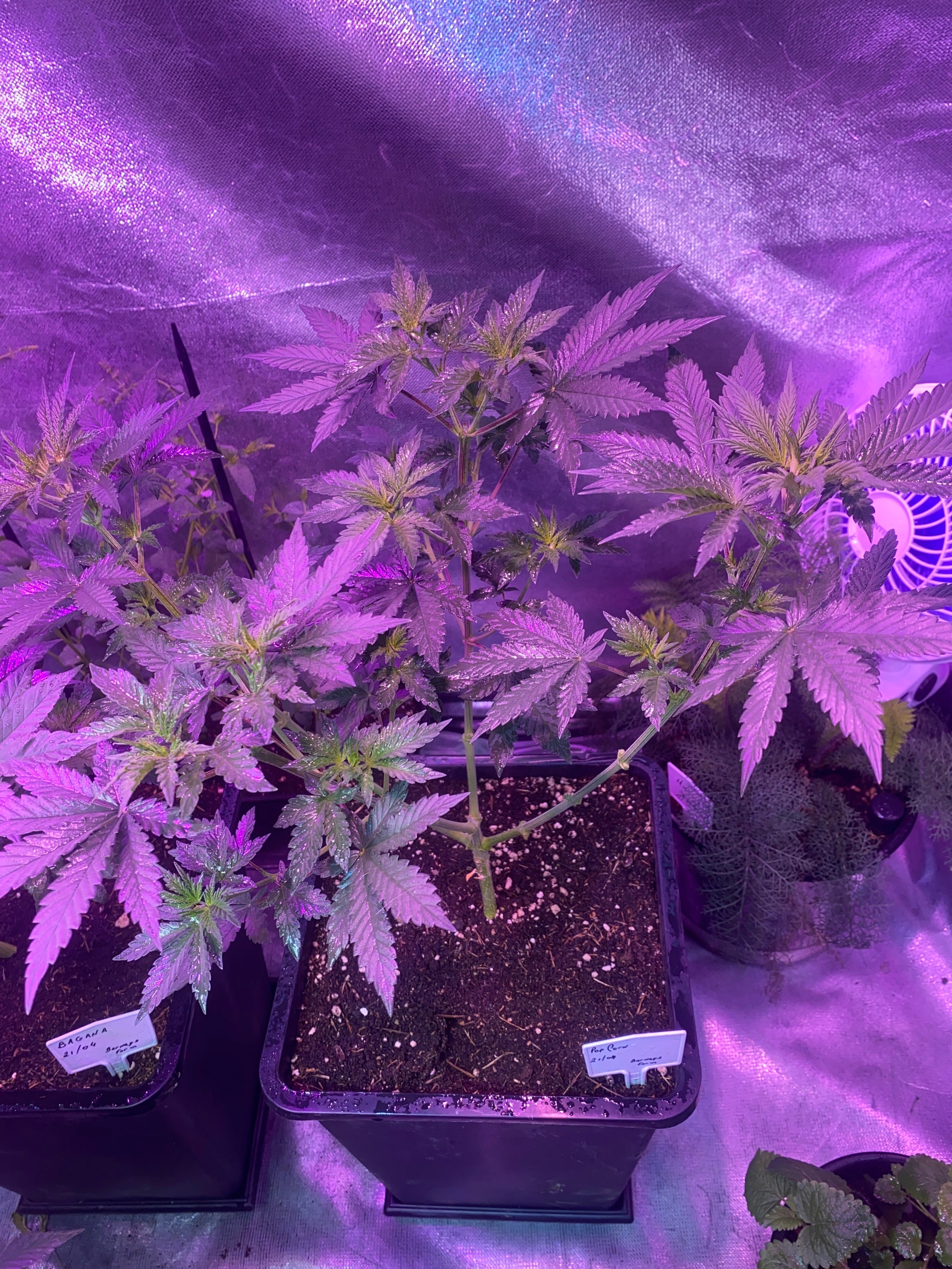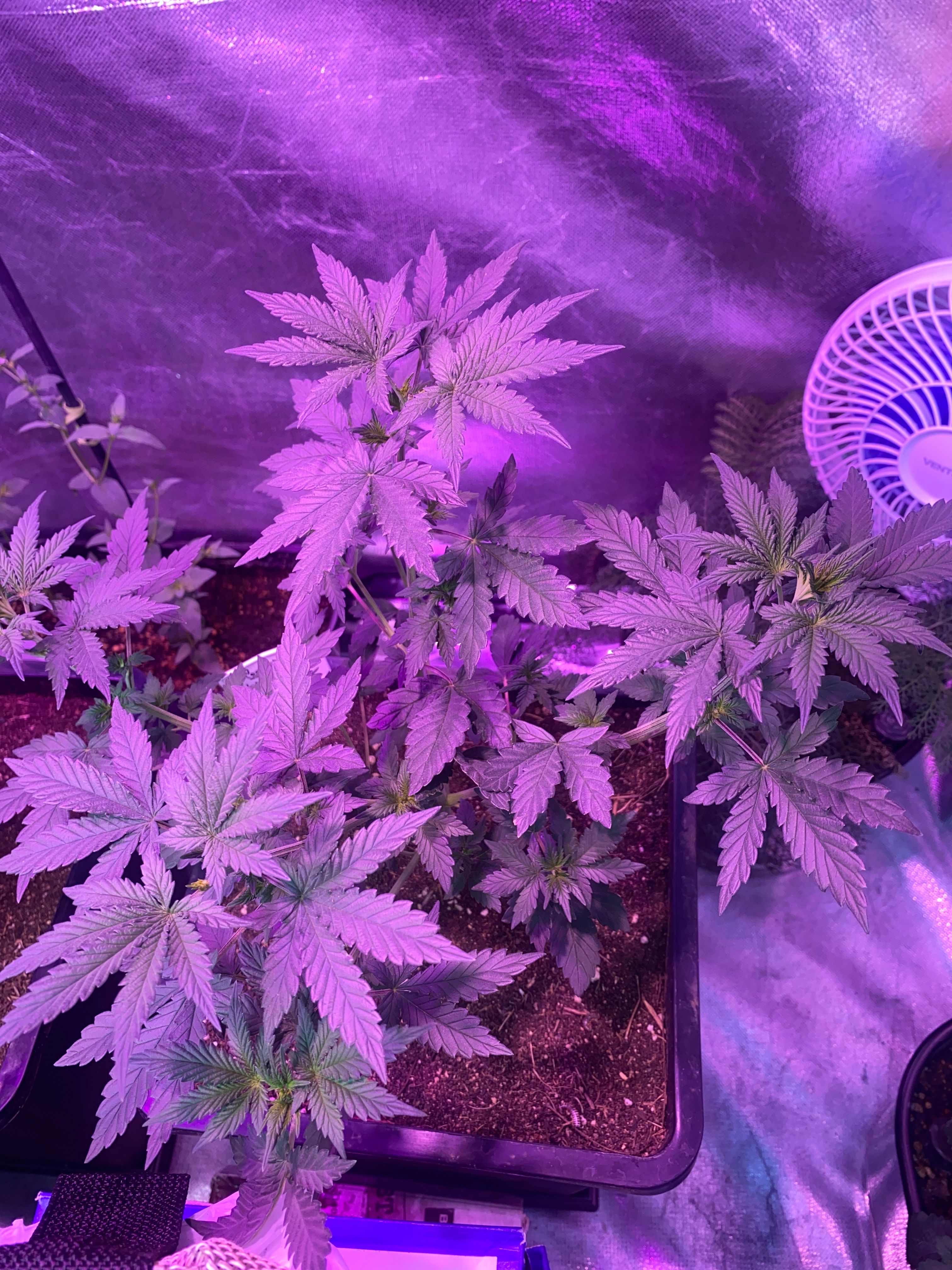 Plantas saudáveis. Amarelos indo pro roxo em decorrência da natureza da strain. Lindas e já apresentando cheiro bom.