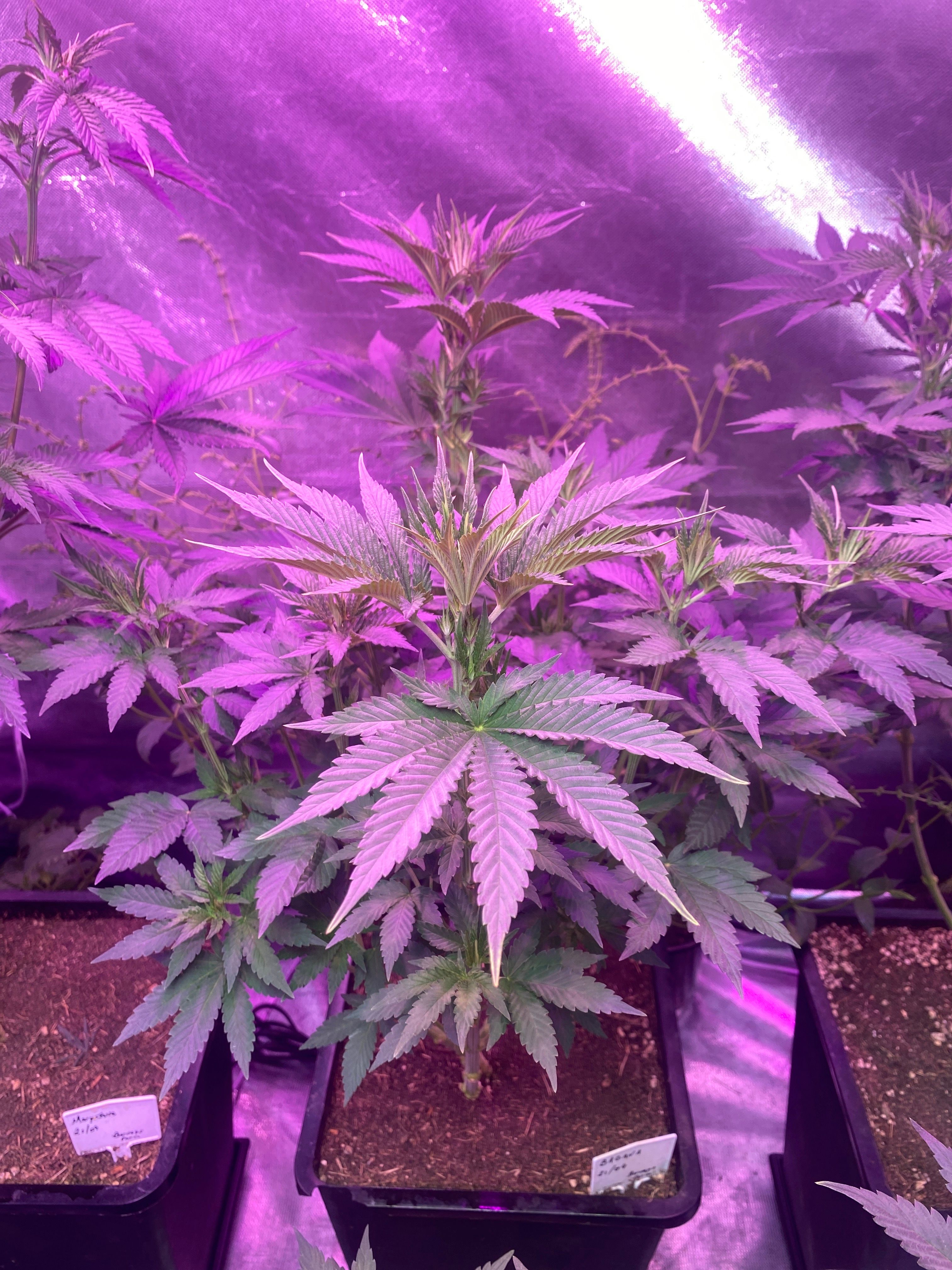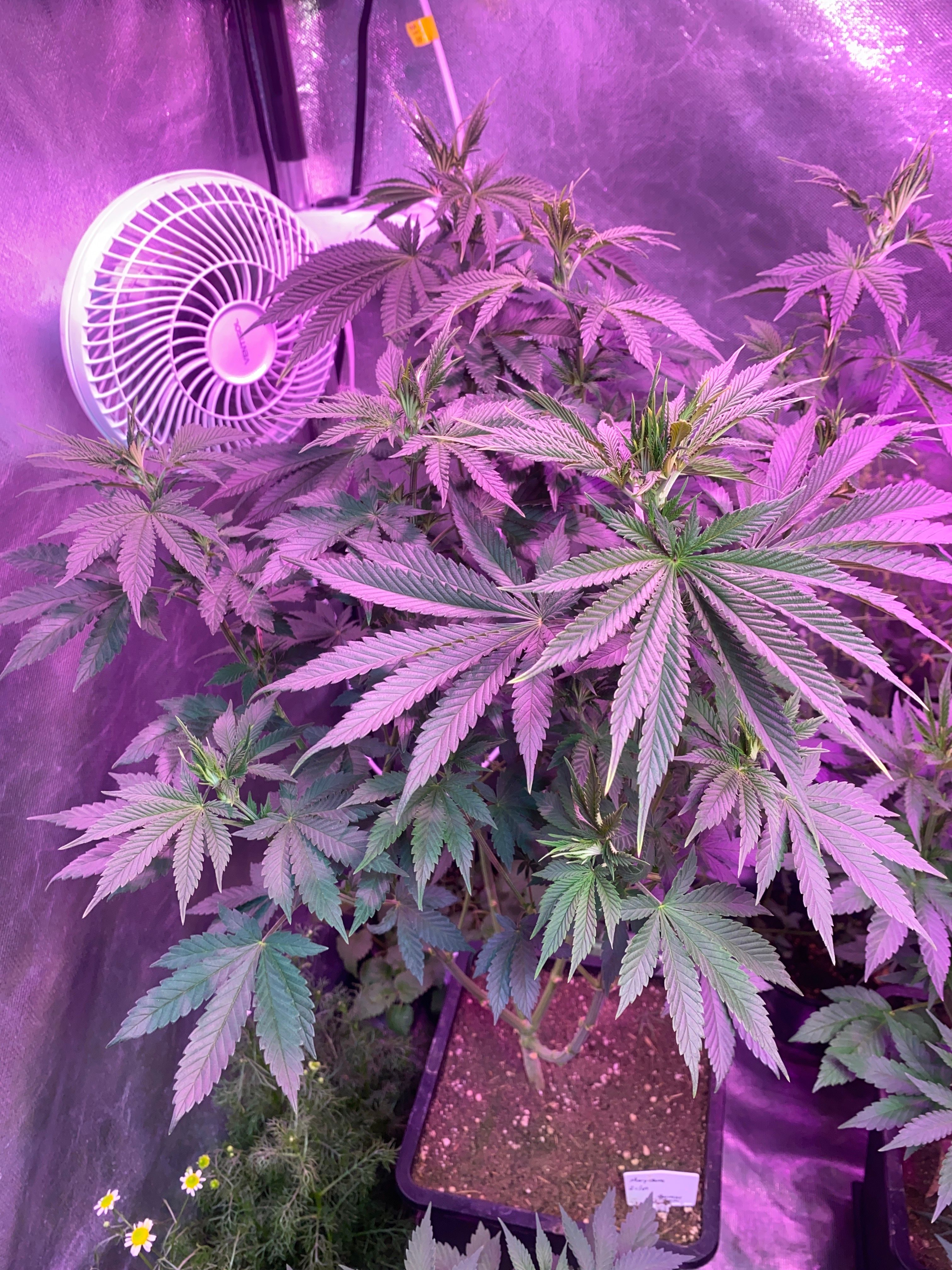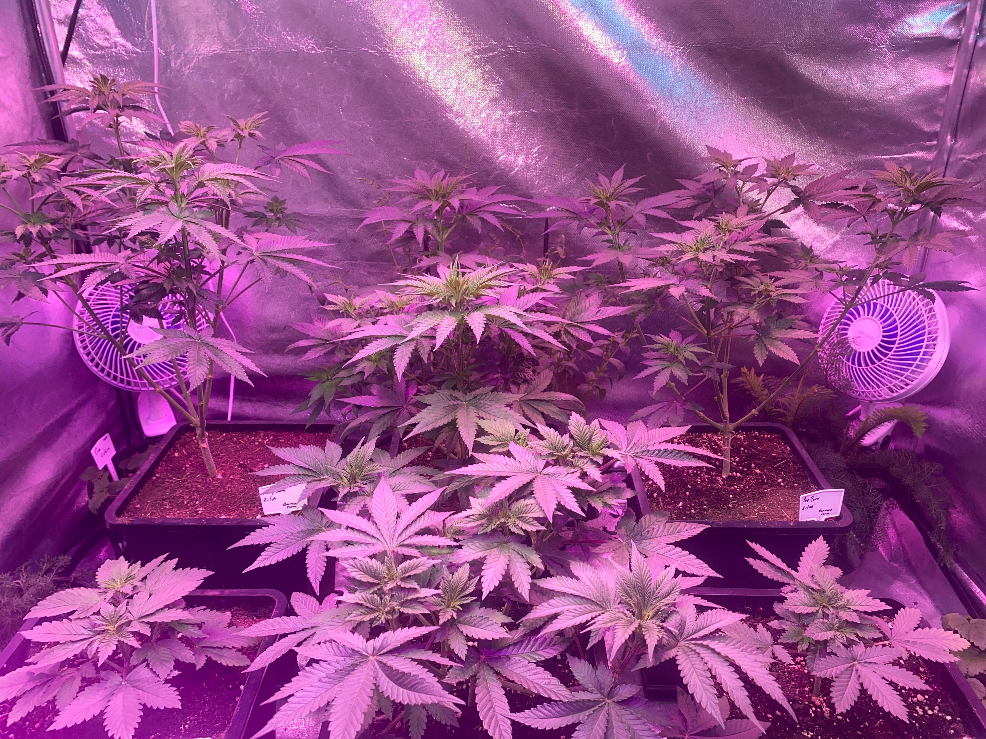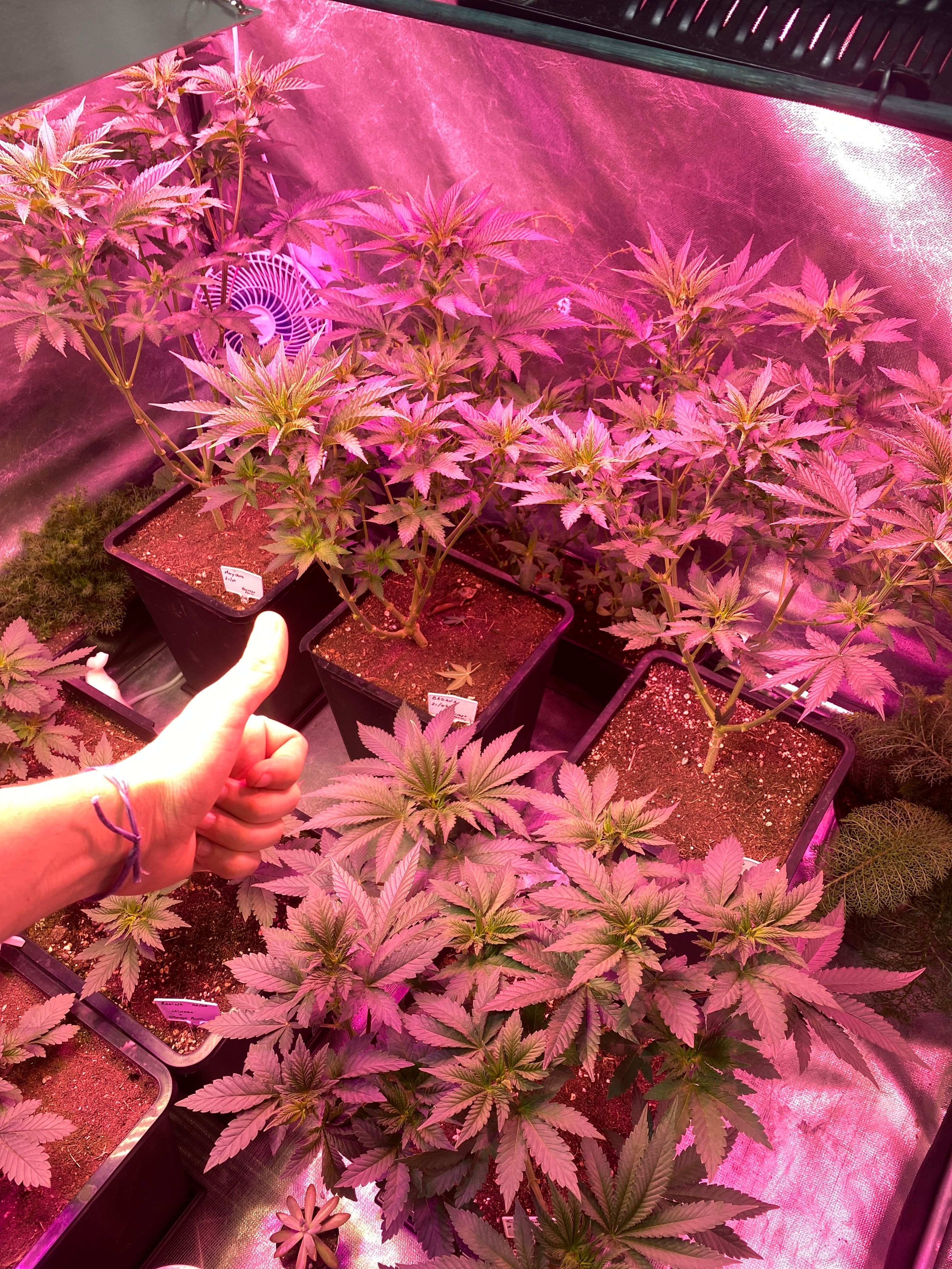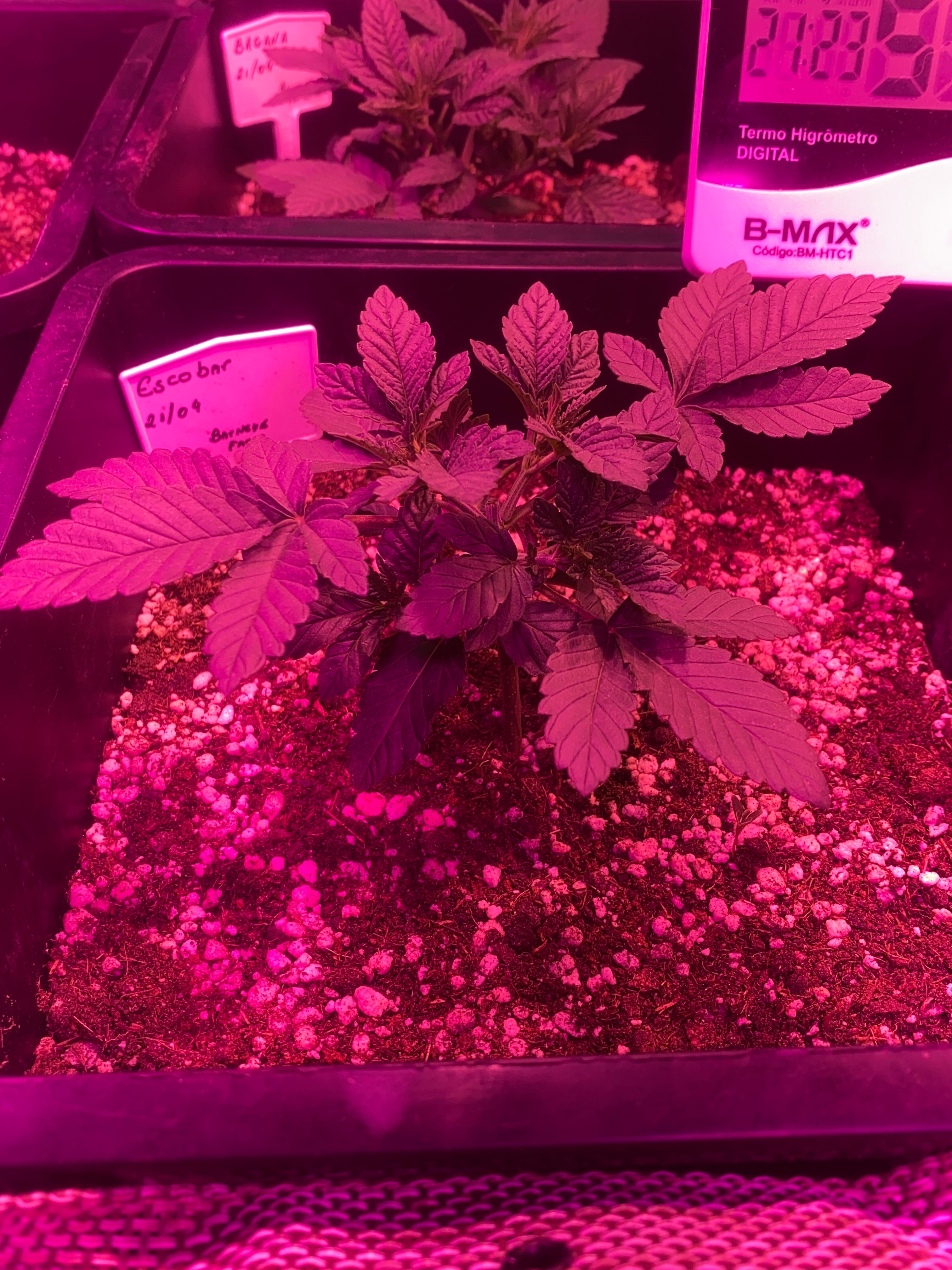 Plantas saudáveis. Amarelos indo pro roxo em decorrência da natureza da strain. Lindas e já apresentando cheiro bom.
