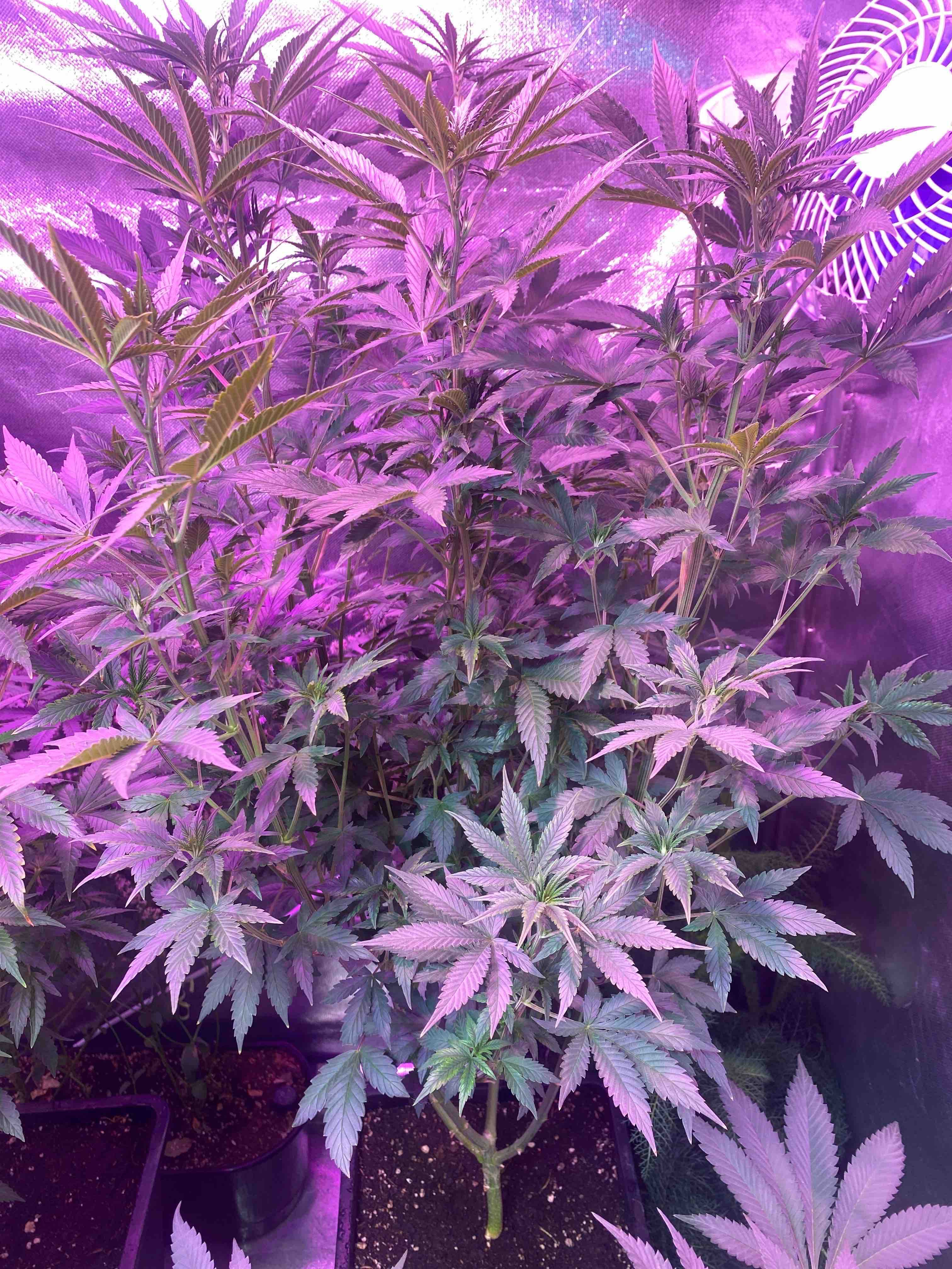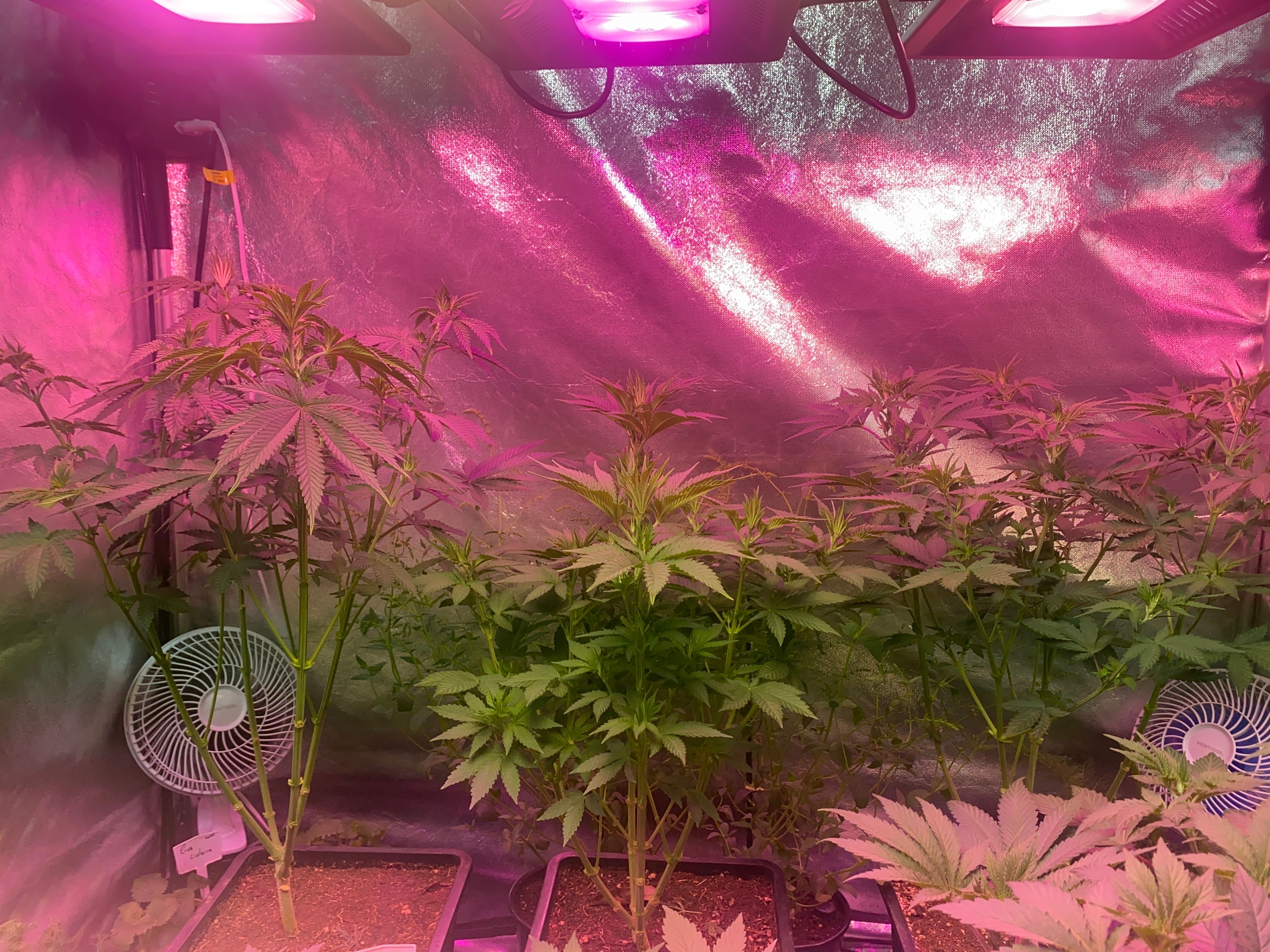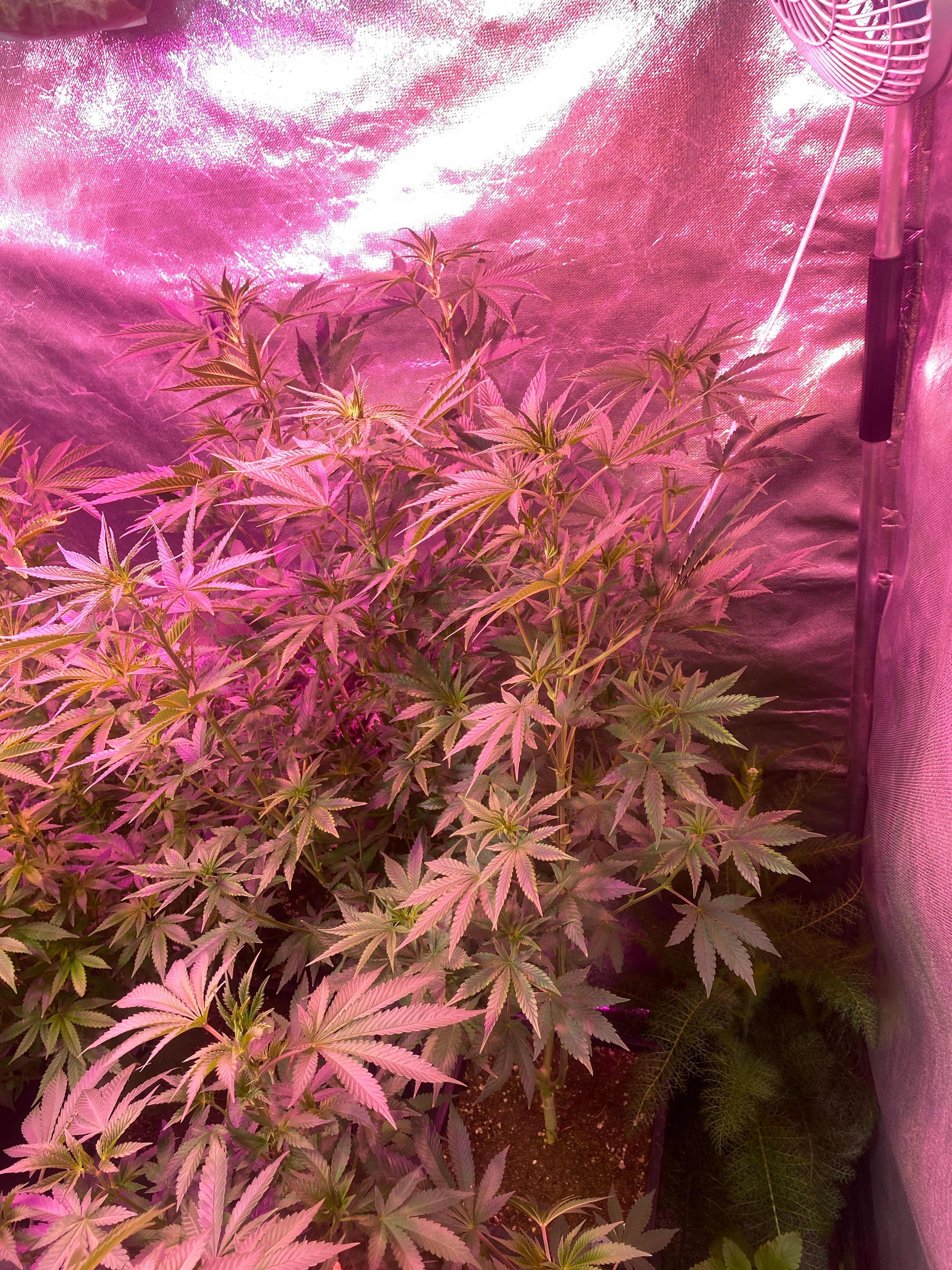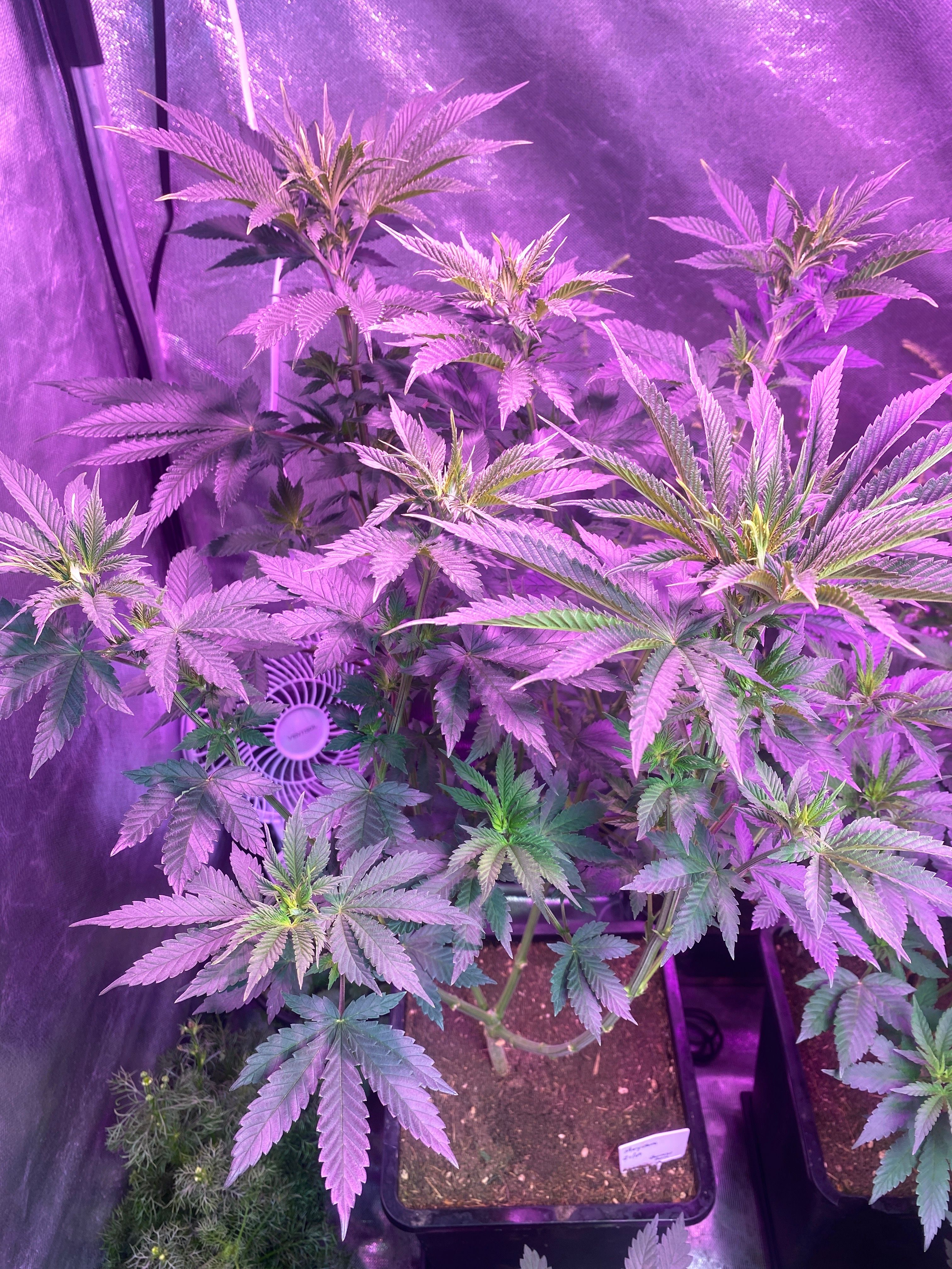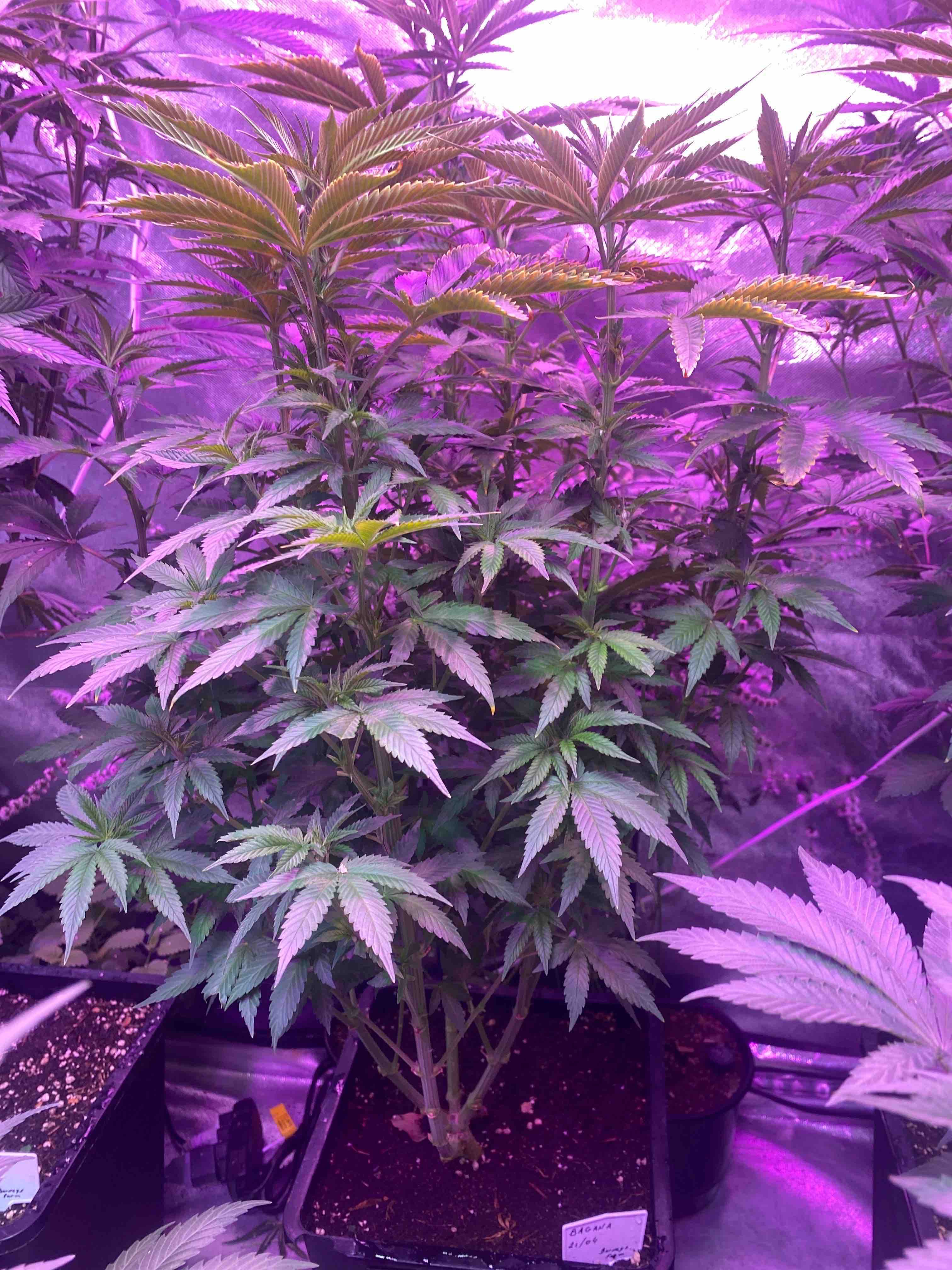 Plantas saudáveis. Amarelos indo pro roxo em decorrência da natureza da strain. Lindas e já apresentando cheiro bom.