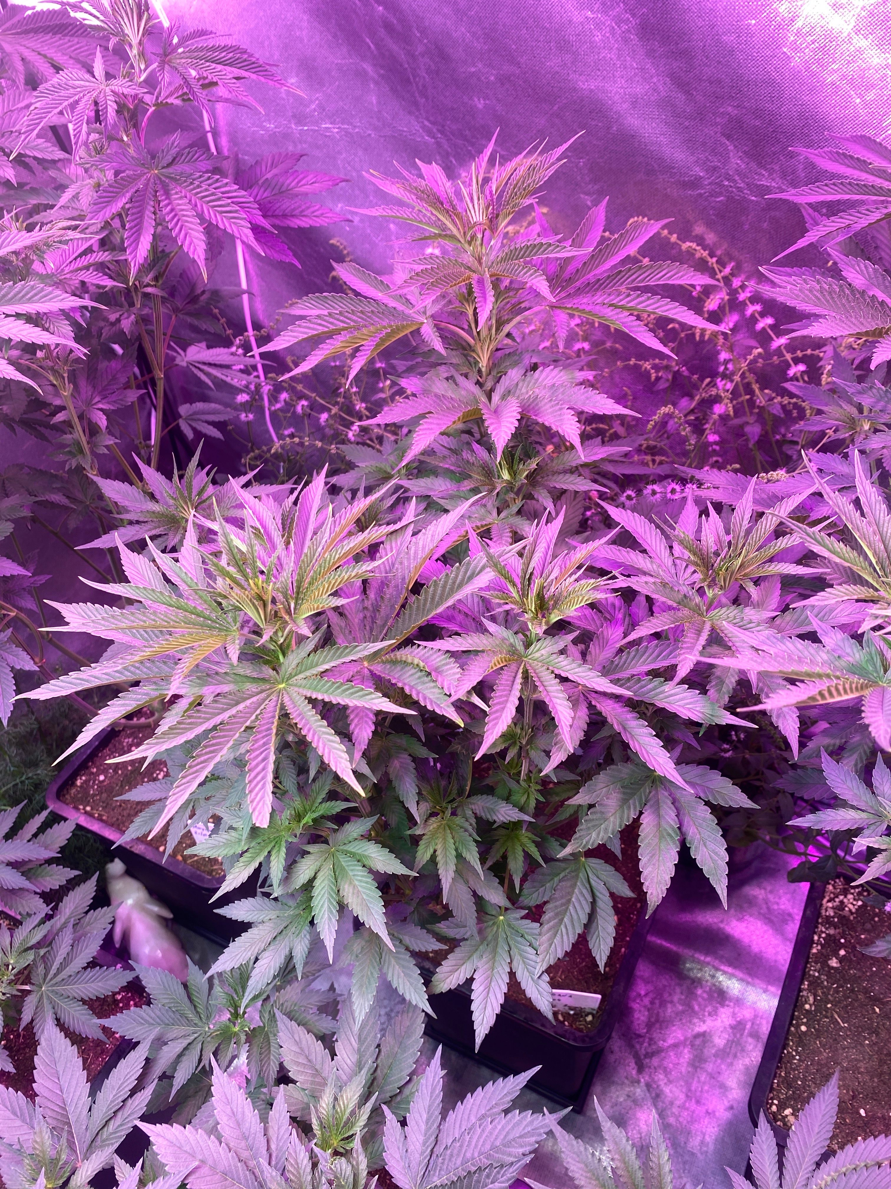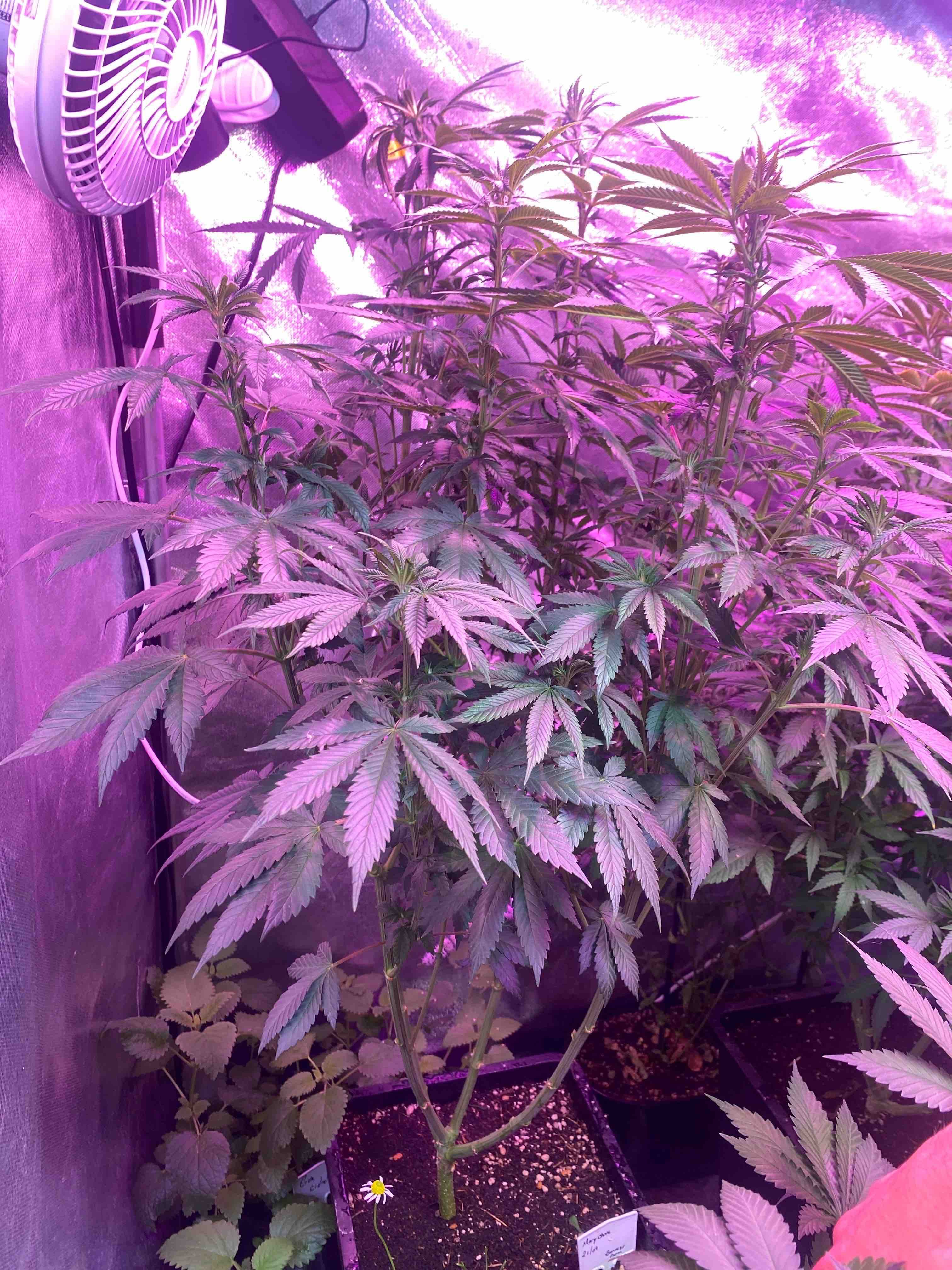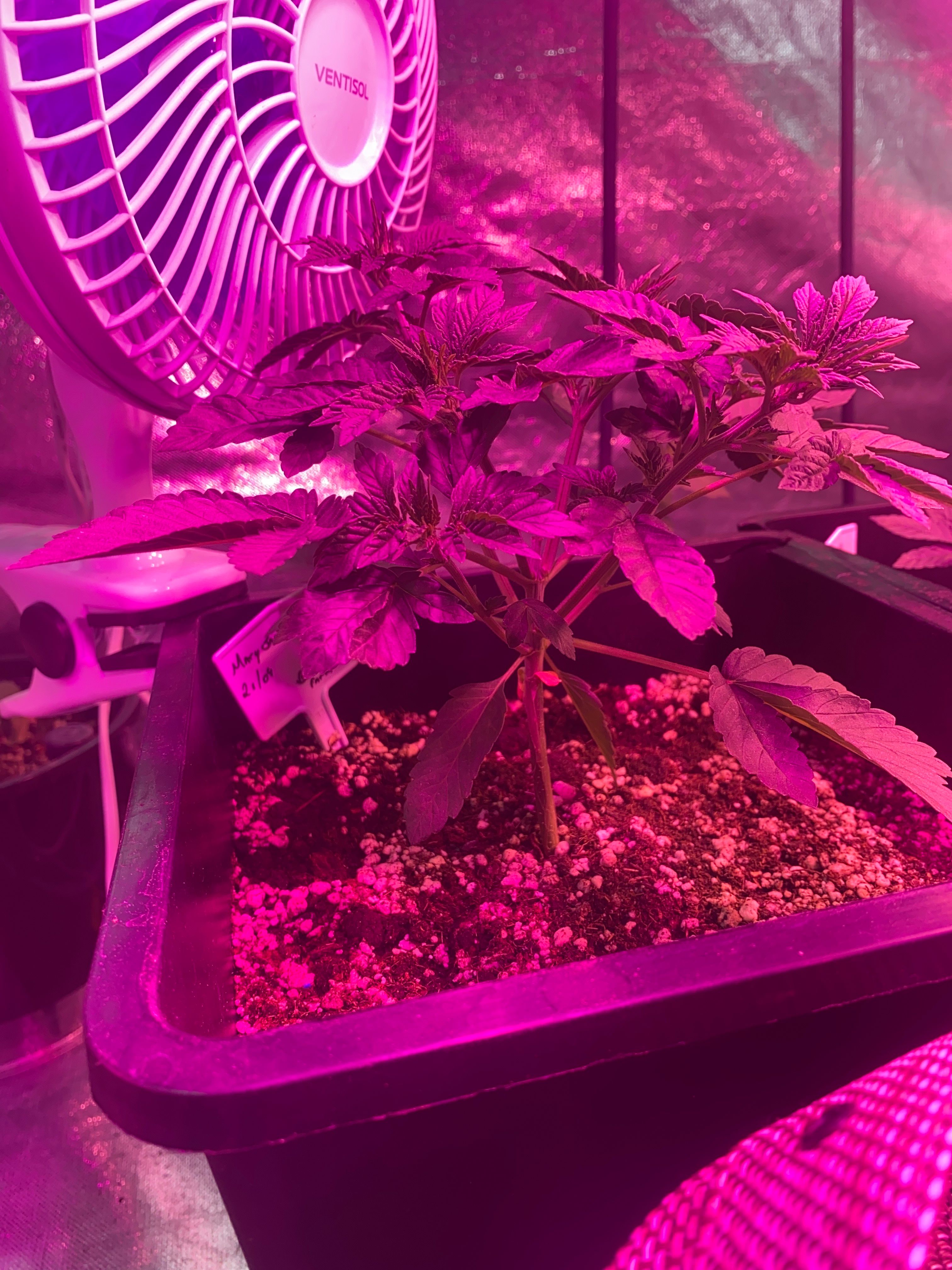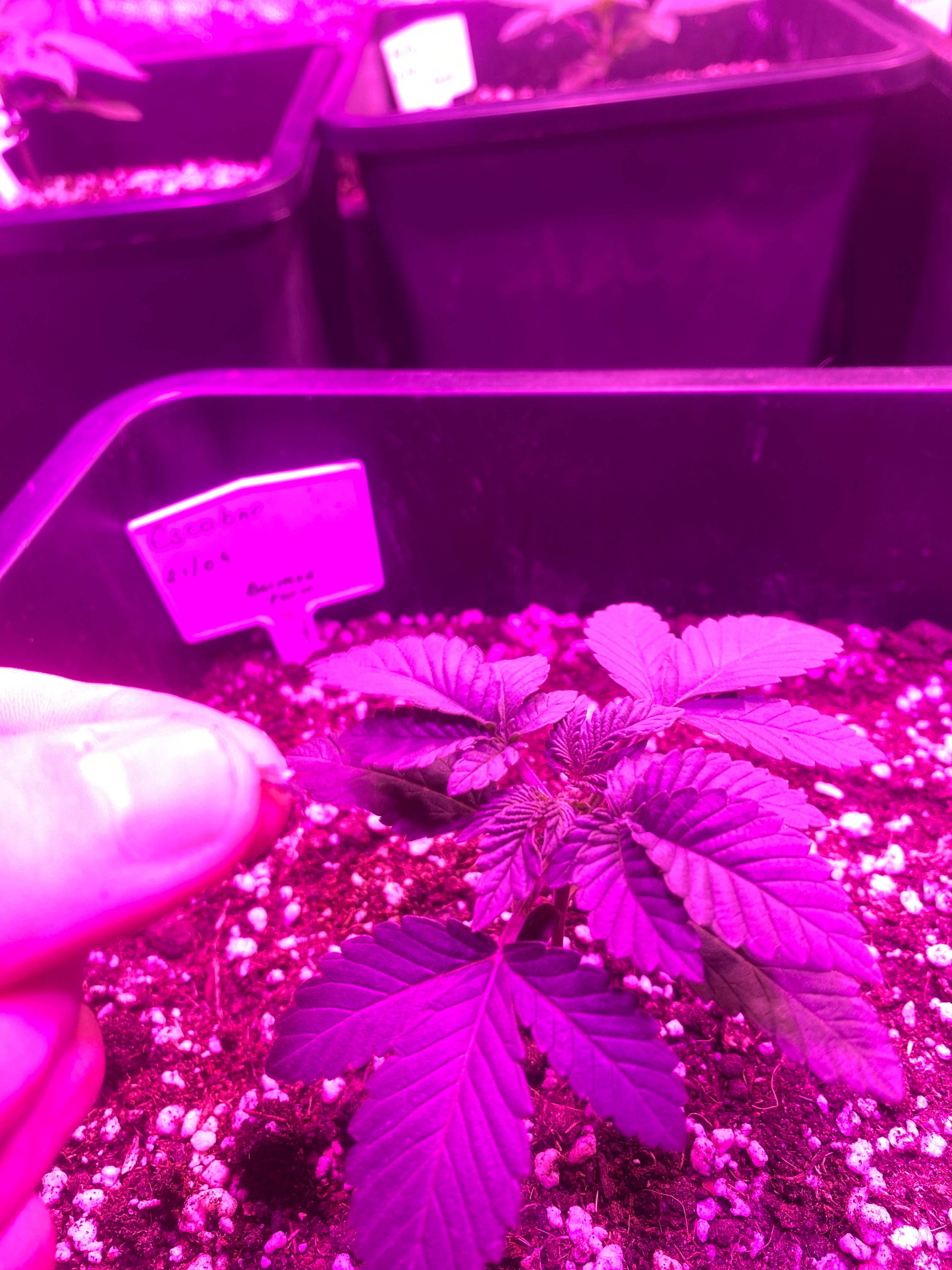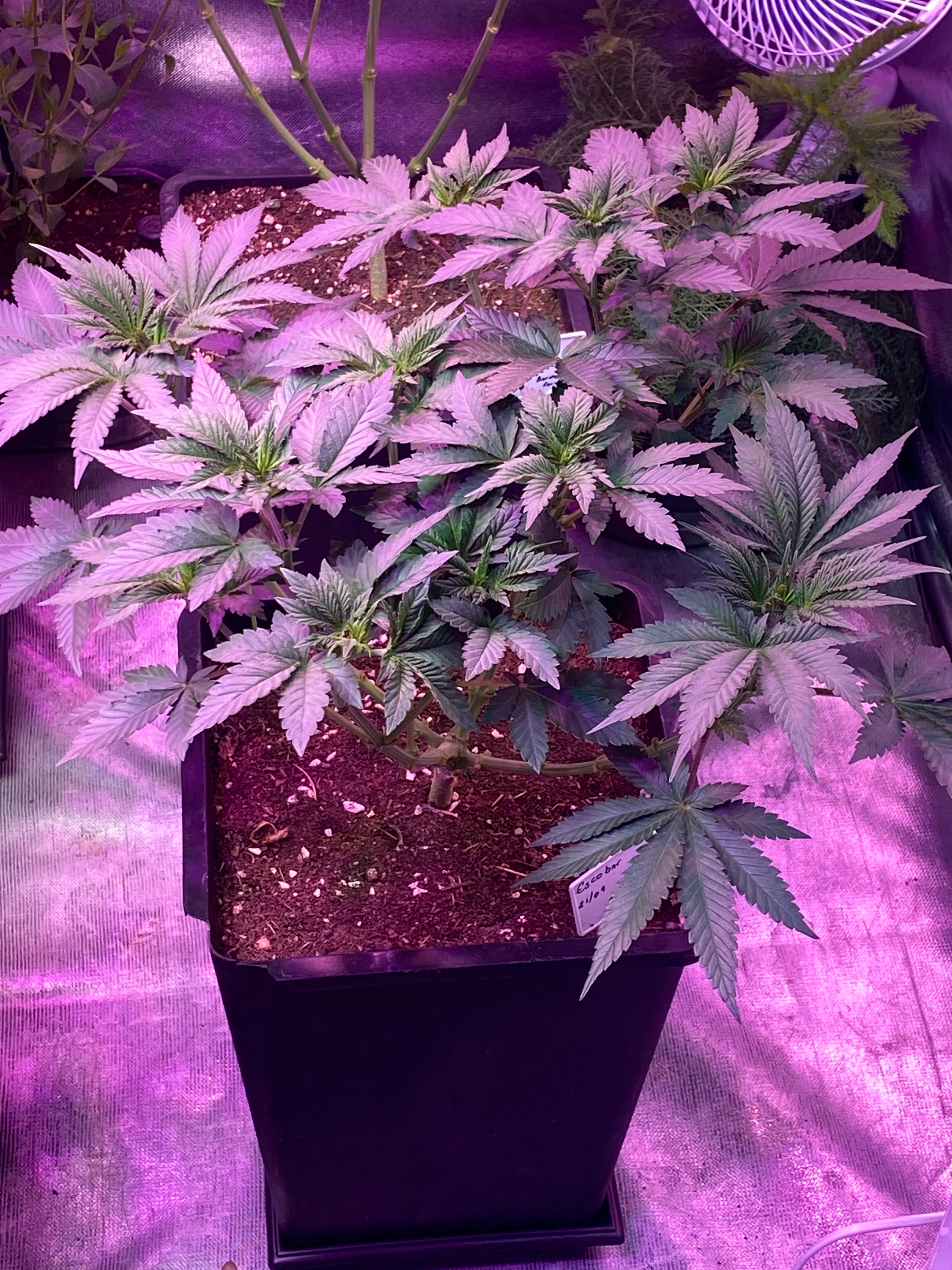 Plantas saudáveis. Amarelos indo pro roxo em decorrência da natureza da strain. Lindas e já apresentando cheiro bom.
