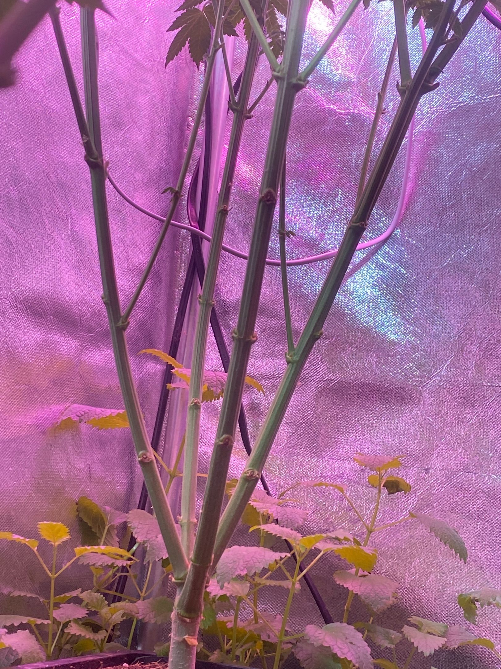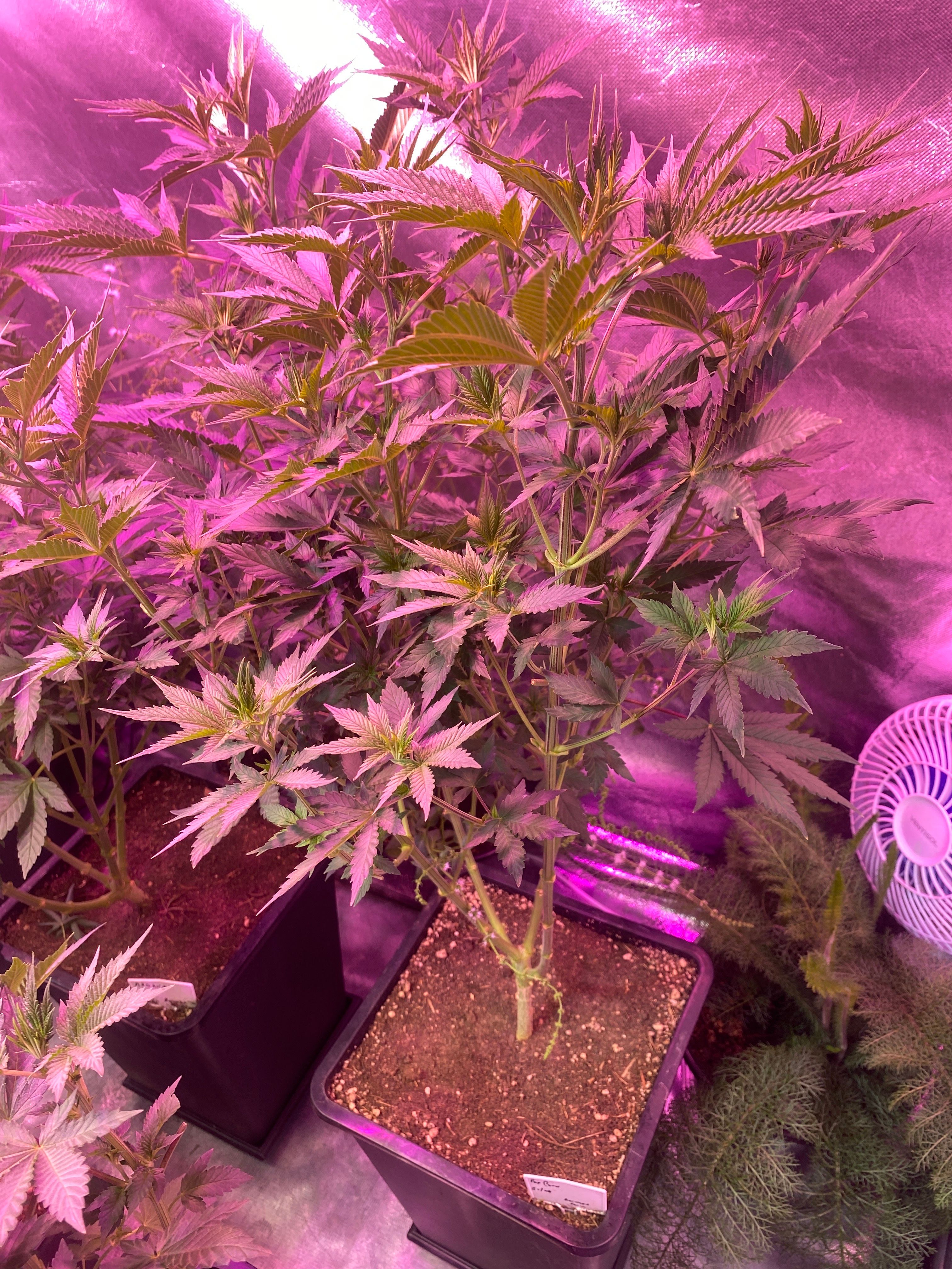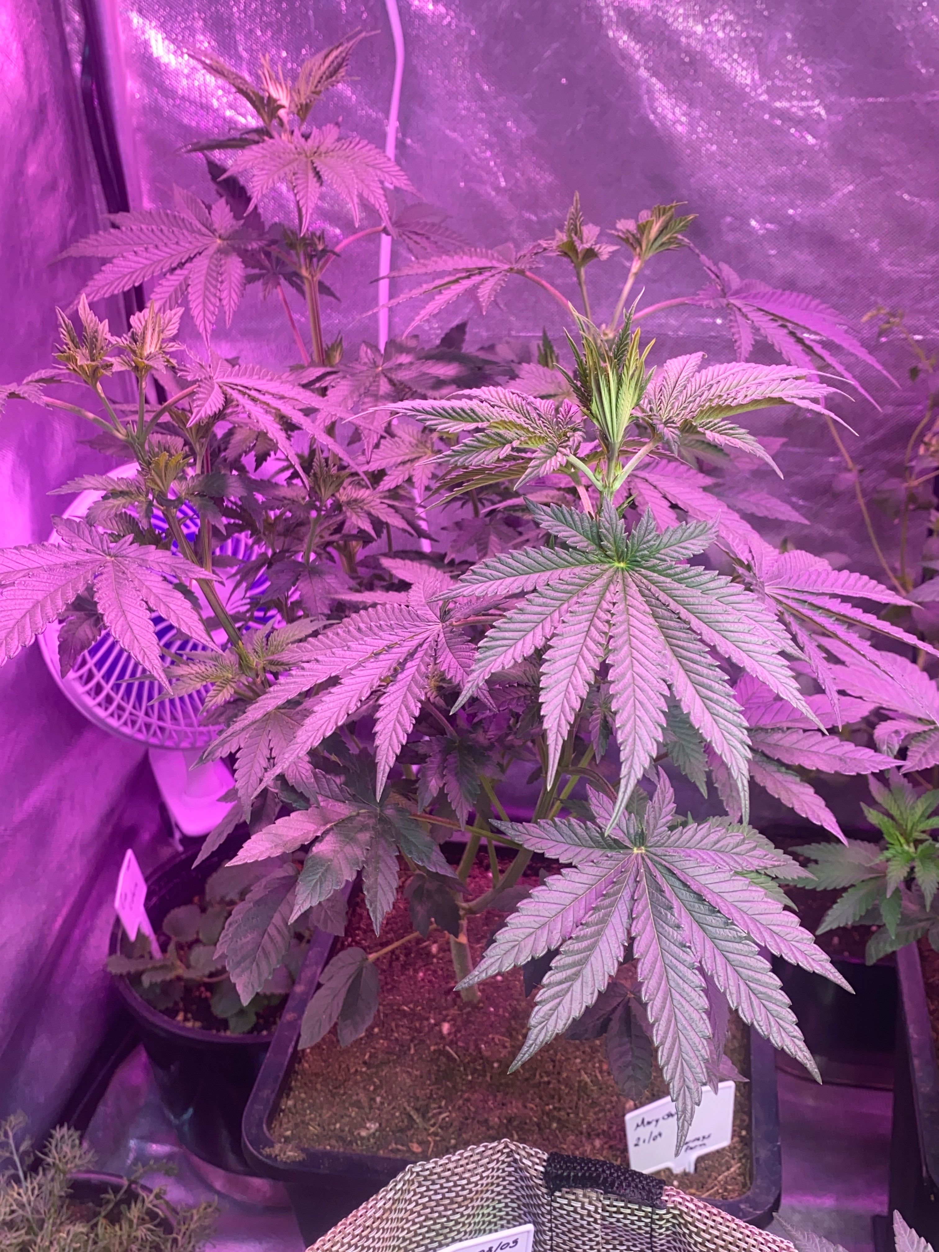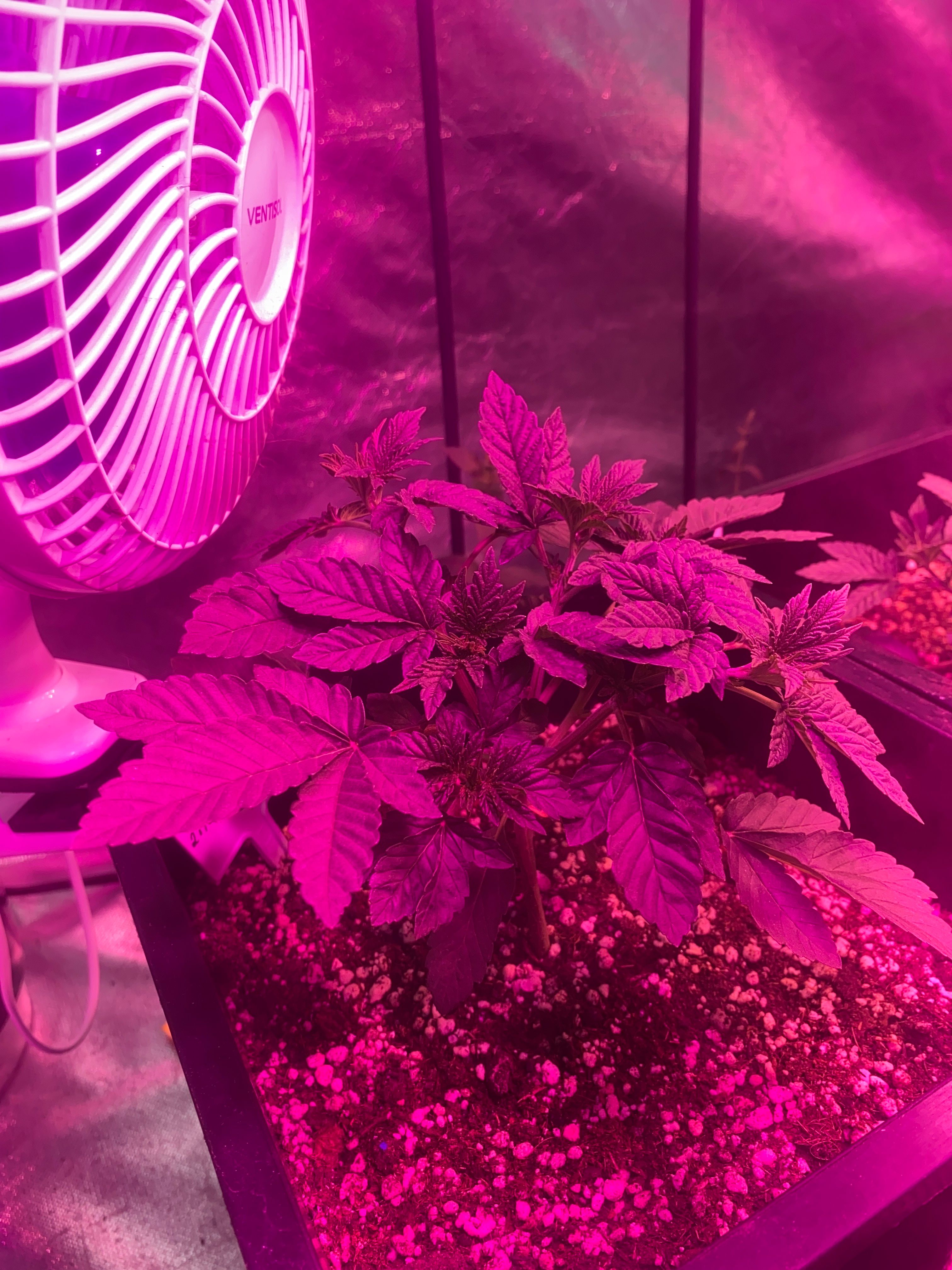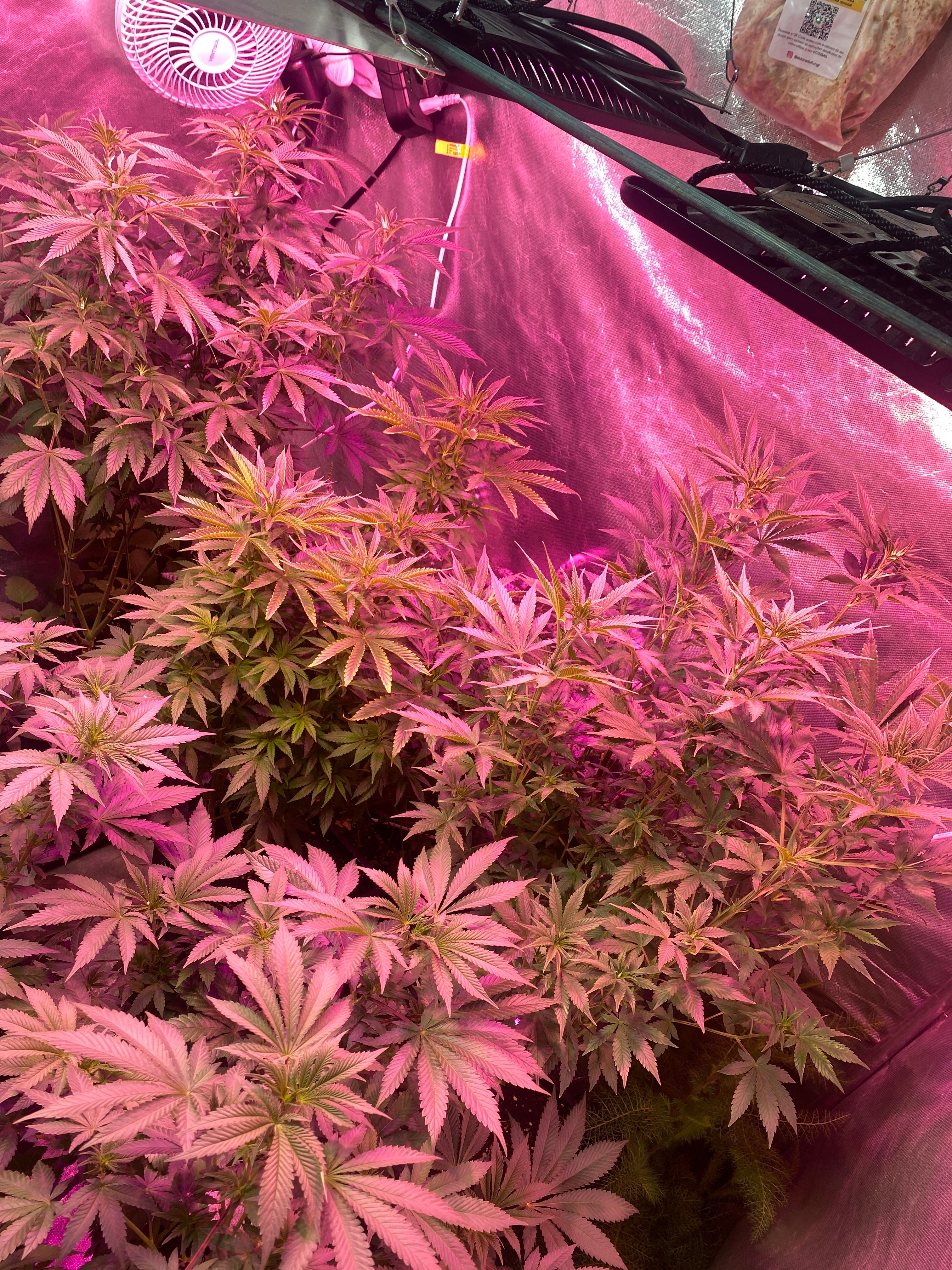 Plantas saudáveis. Amarelos indo pro roxo em decorrência da natureza da strain. Lindas e já apresentando cheiro bom.