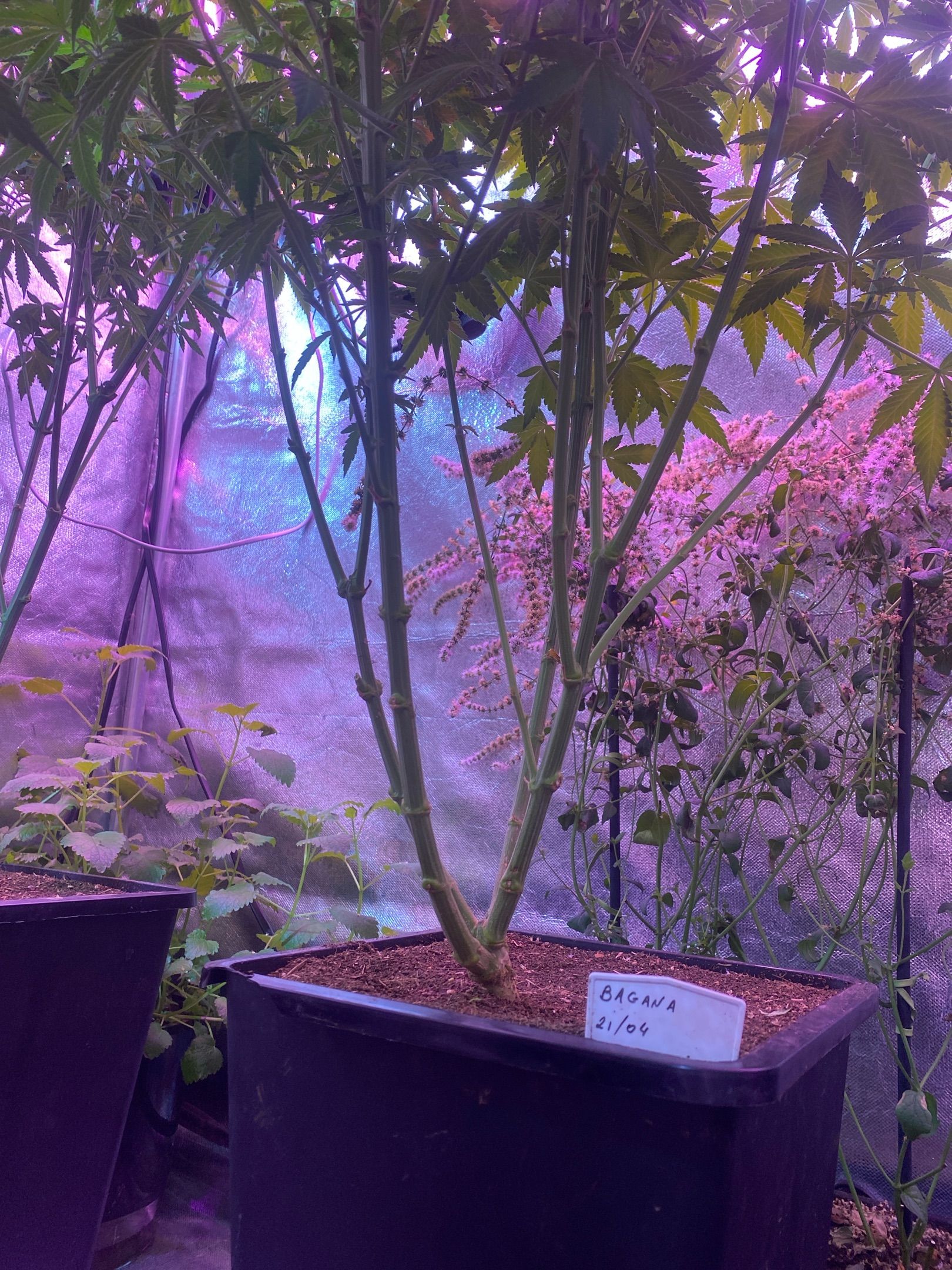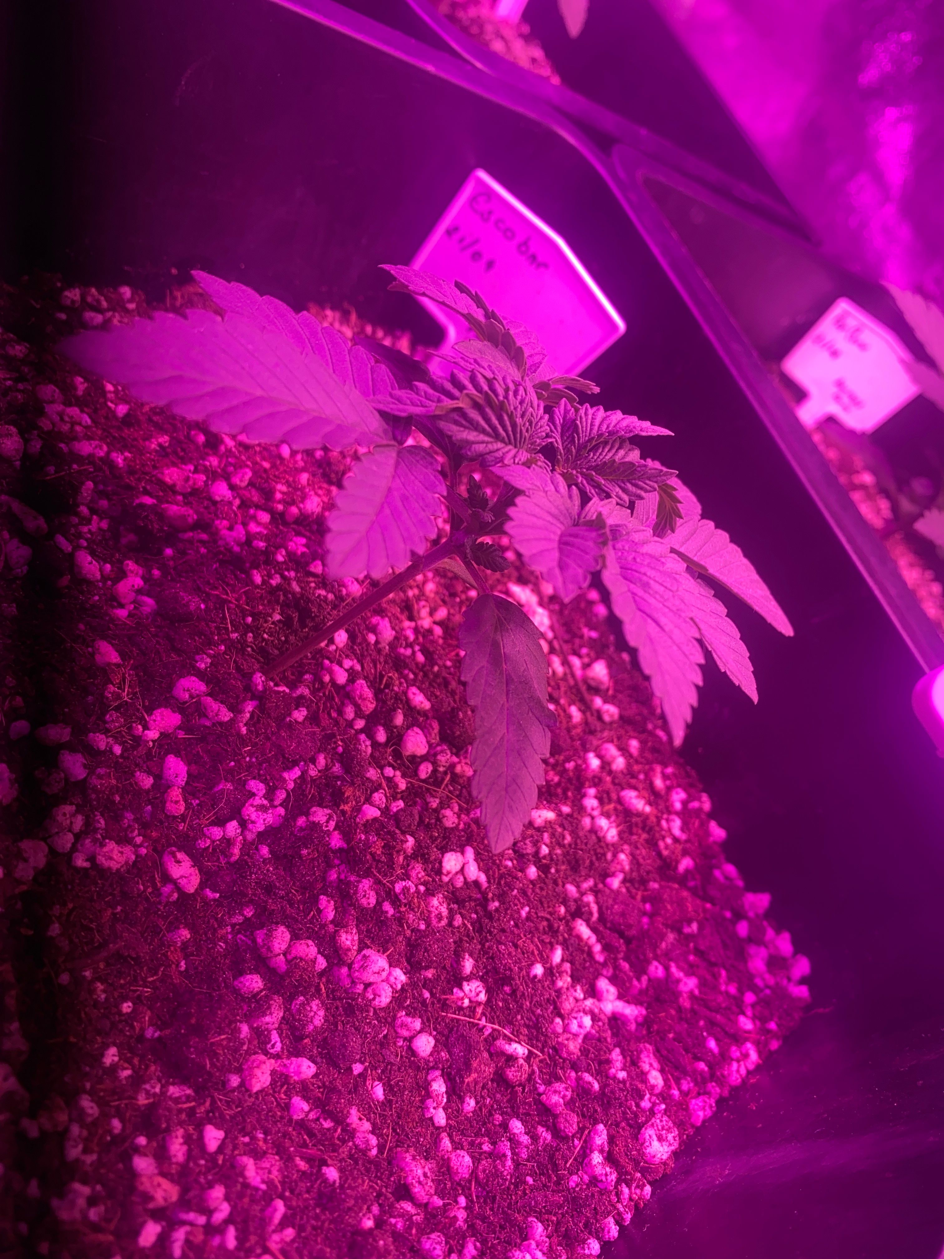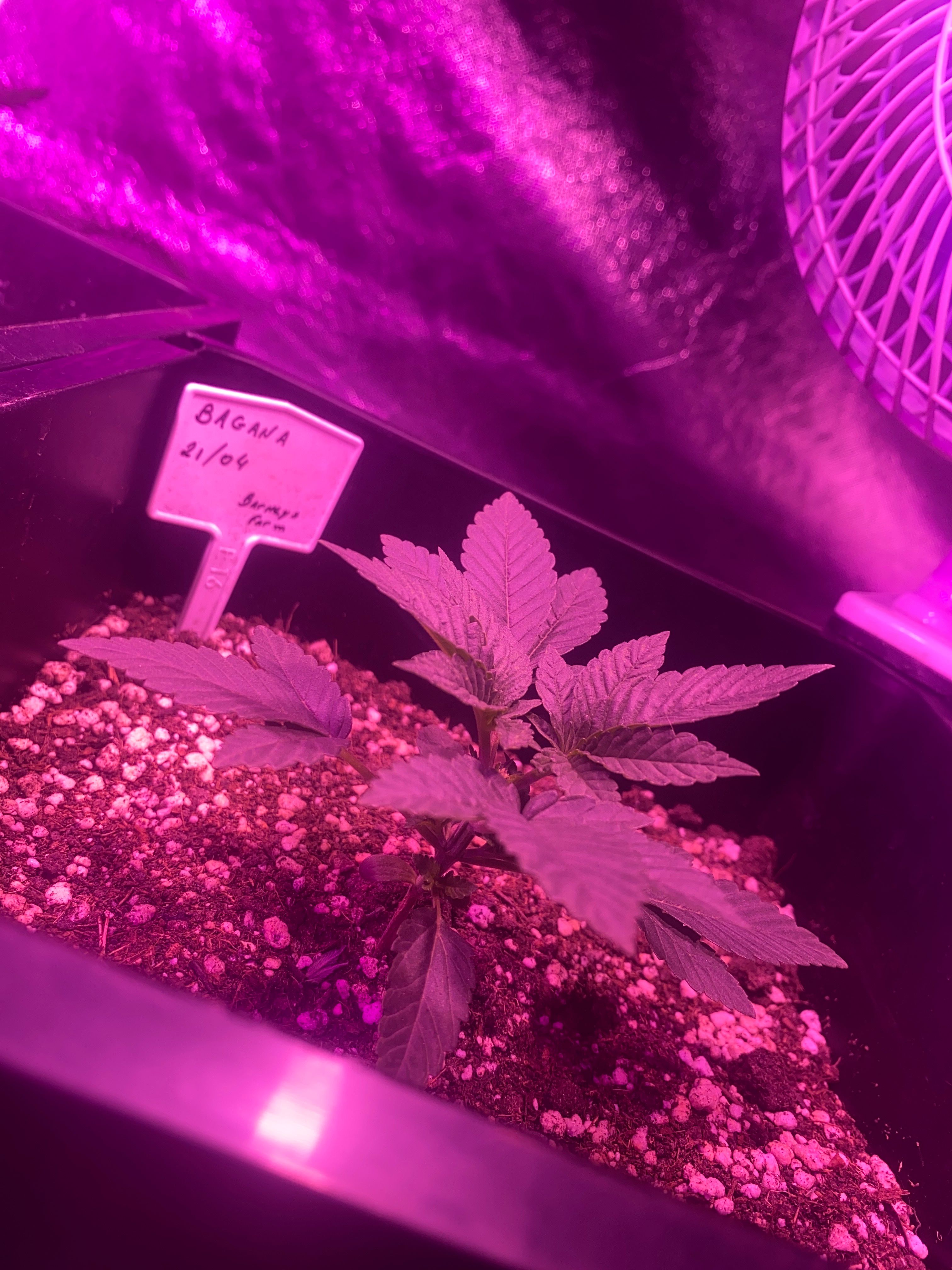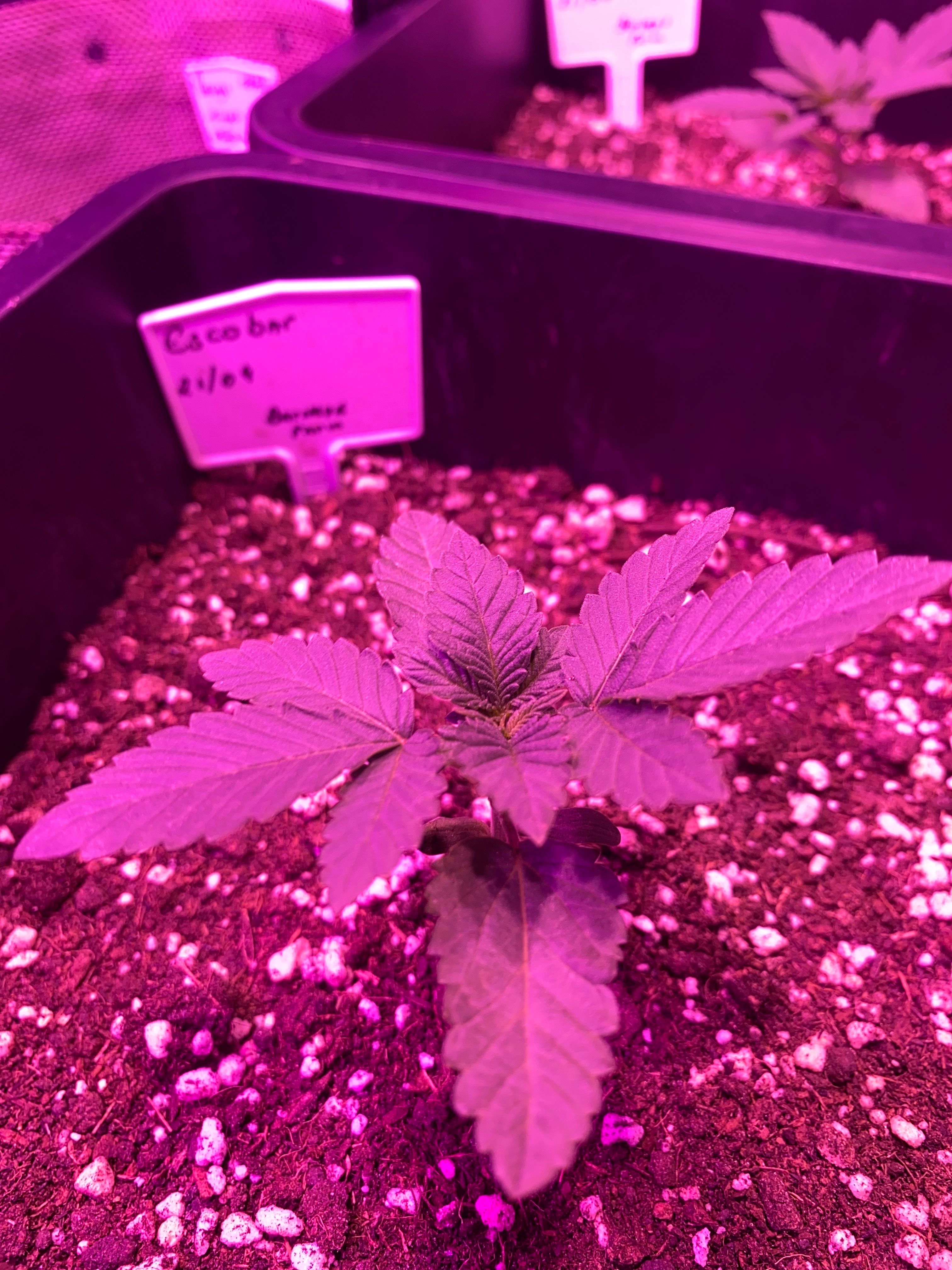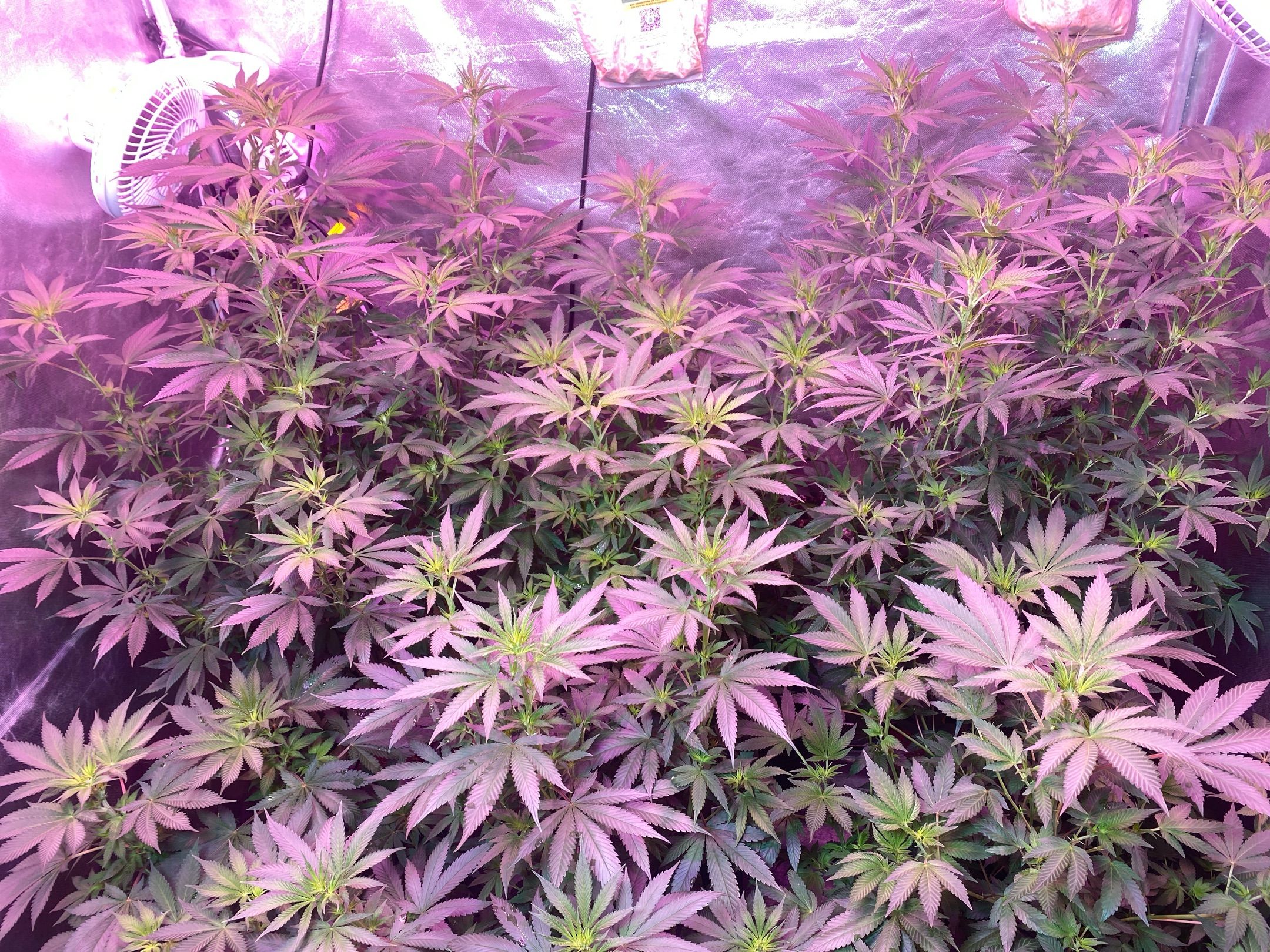 Plantas saudáveis. Amarelos indo pro roxo em decorrência da natureza da strain. Lindas e já apresentando cheiro bom.