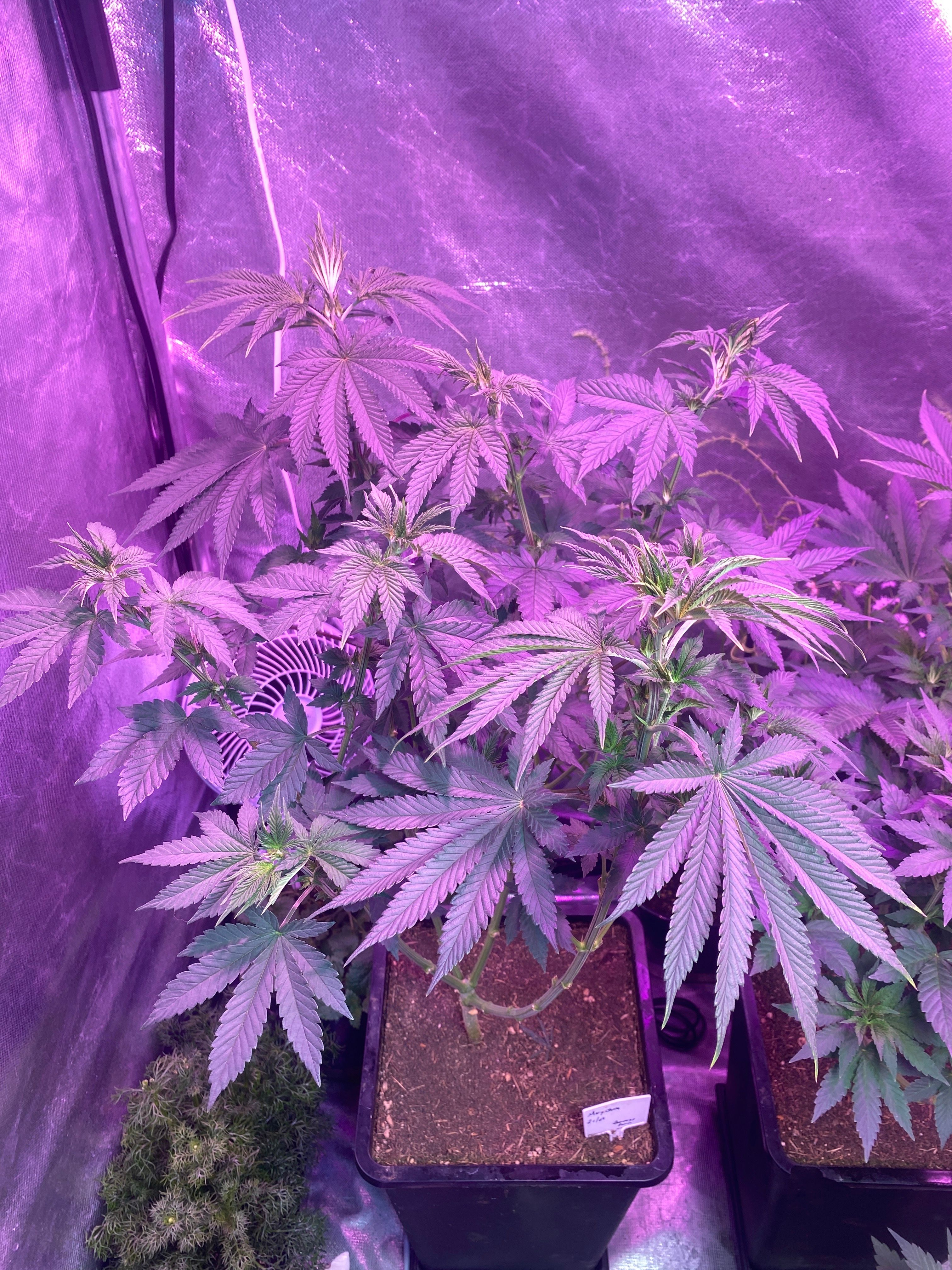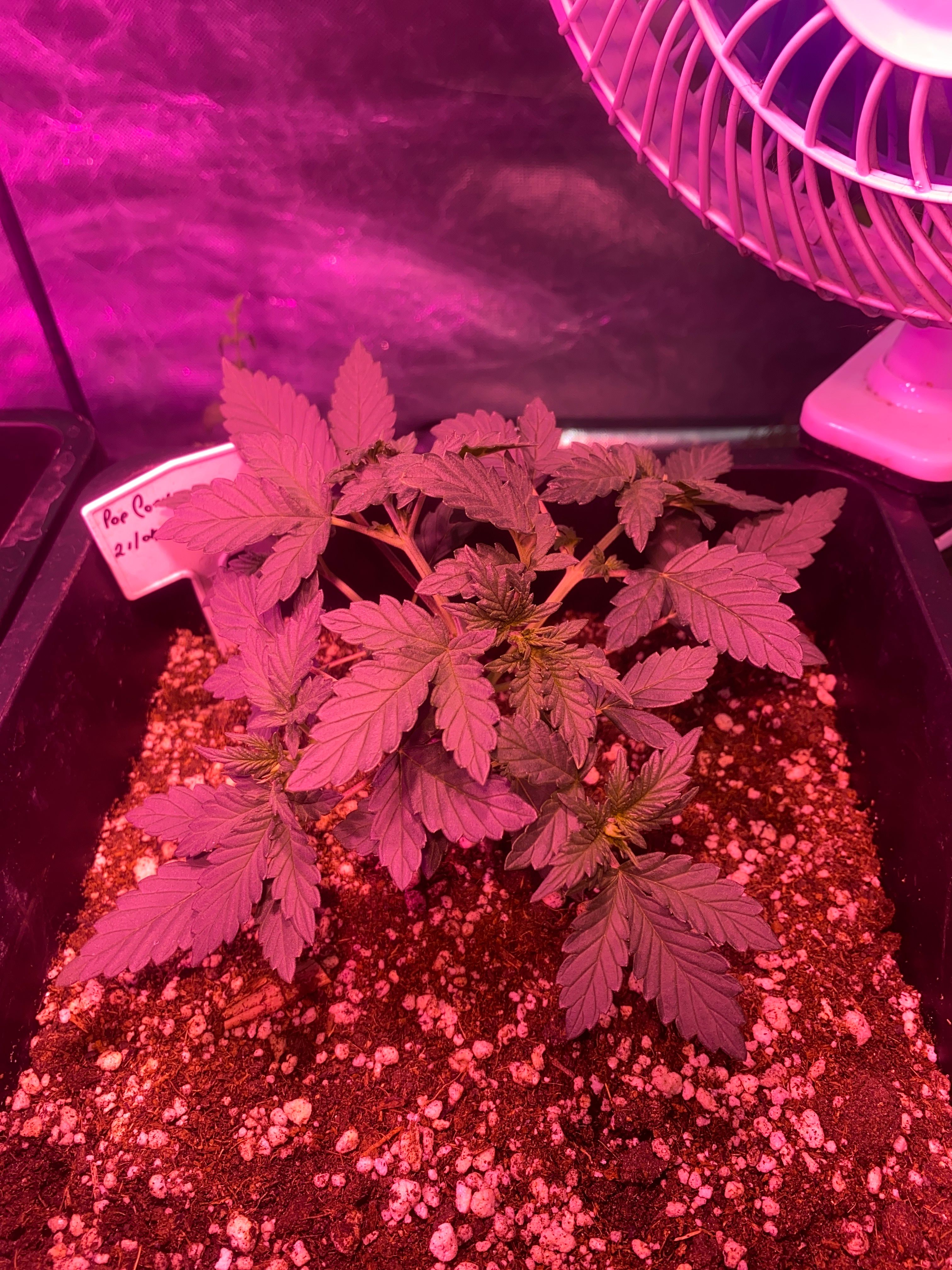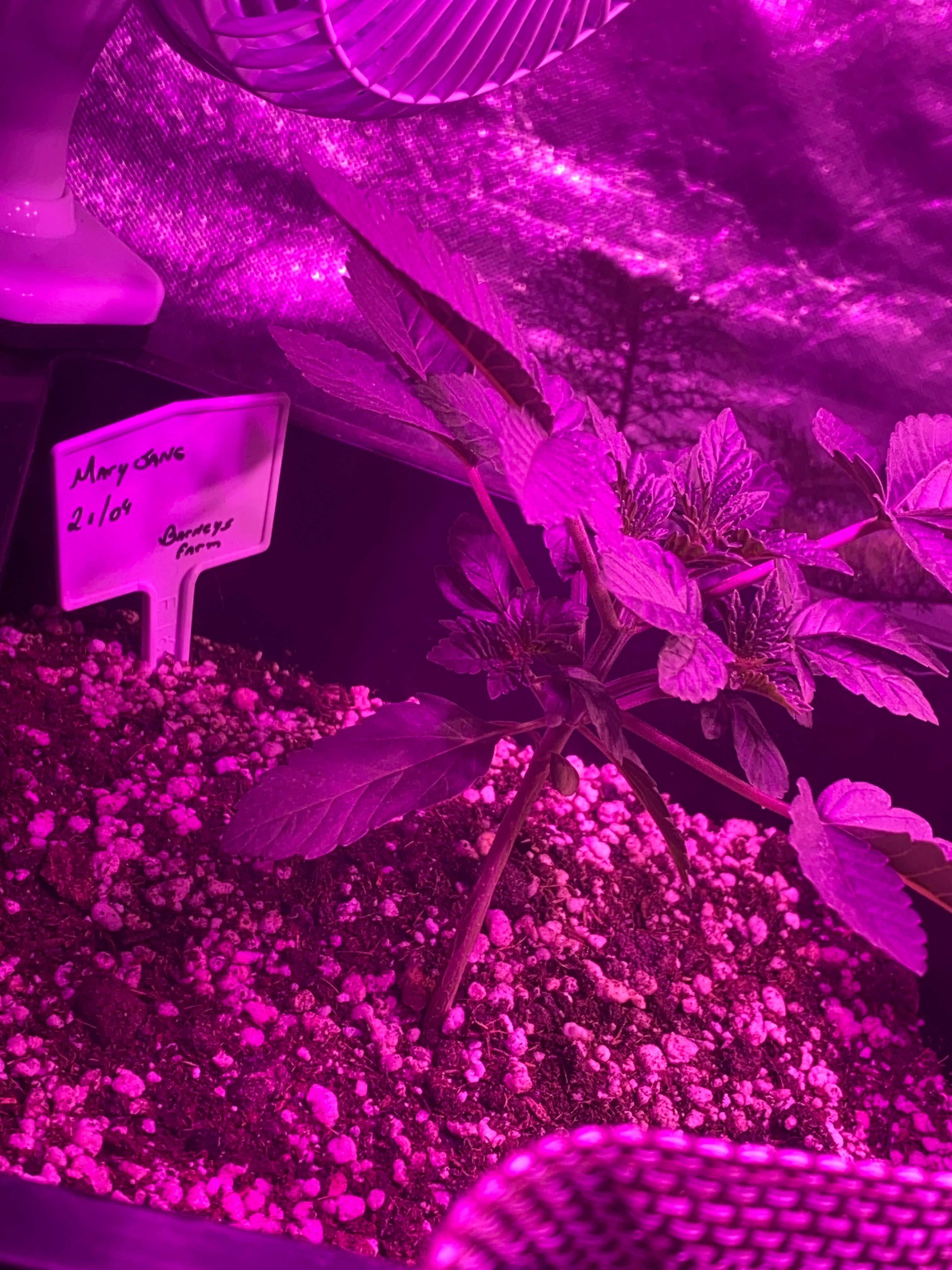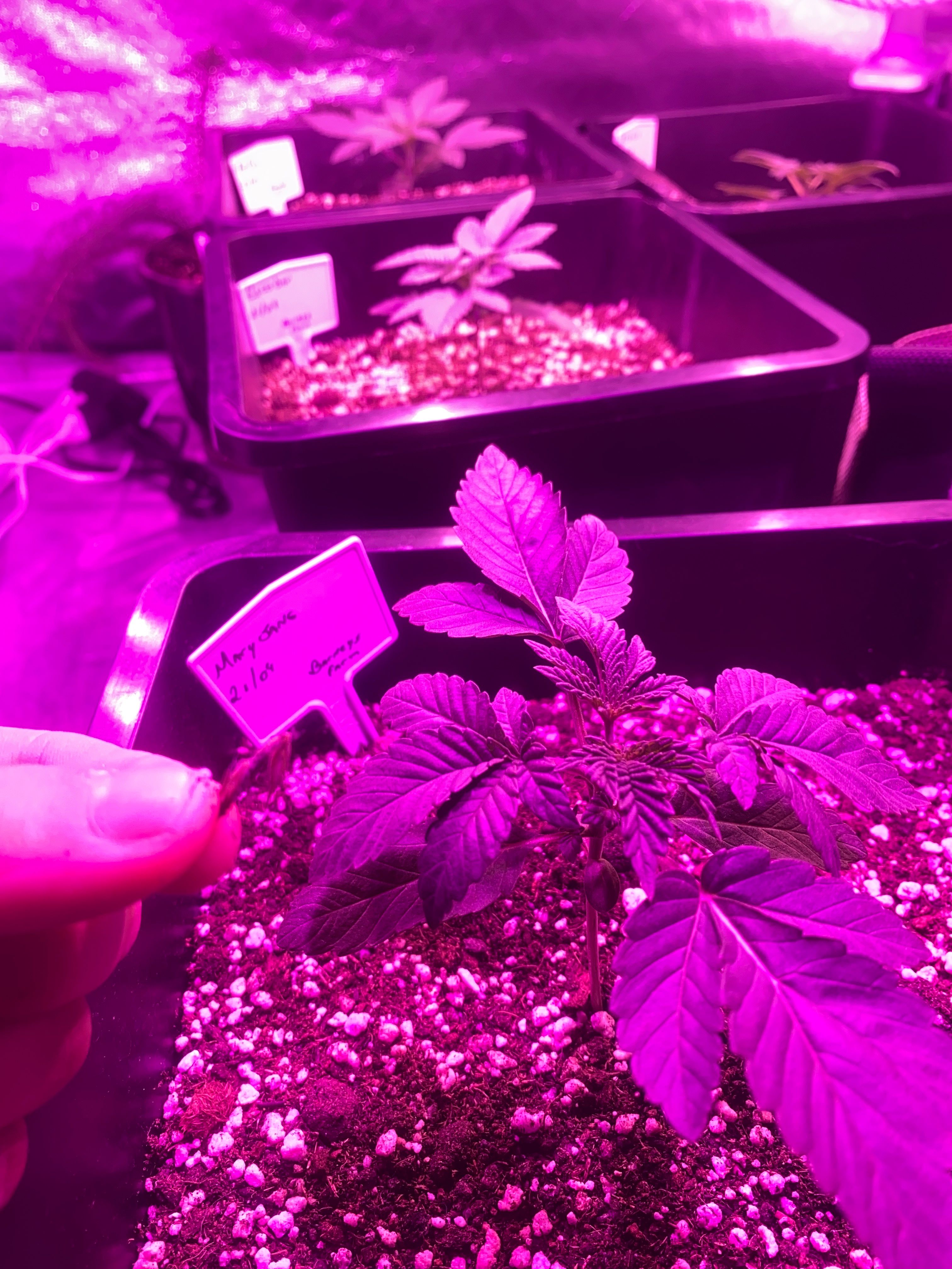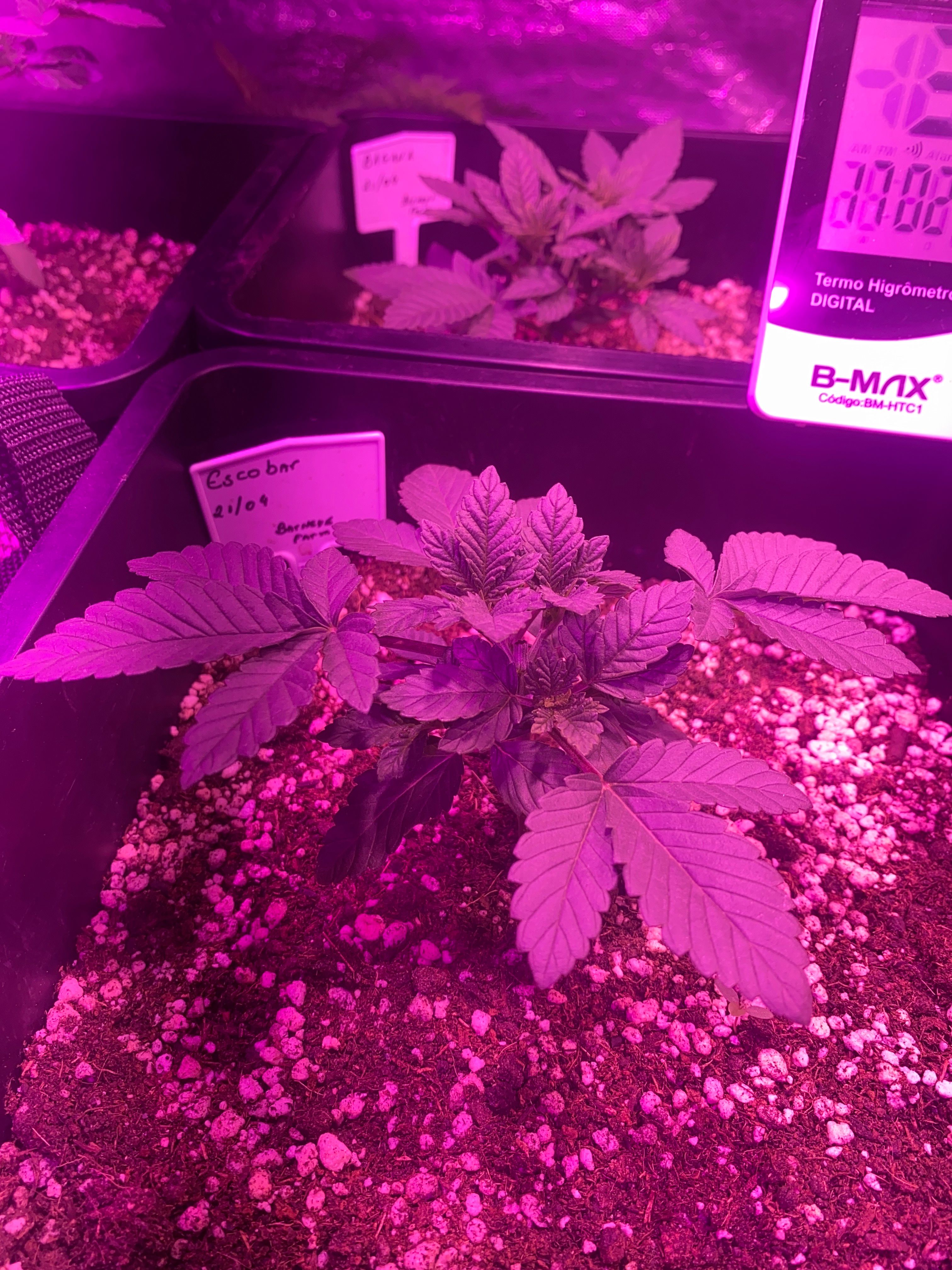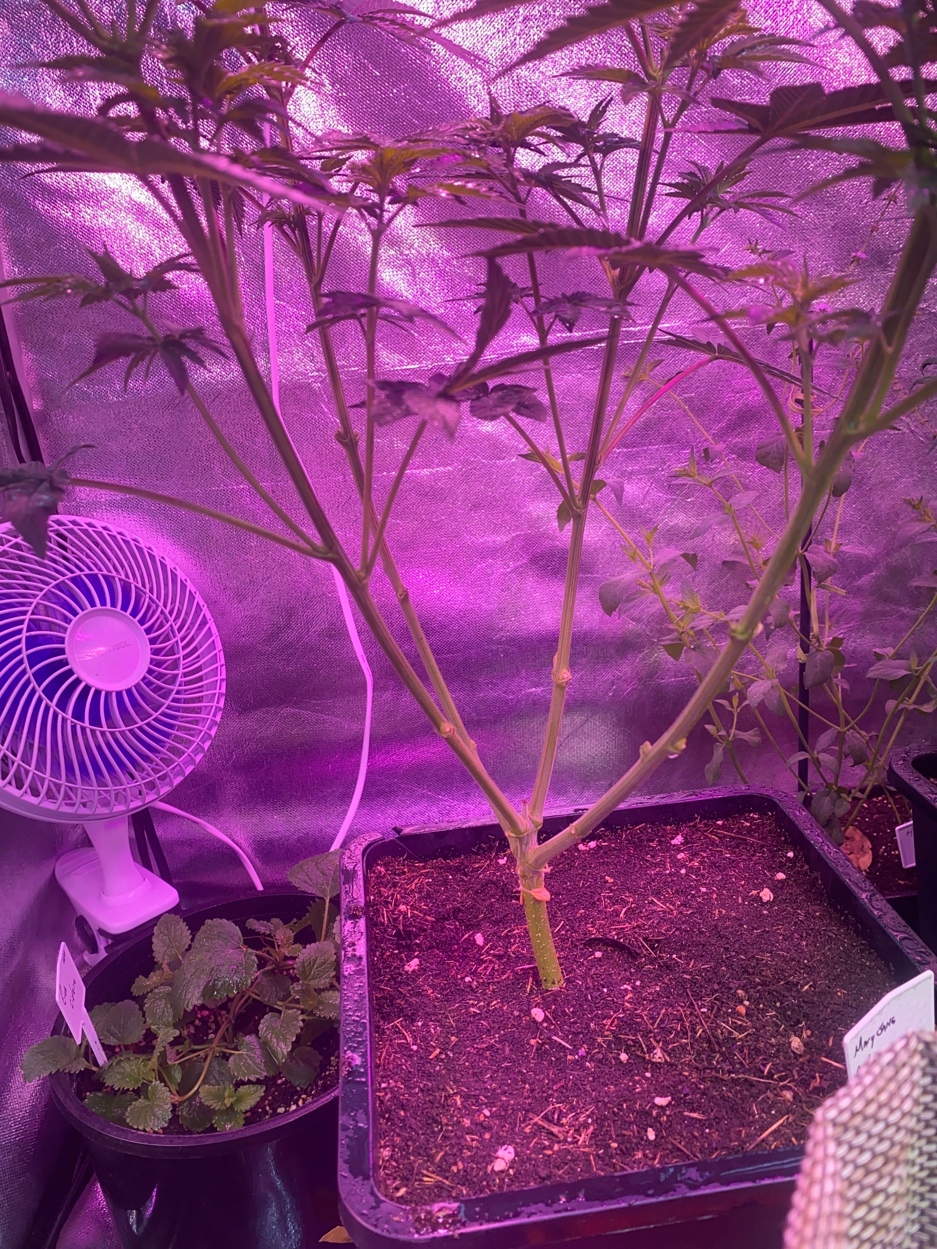 Plantas saudáveis. Amarelos indo pro roxo em decorrência da natureza da strain. Lindas e já apresentando cheiro bom.