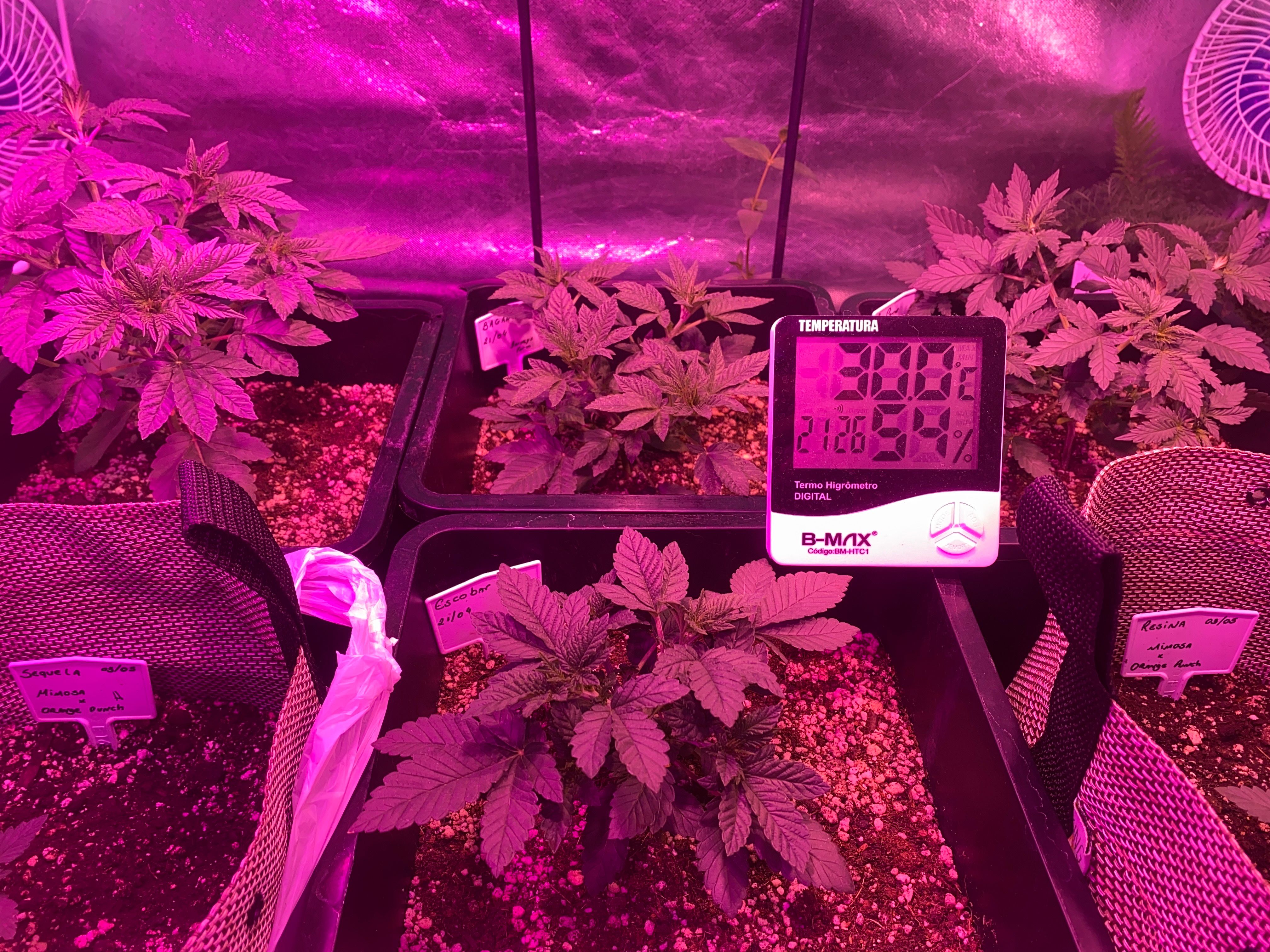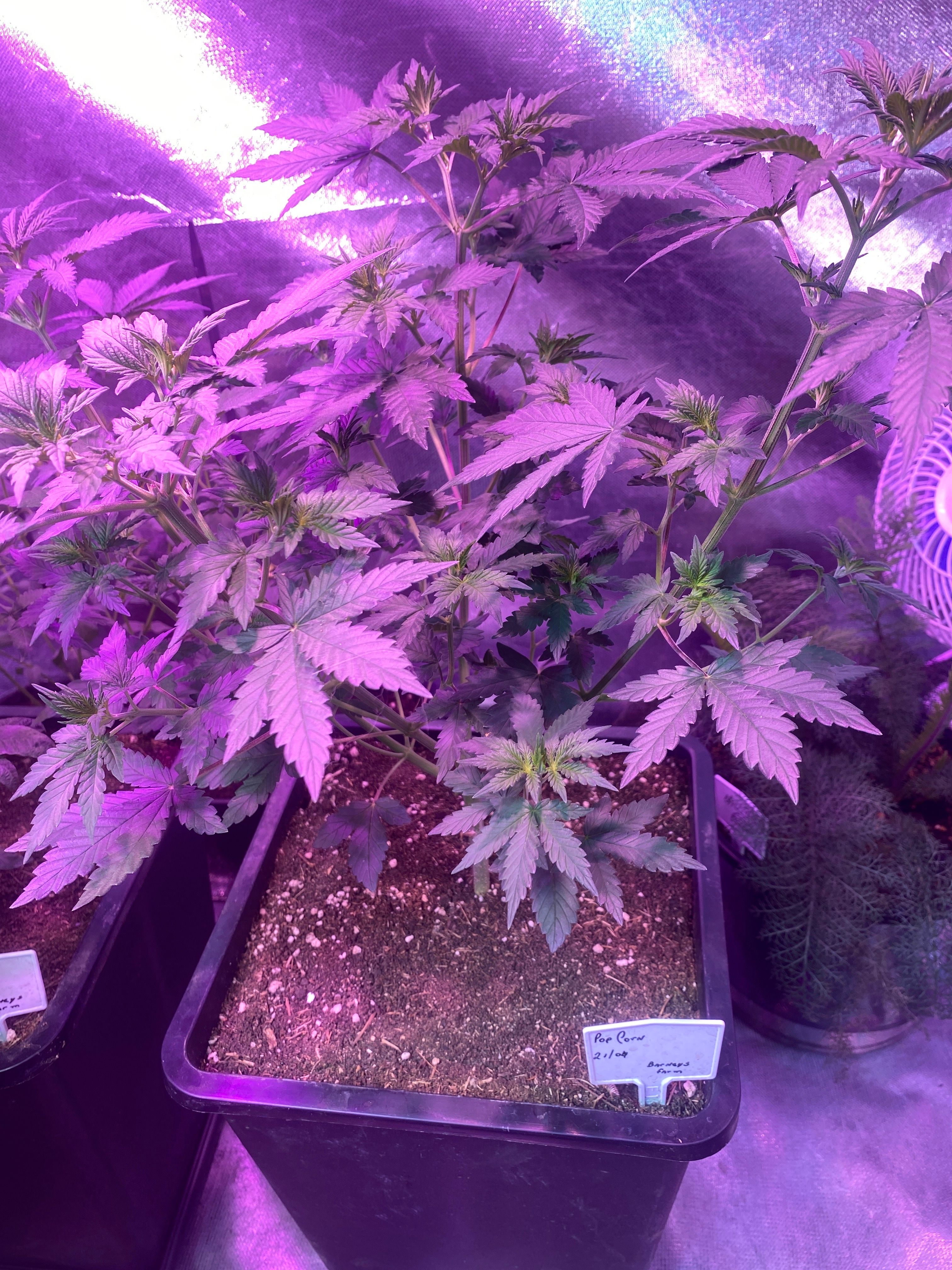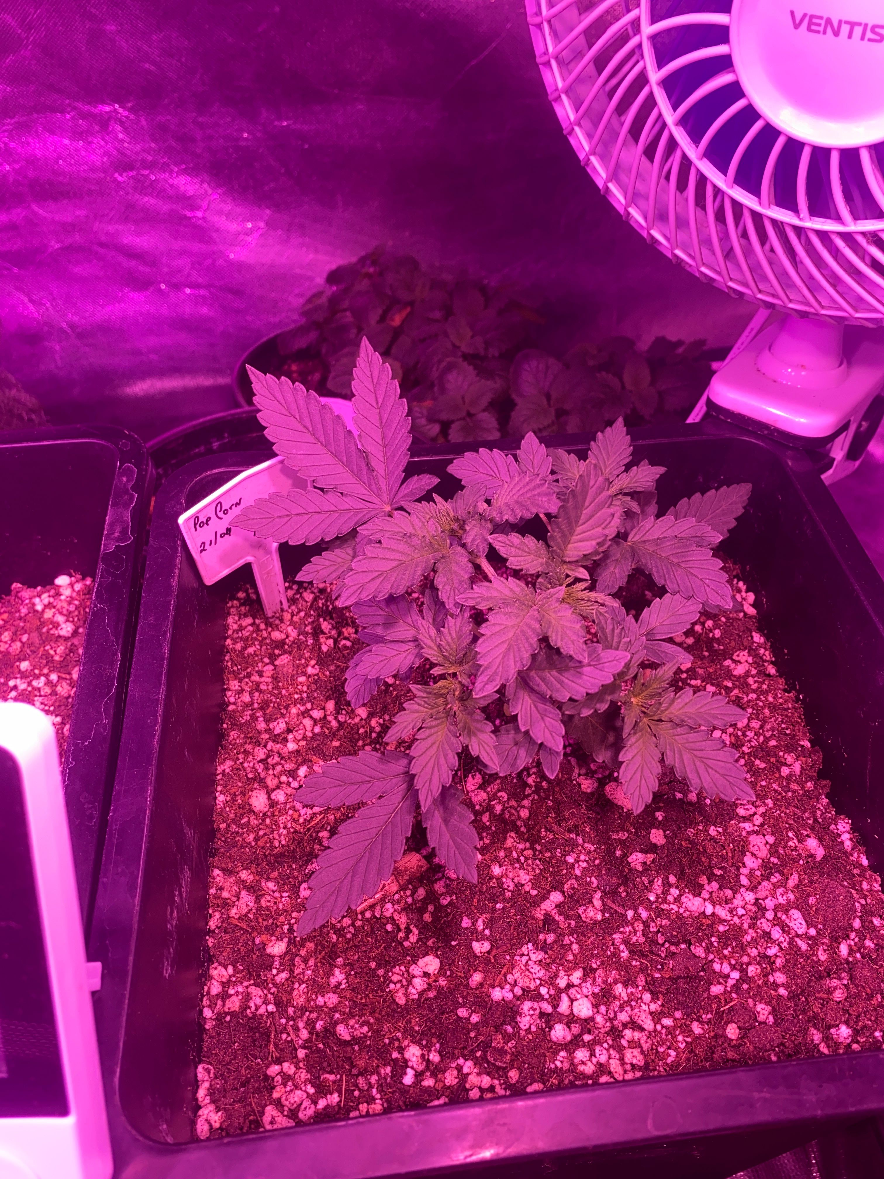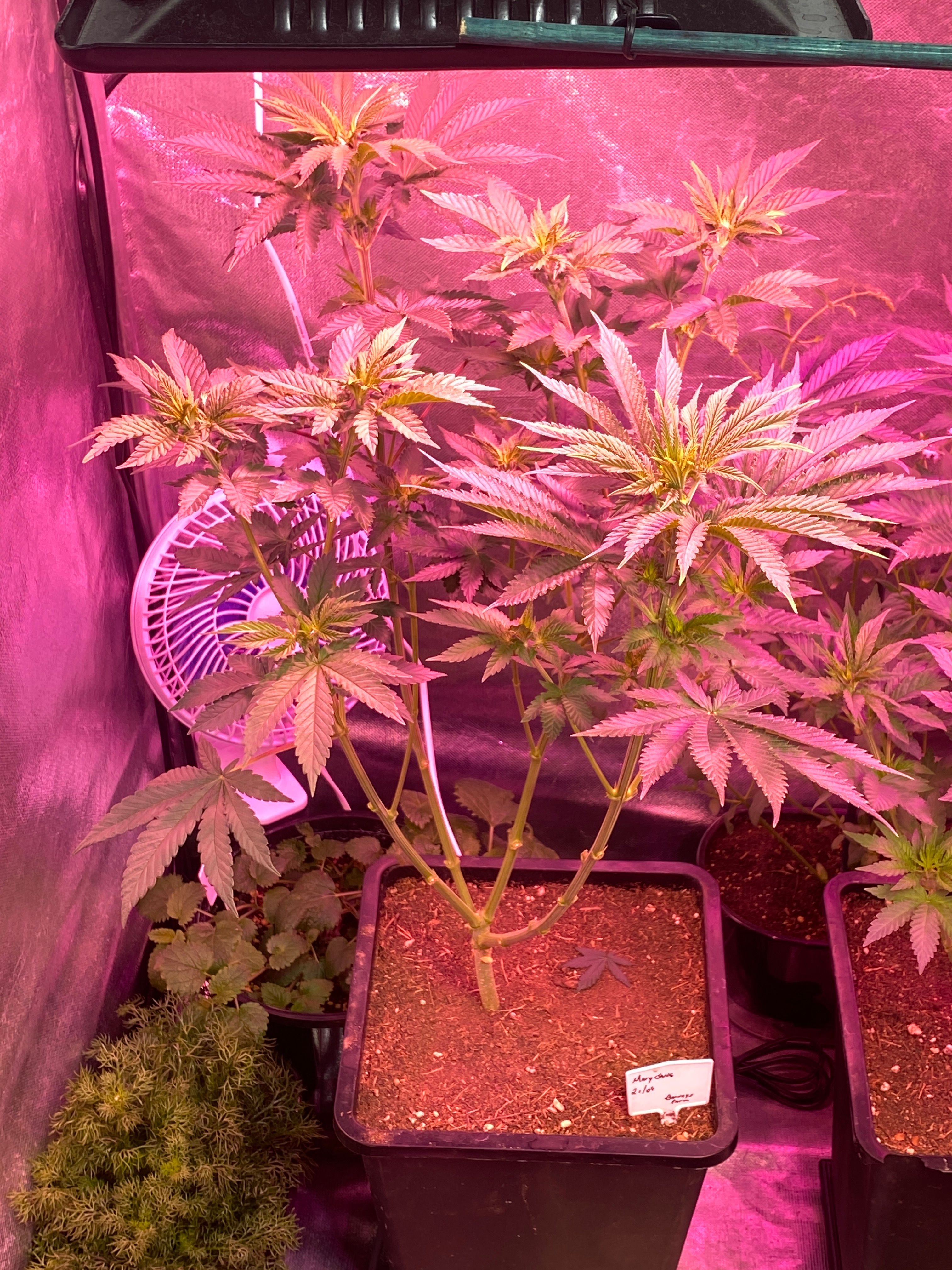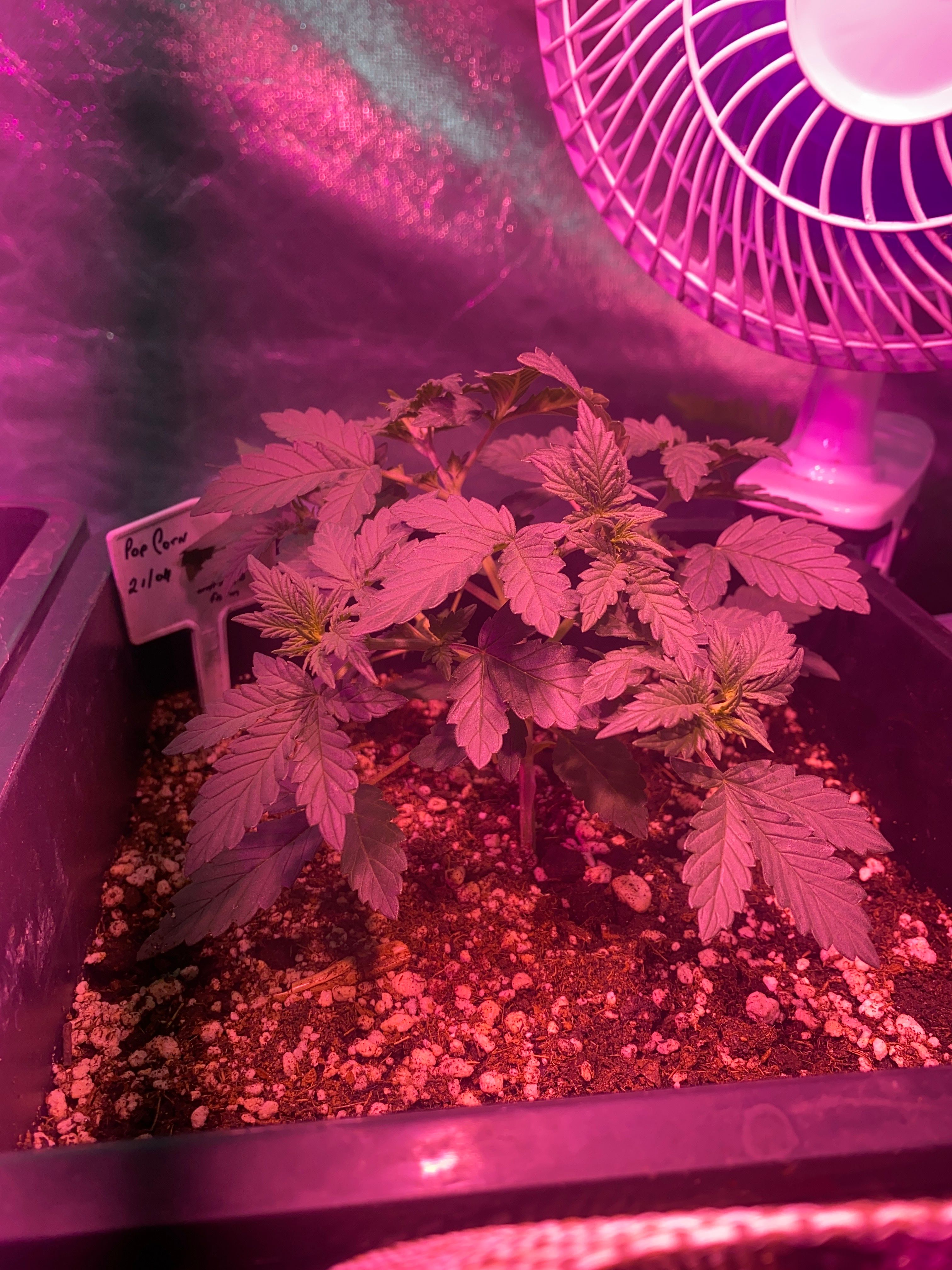 Plantas saudáveis. Amarelos indo pro roxo em decorrência da natureza da strain. Lindas e já apresentando cheiro bom.