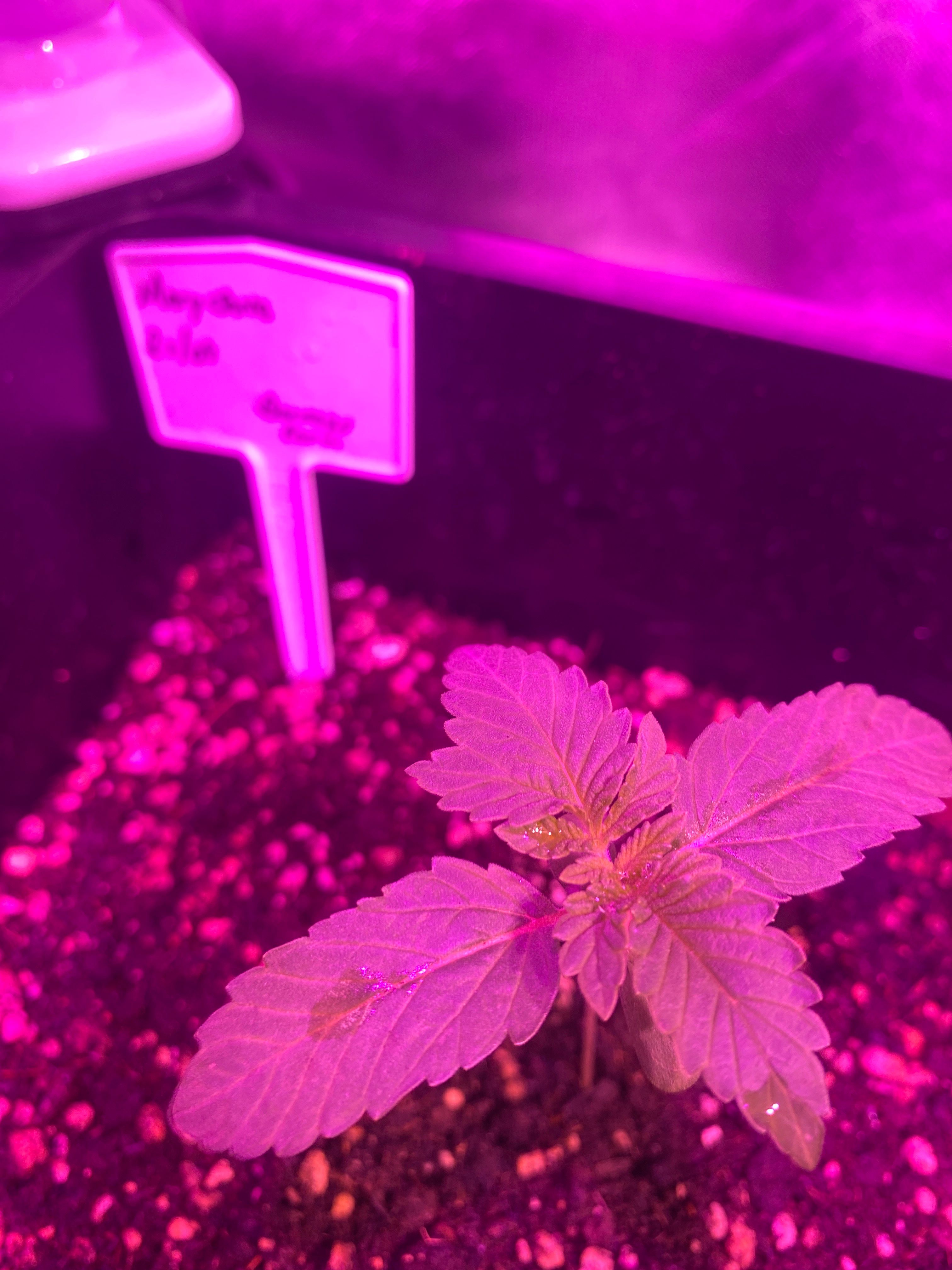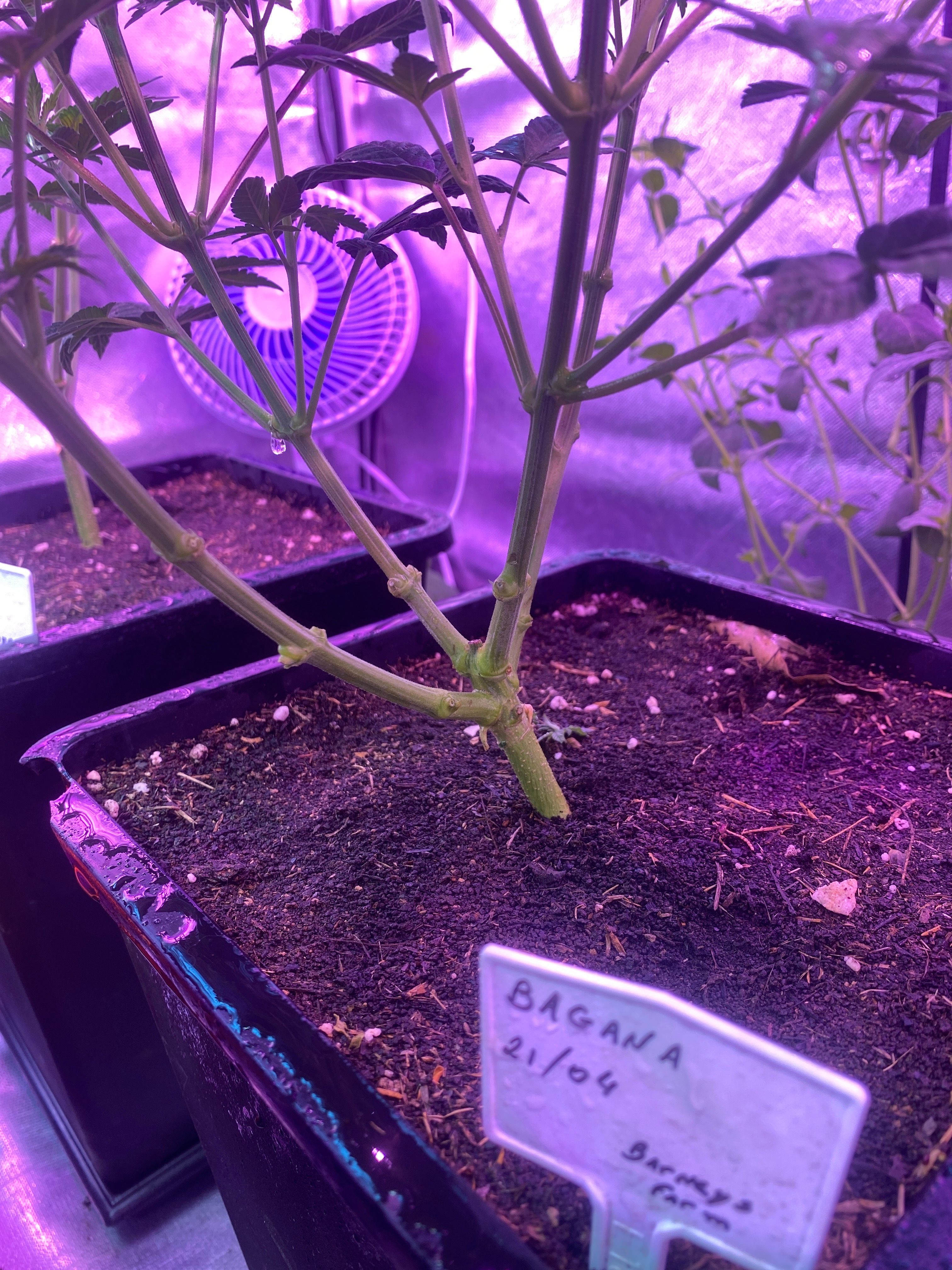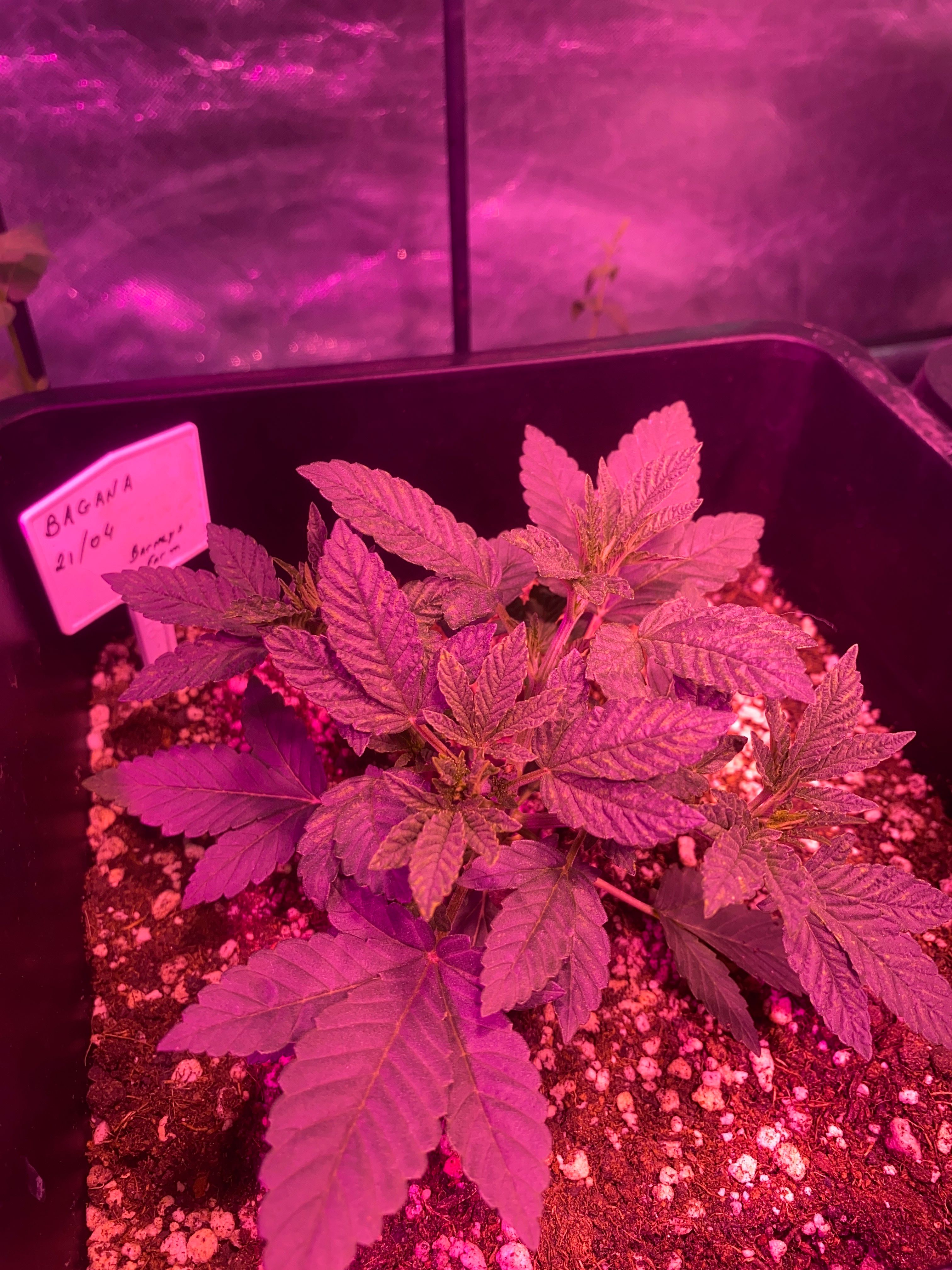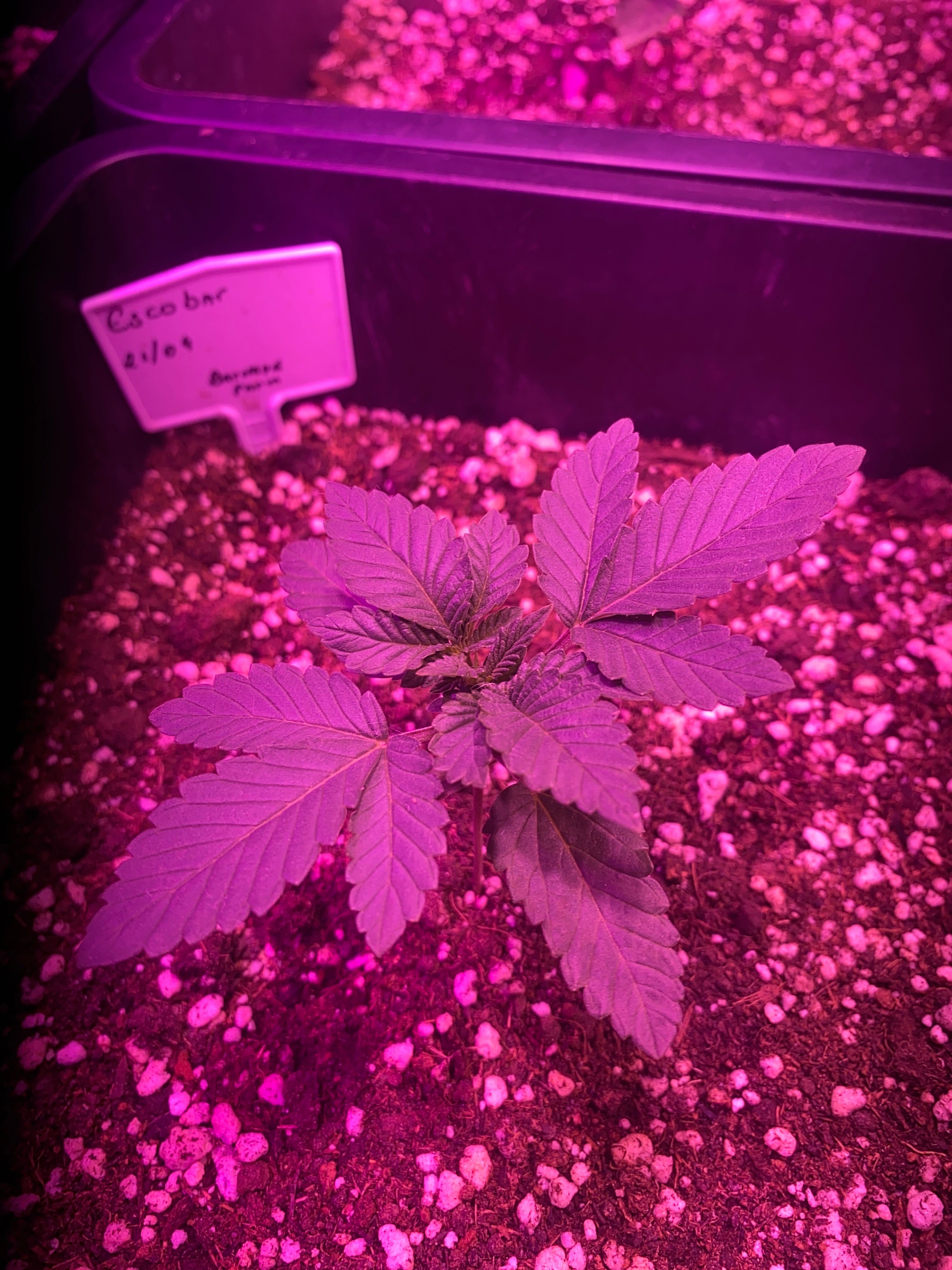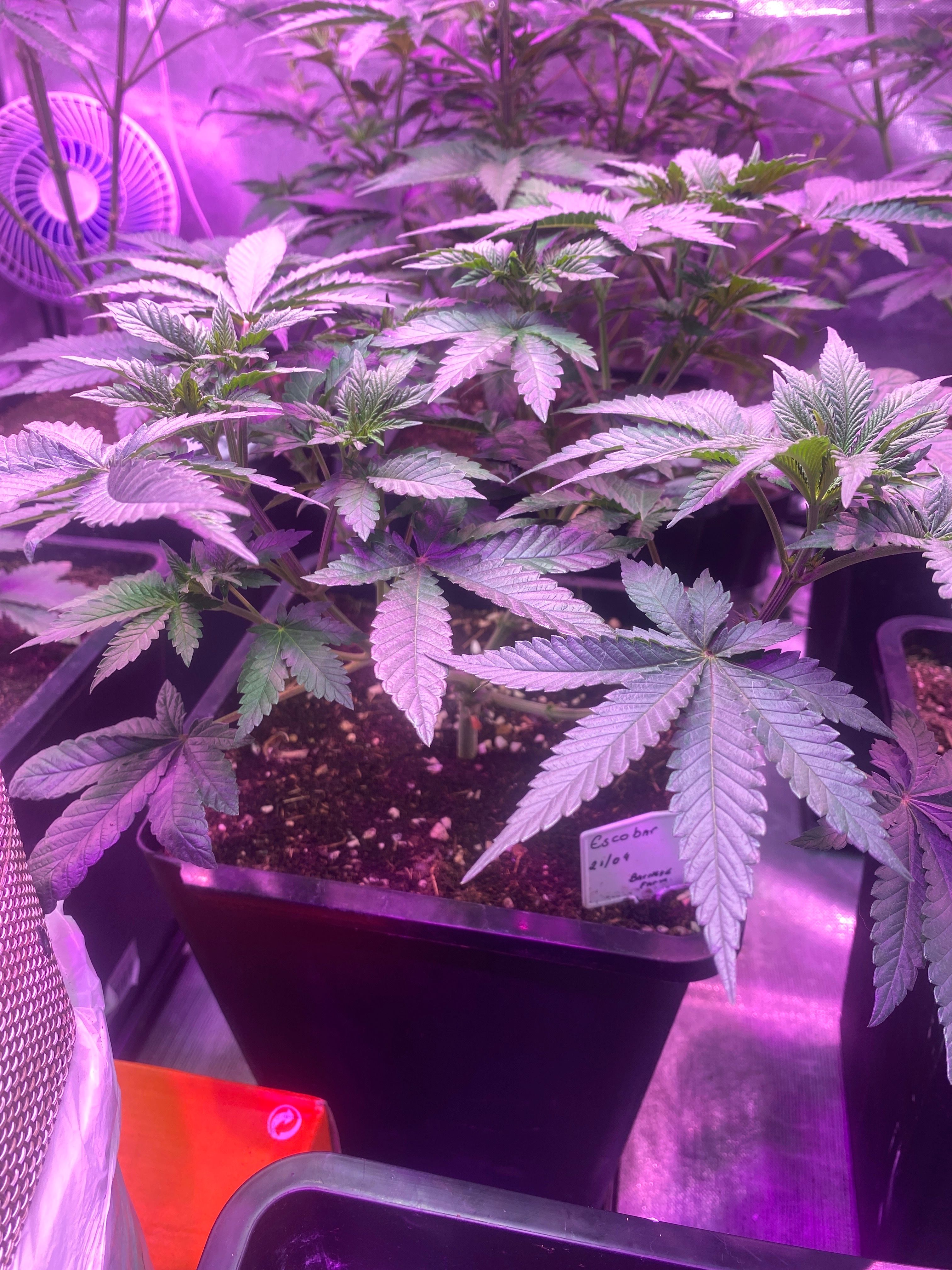 Plantas saudáveis. Amarelos indo pro roxo em decorrência da natureza da strain. Lindas e já apresentando cheiro bom.