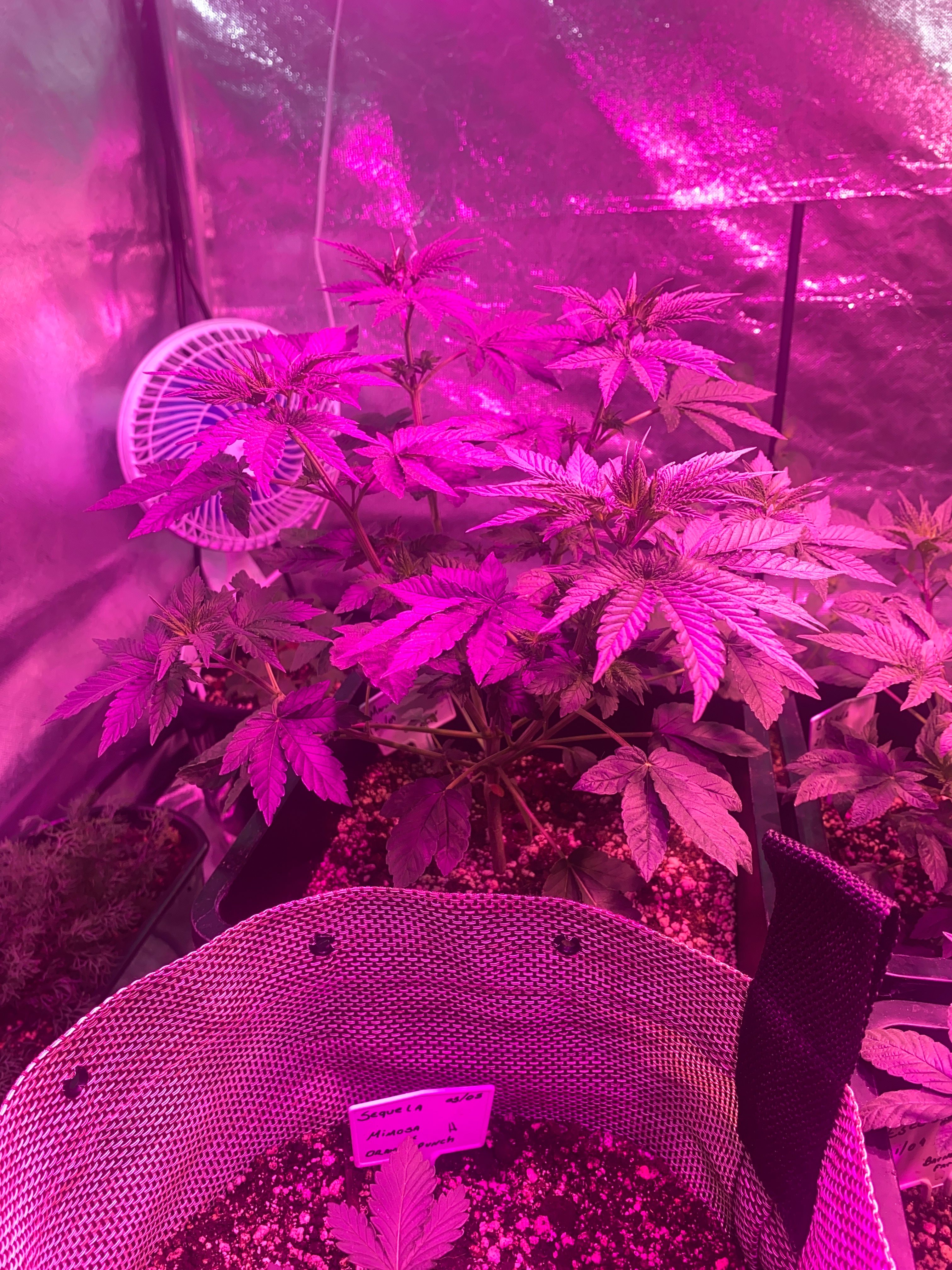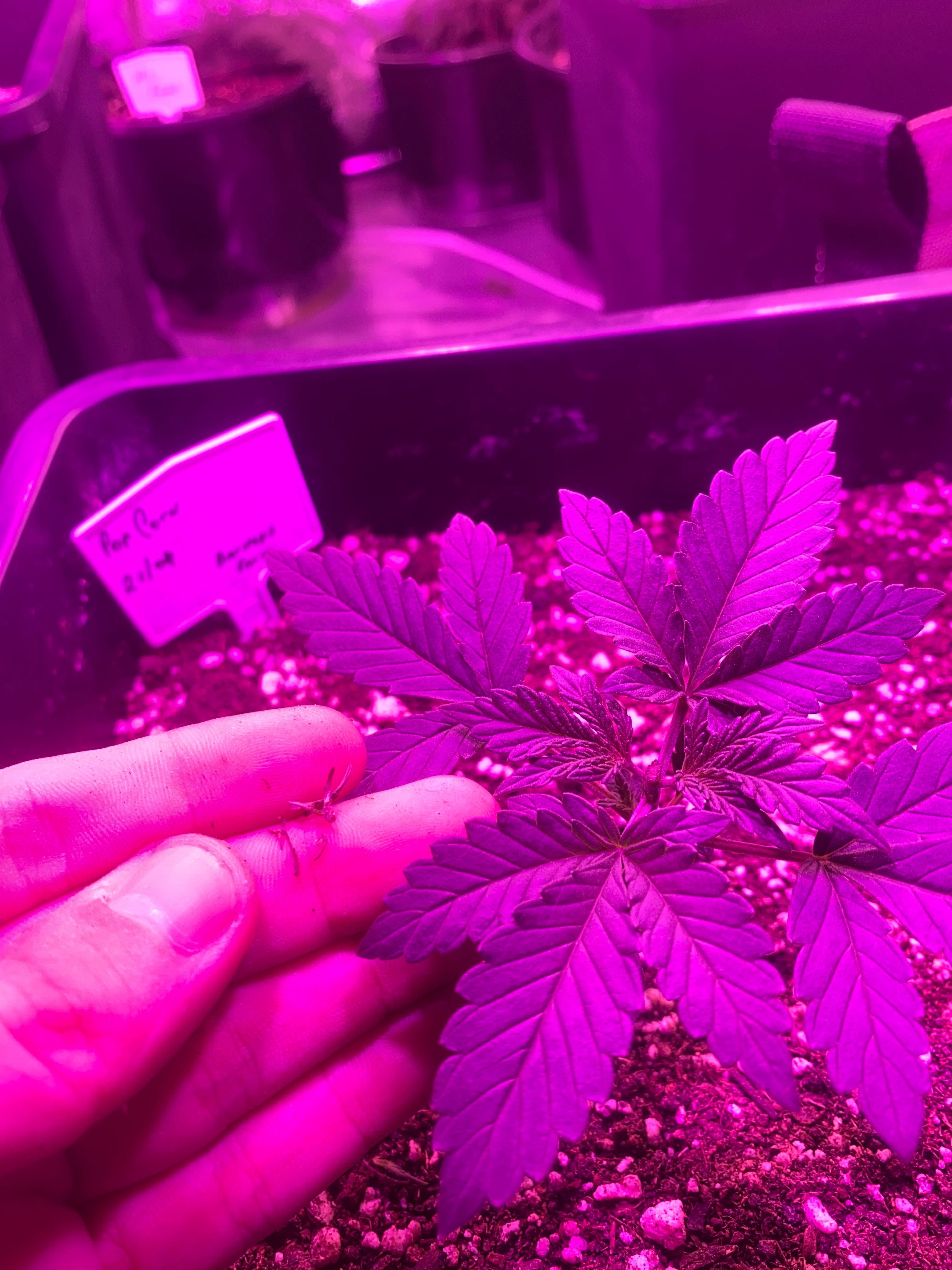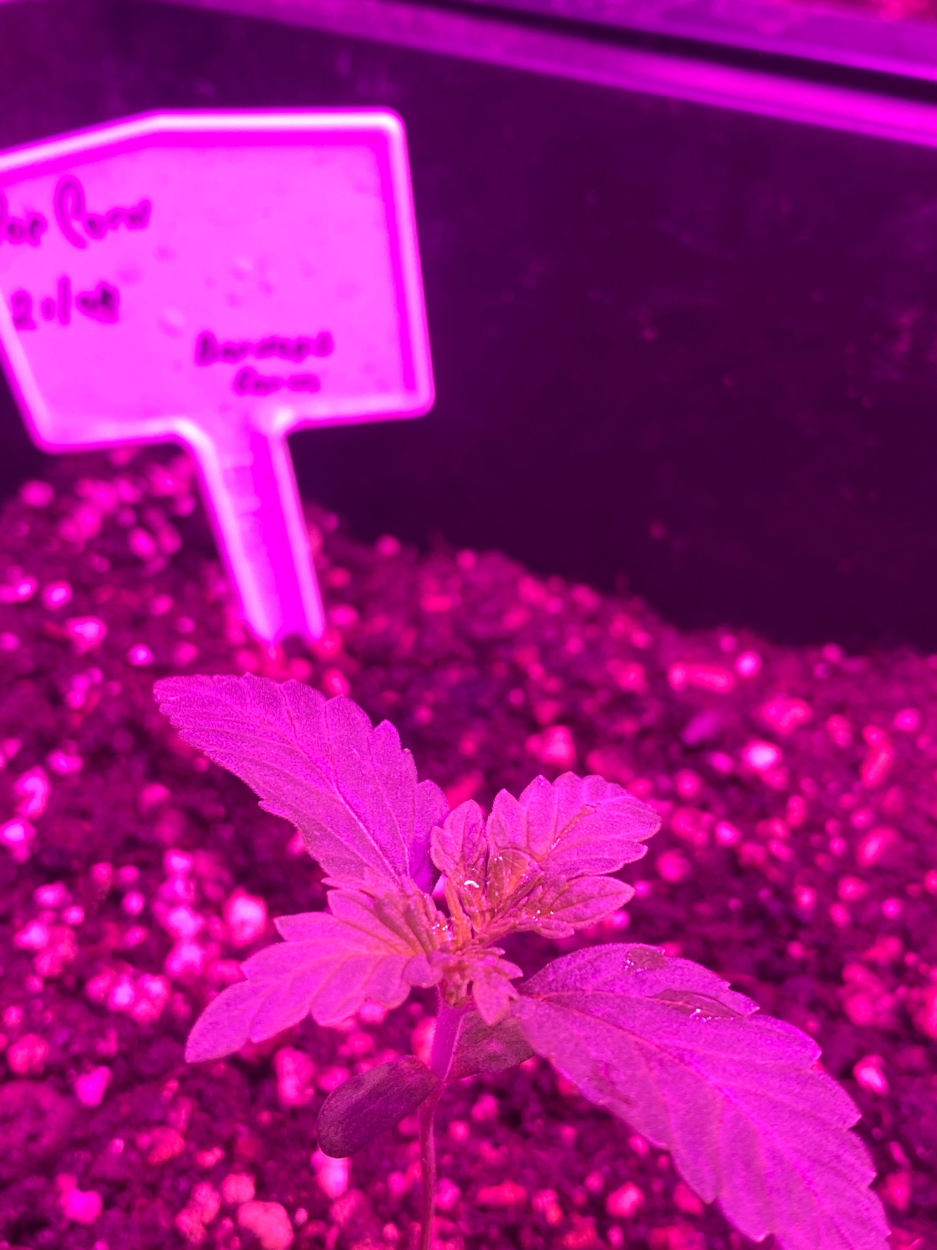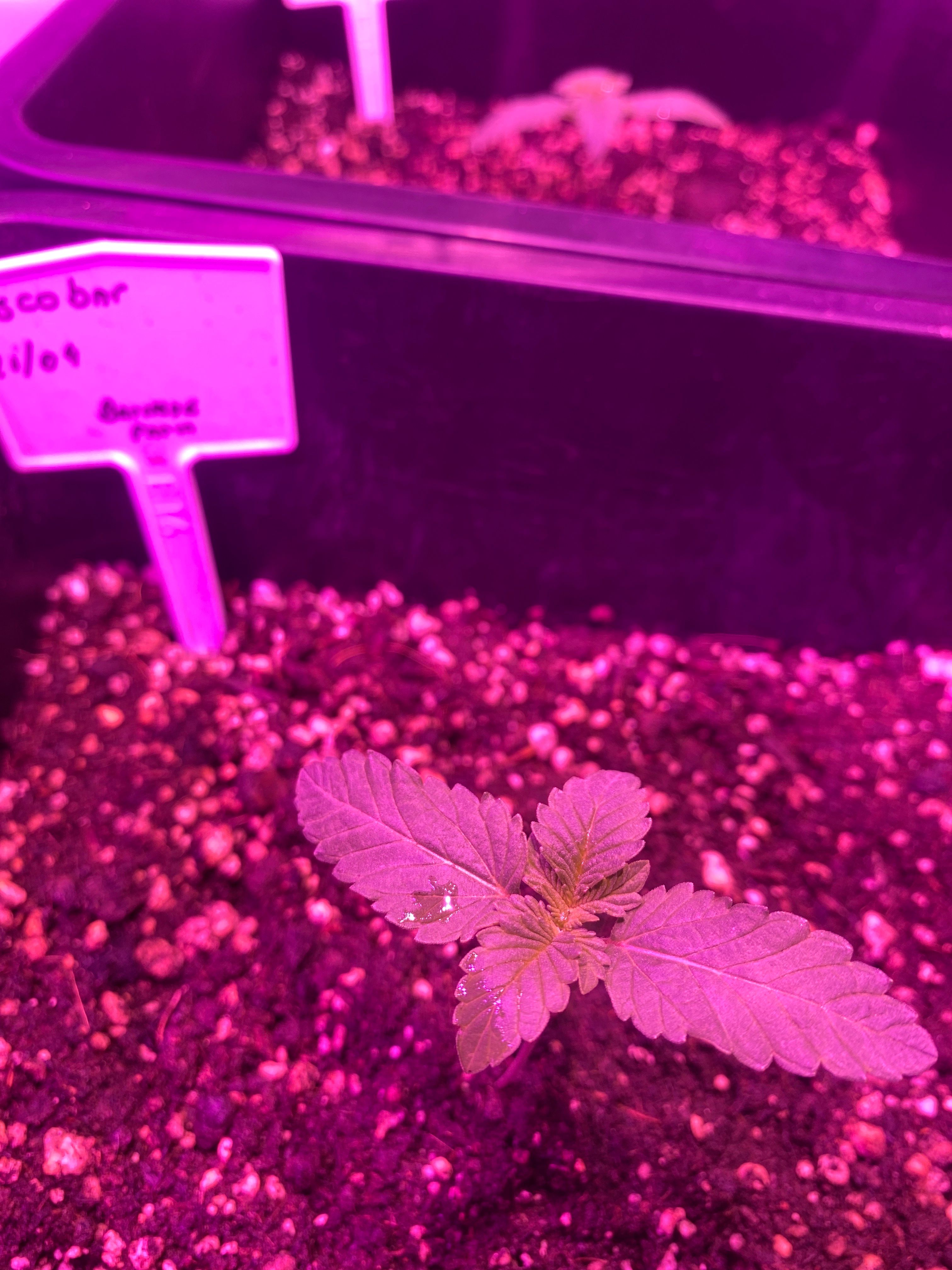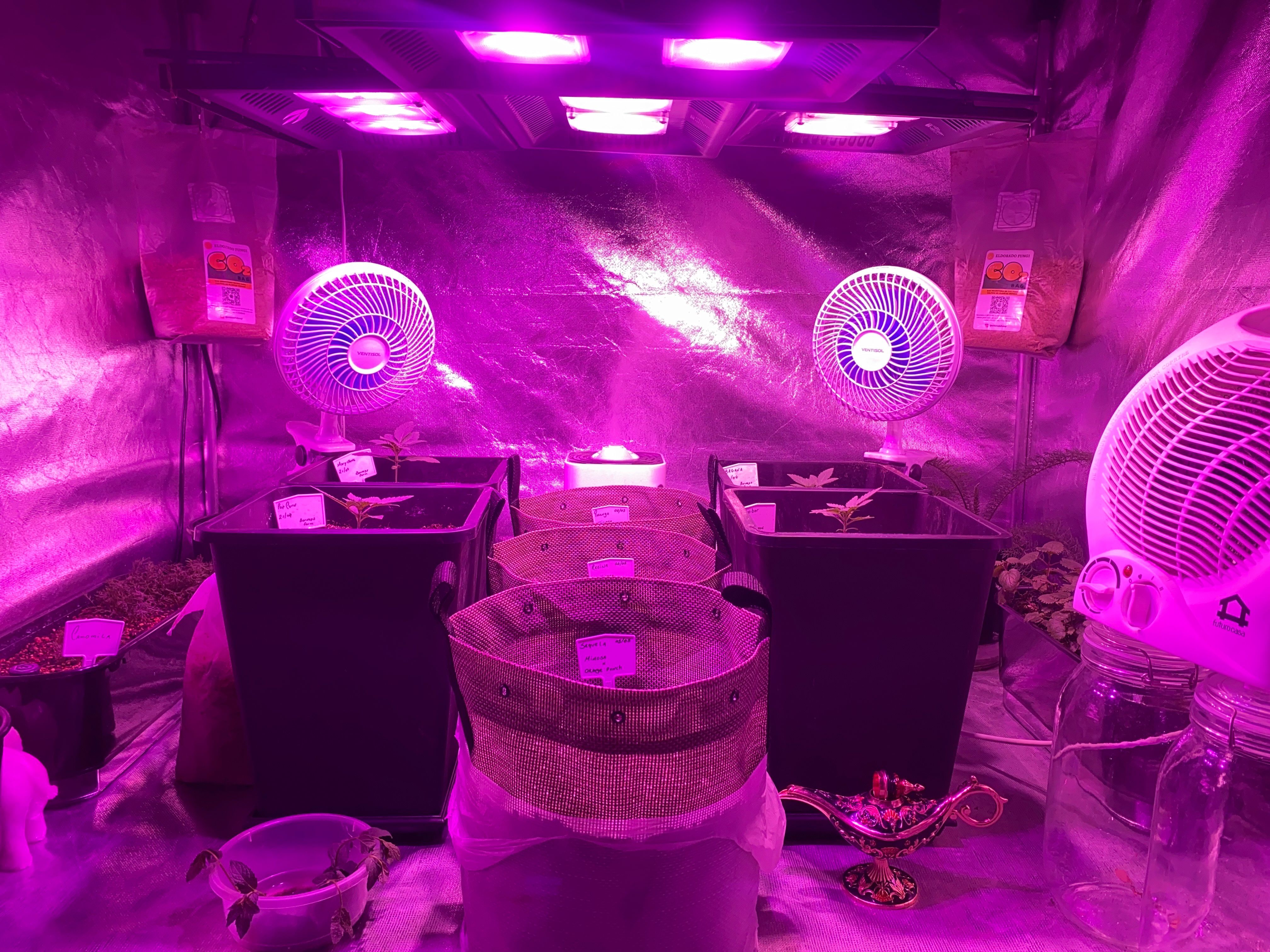 Plantas saudáveis. Amarelos indo pro roxo em decorrência da natureza da strain. Lindas e já apresentando cheiro bom.