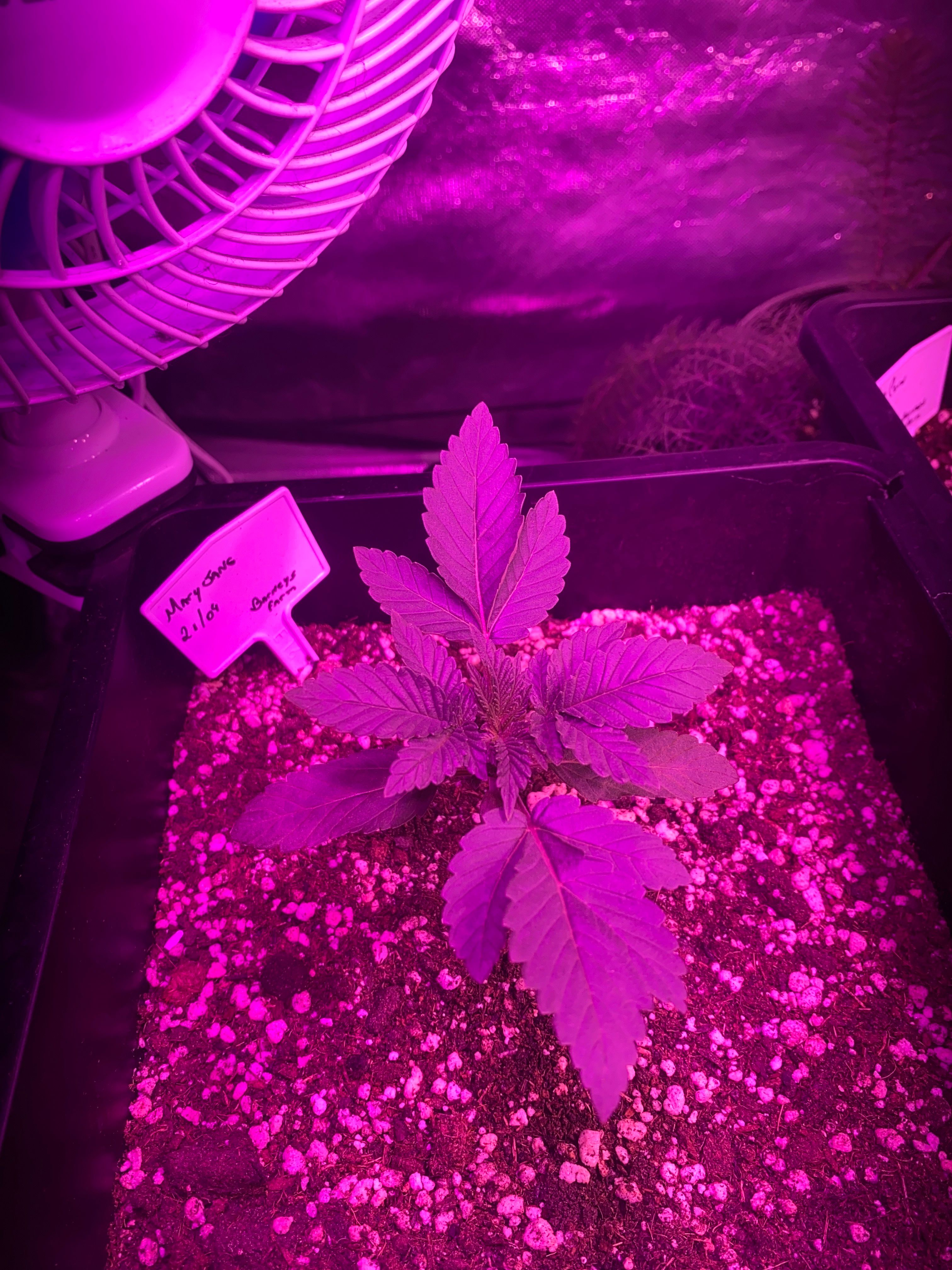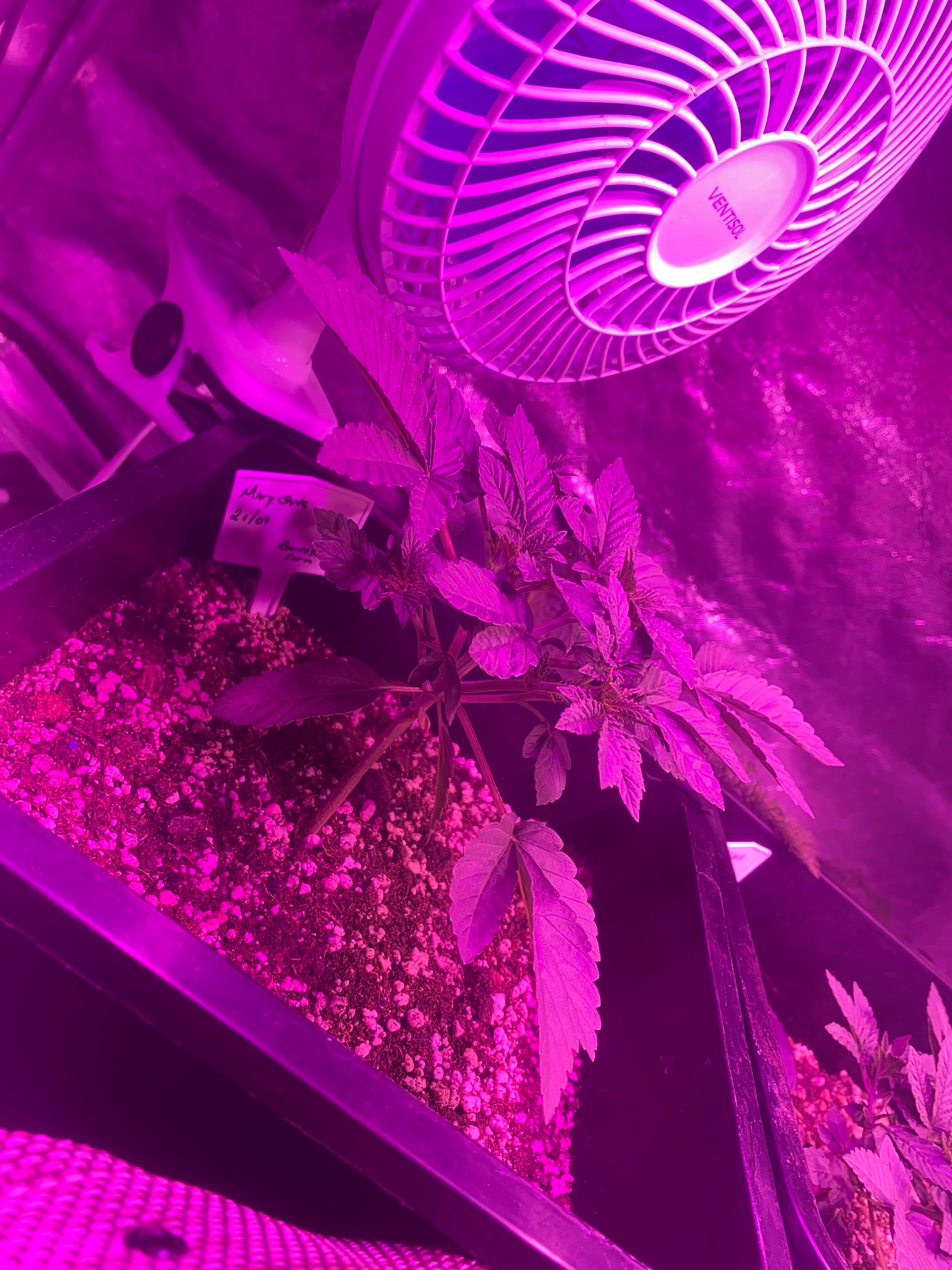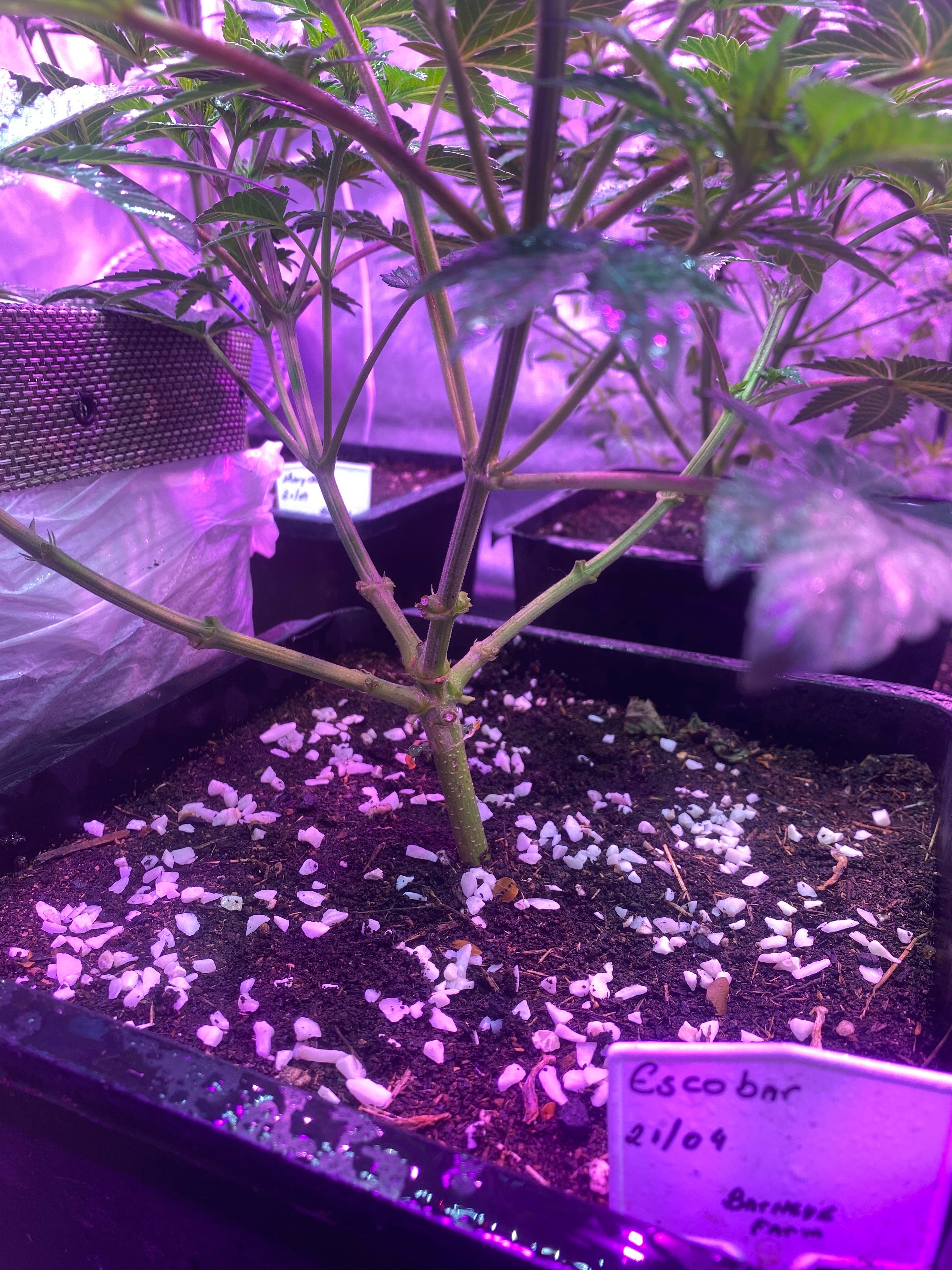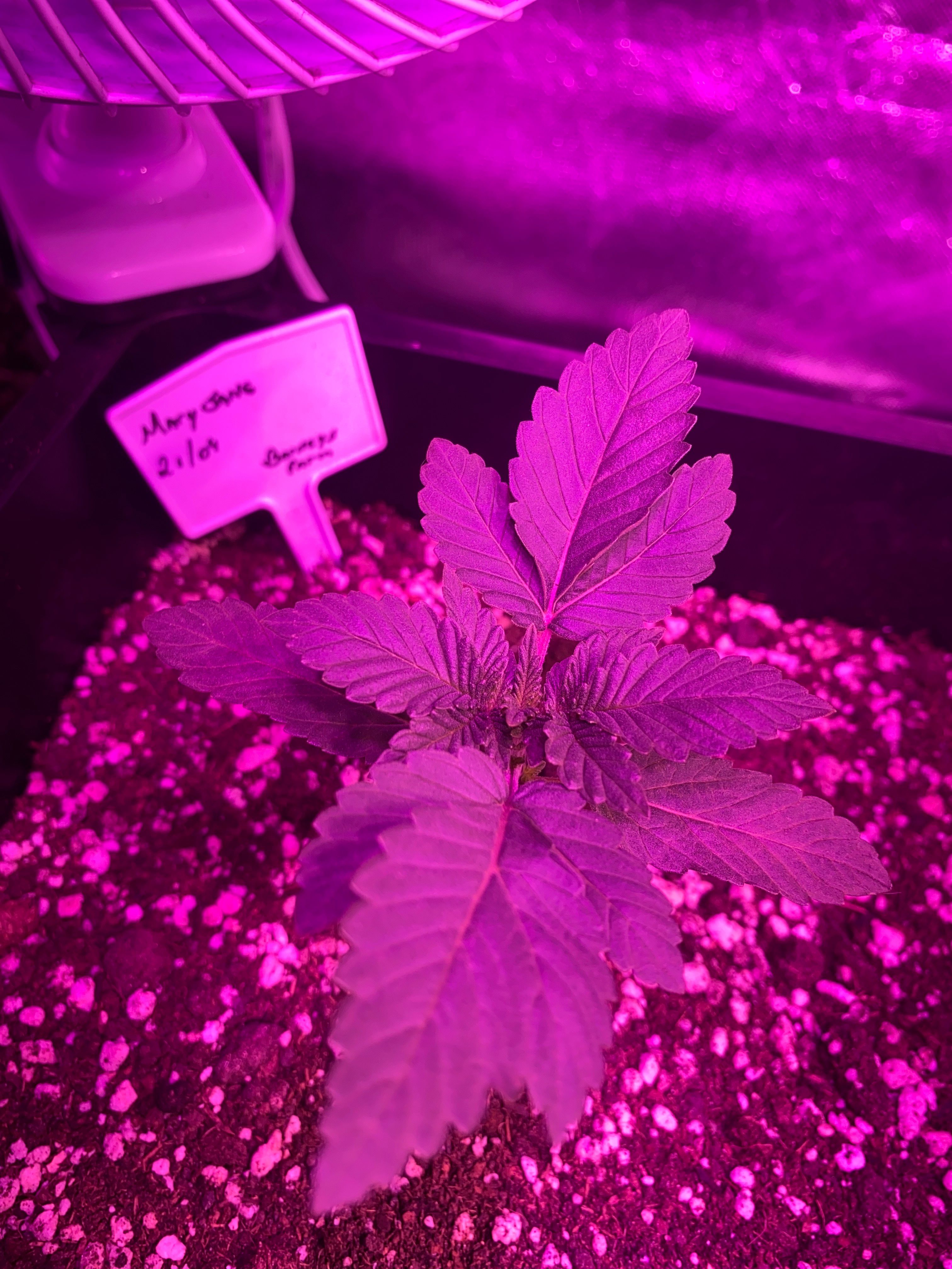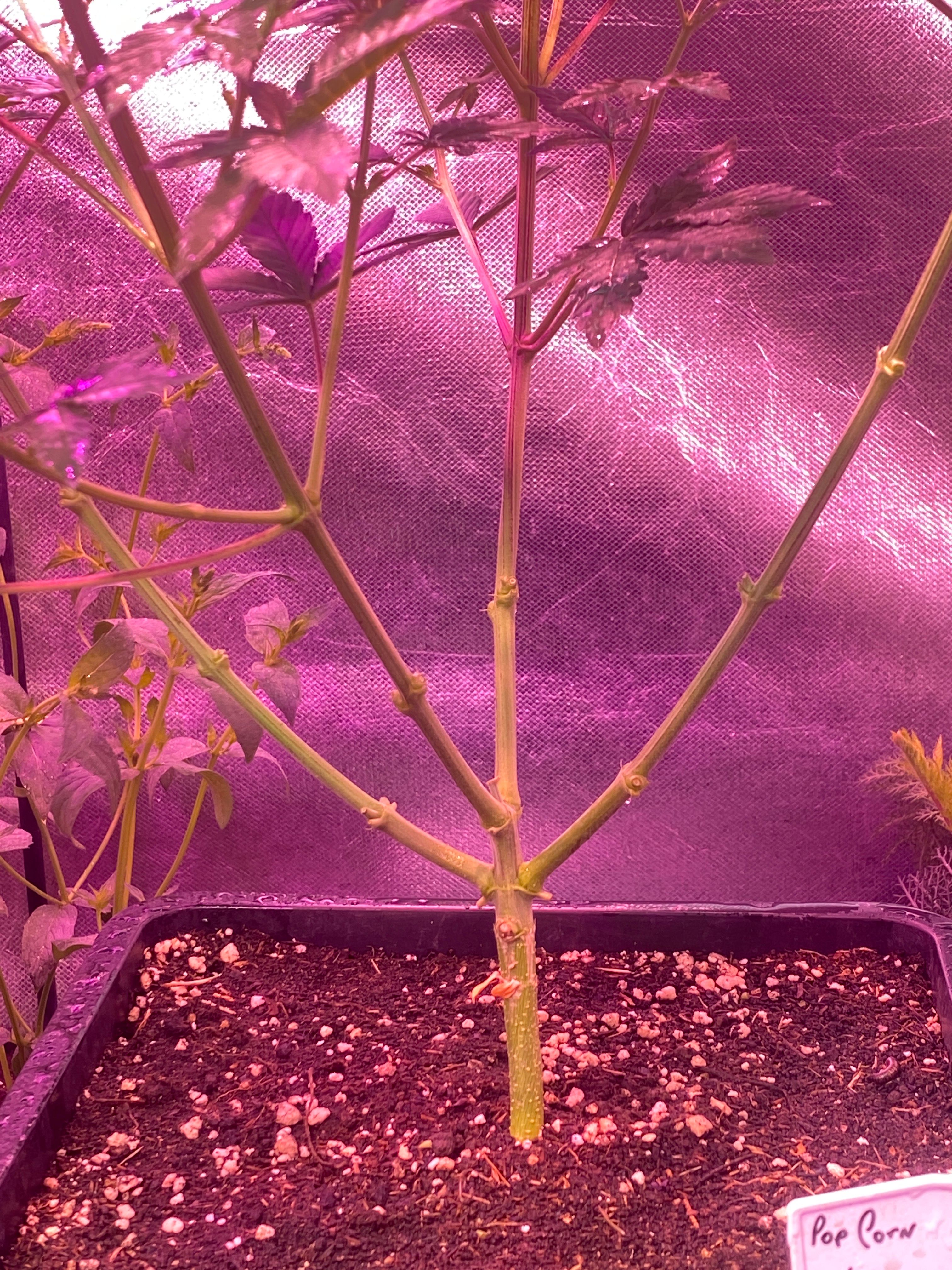 Plantas saudáveis. Amarelos indo pro roxo em decorrência da natureza da strain. Lindas e já apresentando cheiro bom.