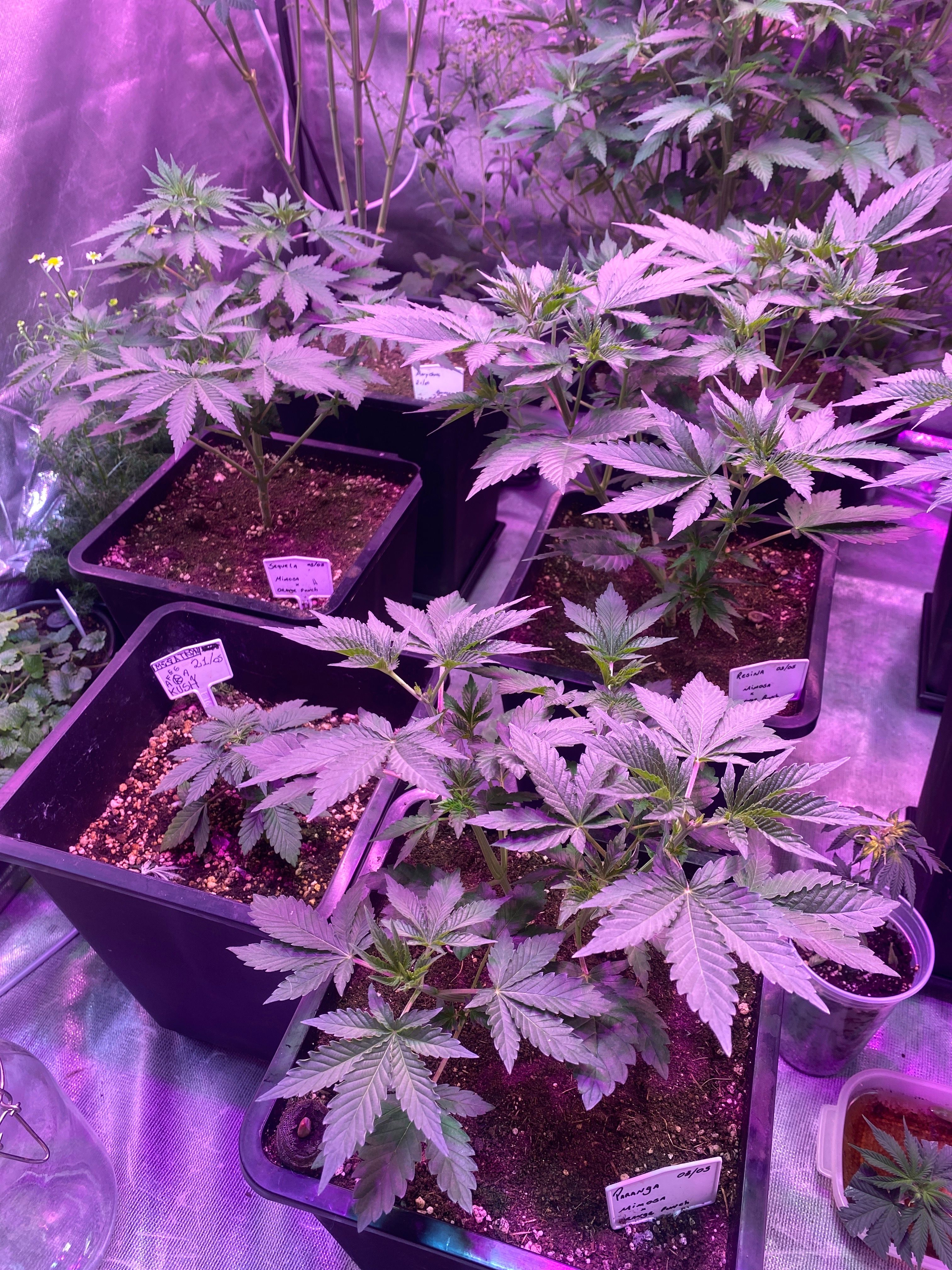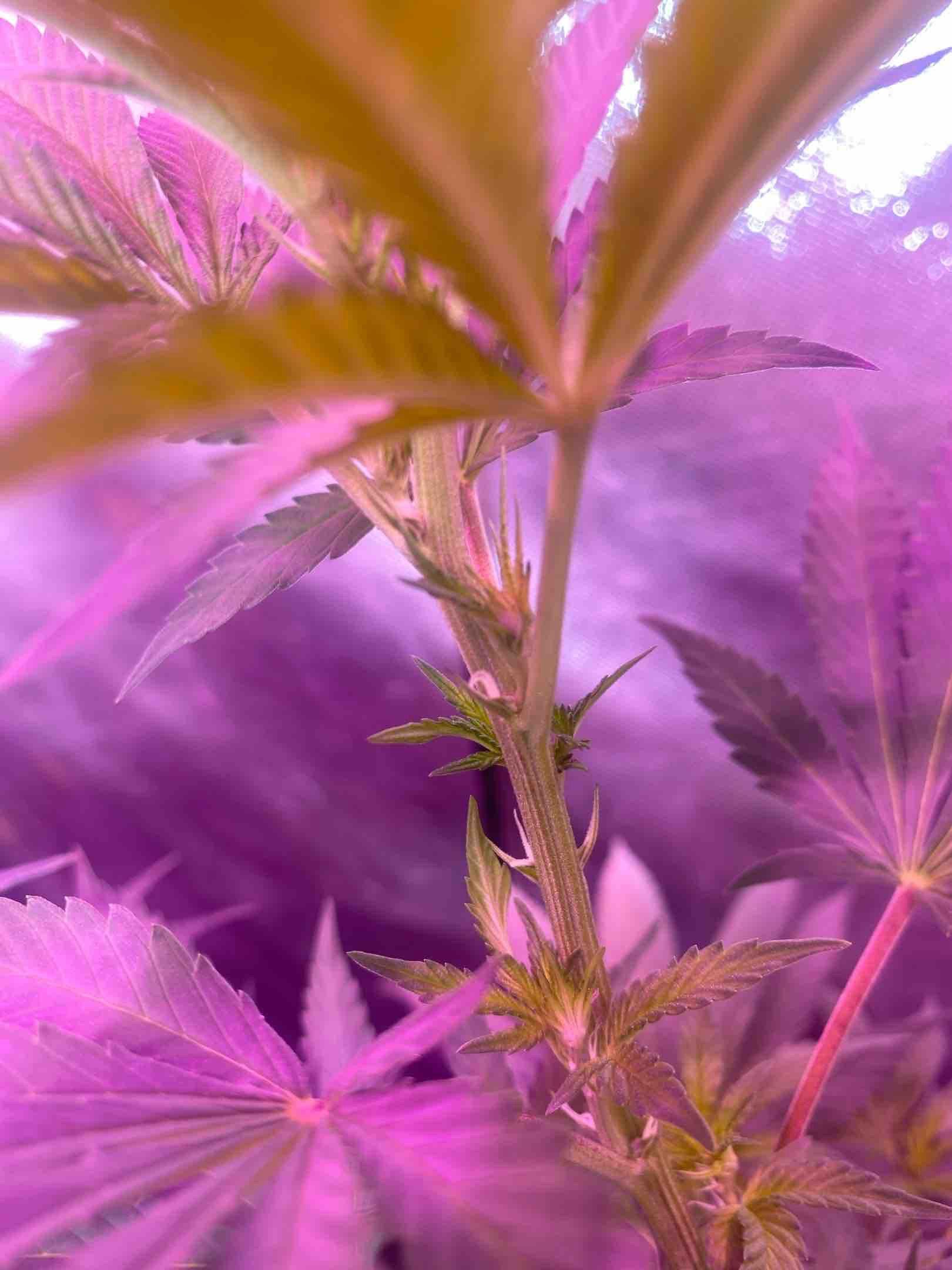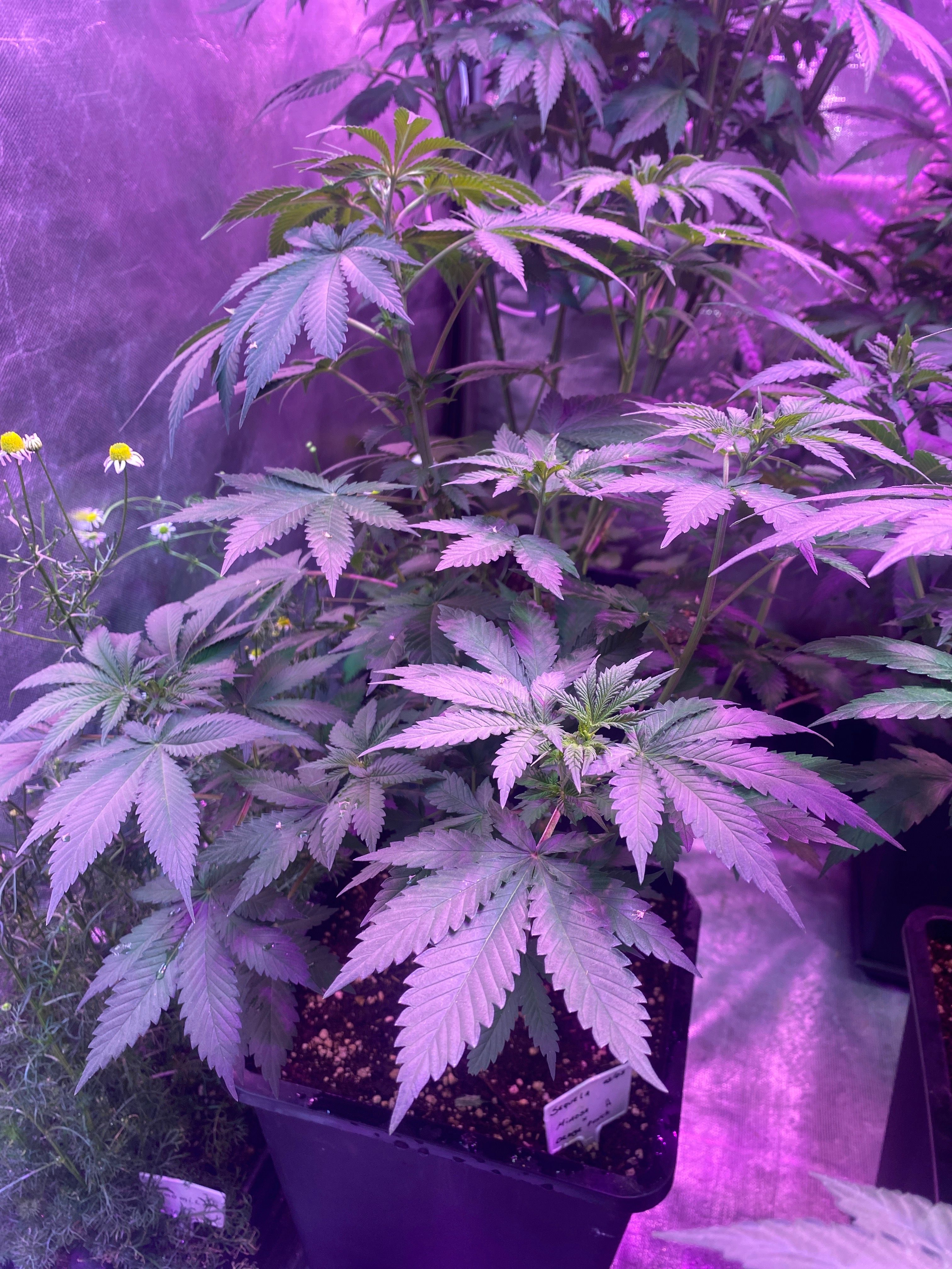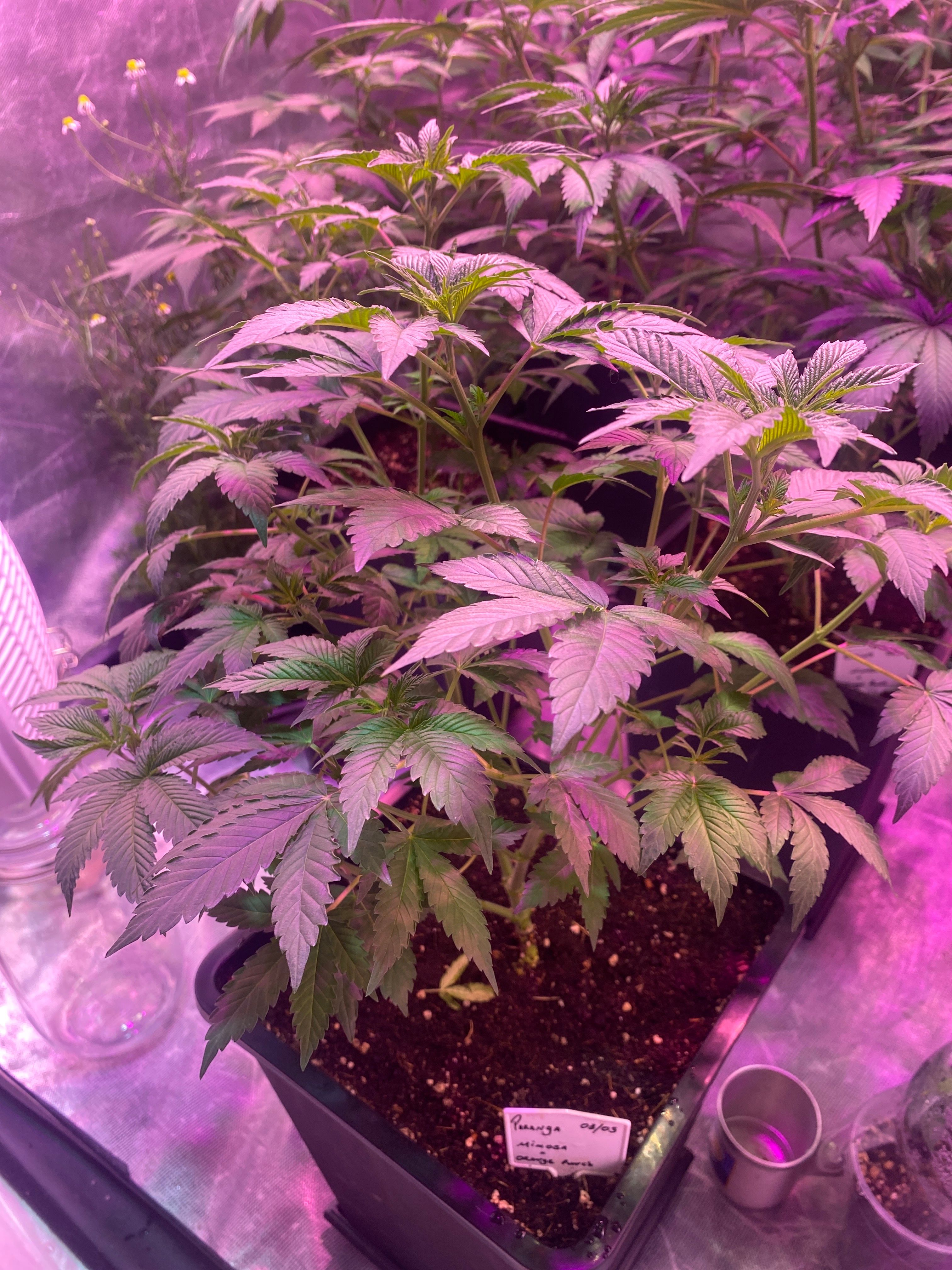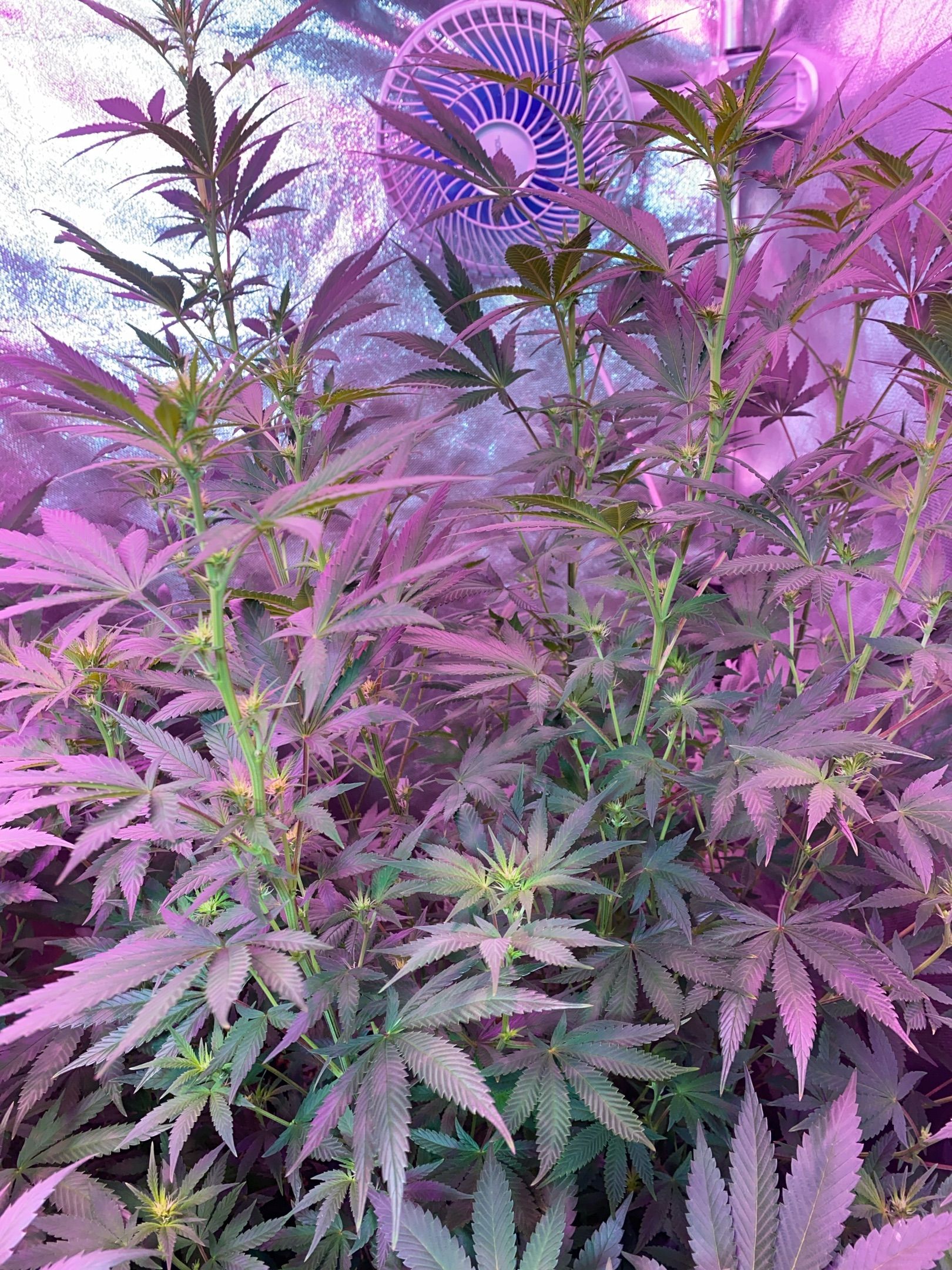 Plantas saudáveis. Amarelos indo pro roxo em decorrência da natureza da strain. Lindas e já apresentando cheiro bom.