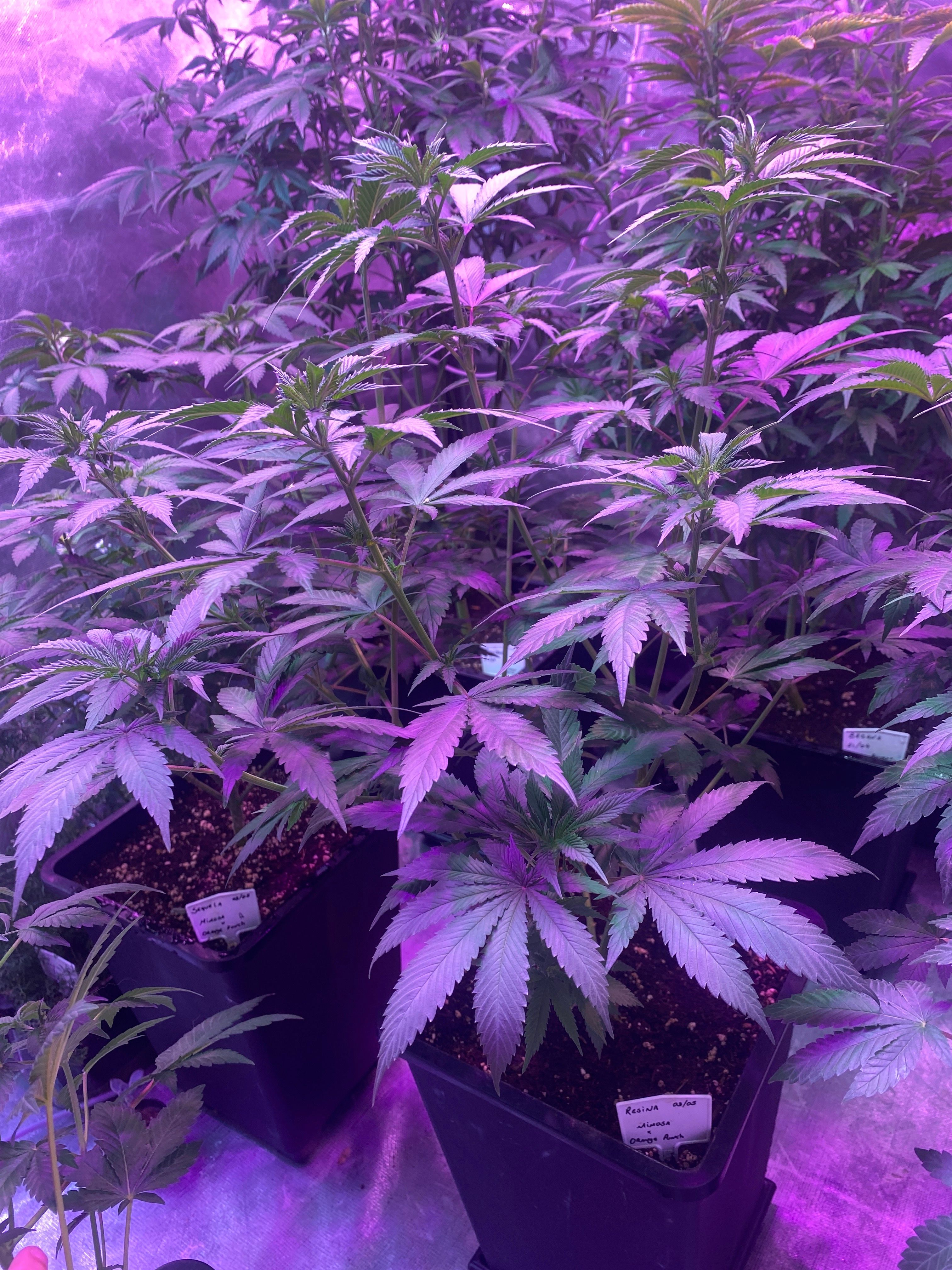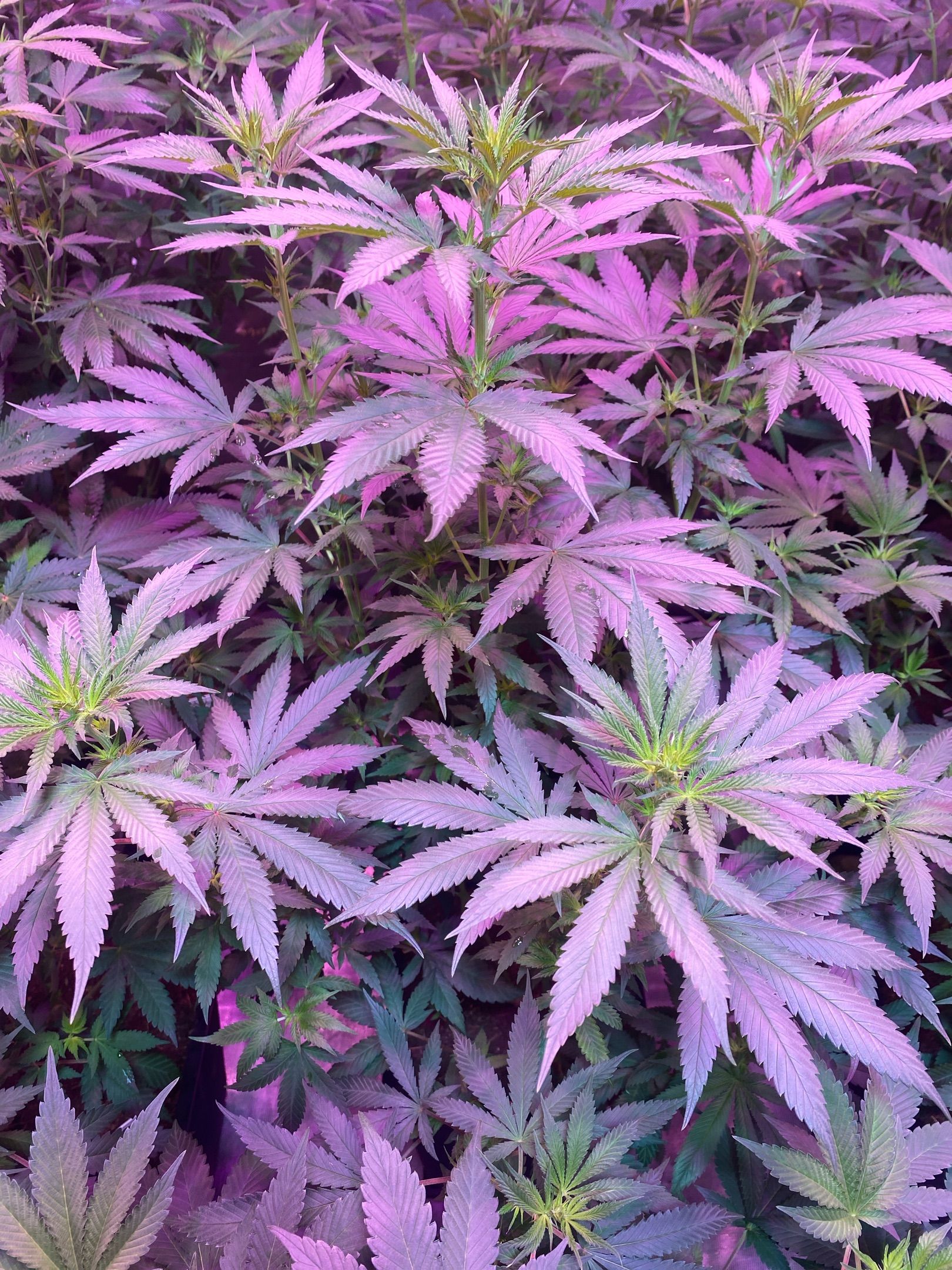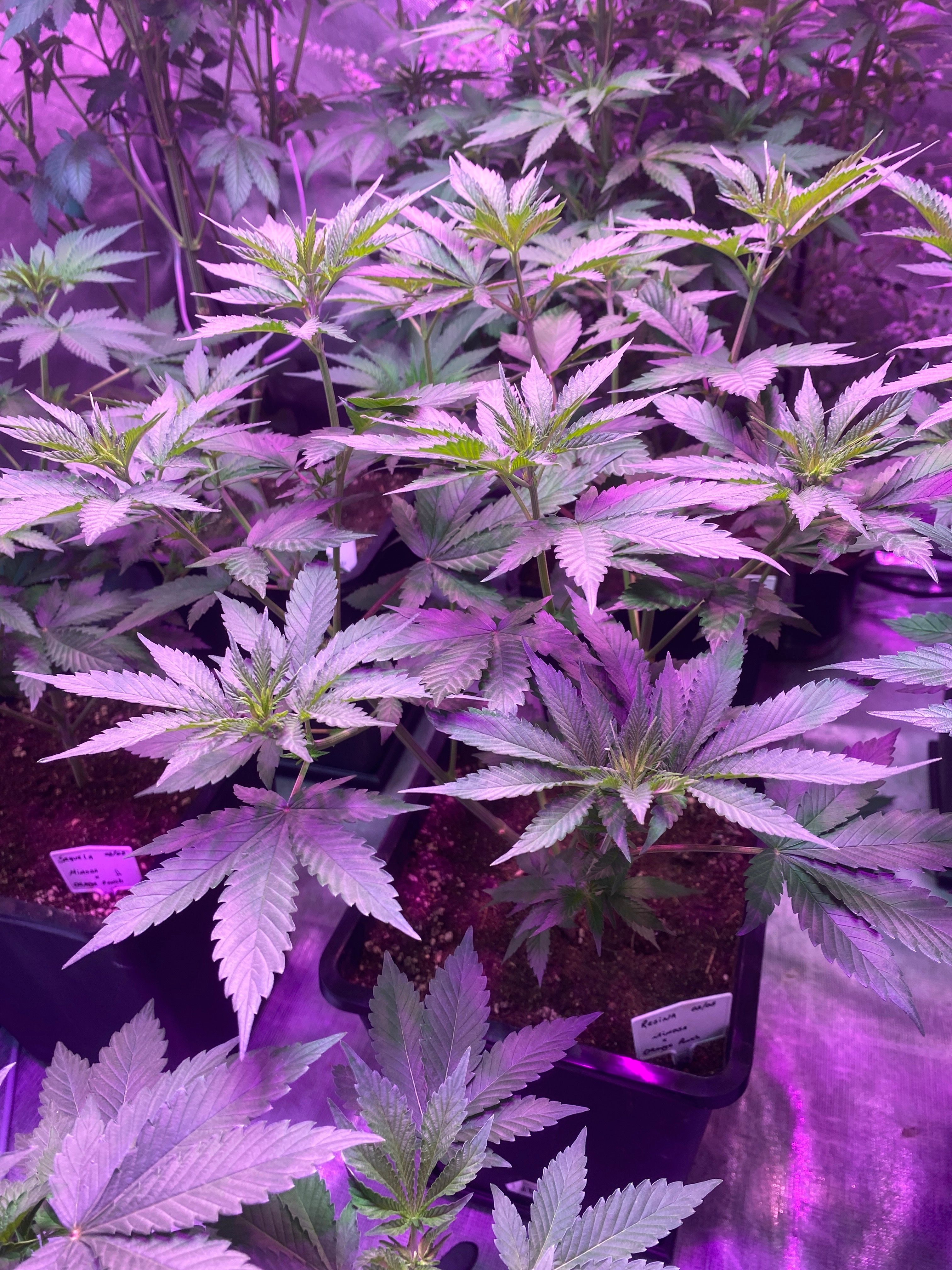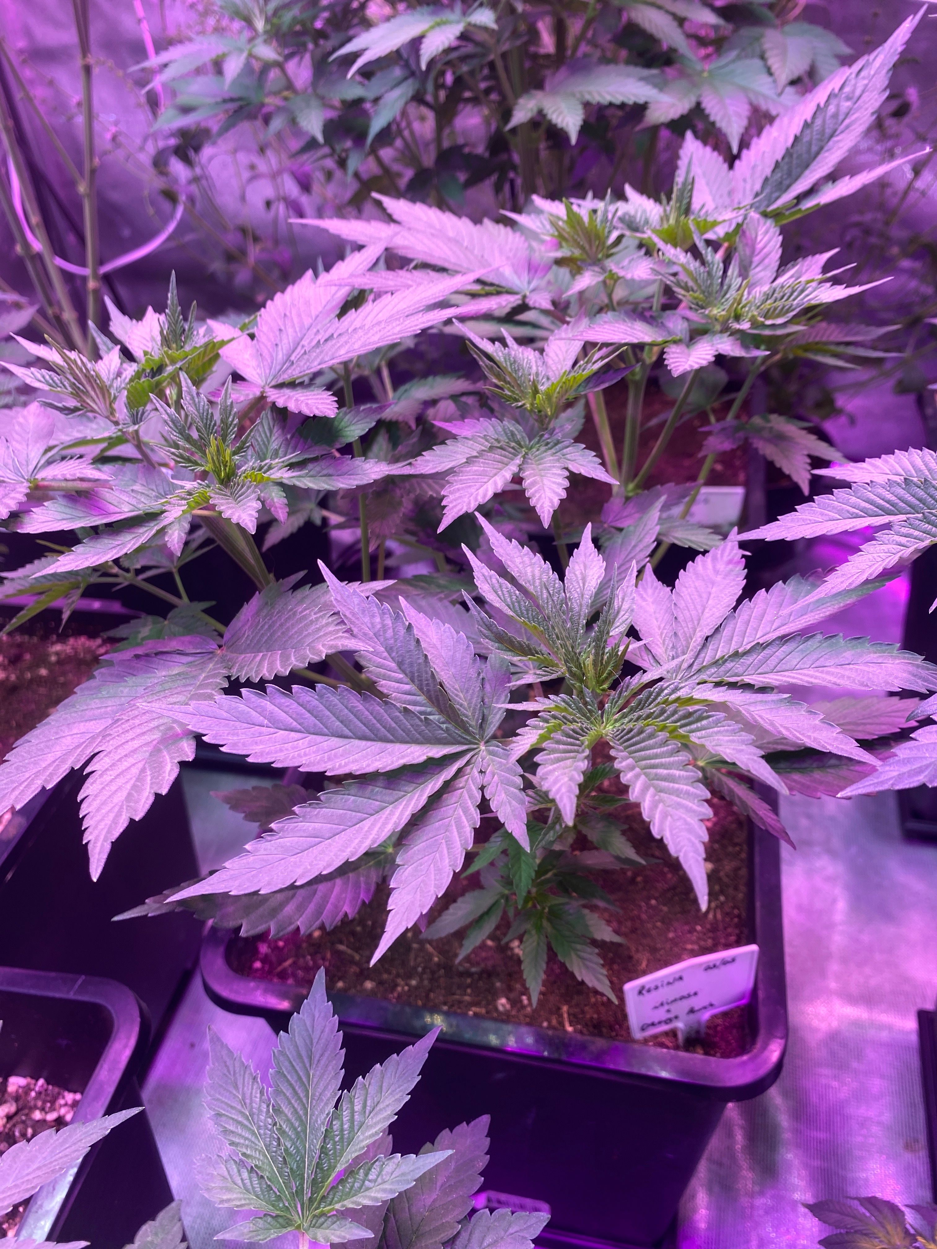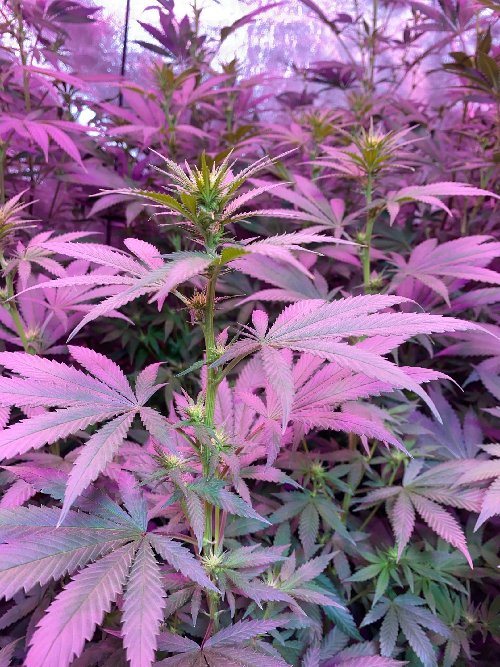 Plantas saudáveis. Amarelos indo pro roxo em decorrência da natureza da strain. Lindas e já apresentando cheiro bom.