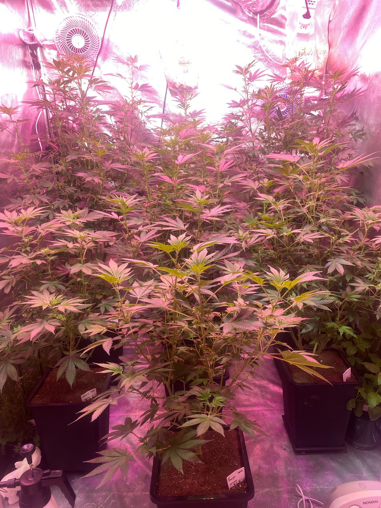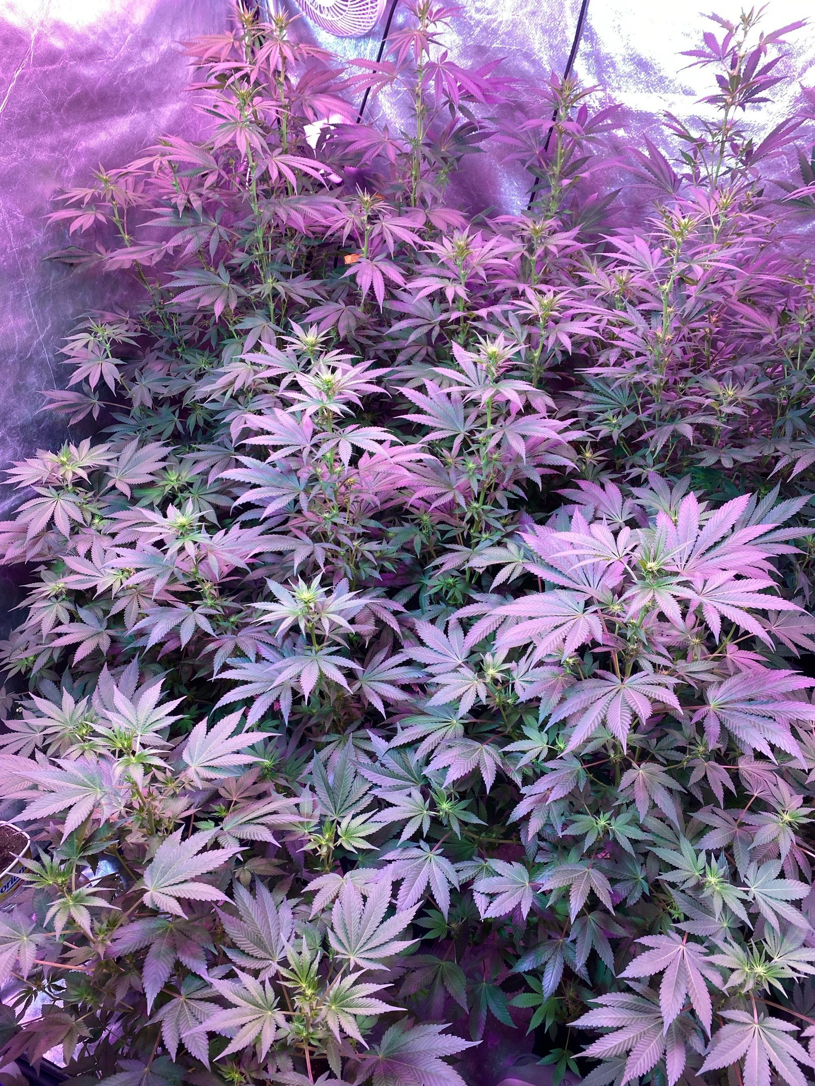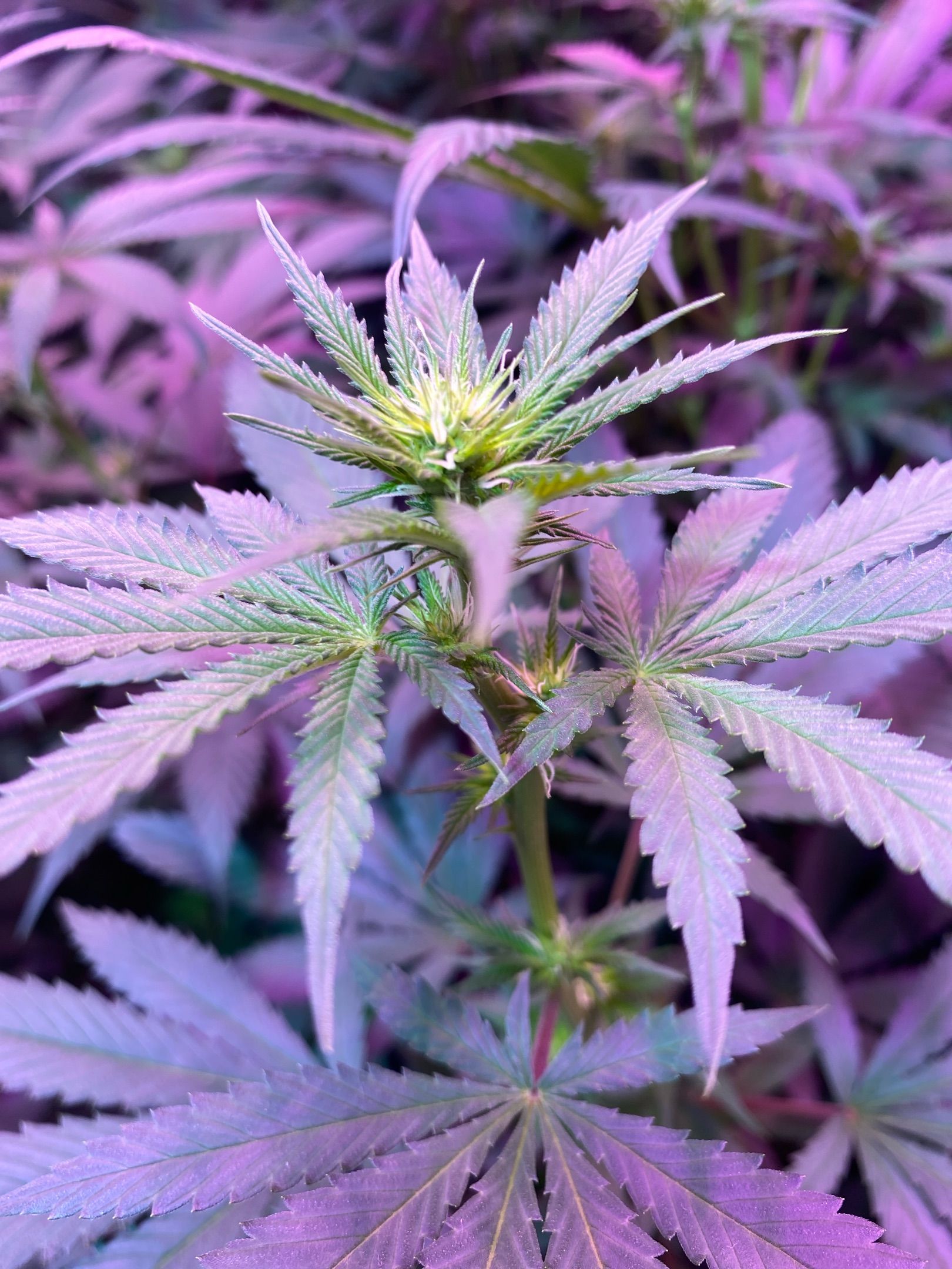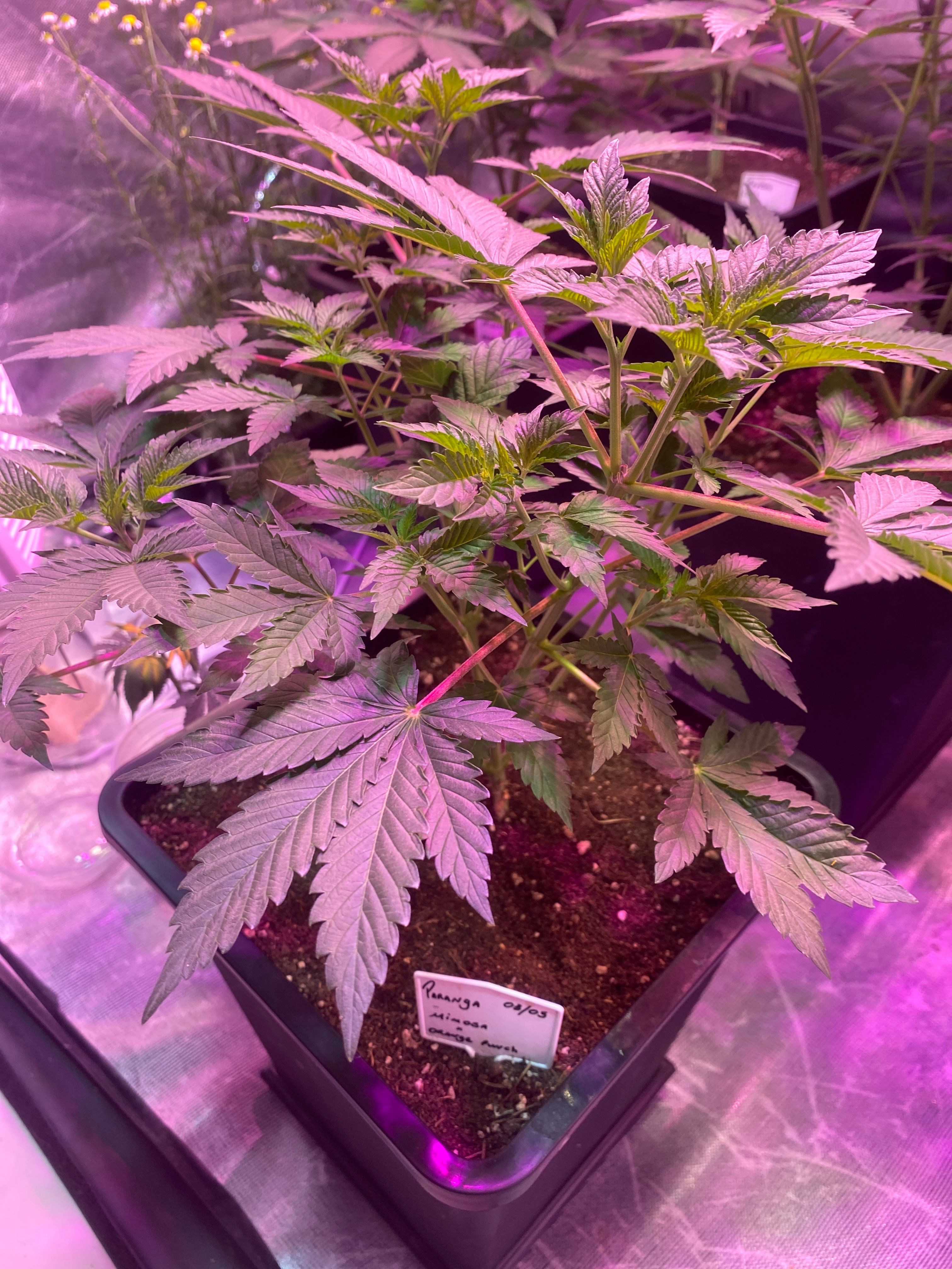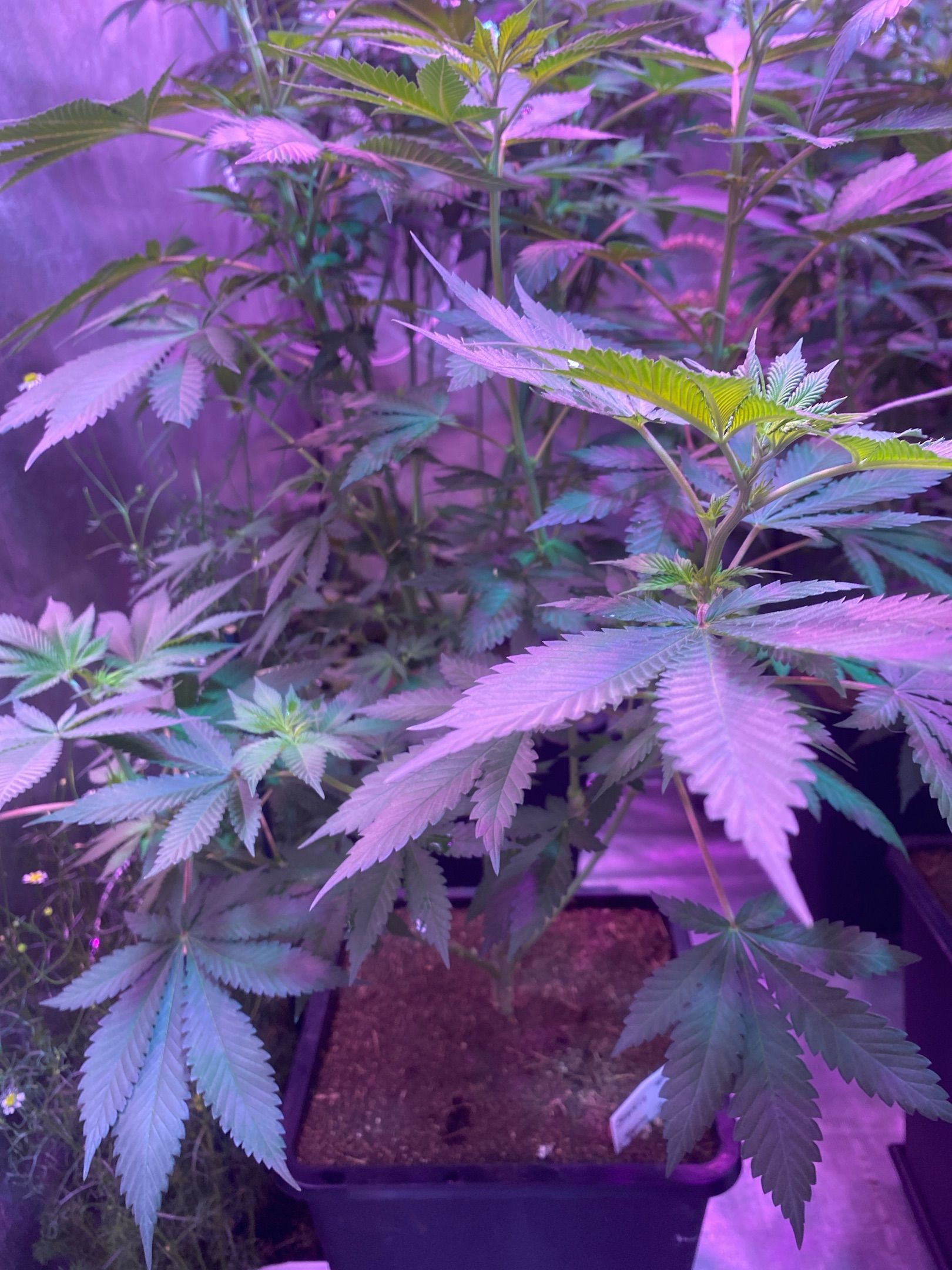 Plantas saudáveis. Amarelos indo pro roxo em decorrência da natureza da strain. Lindas e já apresentando cheiro bom.