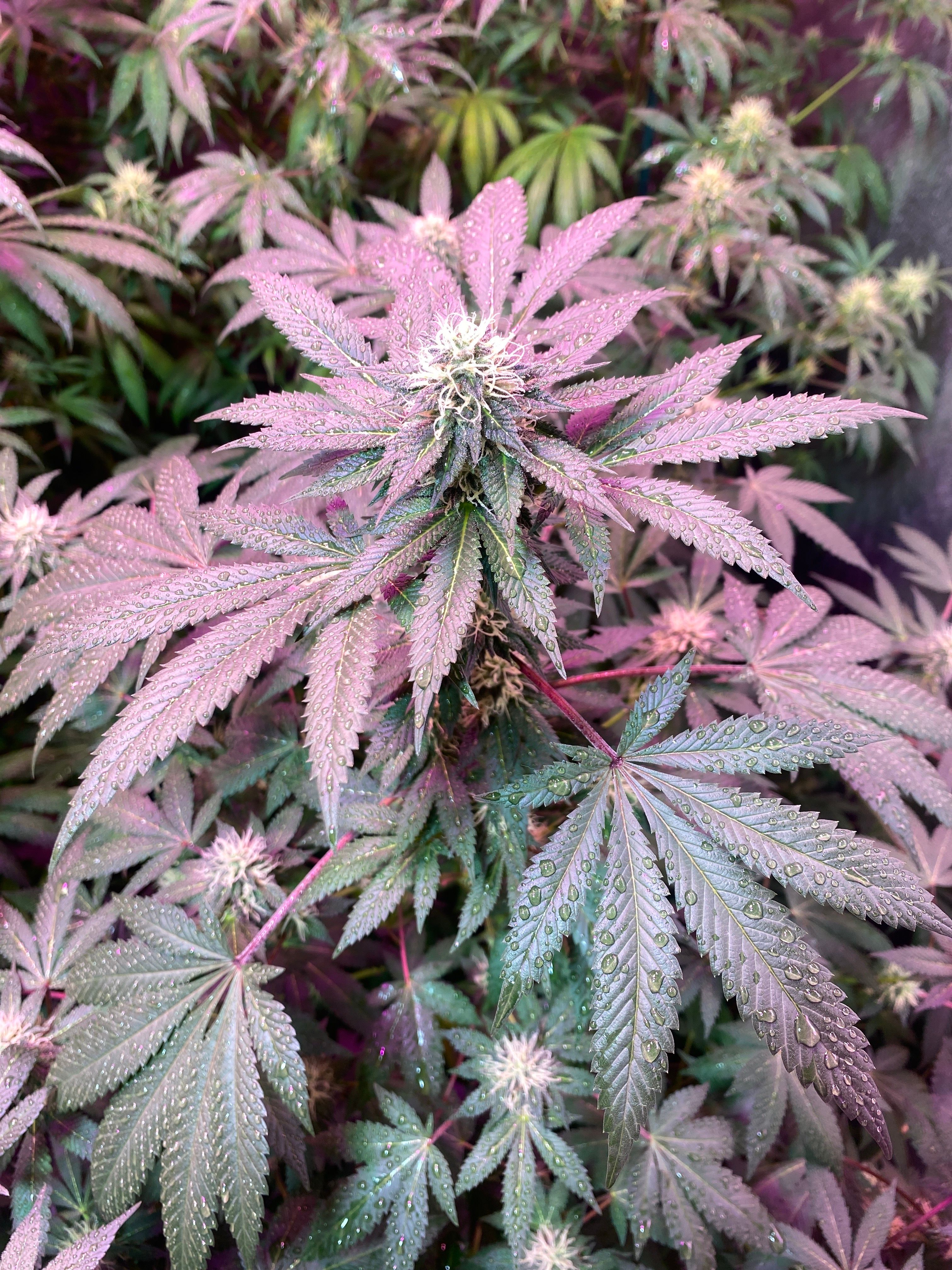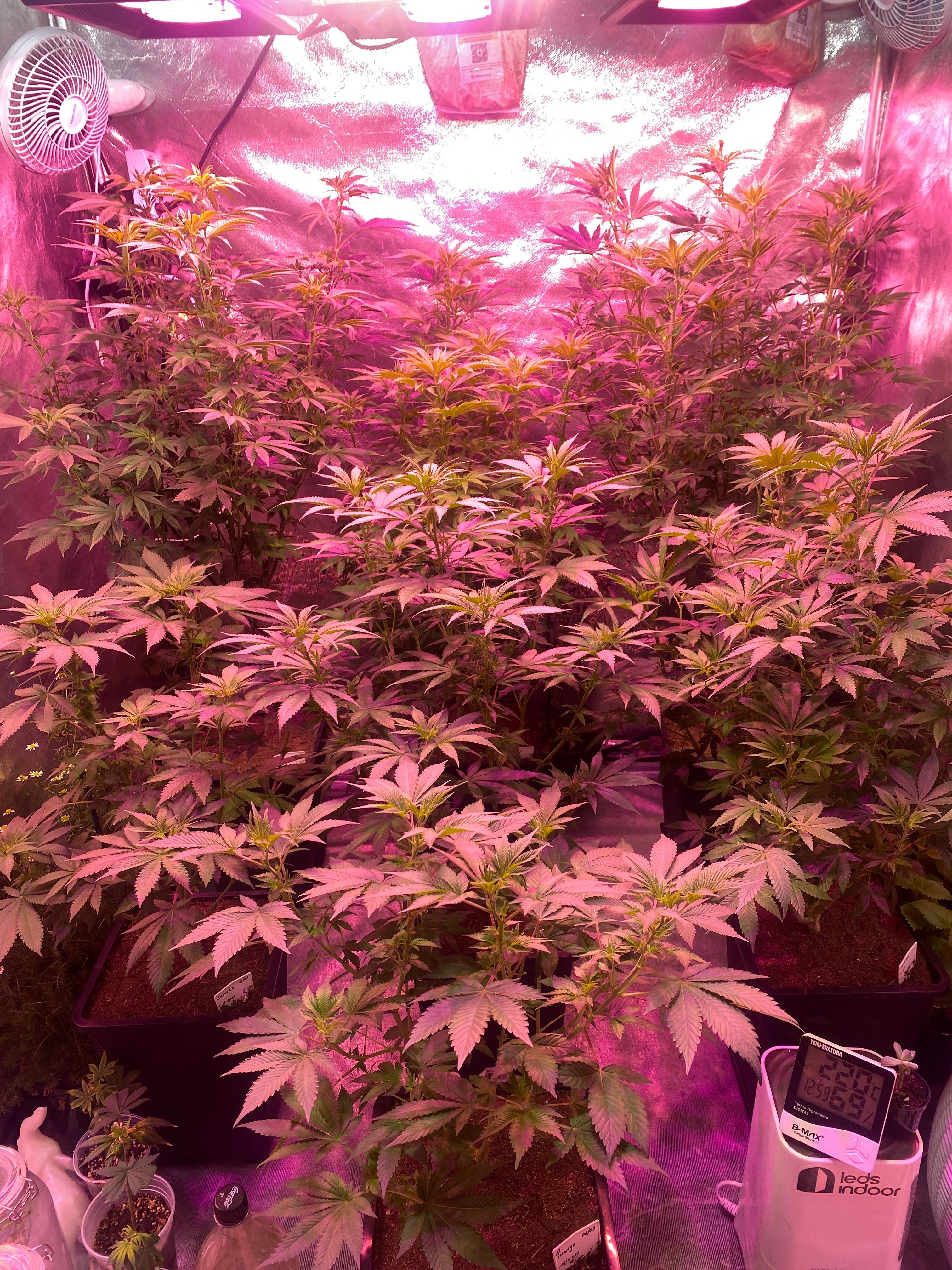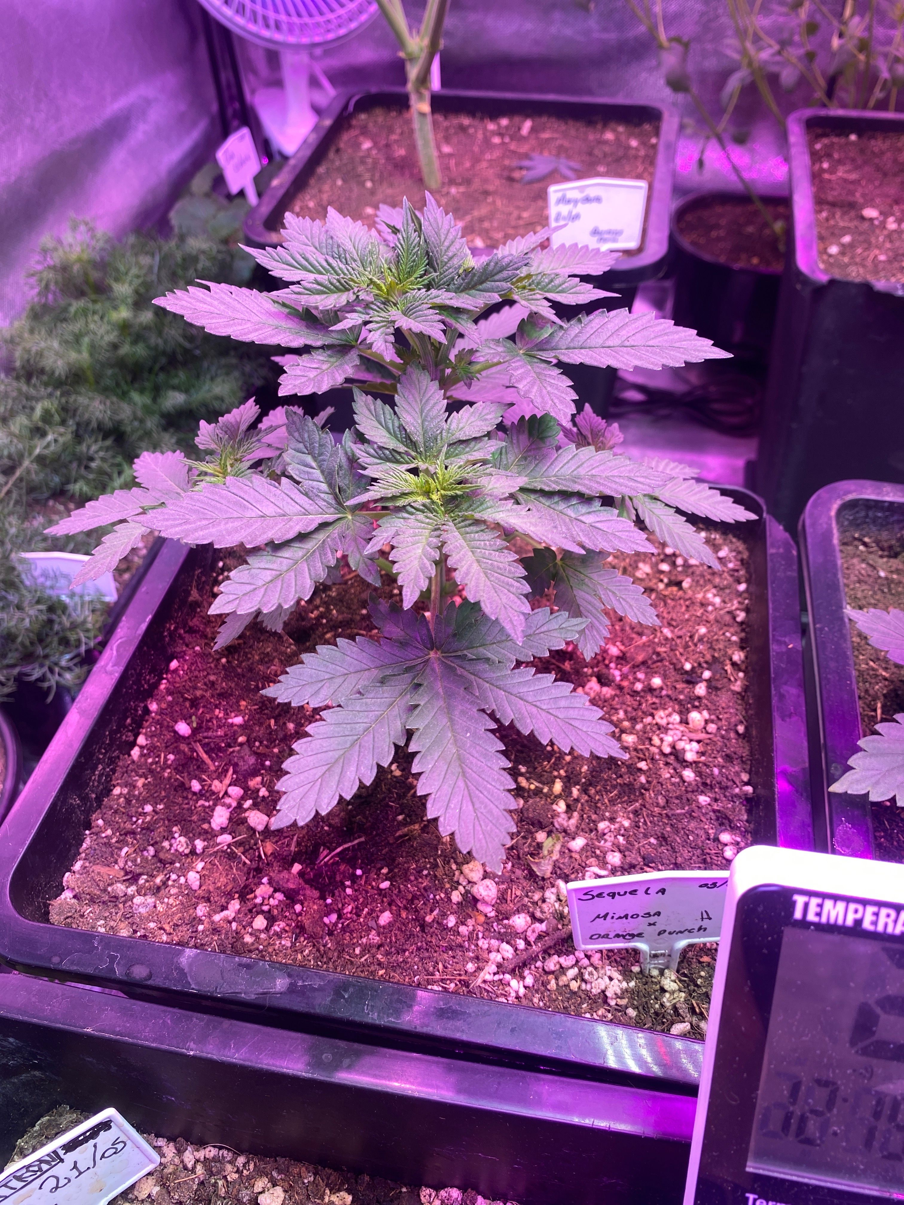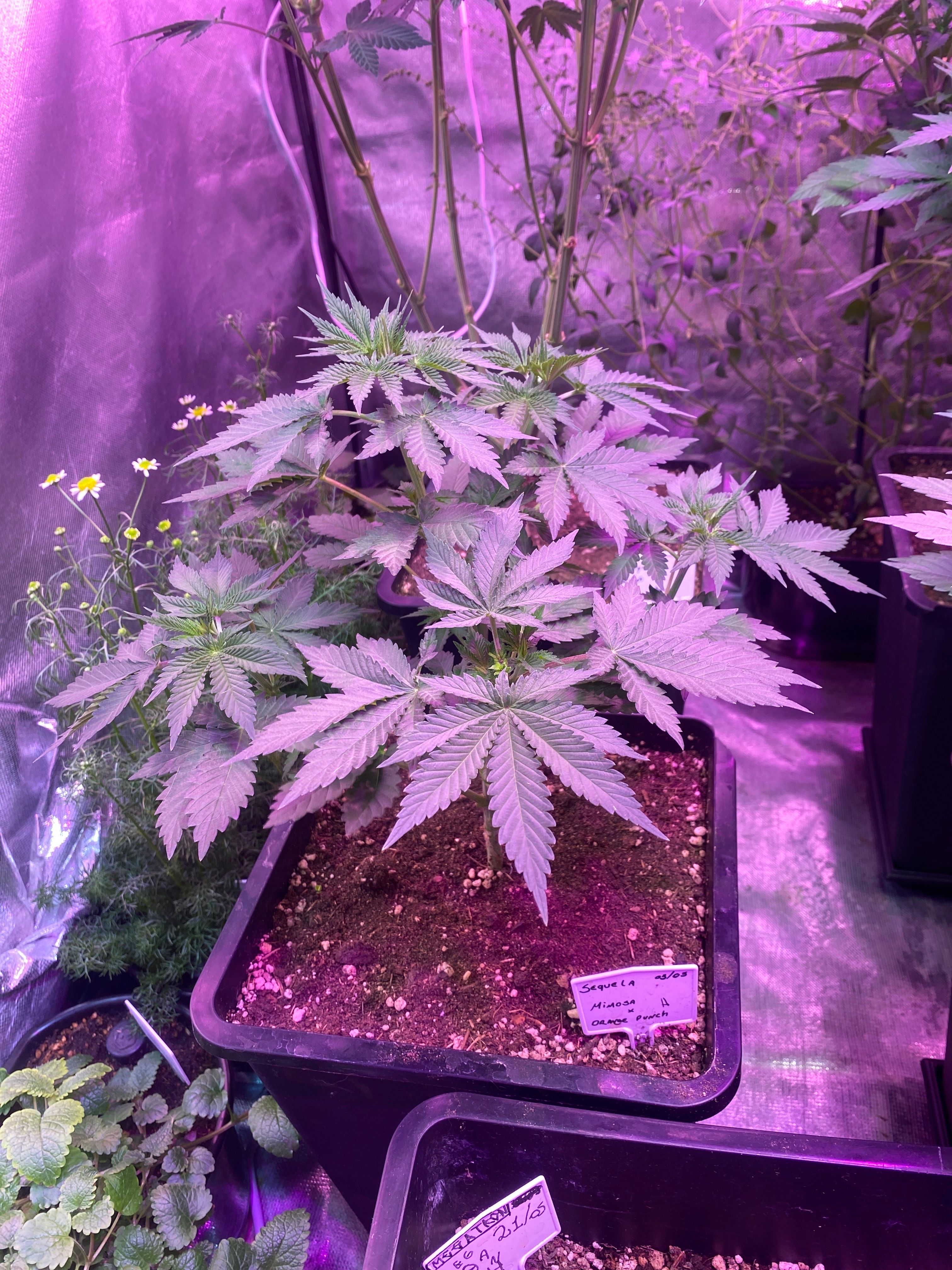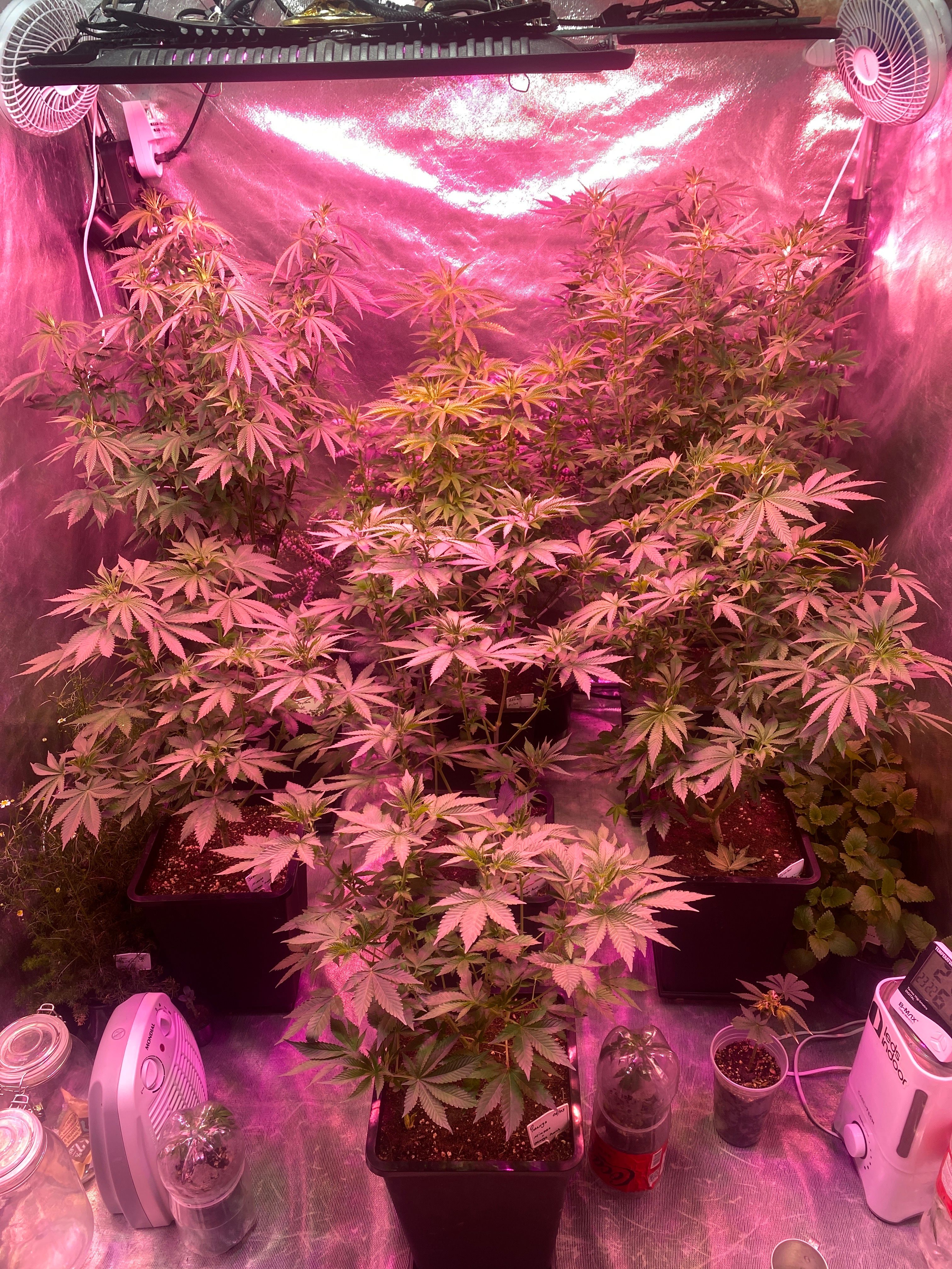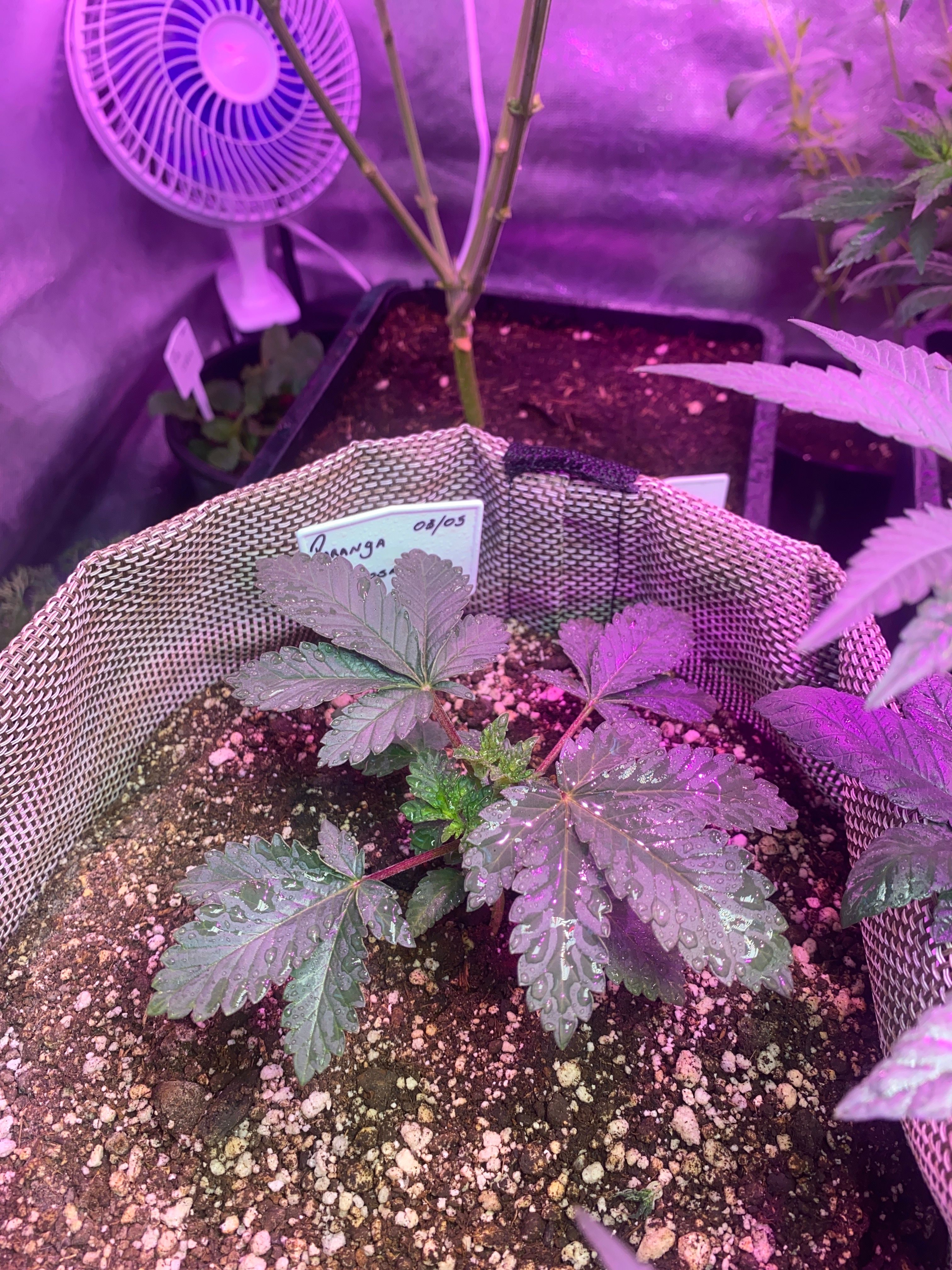 Plantas saudáveis. Amarelos indo pro roxo em decorrência da natureza da strain. Lindas e já apresentando cheiro bom.