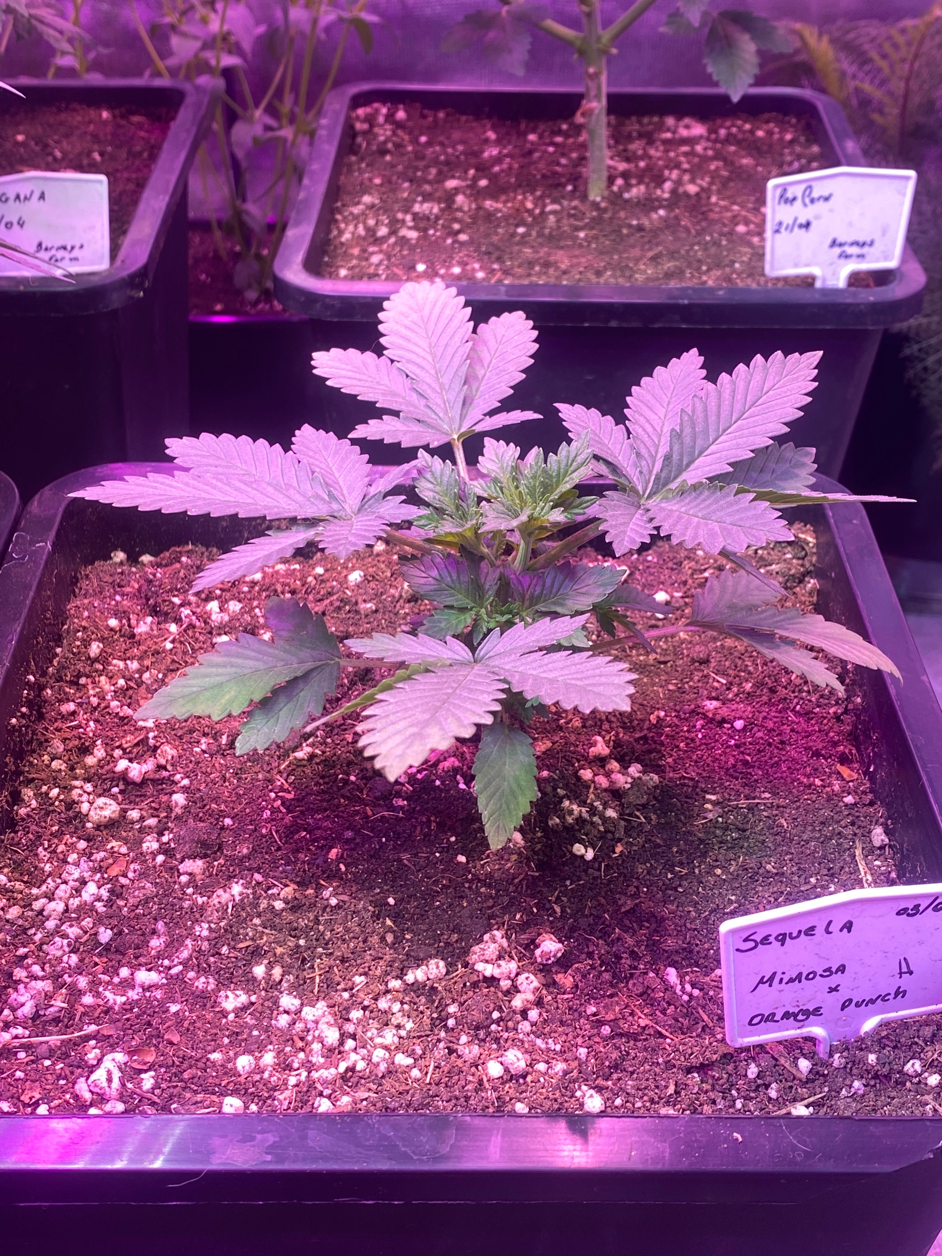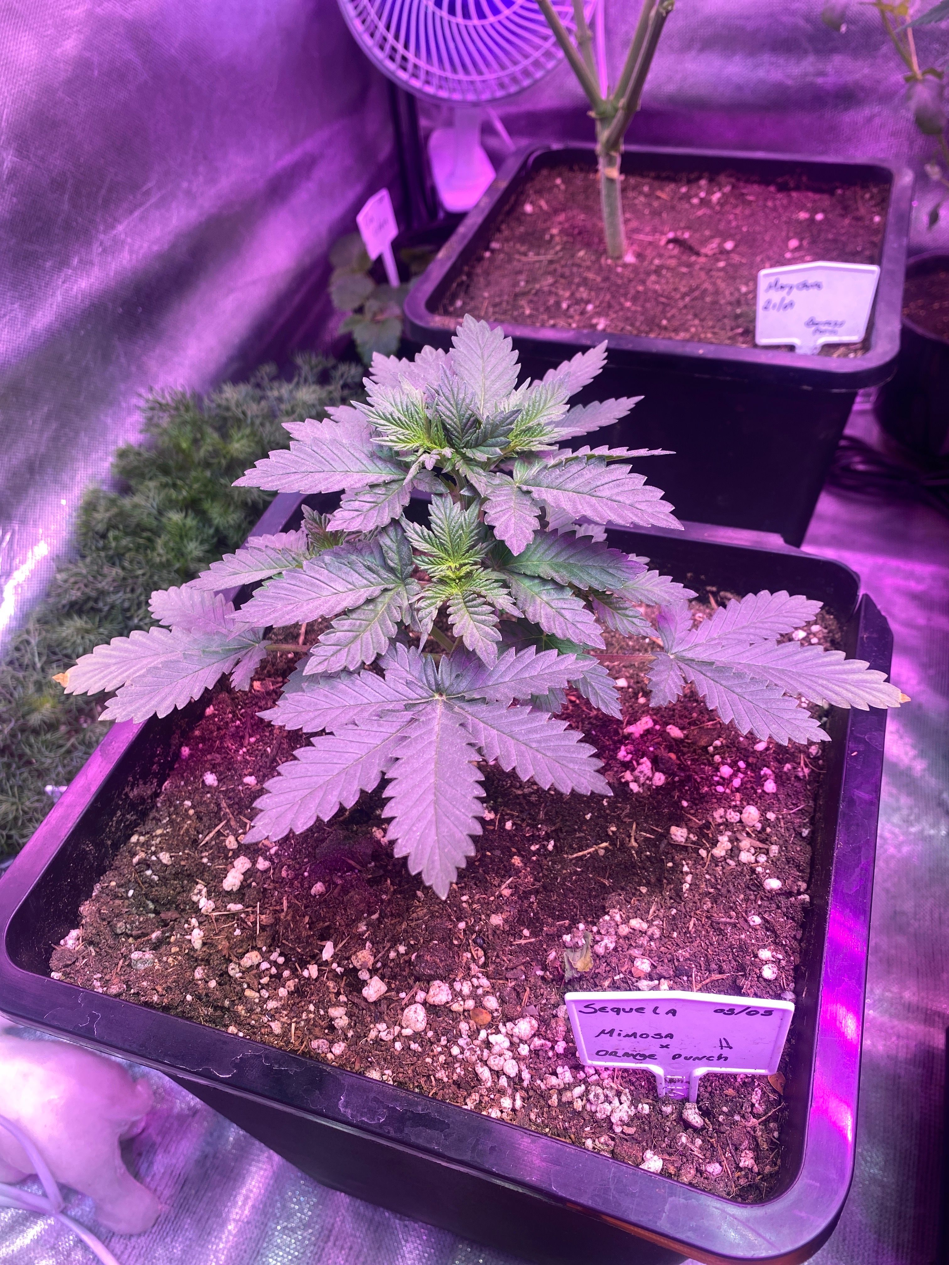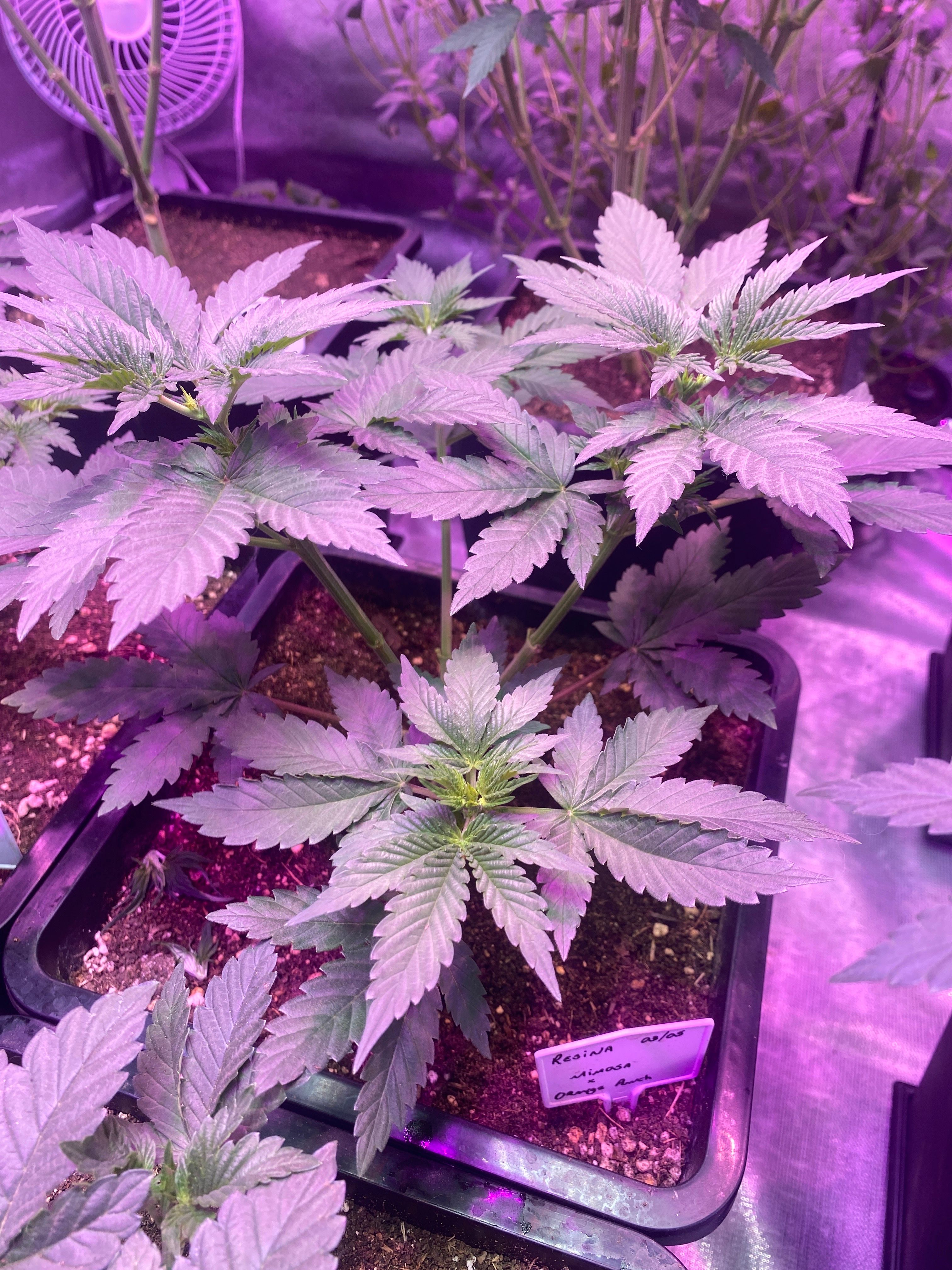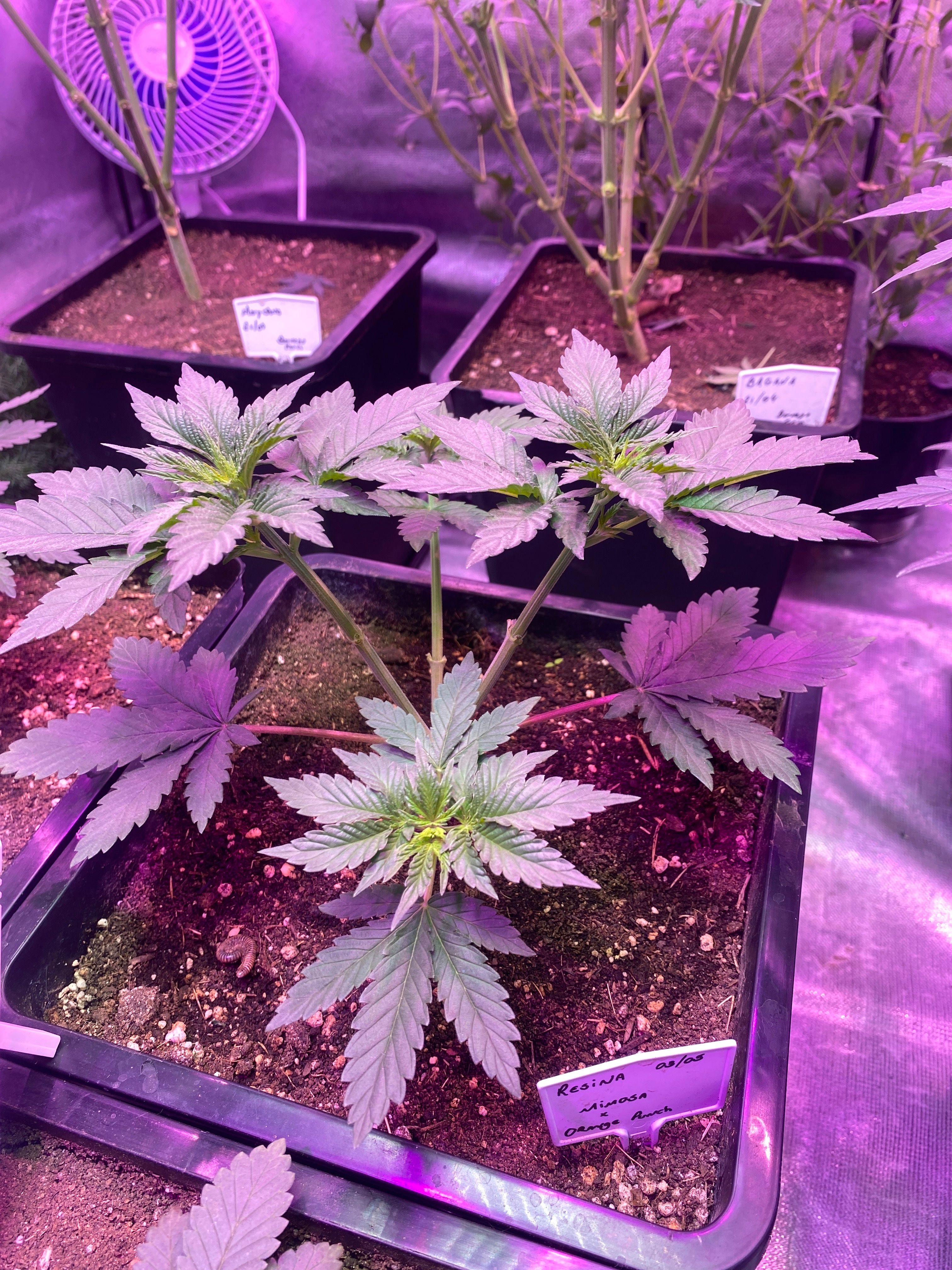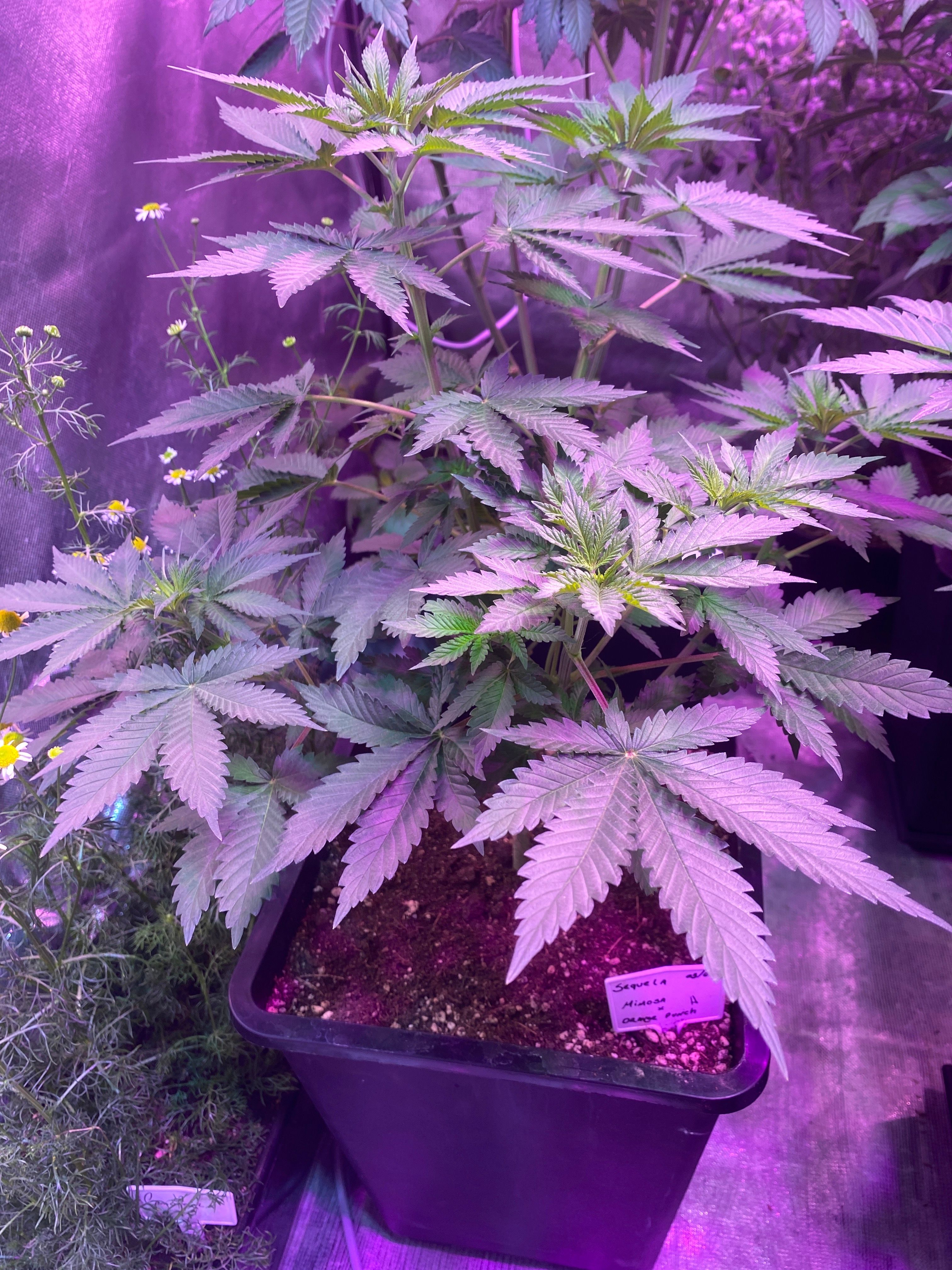 Plantas saudáveis. Amarelos indo pro roxo em decorrência da natureza da strain. Lindas e já apresentando cheiro bom.