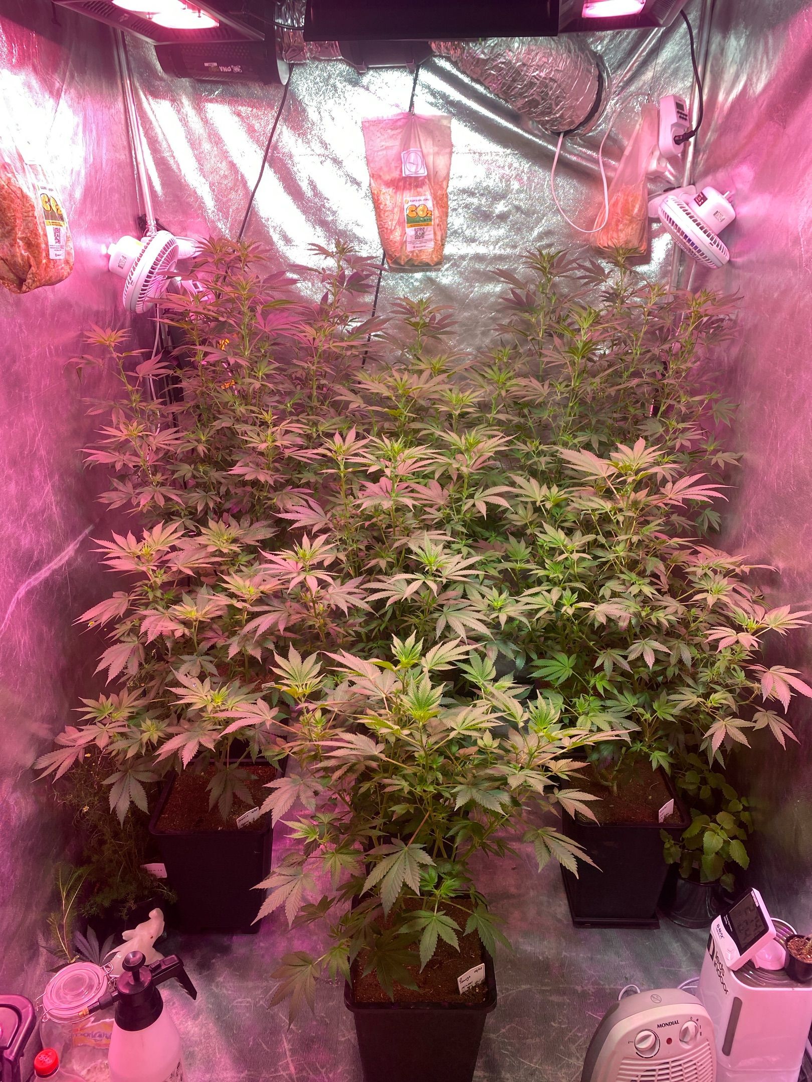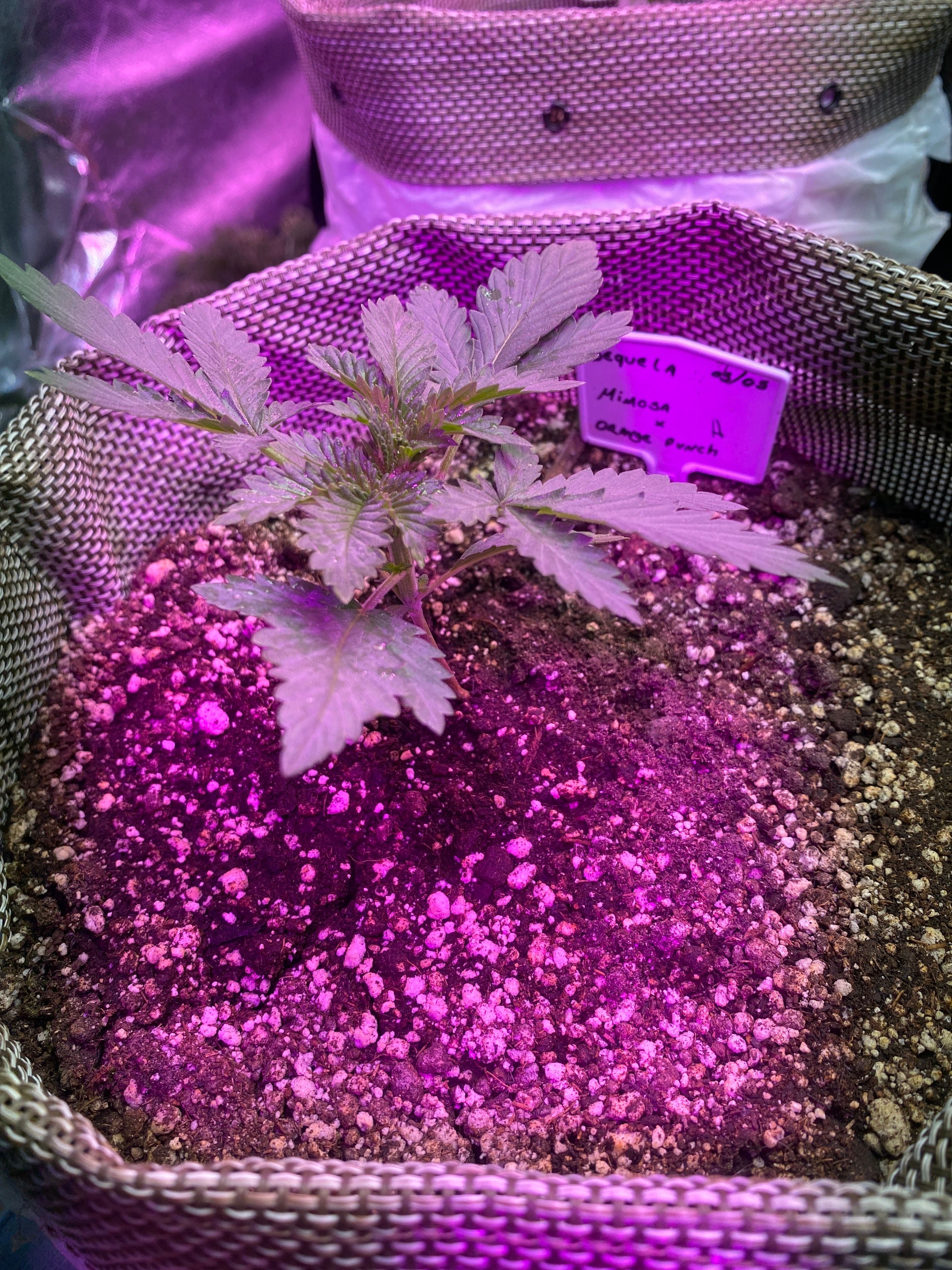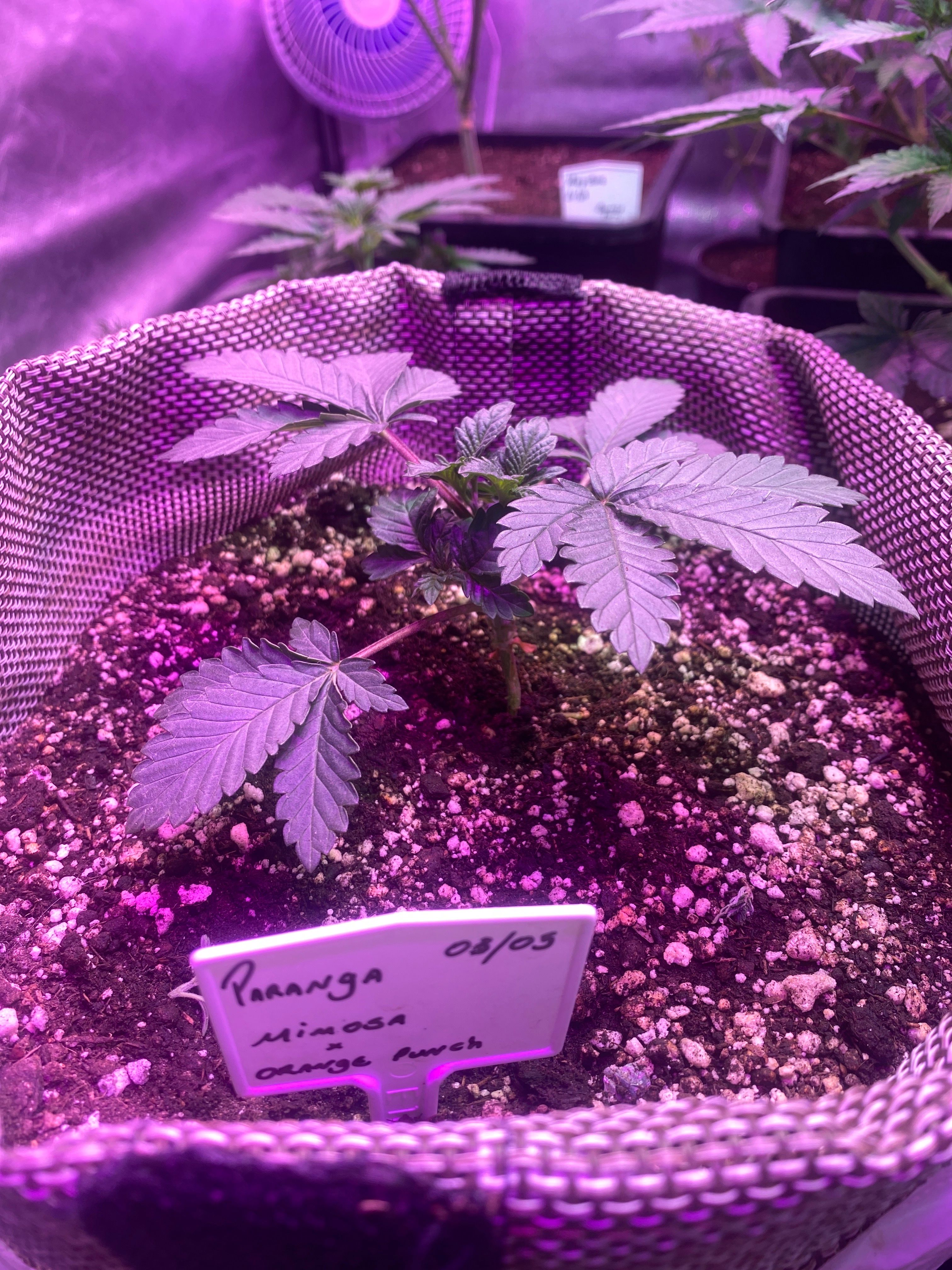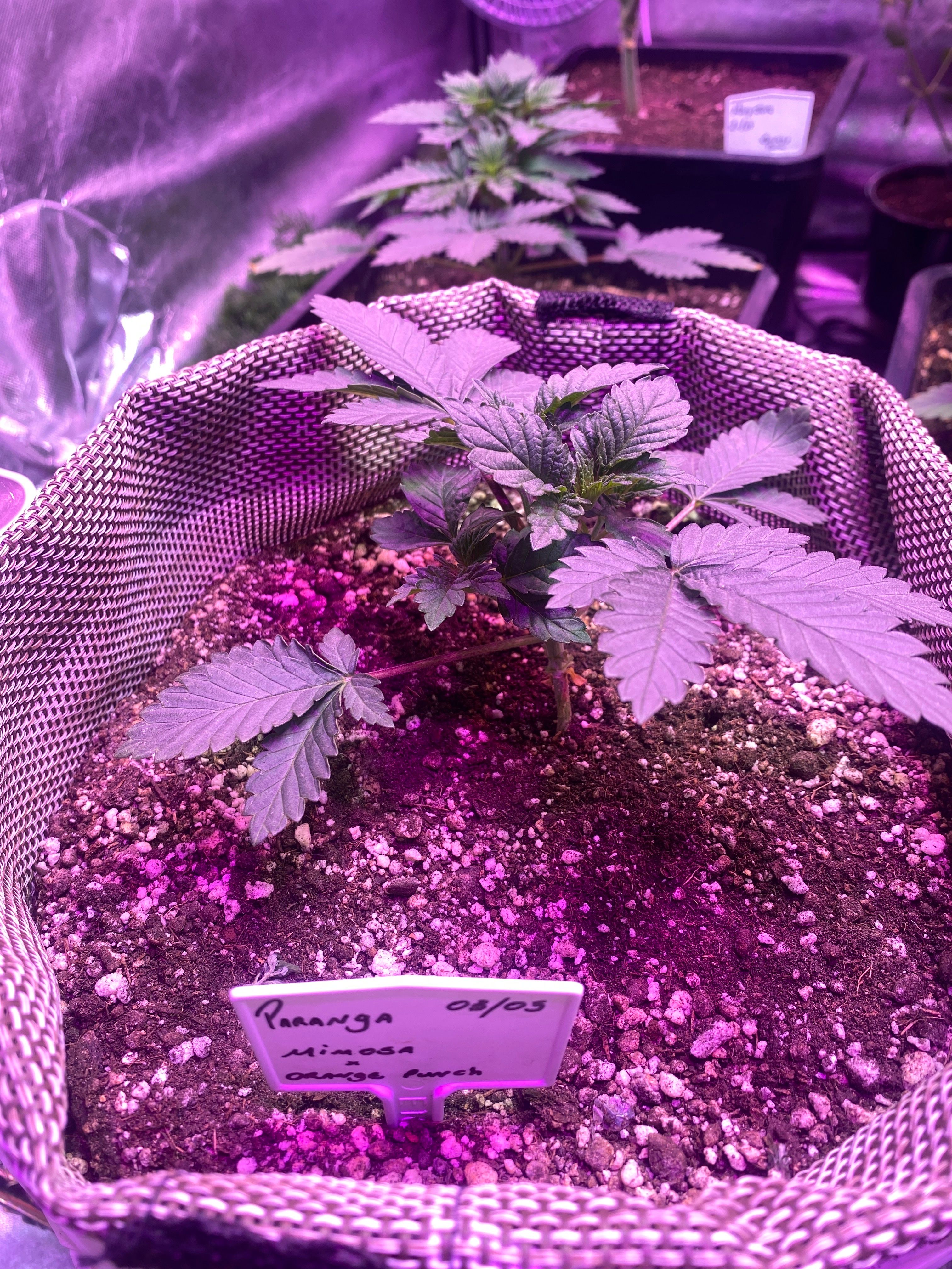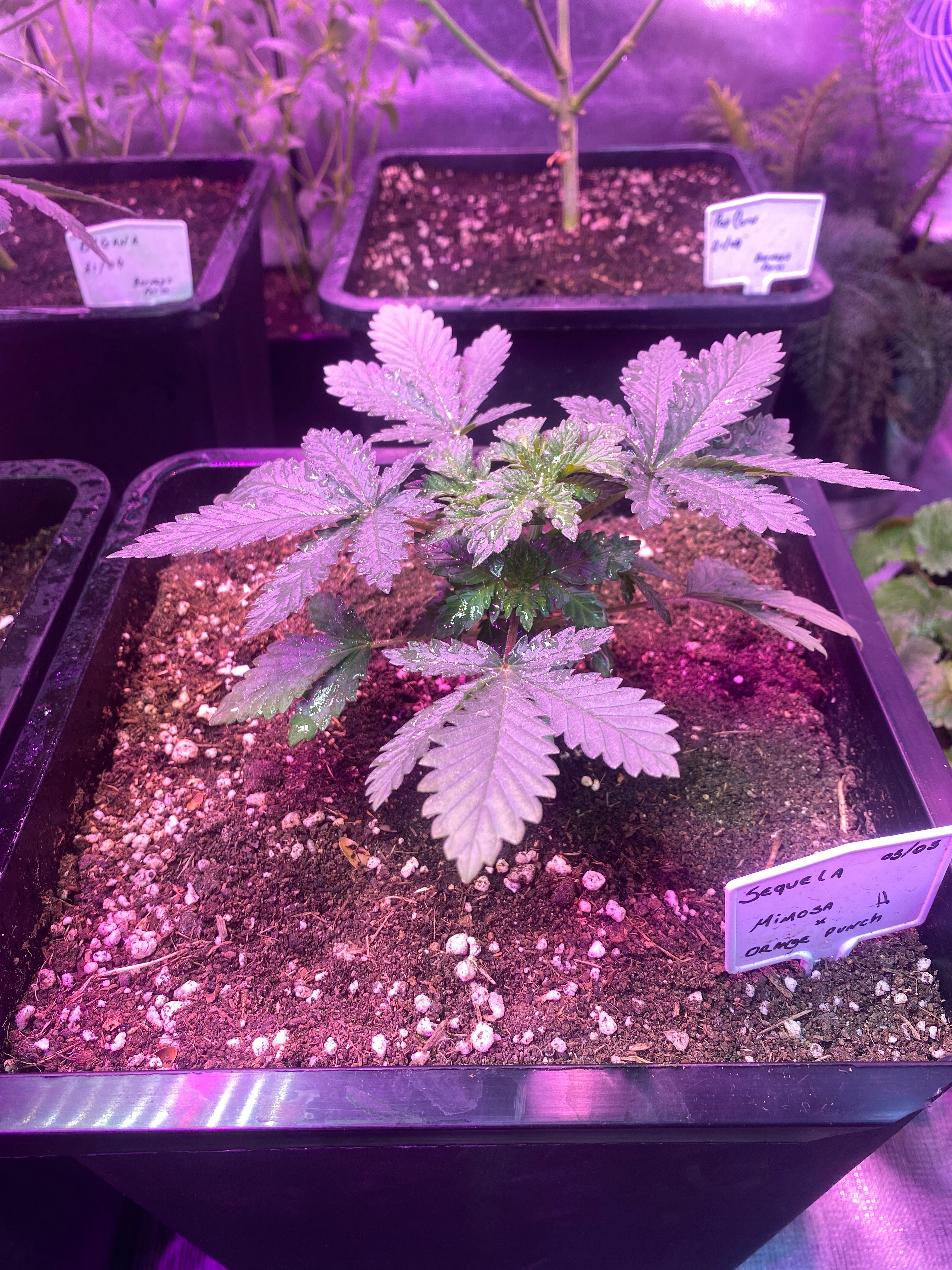 Plantas saudáveis. Amarelos indo pro roxo em decorrência da natureza da strain. Lindas e já apresentando cheiro bom.