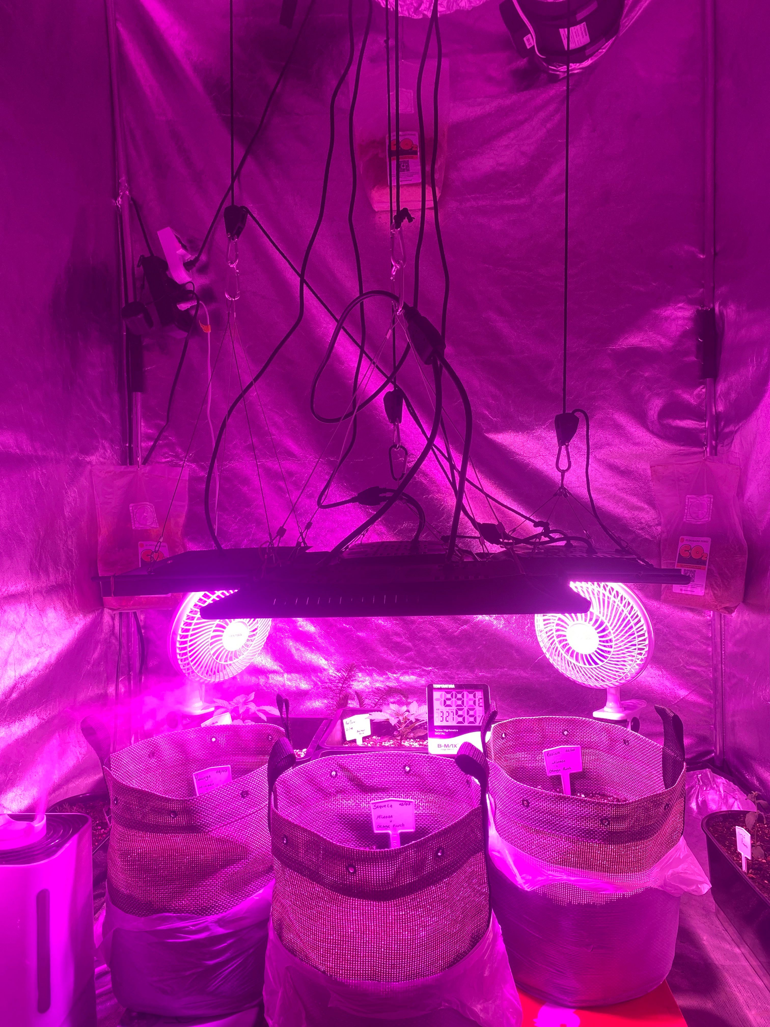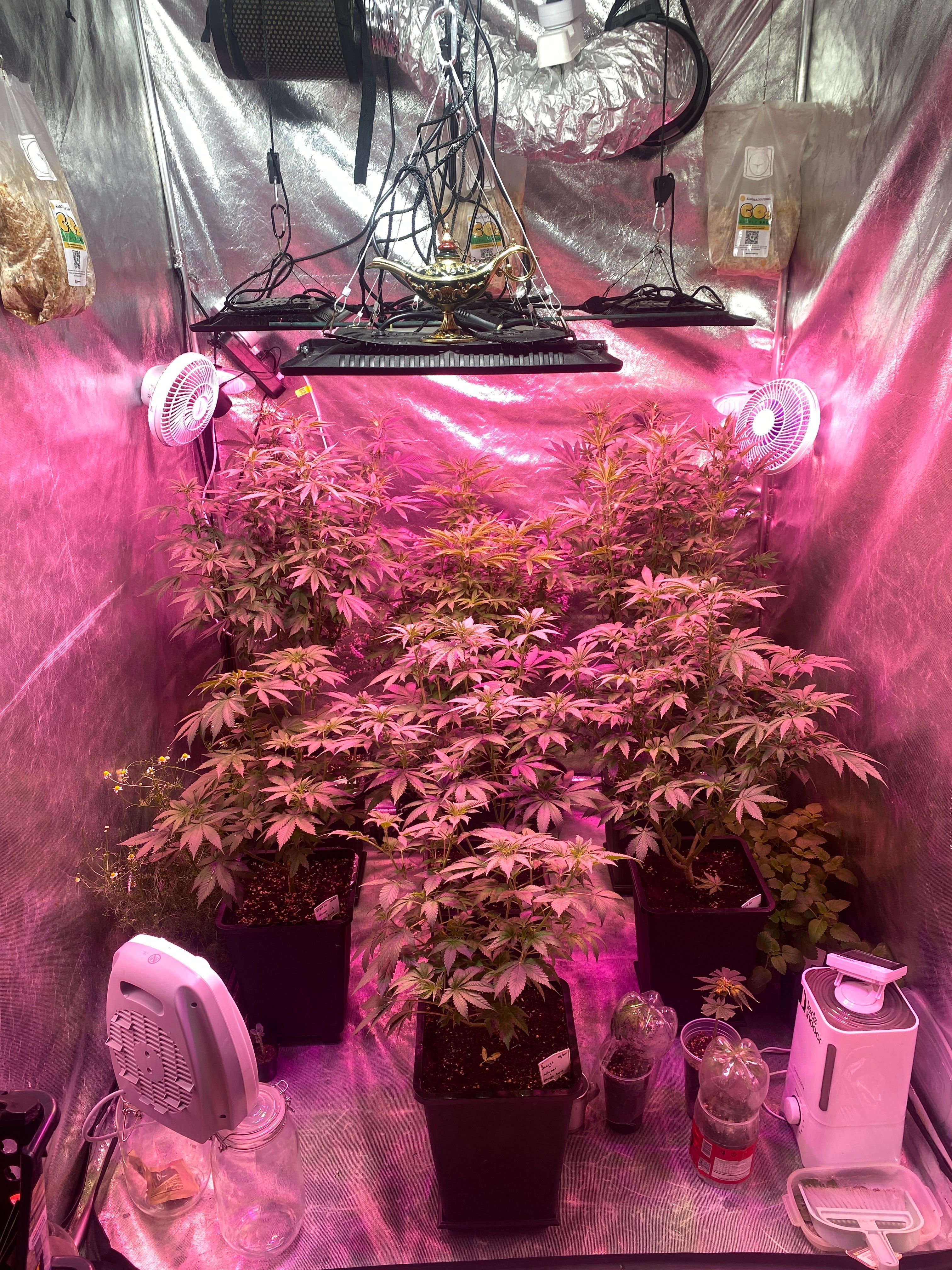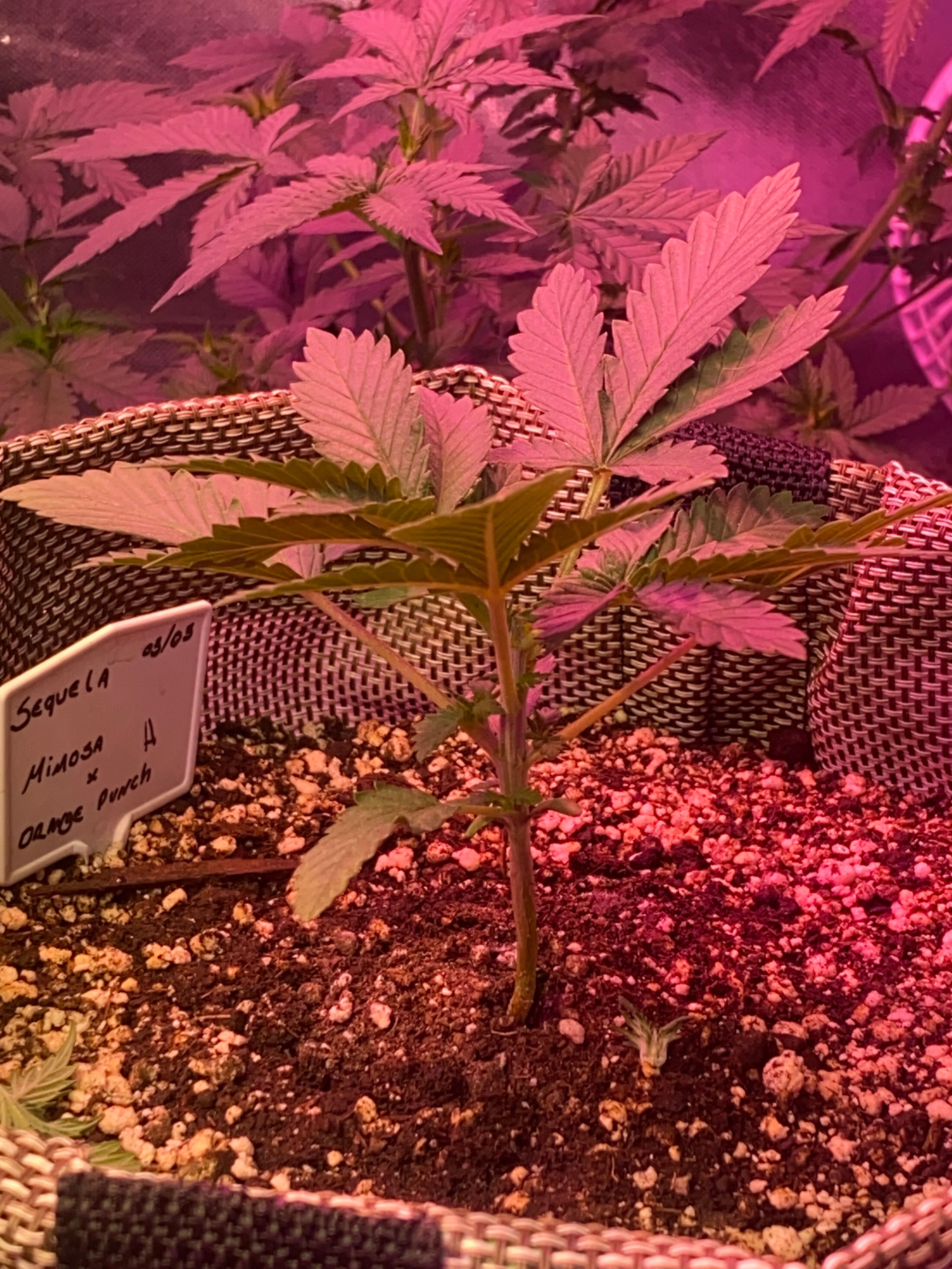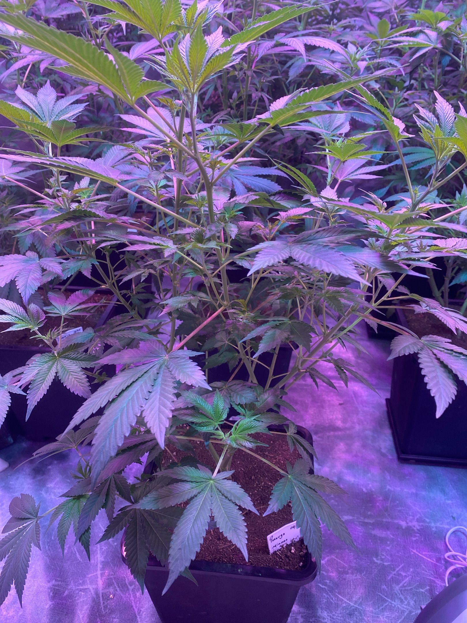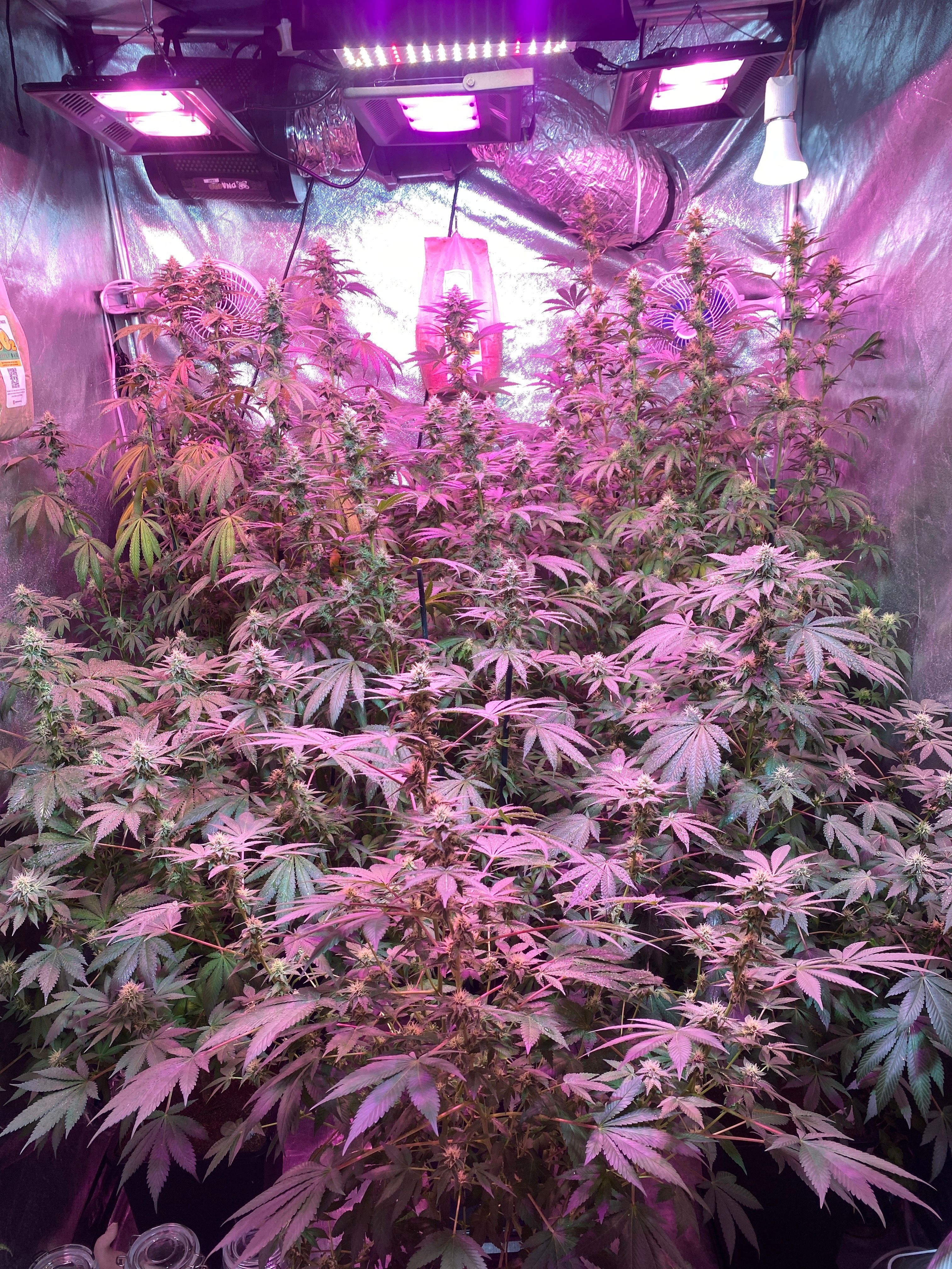 Plantas saudáveis. Amarelos indo pro roxo em decorrência da natureza da strain. Lindas e já apresentando cheiro bom.