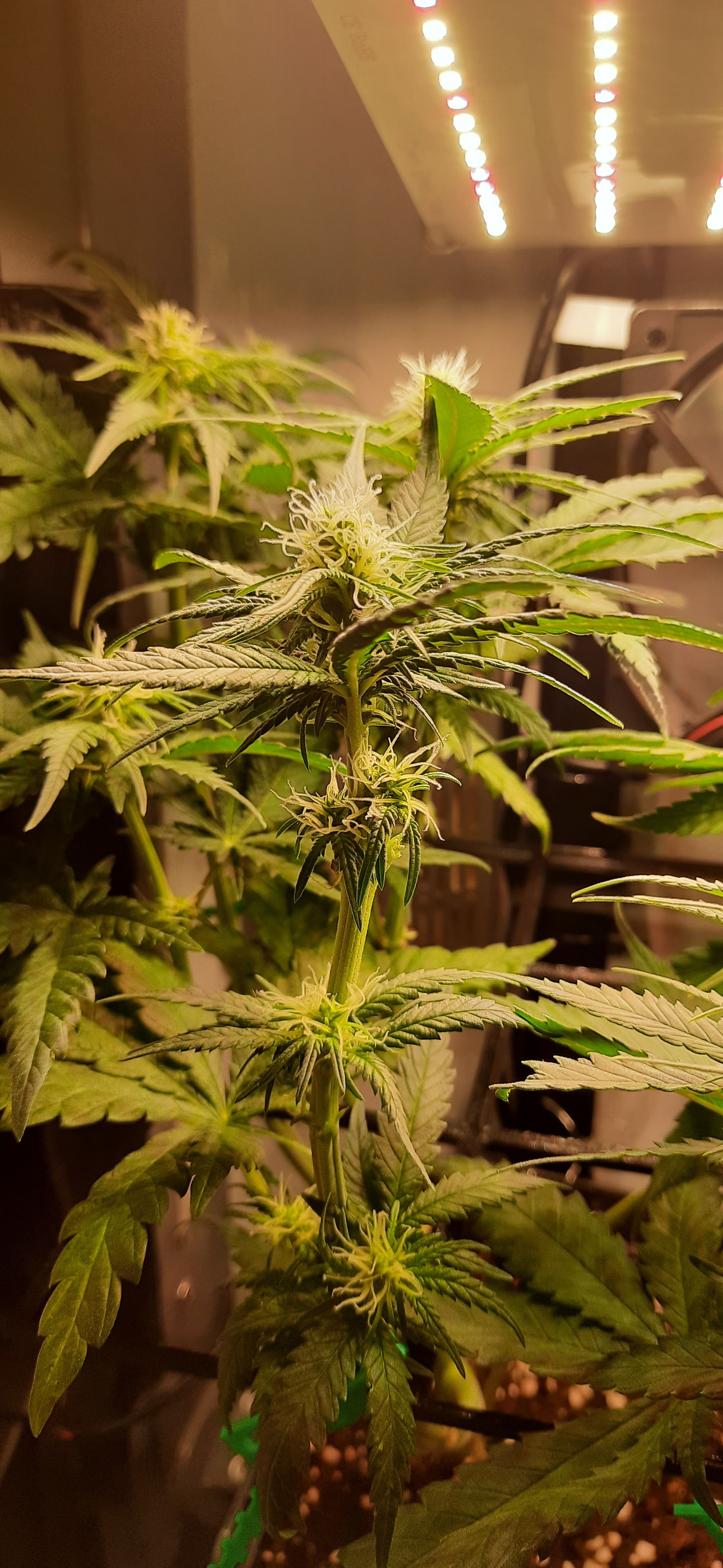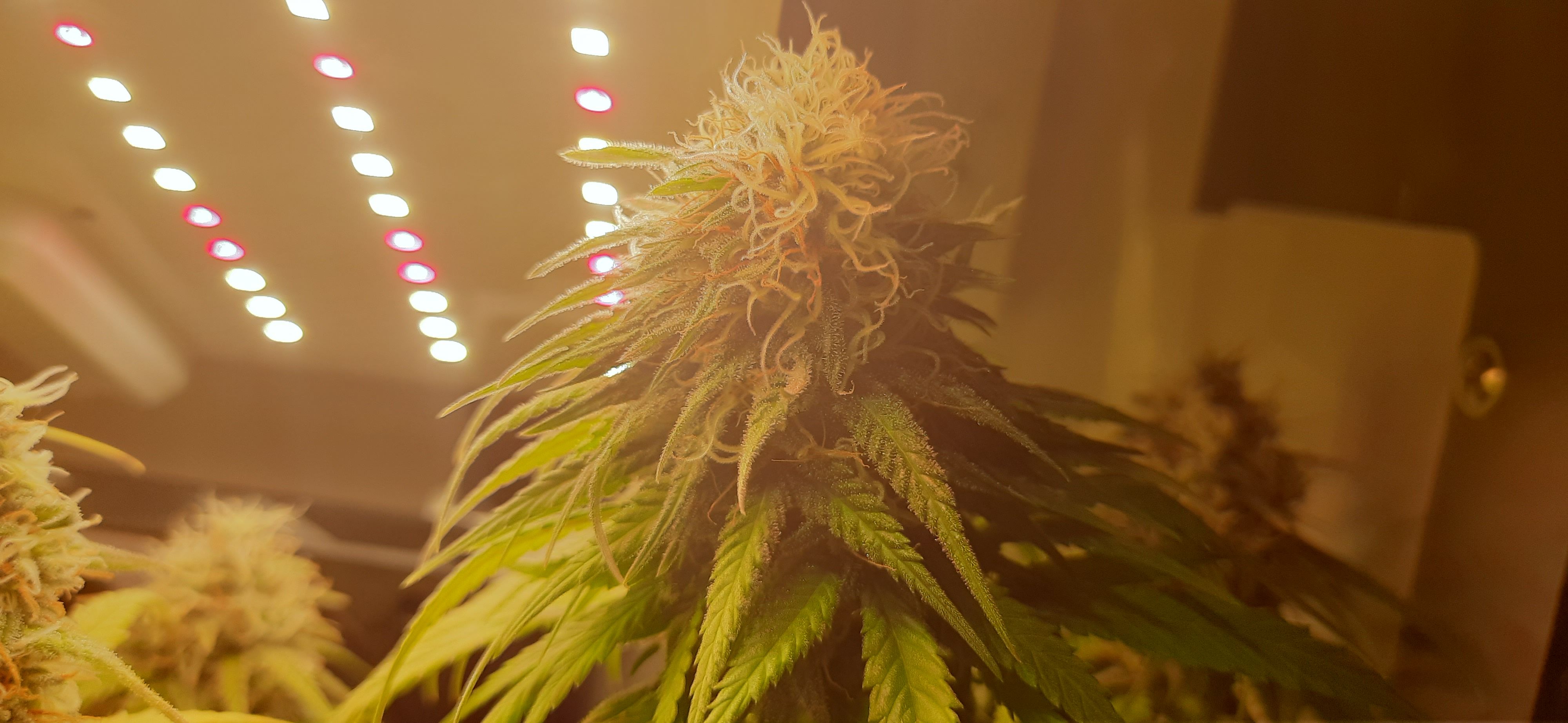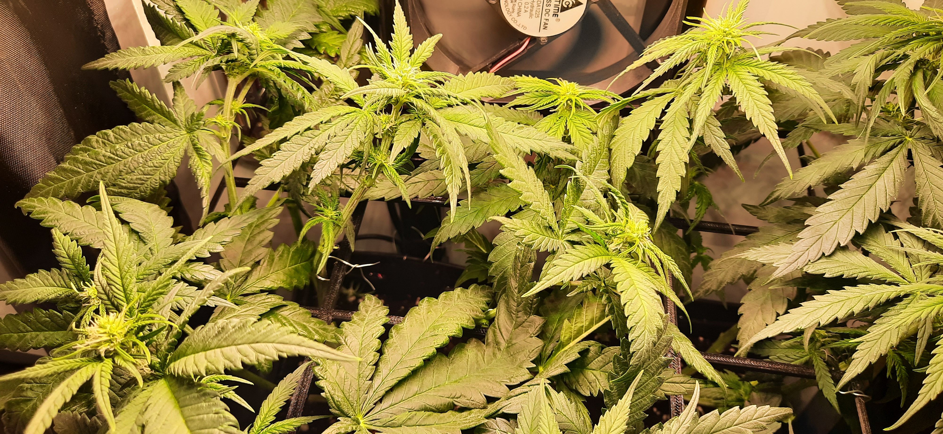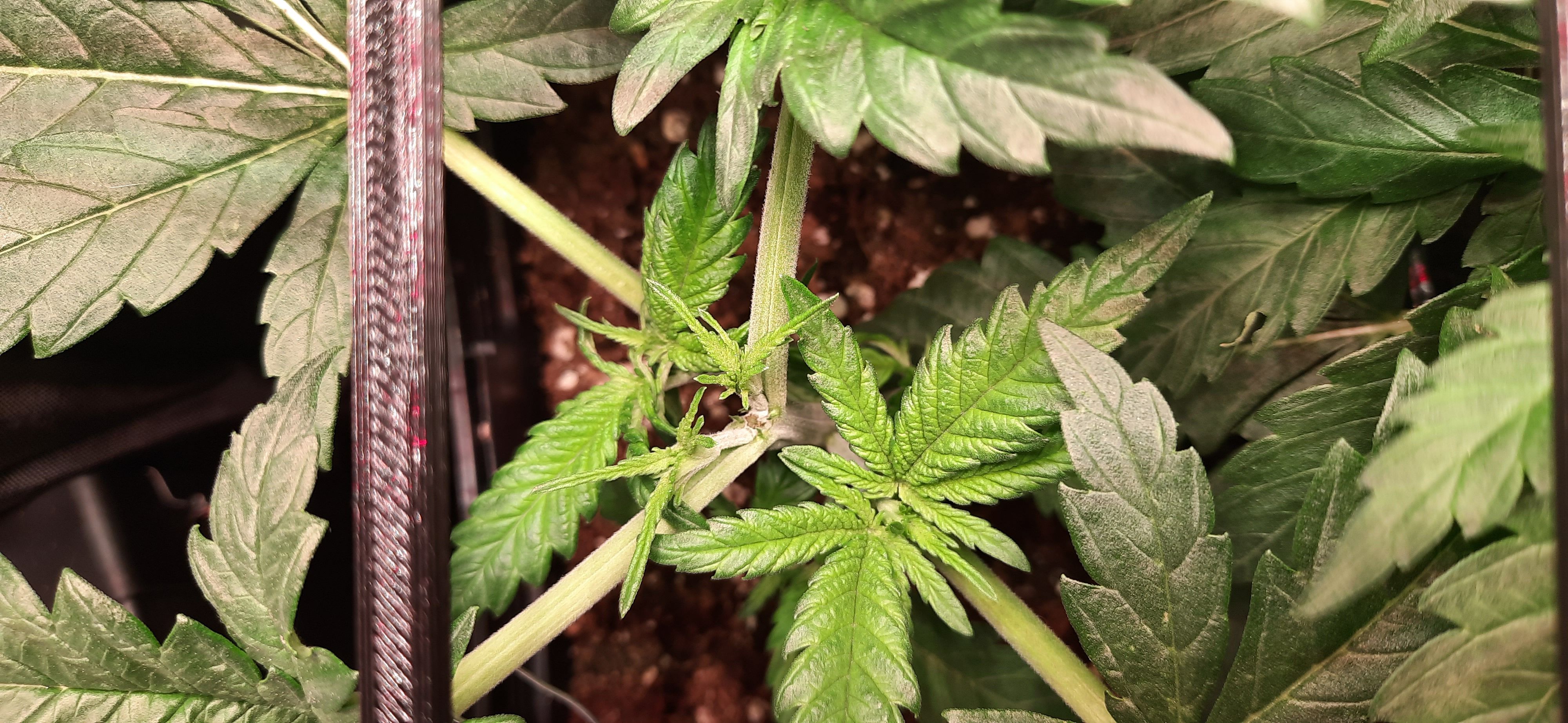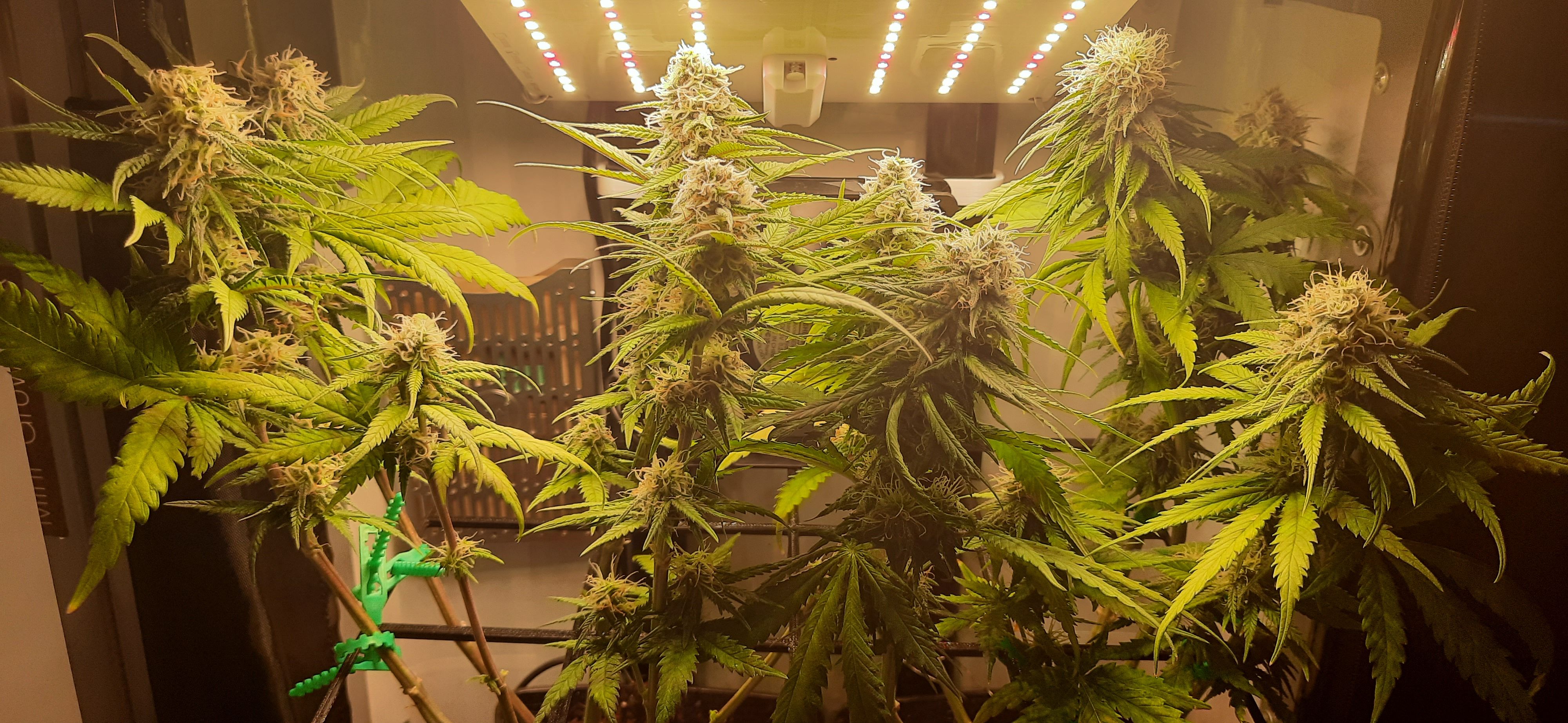Blüte muss ggfs. diese Woche schon, spätestens nächste Woche, eingeleitet werden um durch Stretch der LED nicht zu nahe zu kommen.
