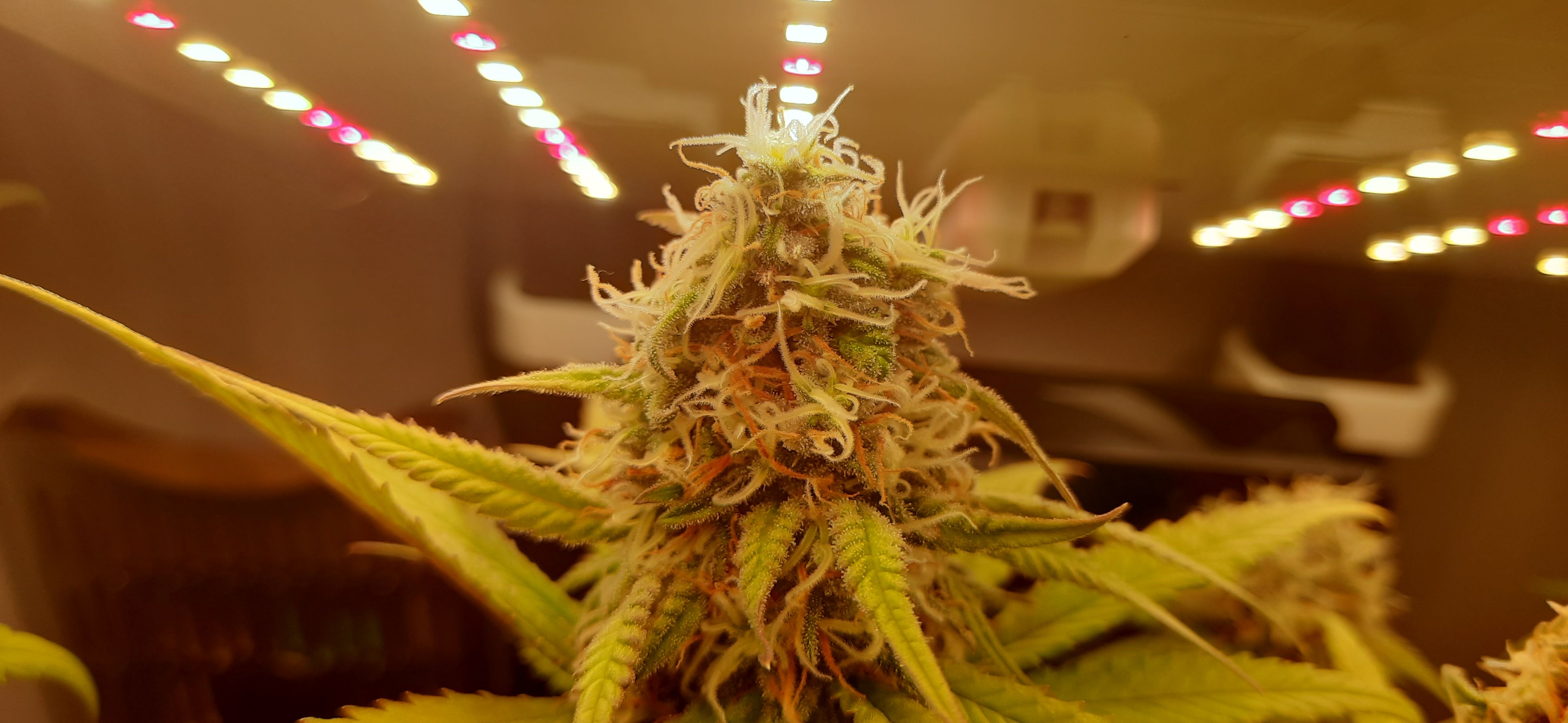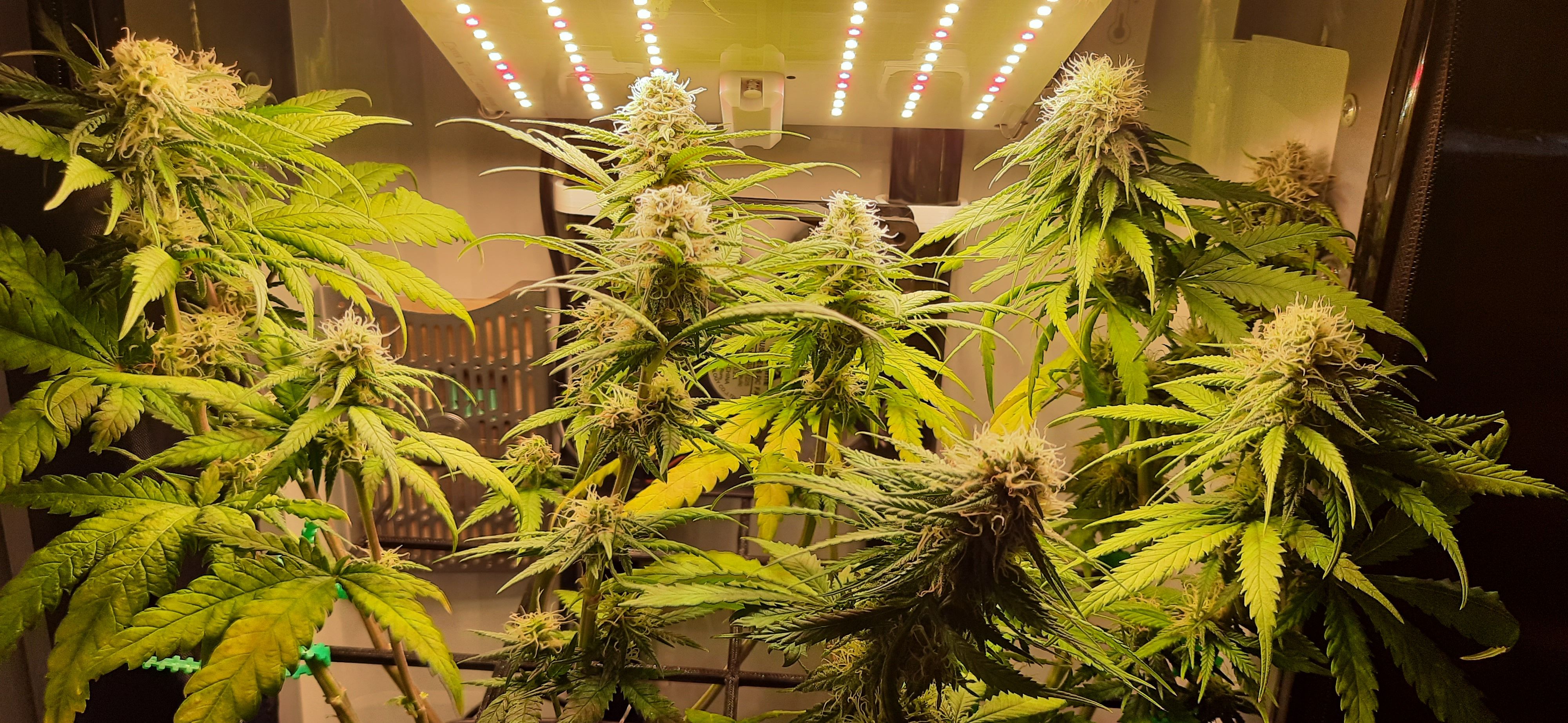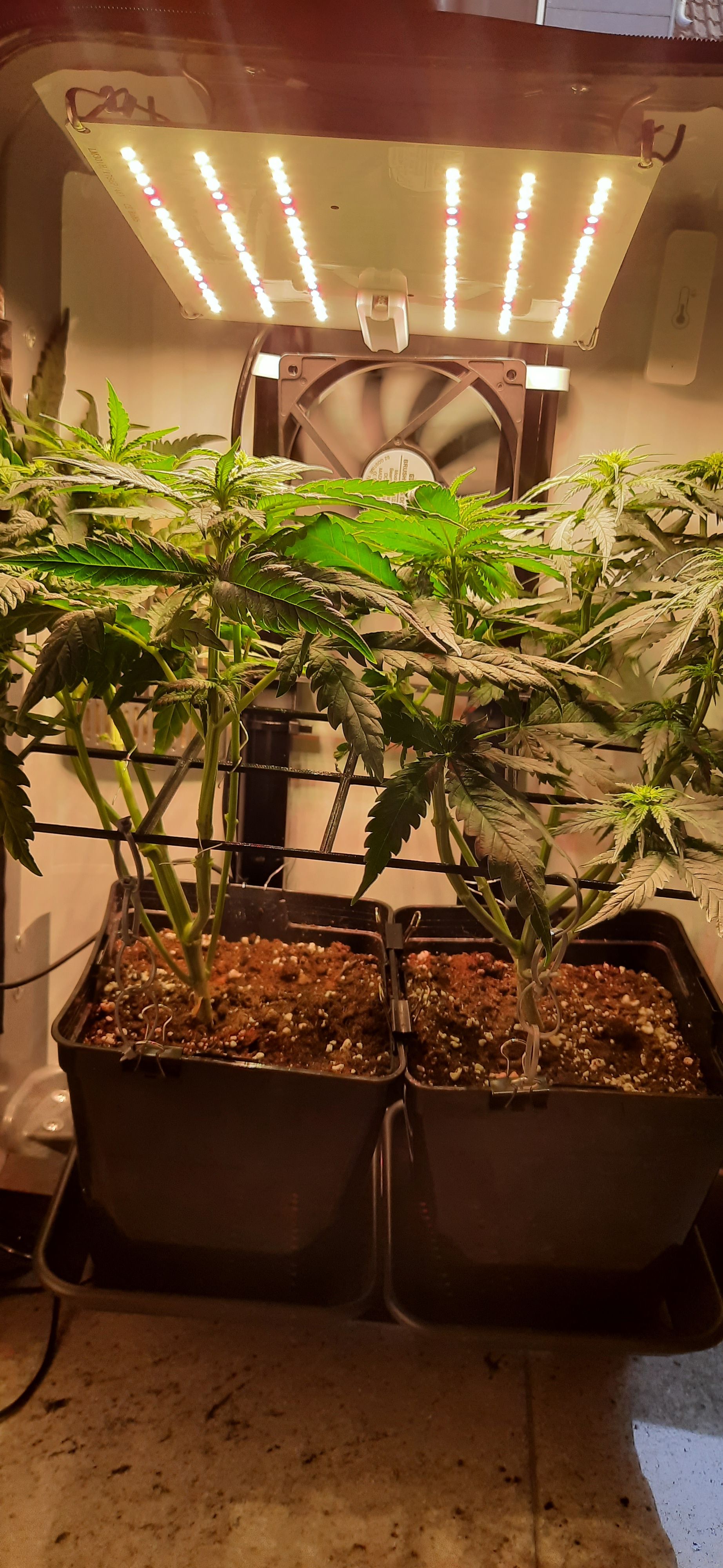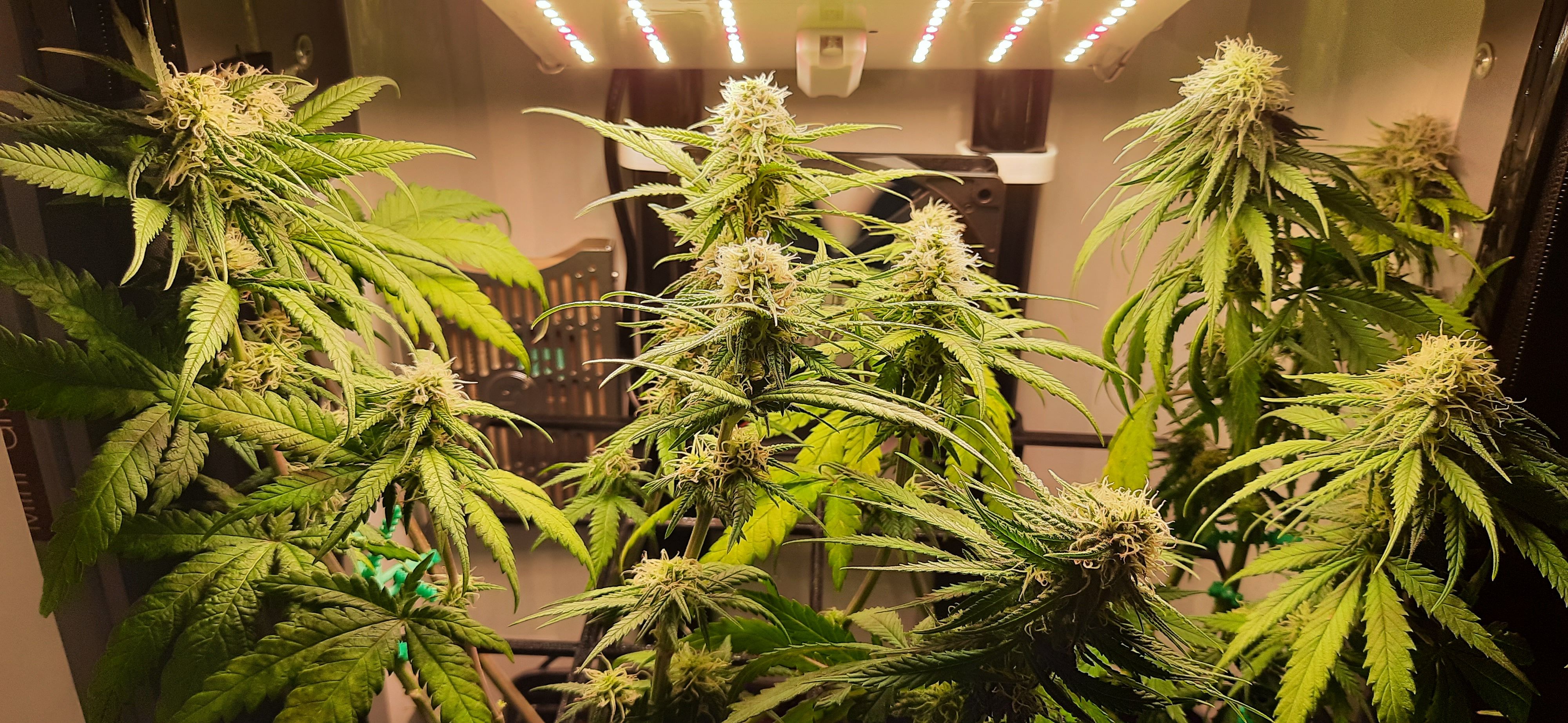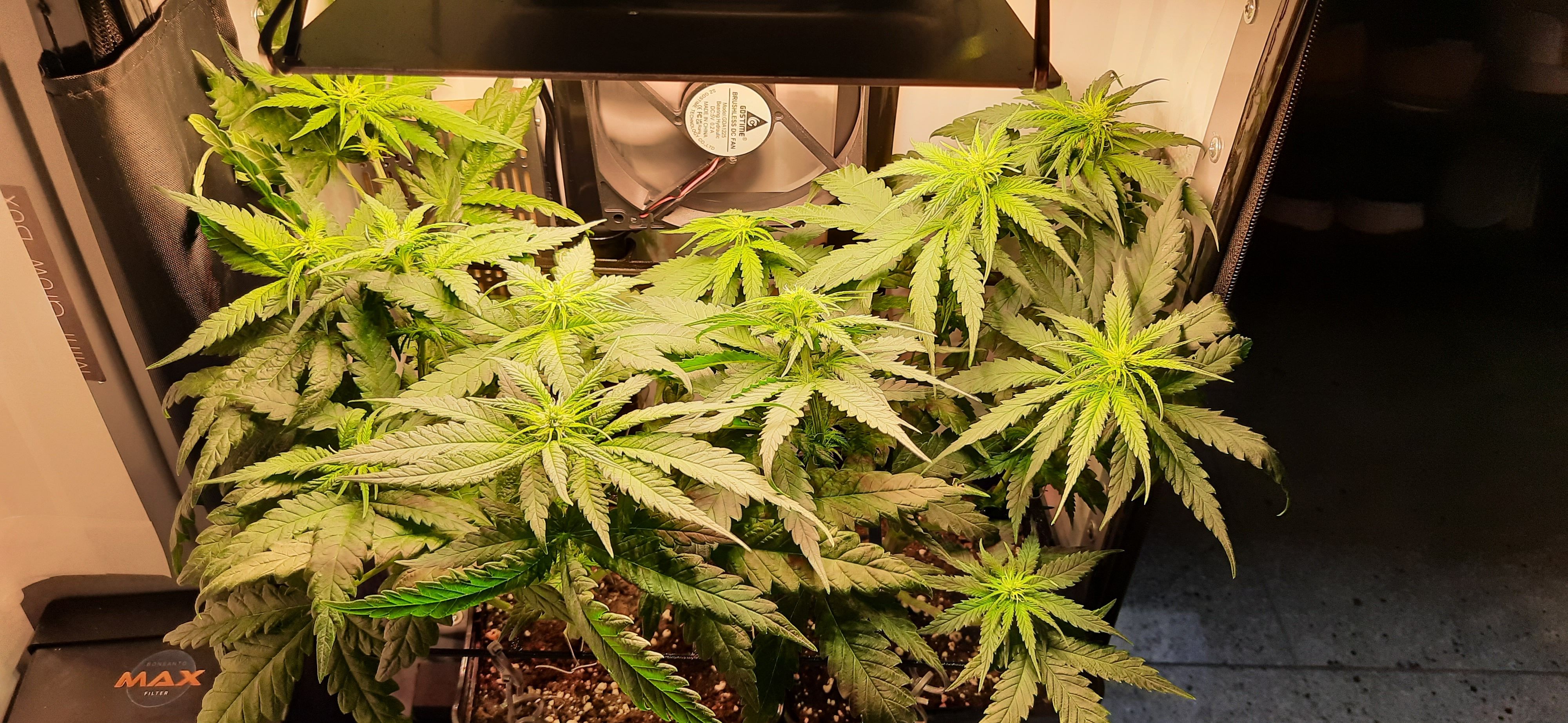 Blüte muss ggfs. diese Woche schon, spätestens nächste Woche, eingeleitet werden um durch Stretch der LED nicht zu nahe zu kommen.