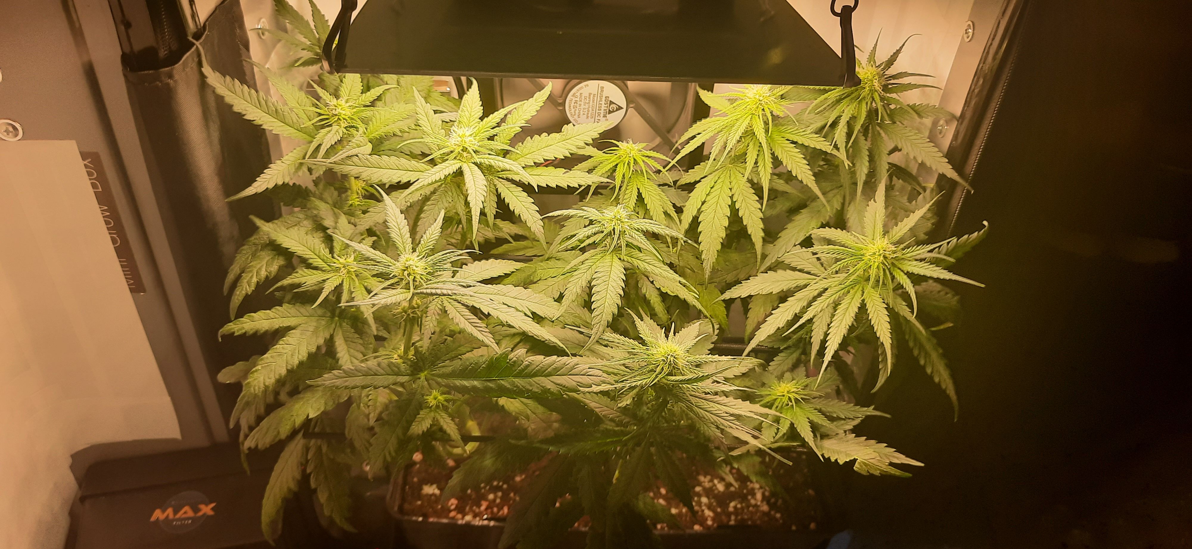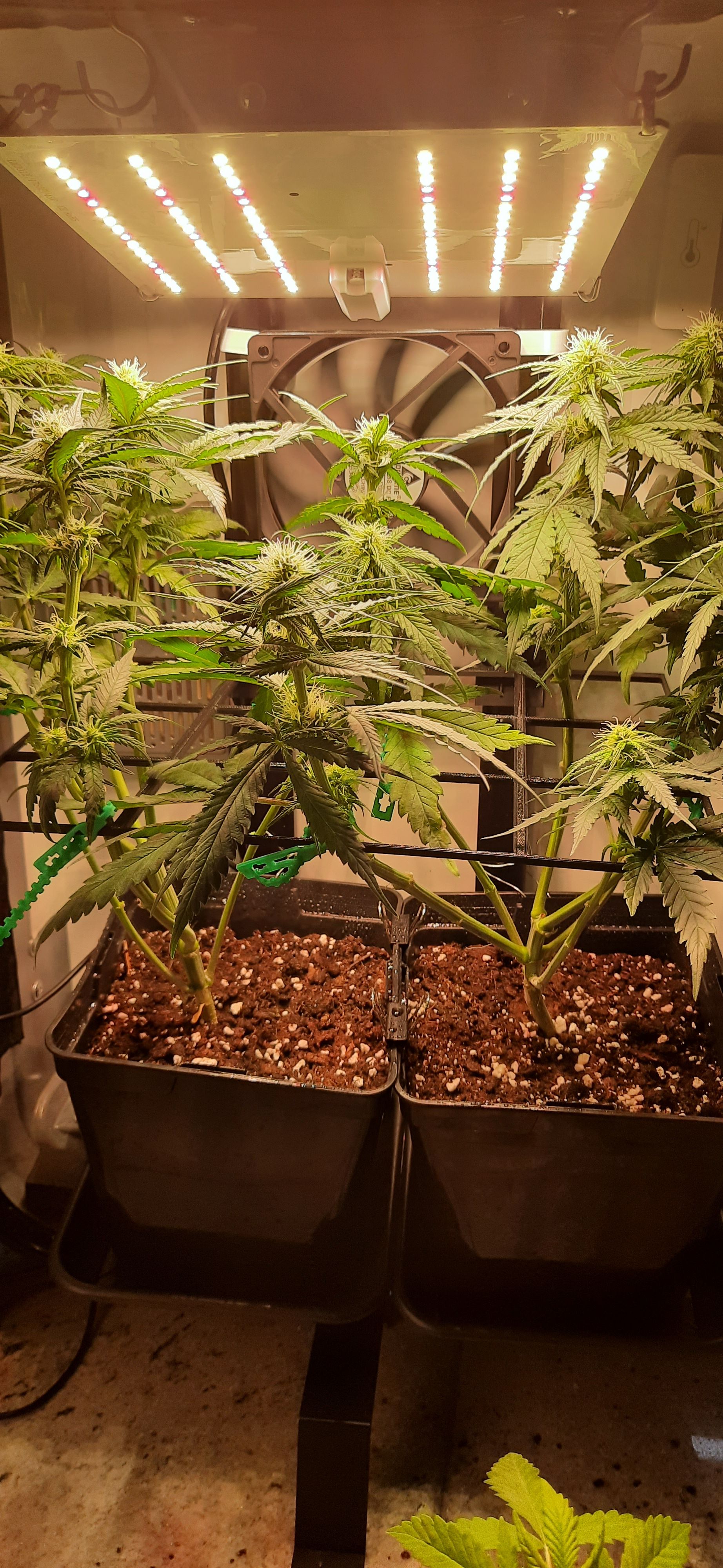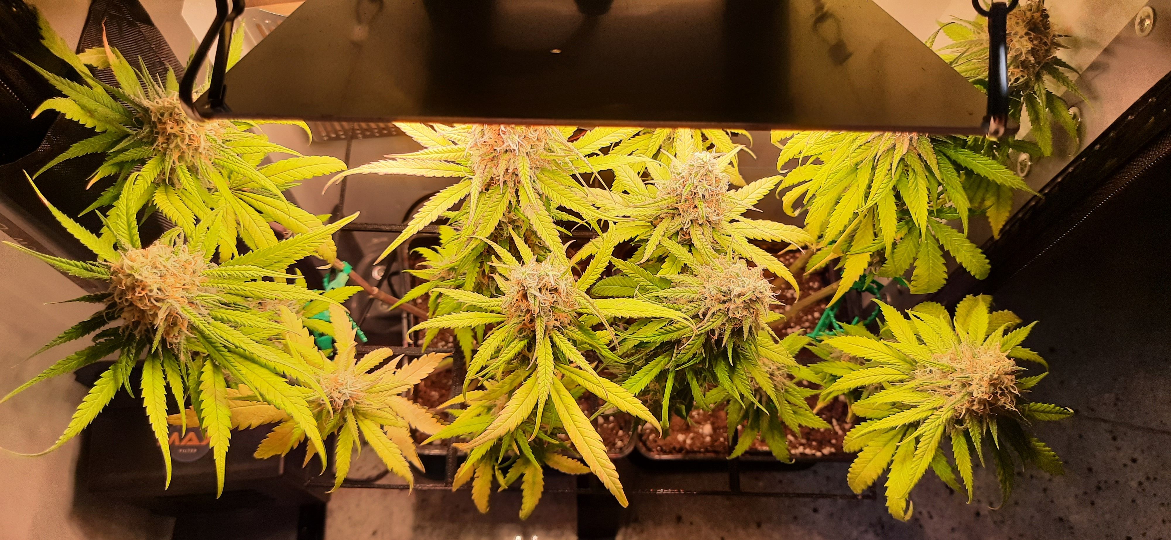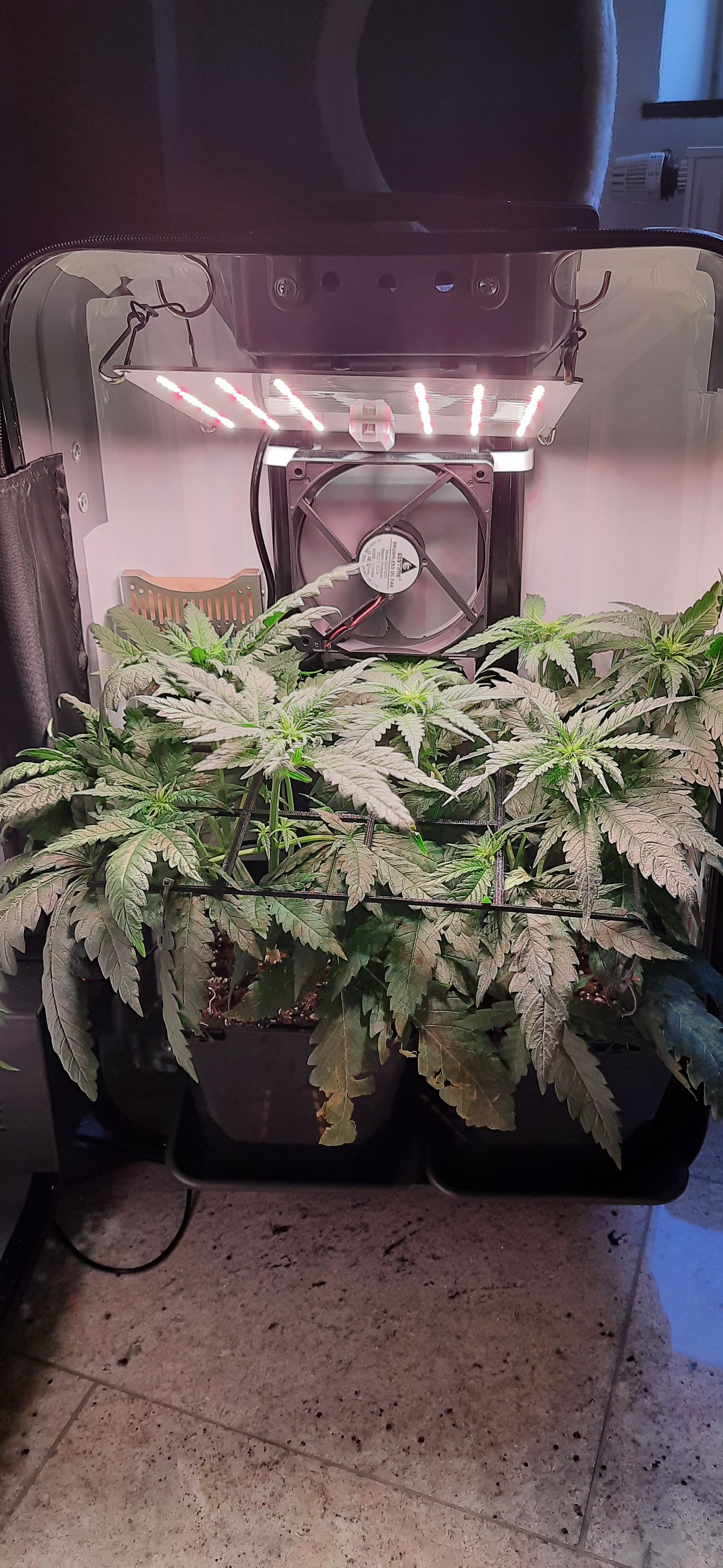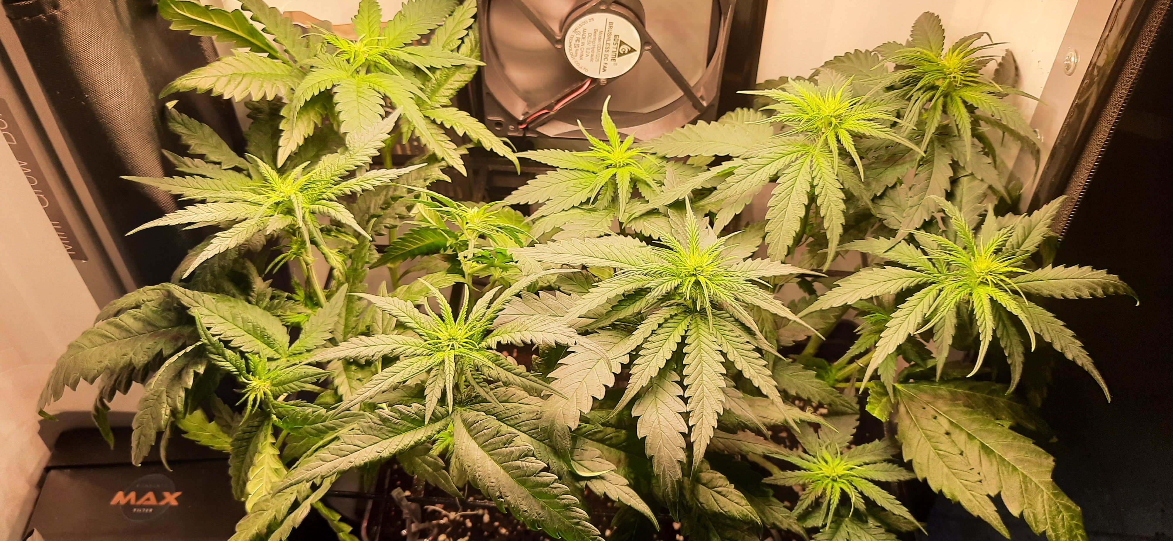 Blüte muss ggfs. diese Woche schon, spätestens nächste Woche, eingeleitet werden um durch Stretch der LED nicht zu nahe zu kommen.