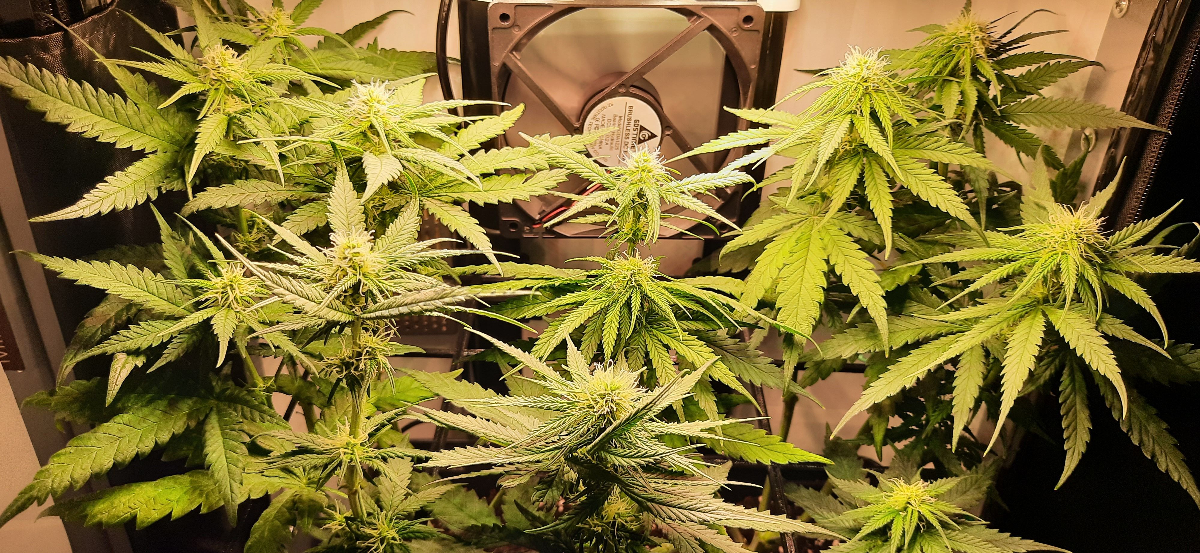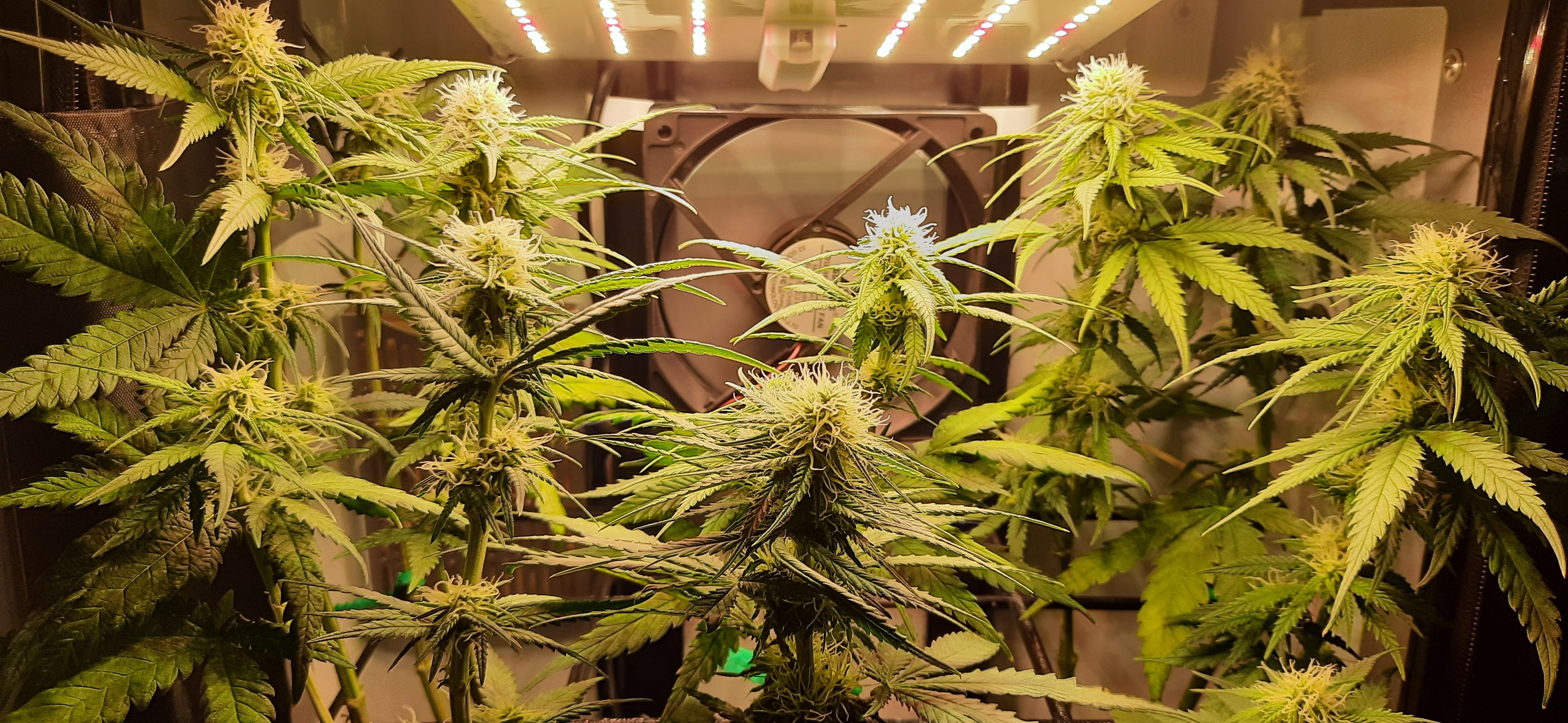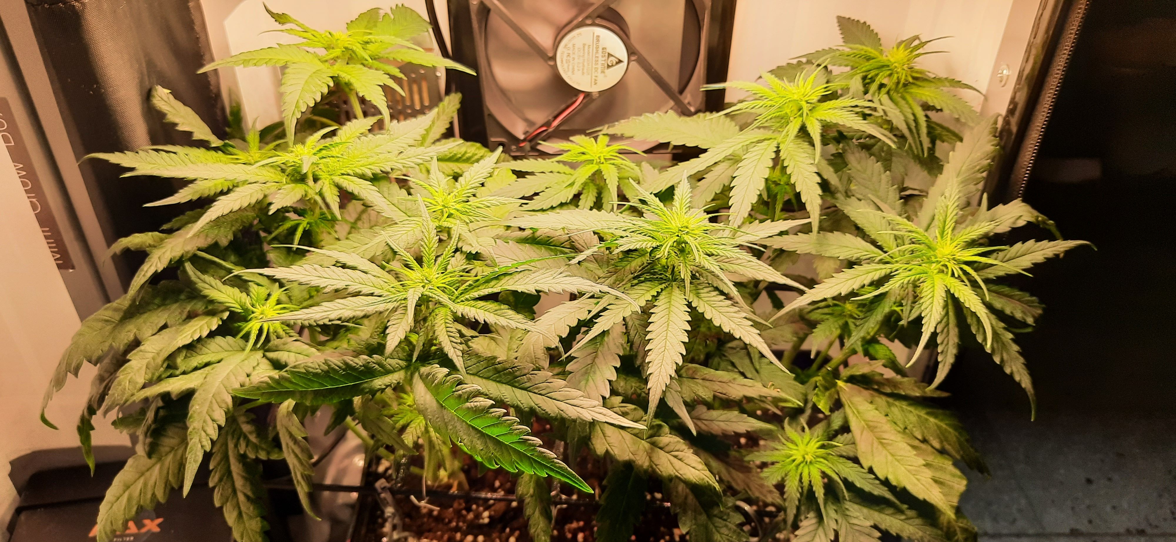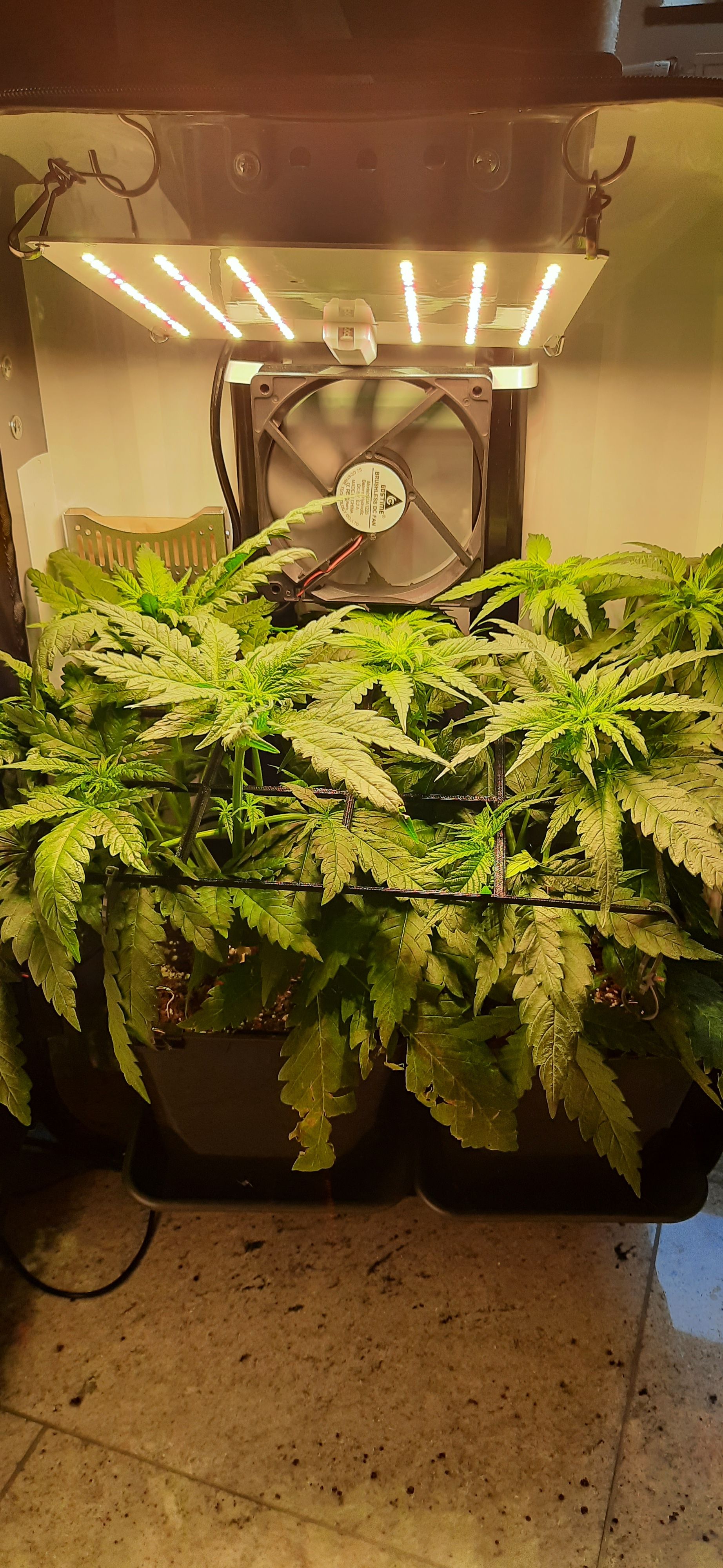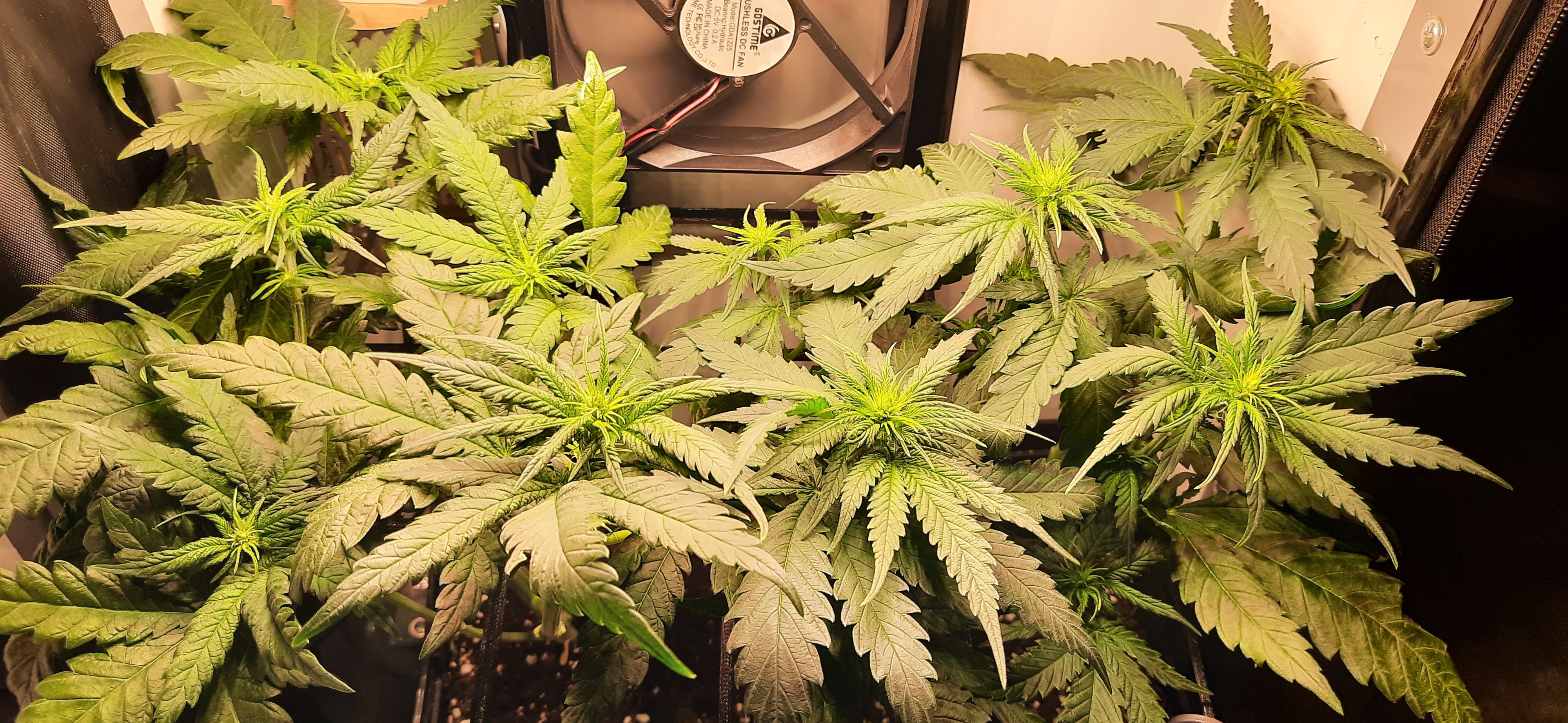 Blüte muss ggfs. diese Woche schon, spätestens nächste Woche, eingeleitet werden um durch Stretch der LED nicht zu nahe zu kommen.