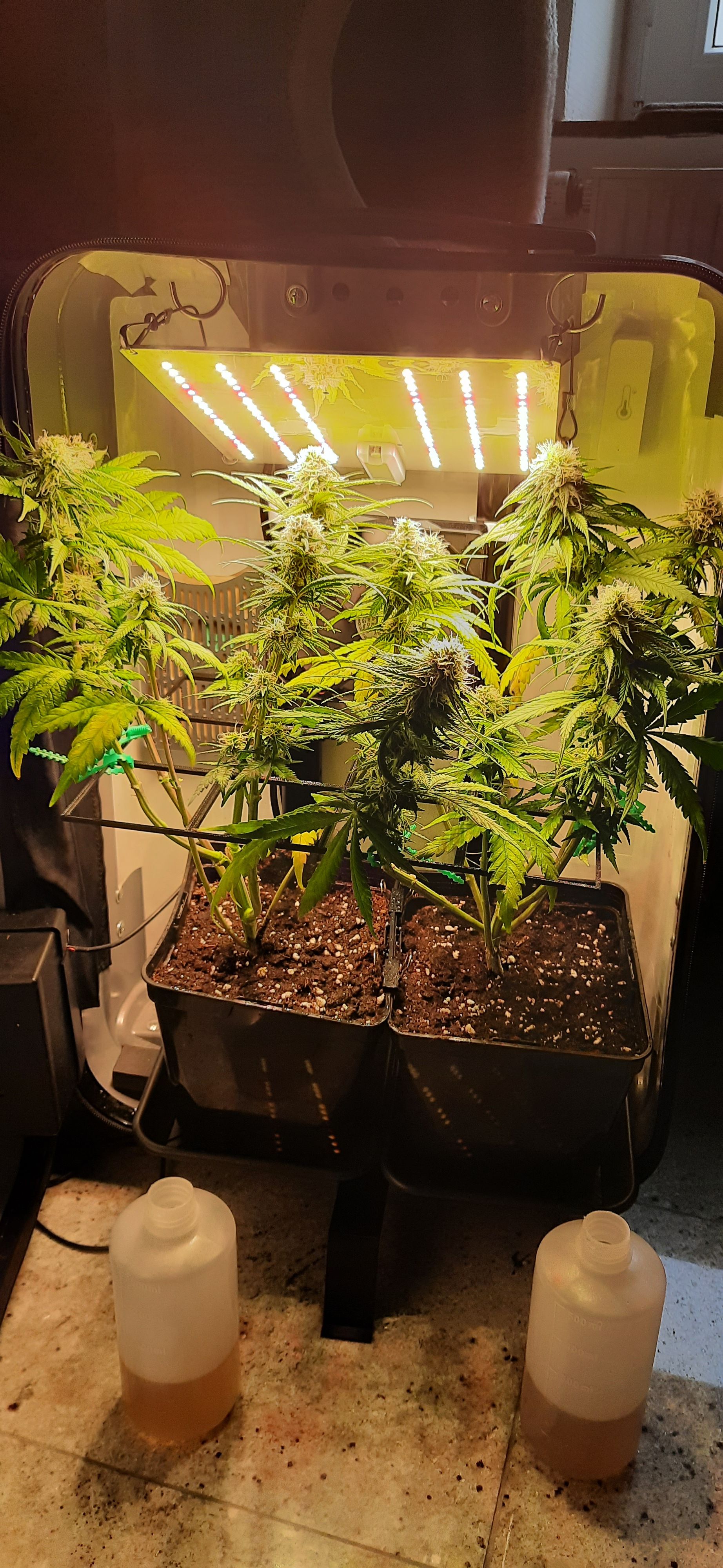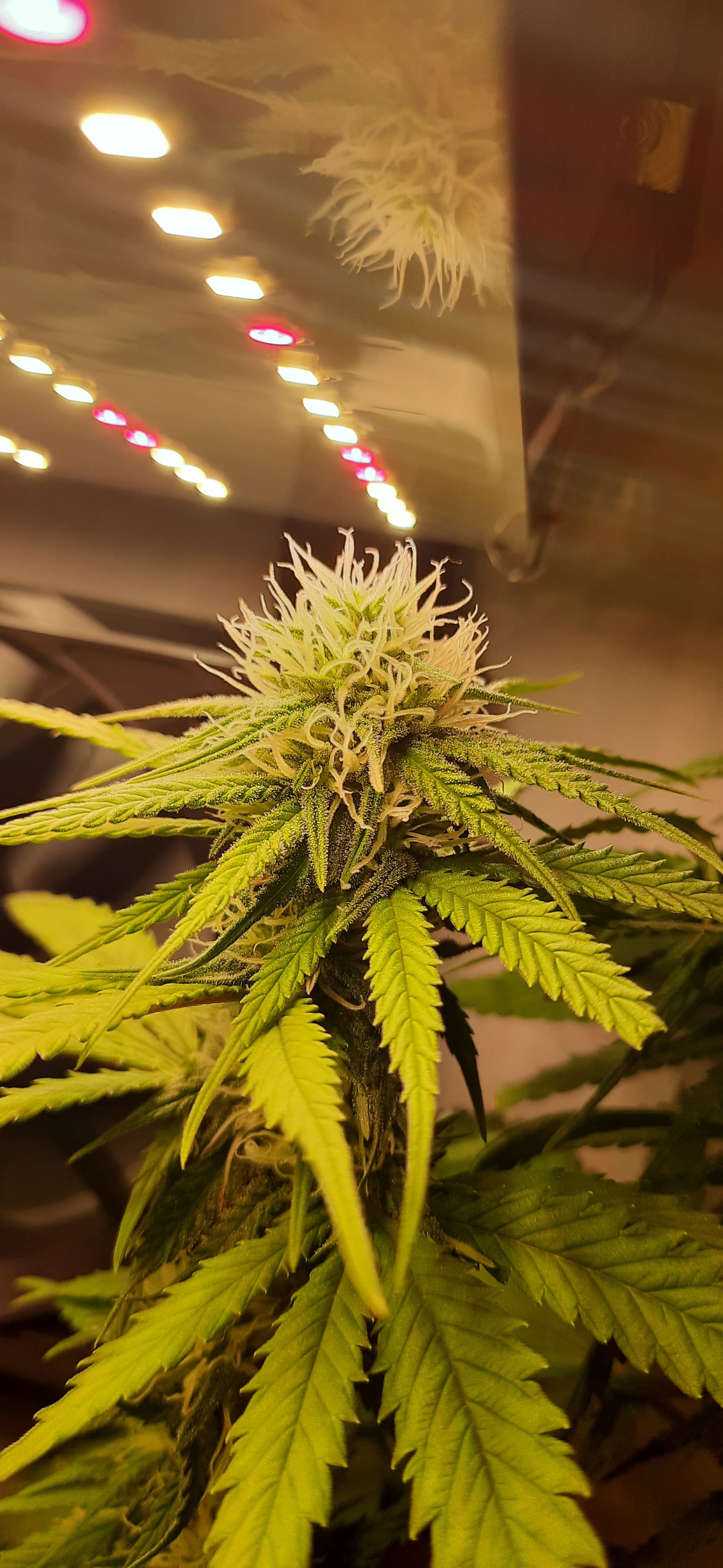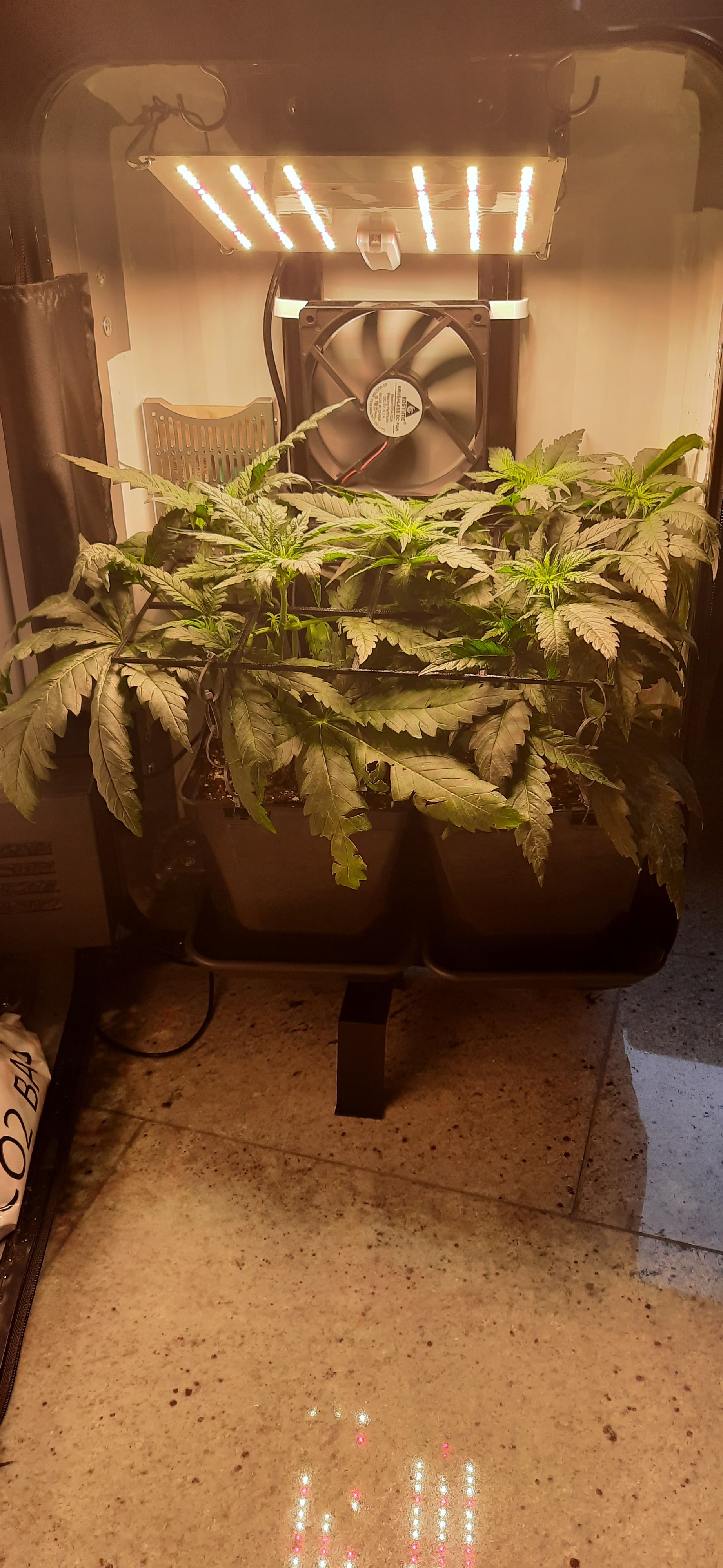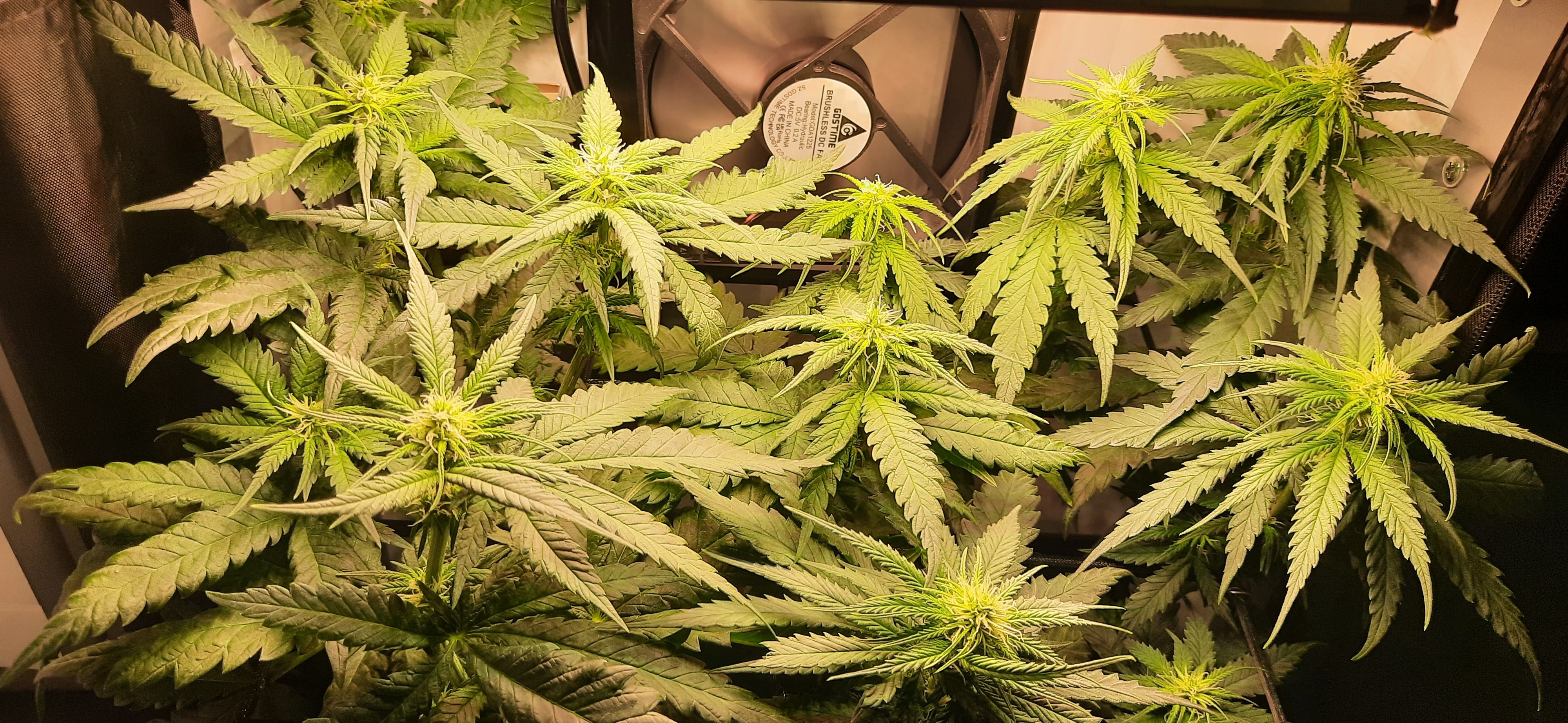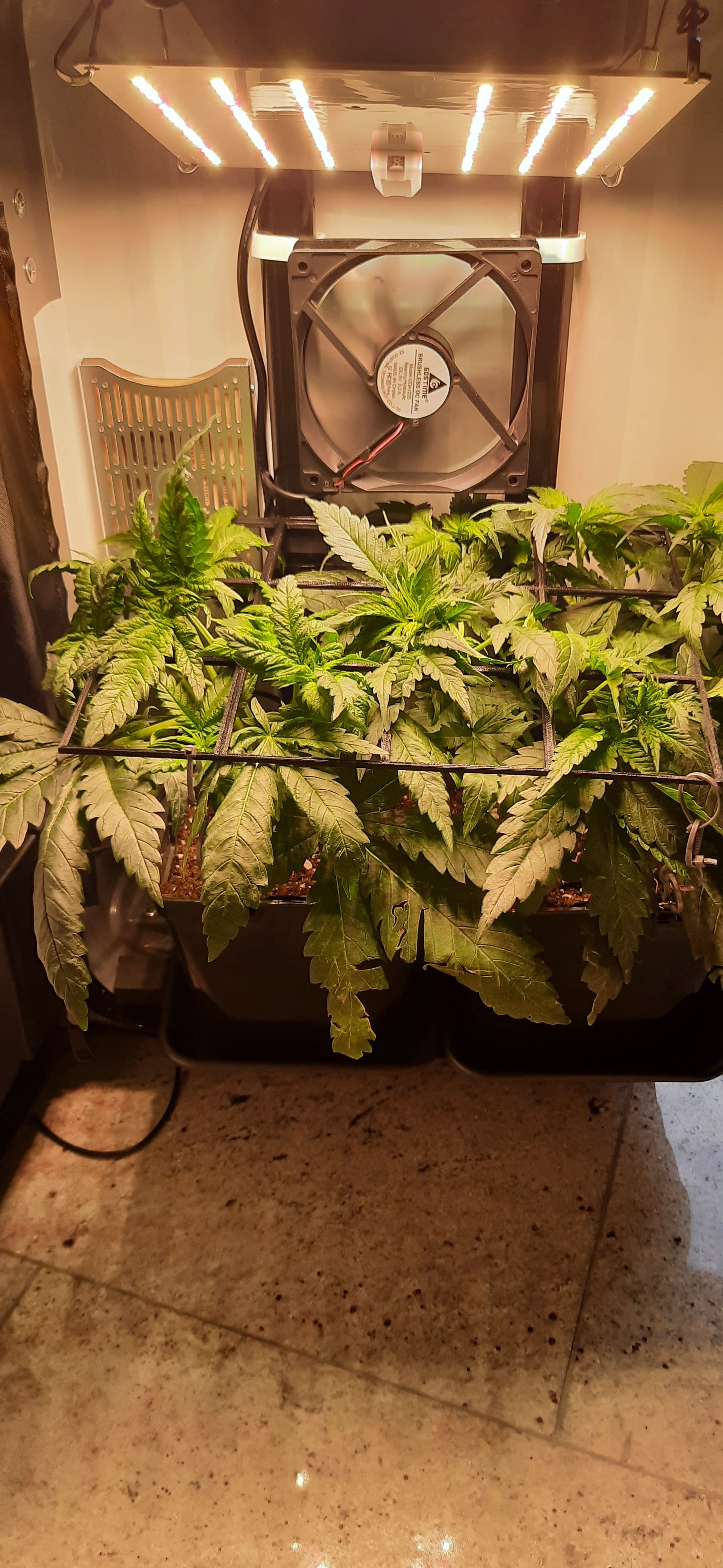 Blüte muss ggfs. diese Woche schon, spätestens nächste Woche, eingeleitet werden um durch Stretch der LED nicht zu nahe zu kommen.
