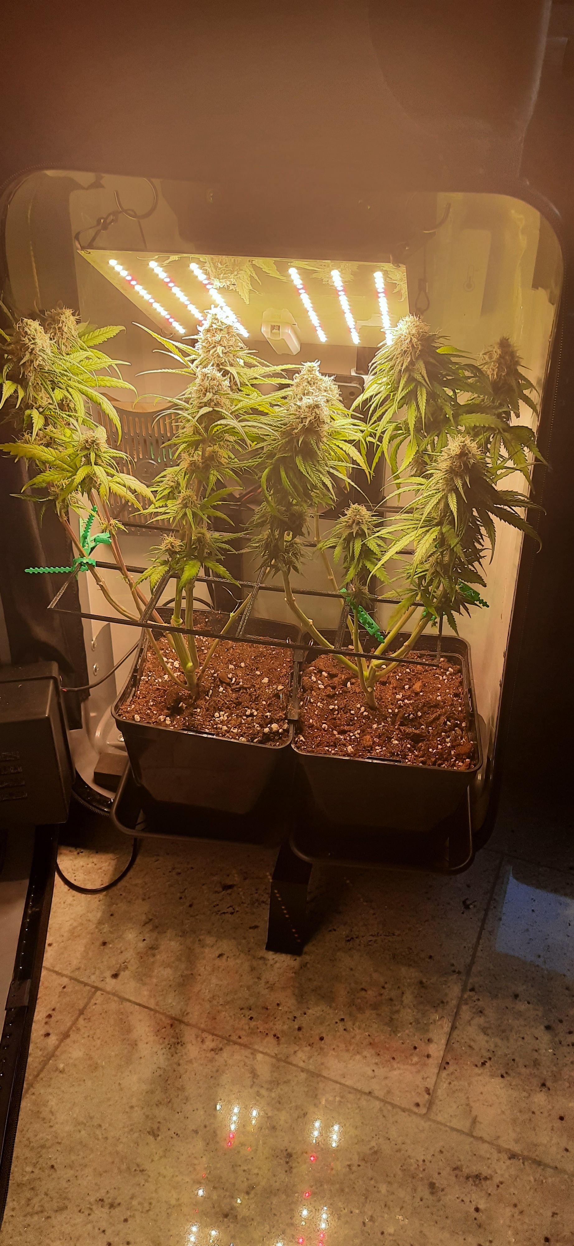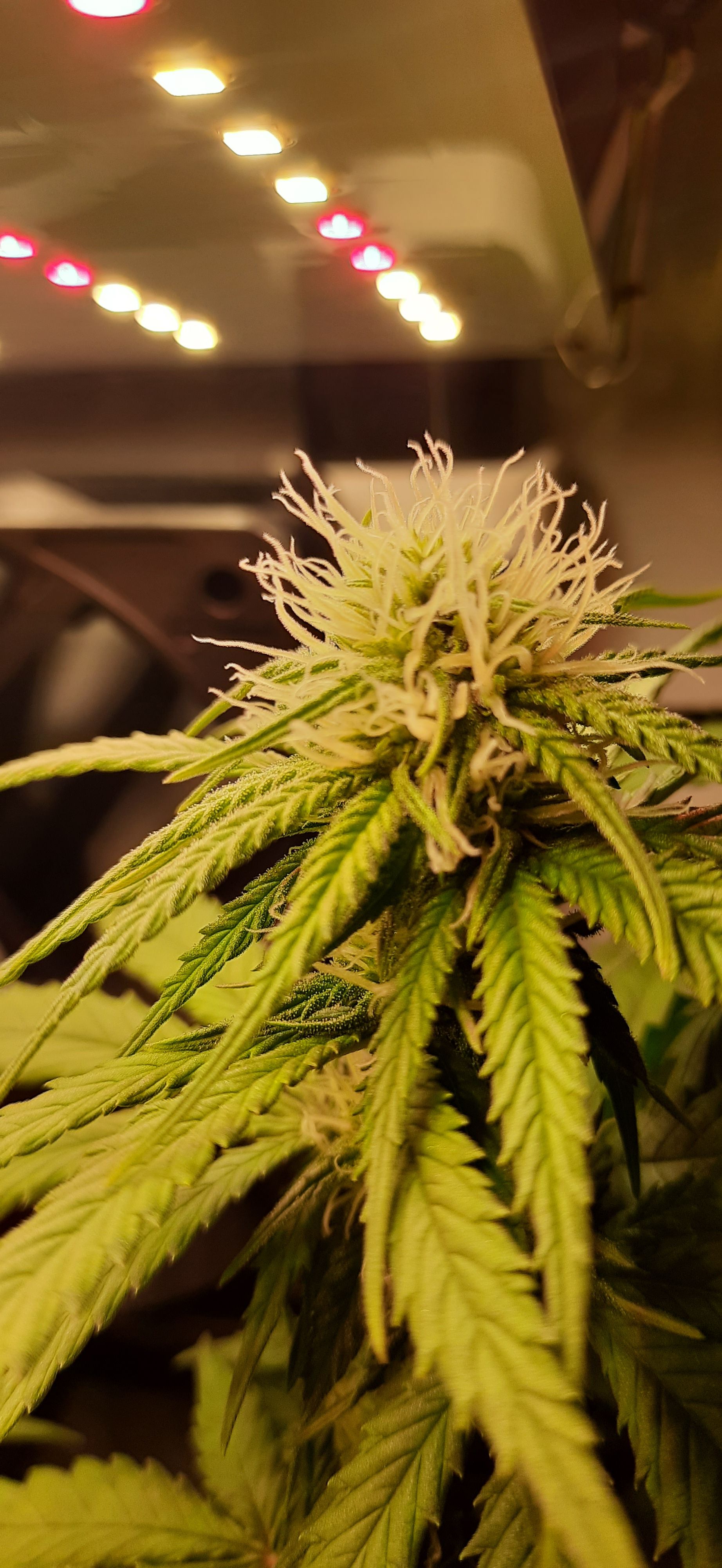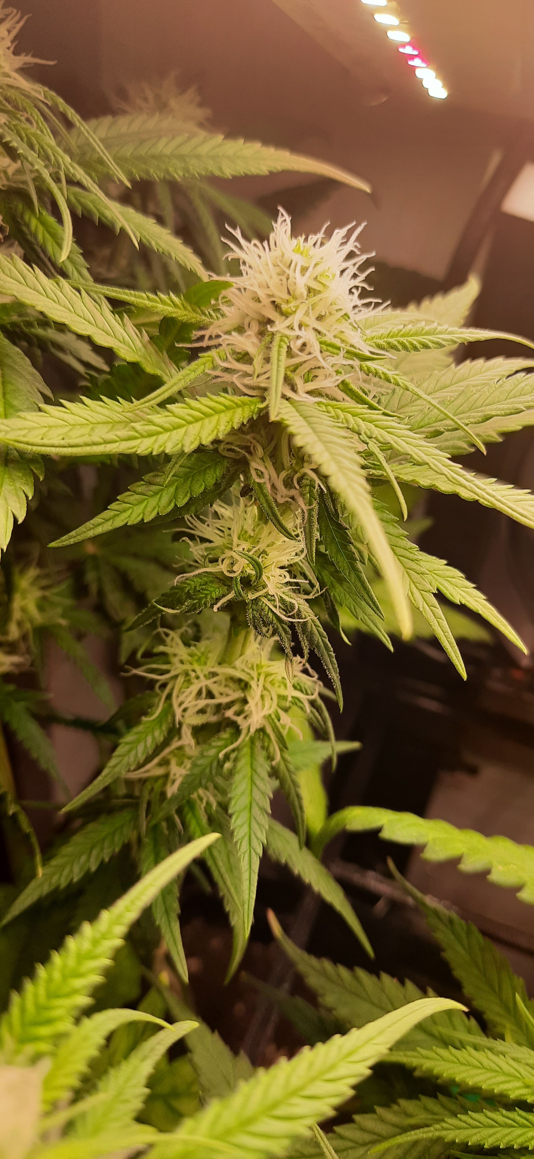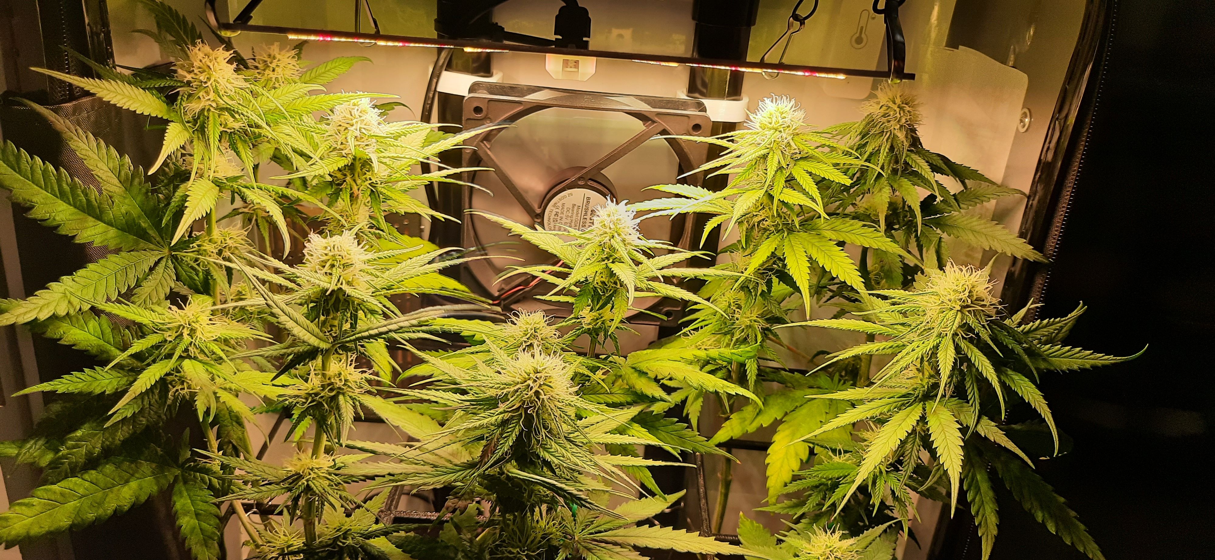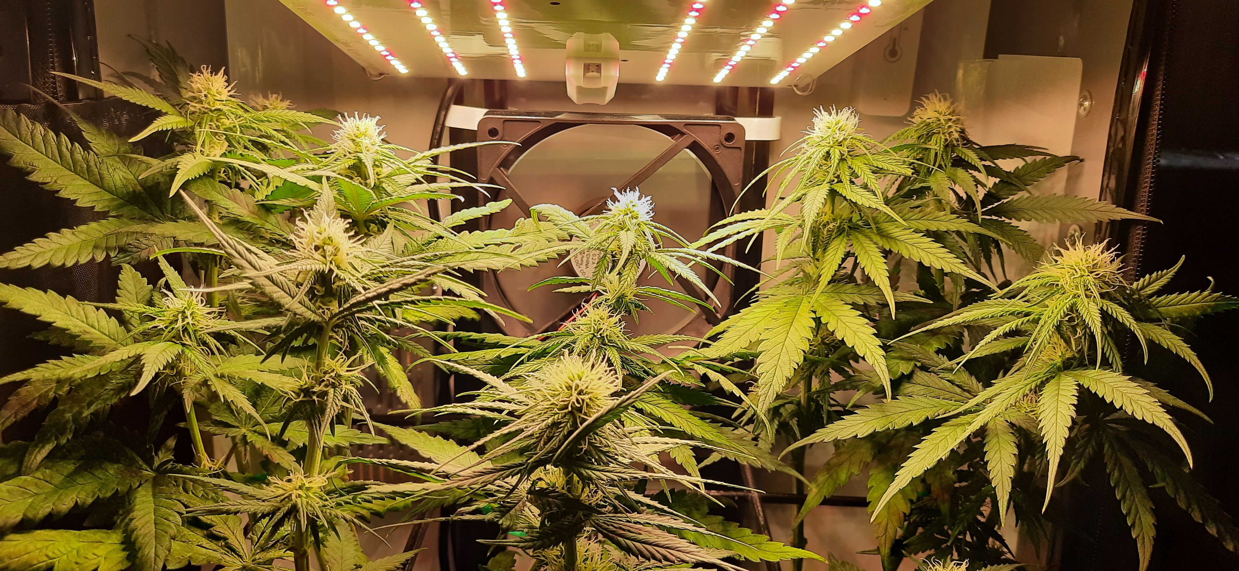 Blüte muss ggfs. diese Woche schon, spätestens nächste Woche, eingeleitet werden um durch Stretch der LED nicht zu nahe zu kommen.