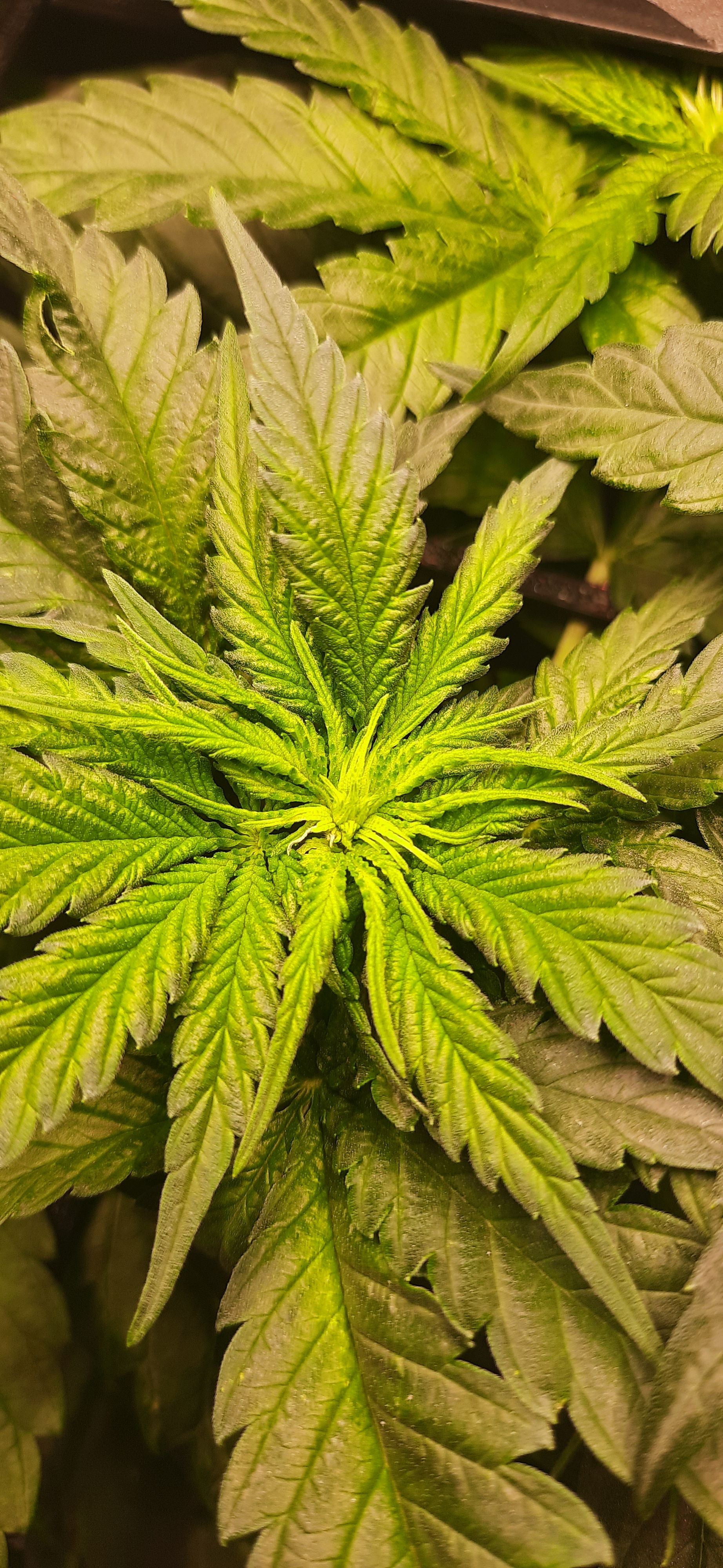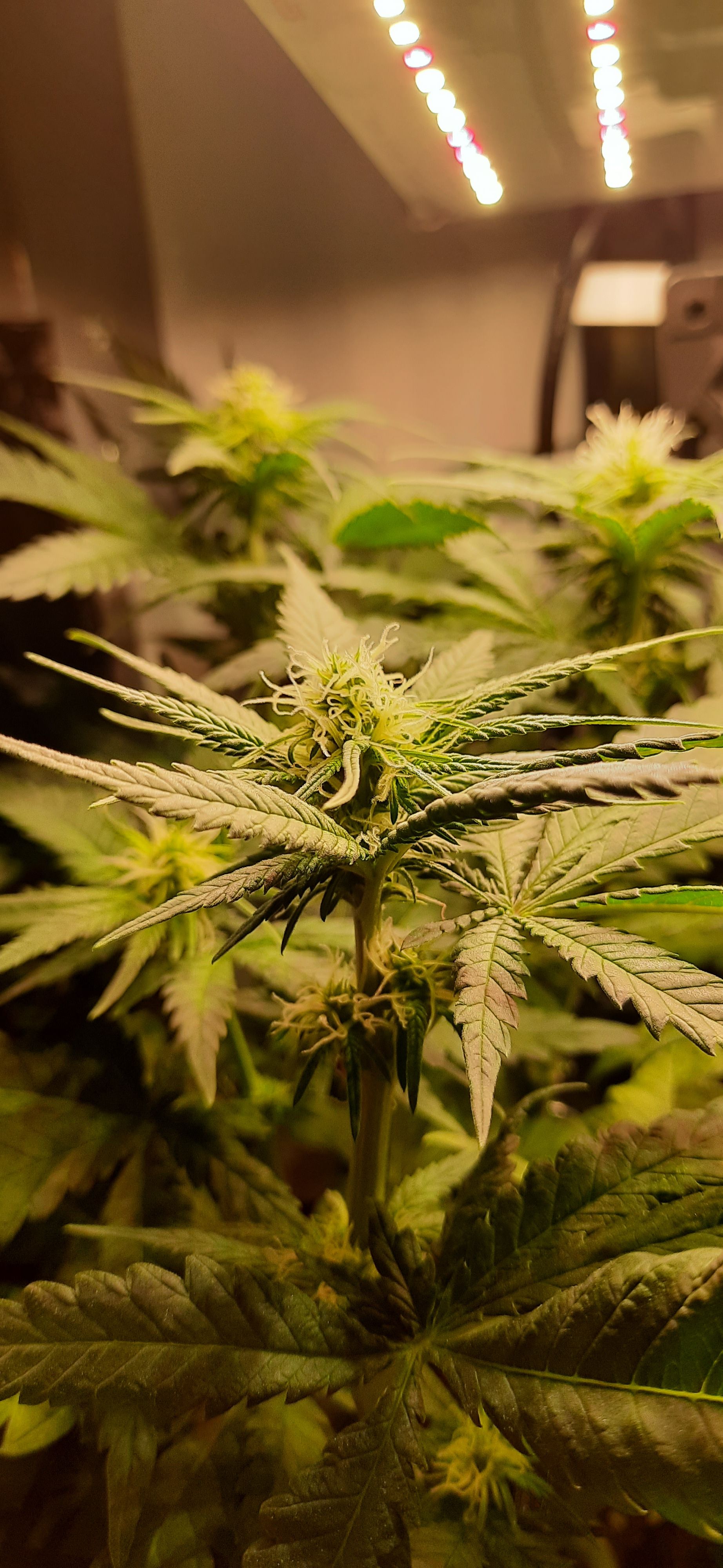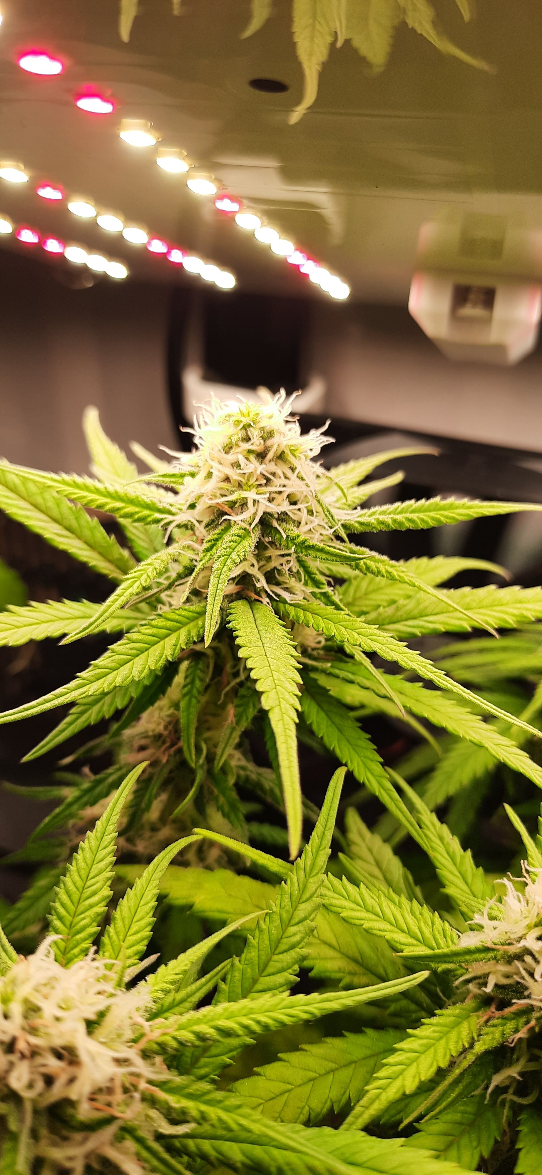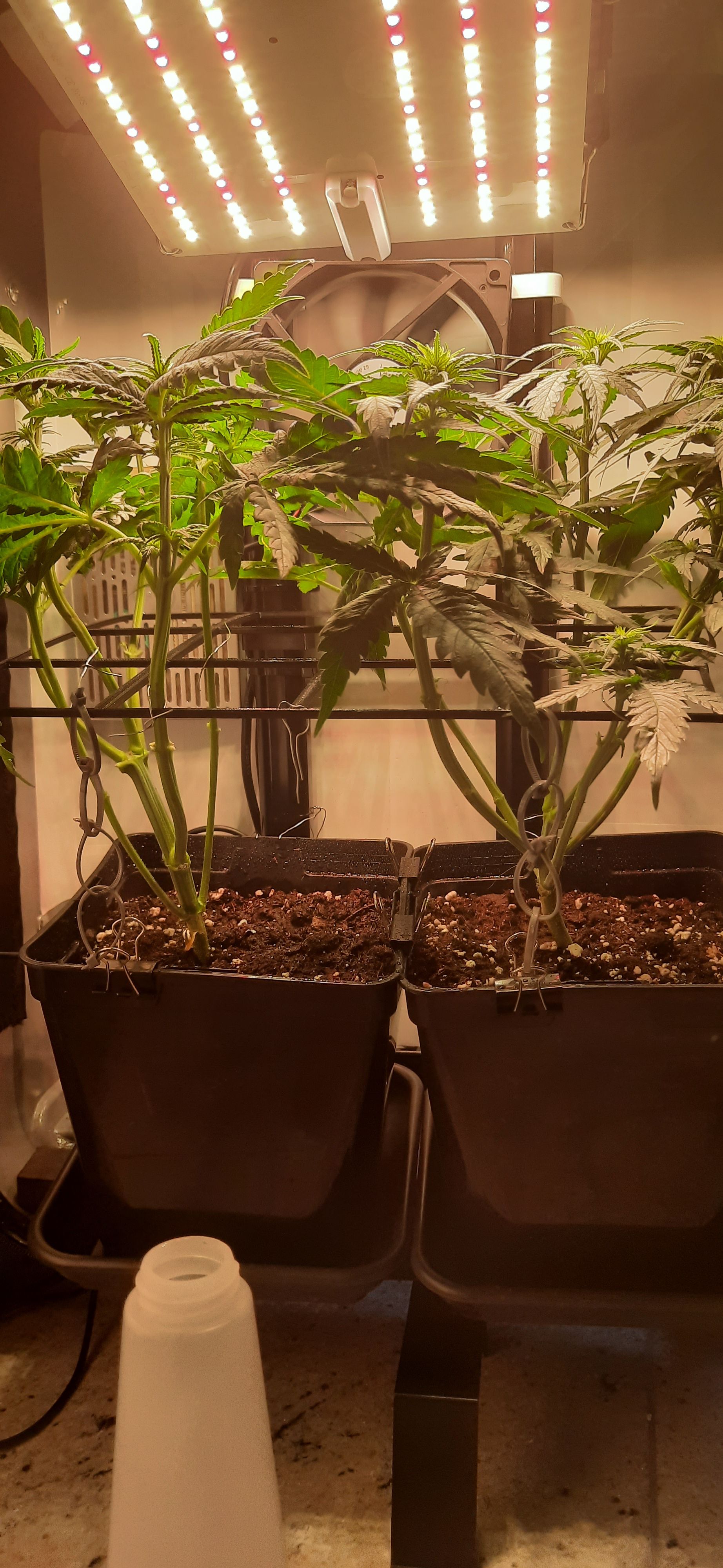 Blüte muss ggfs. diese Woche schon, spätestens nächste Woche, eingeleitet werden um durch Stretch der LED nicht zu nahe zu kommen.