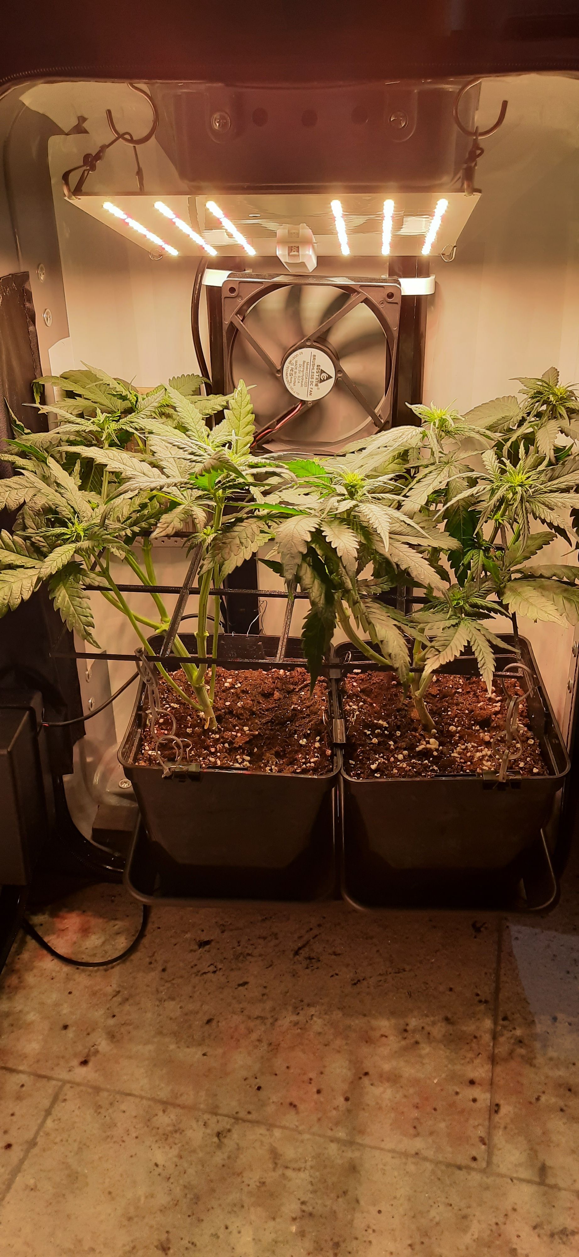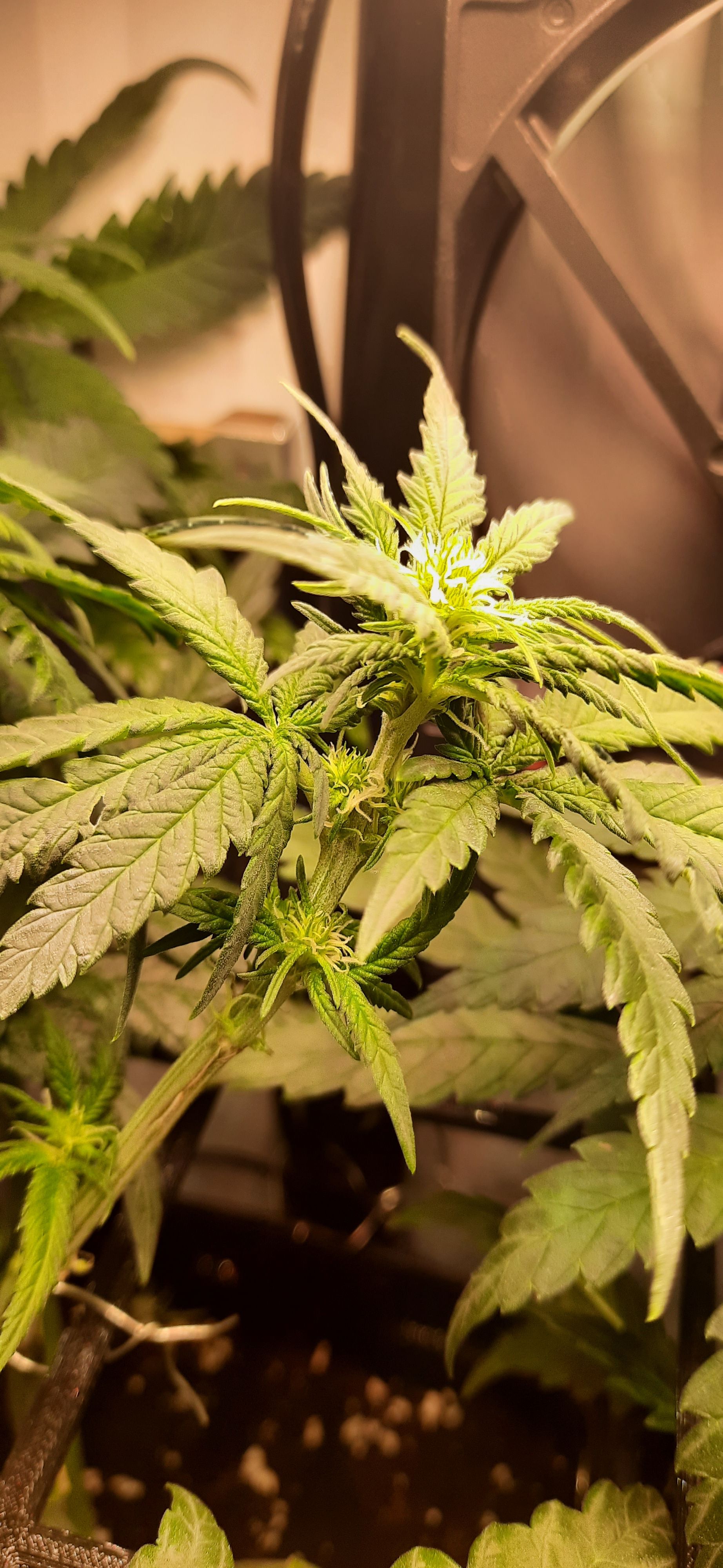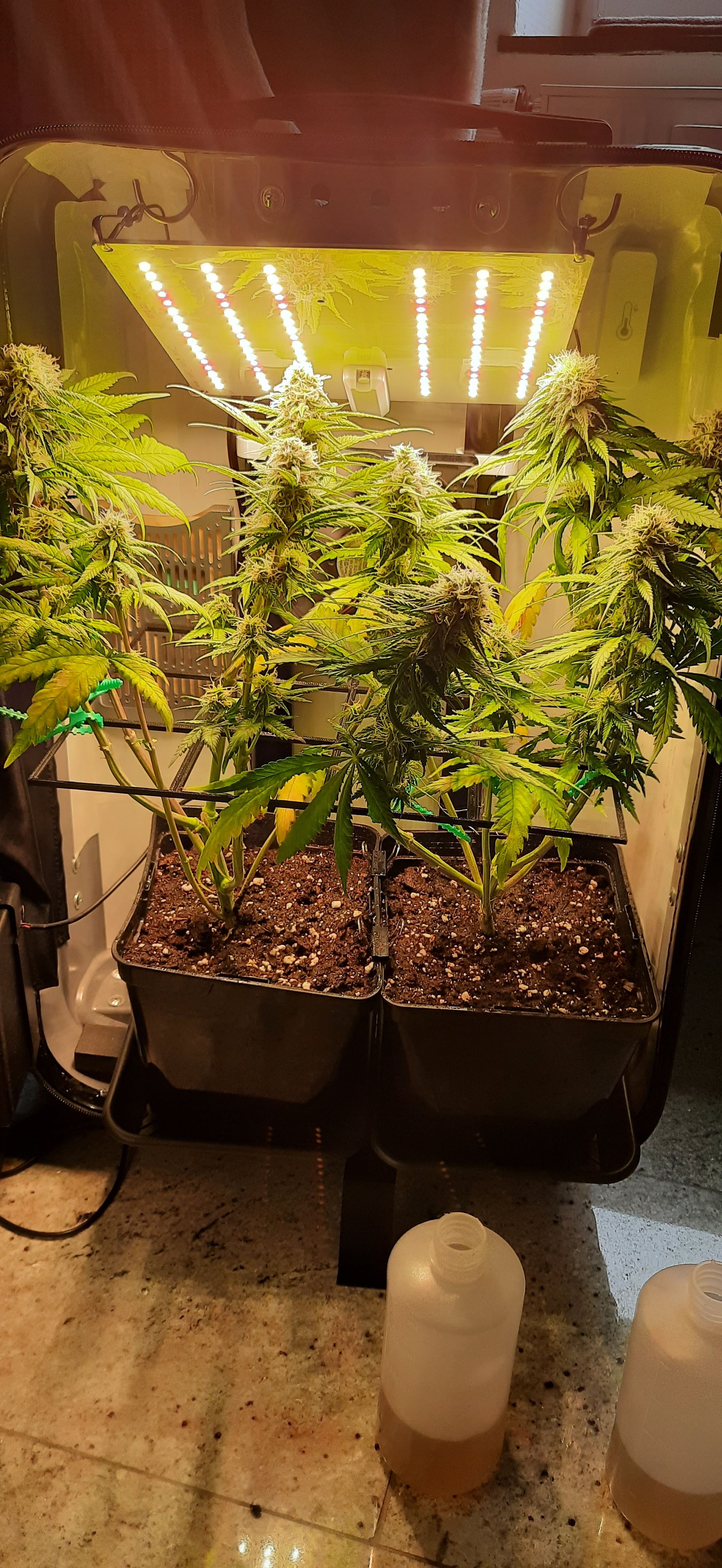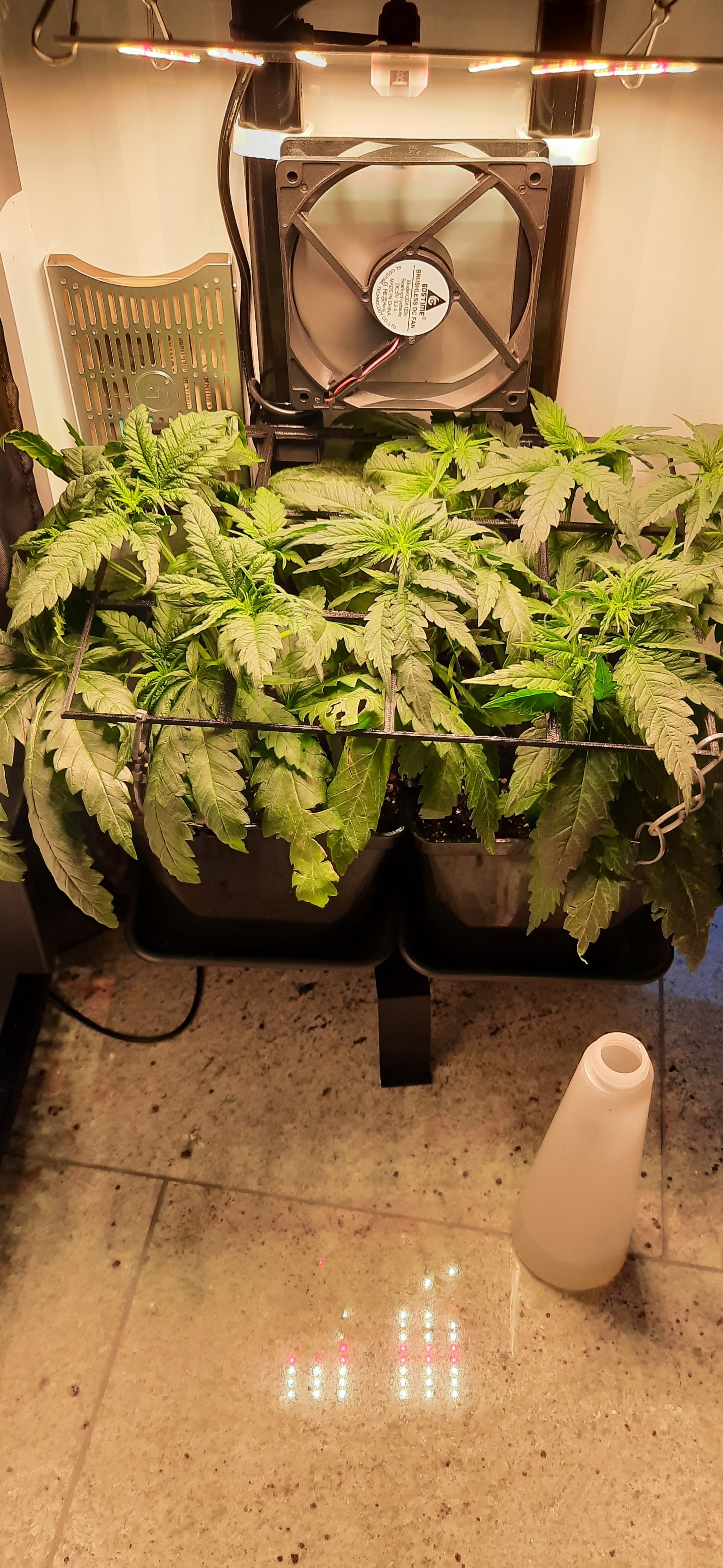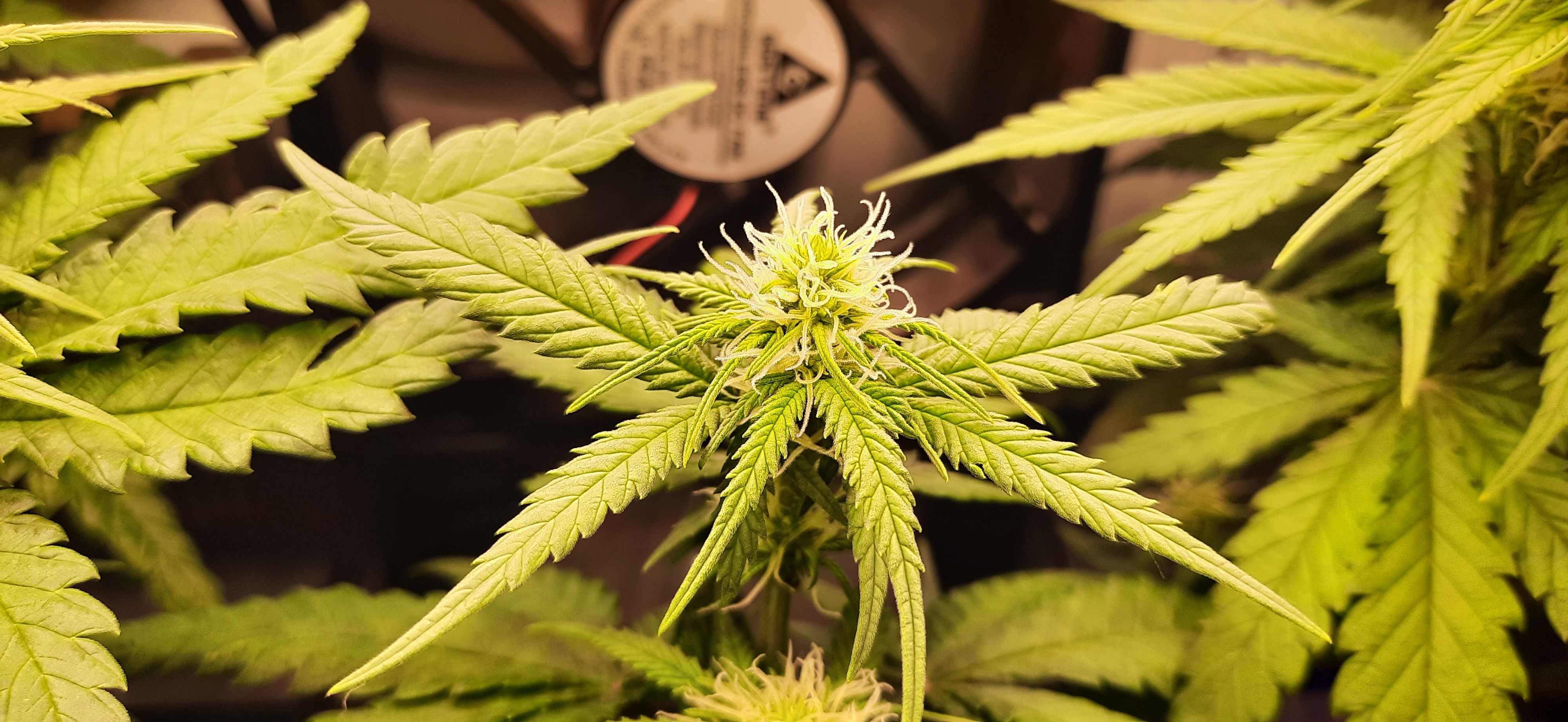 Blüte muss ggfs. diese Woche schon, spätestens nächste Woche, eingeleitet werden um durch Stretch der LED nicht zu nahe zu kommen.