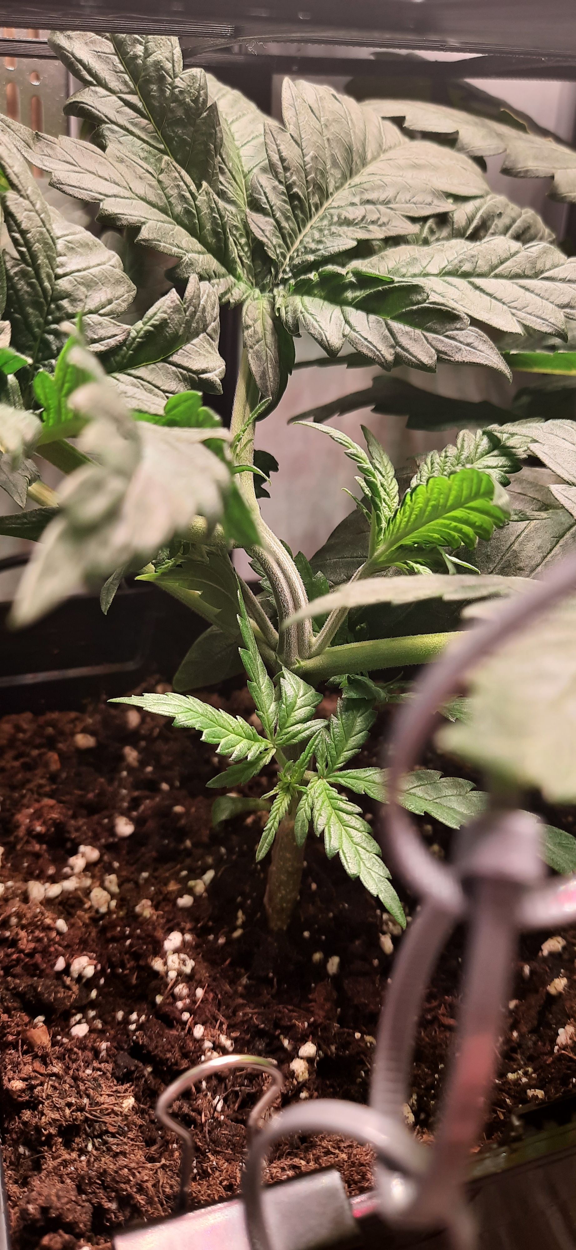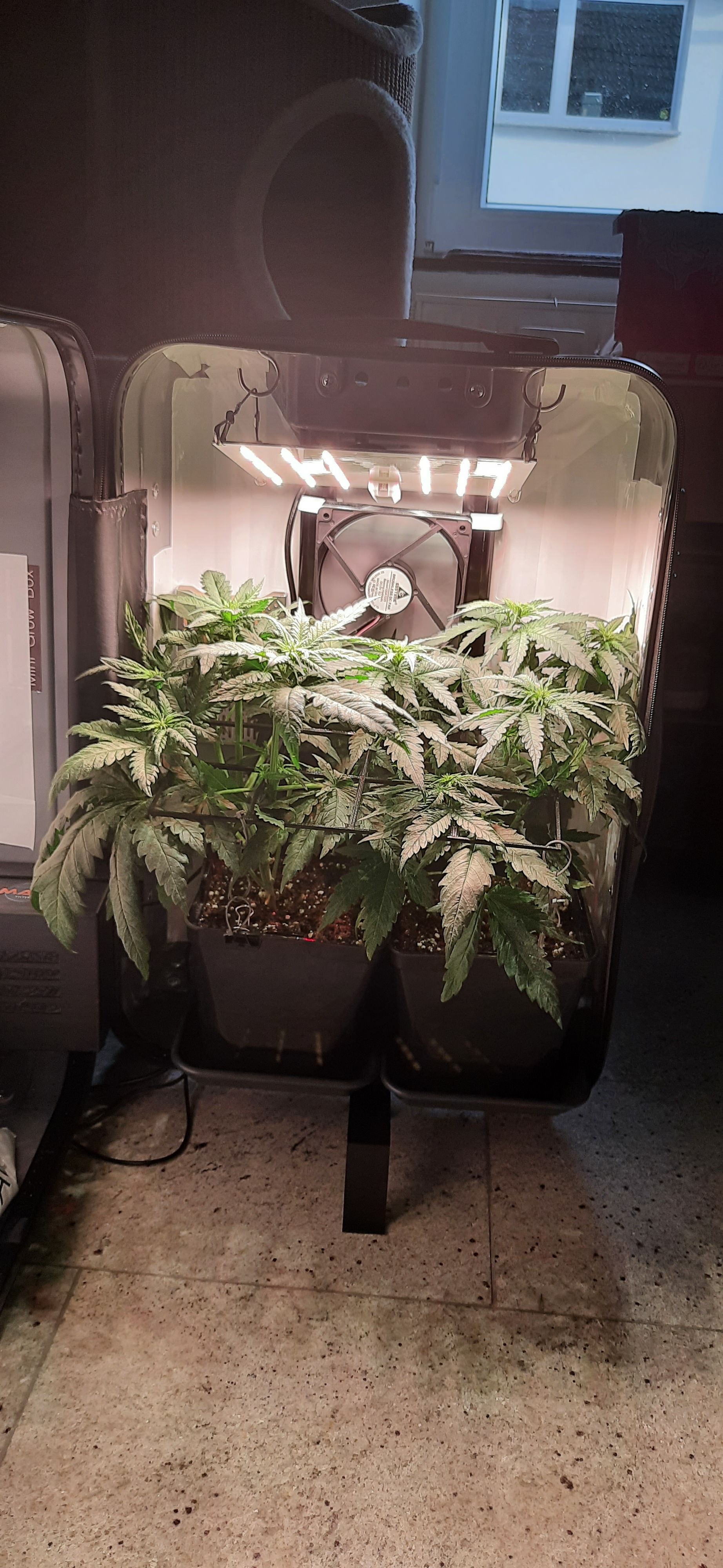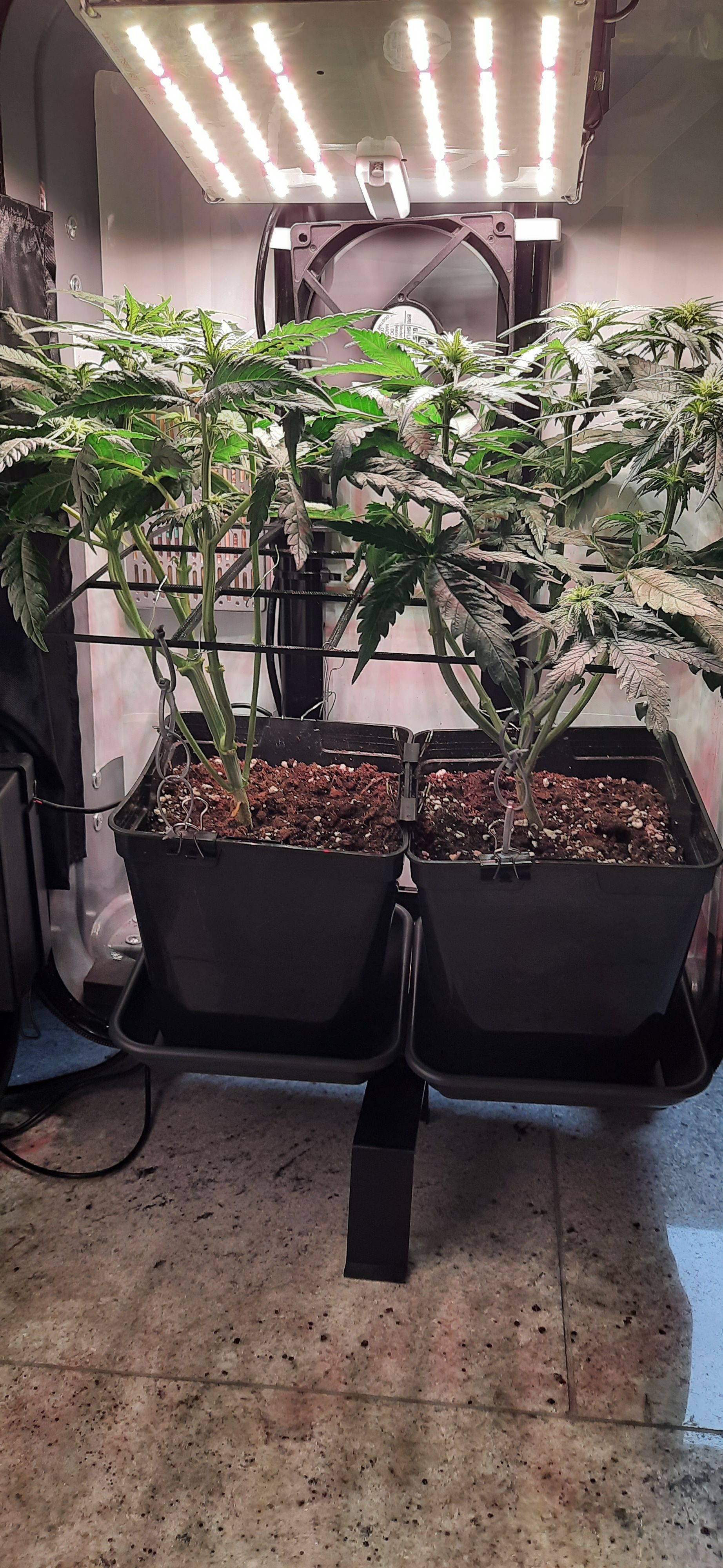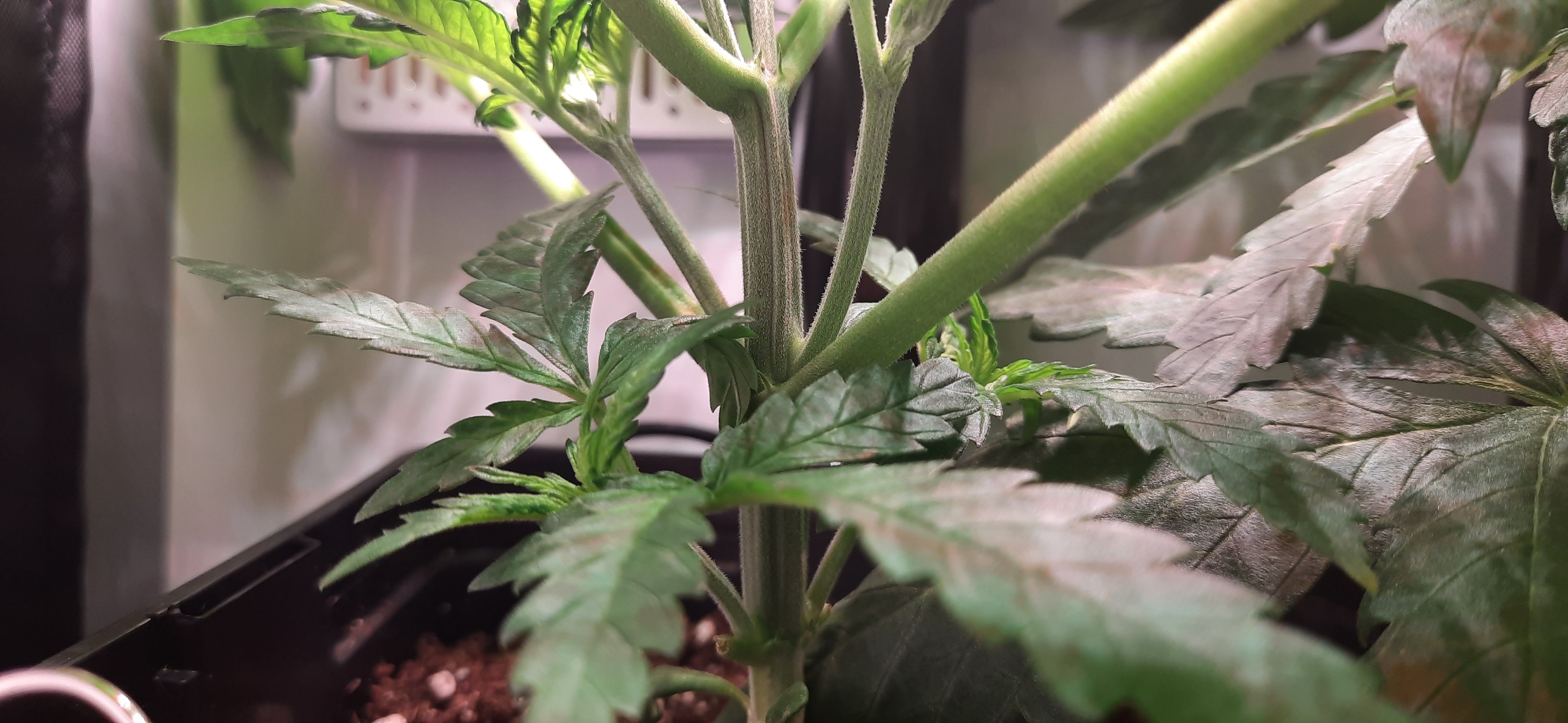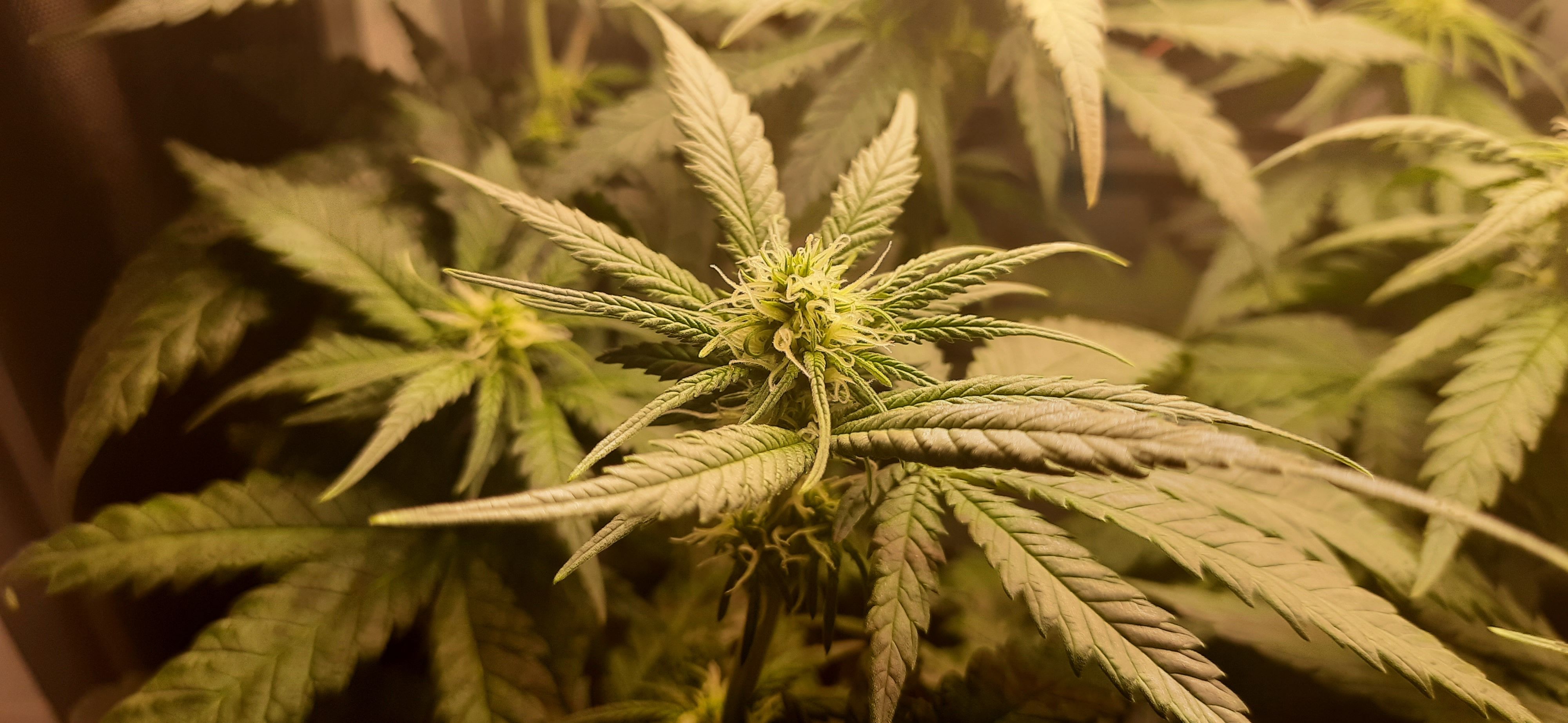 Blüte muss ggfs. diese Woche schon, spätestens nächste Woche, eingeleitet werden um durch Stretch der LED nicht zu nahe zu kommen.