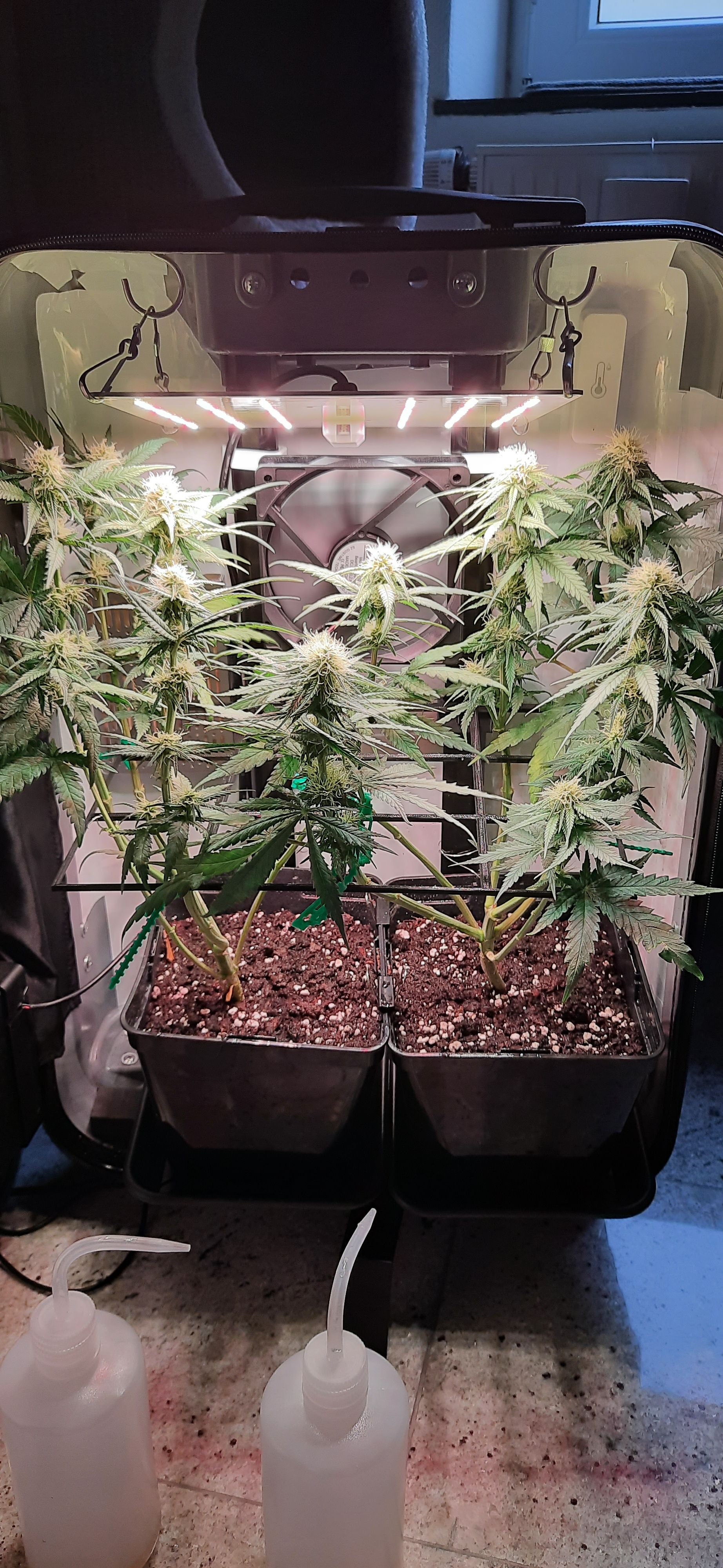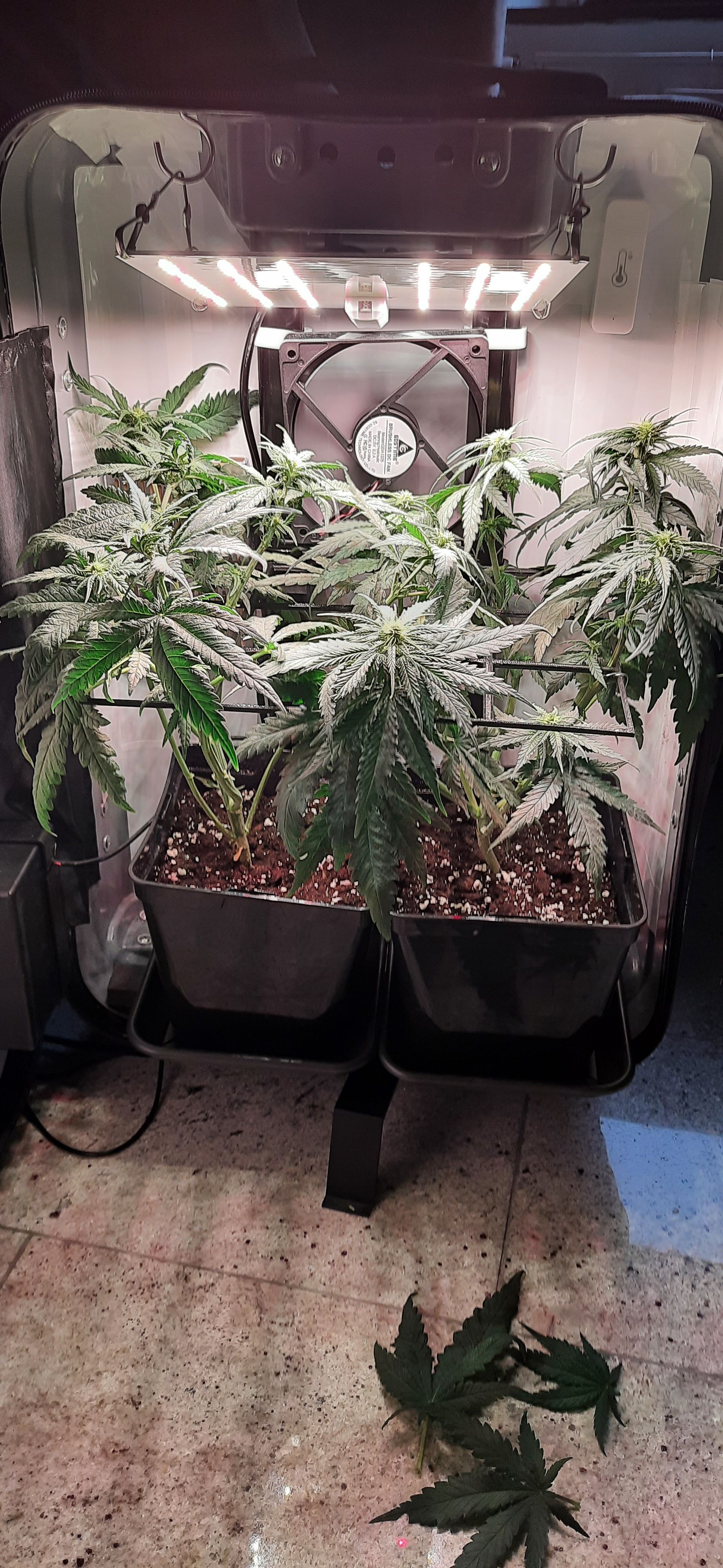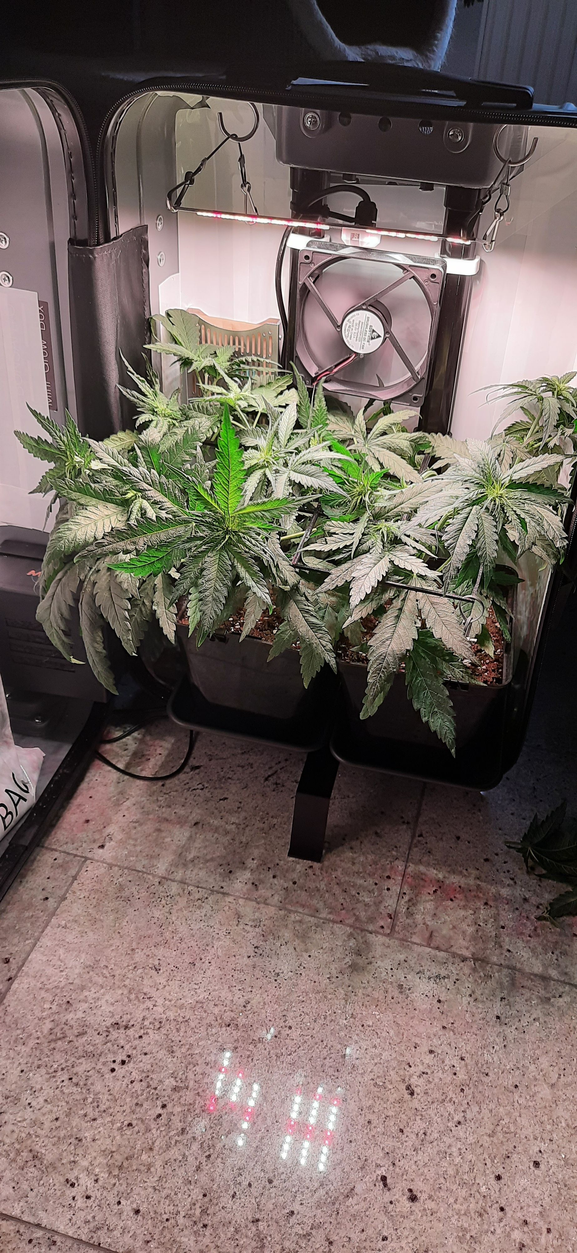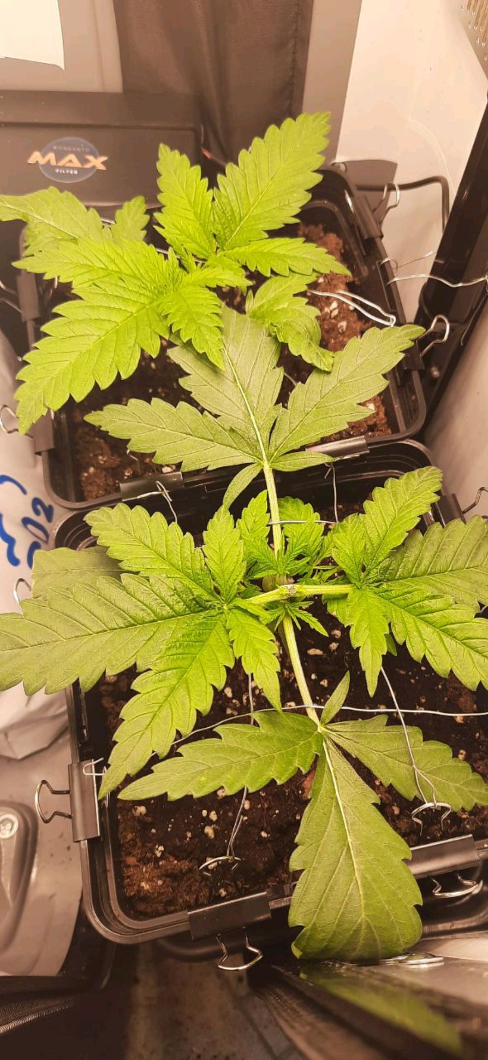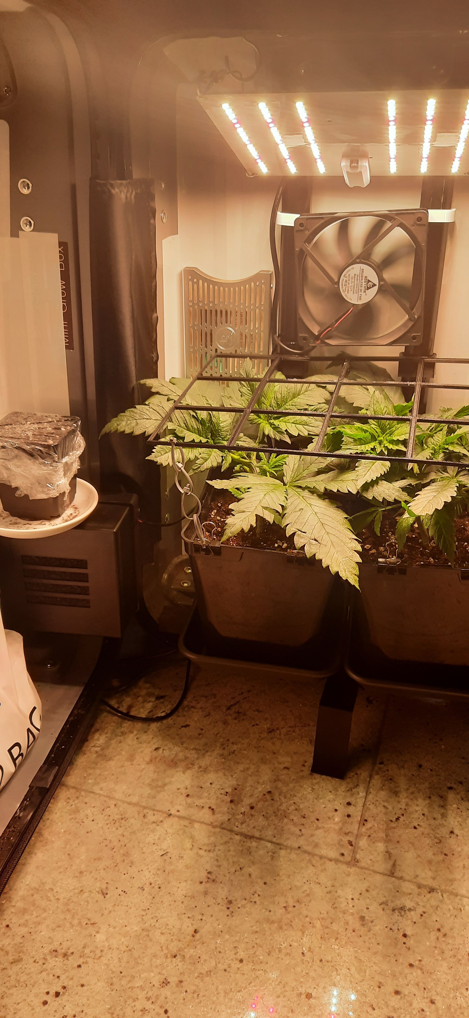 Blüte muss ggfs. diese Woche schon, spätestens nächste Woche, eingeleitet werden um durch Stretch der LED nicht zu nahe zu kommen.