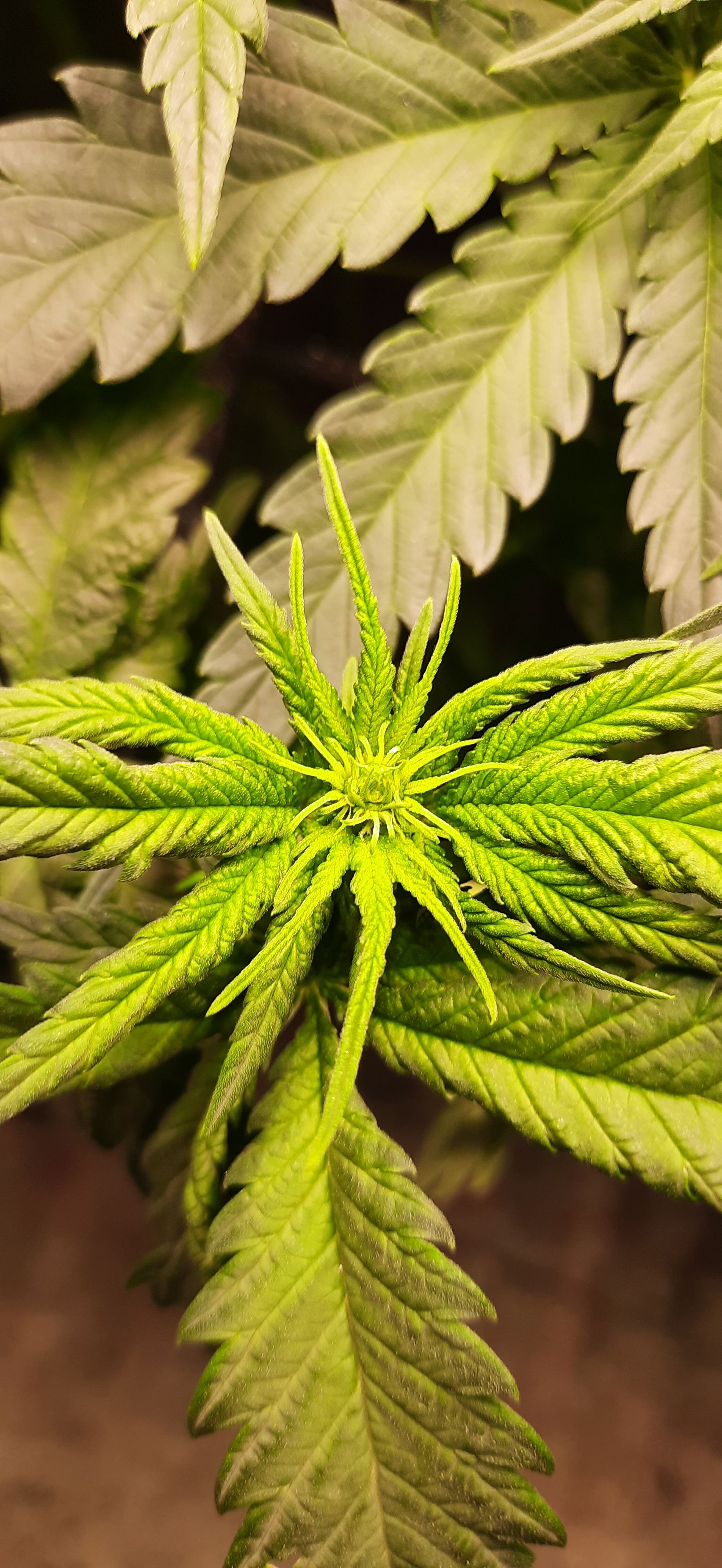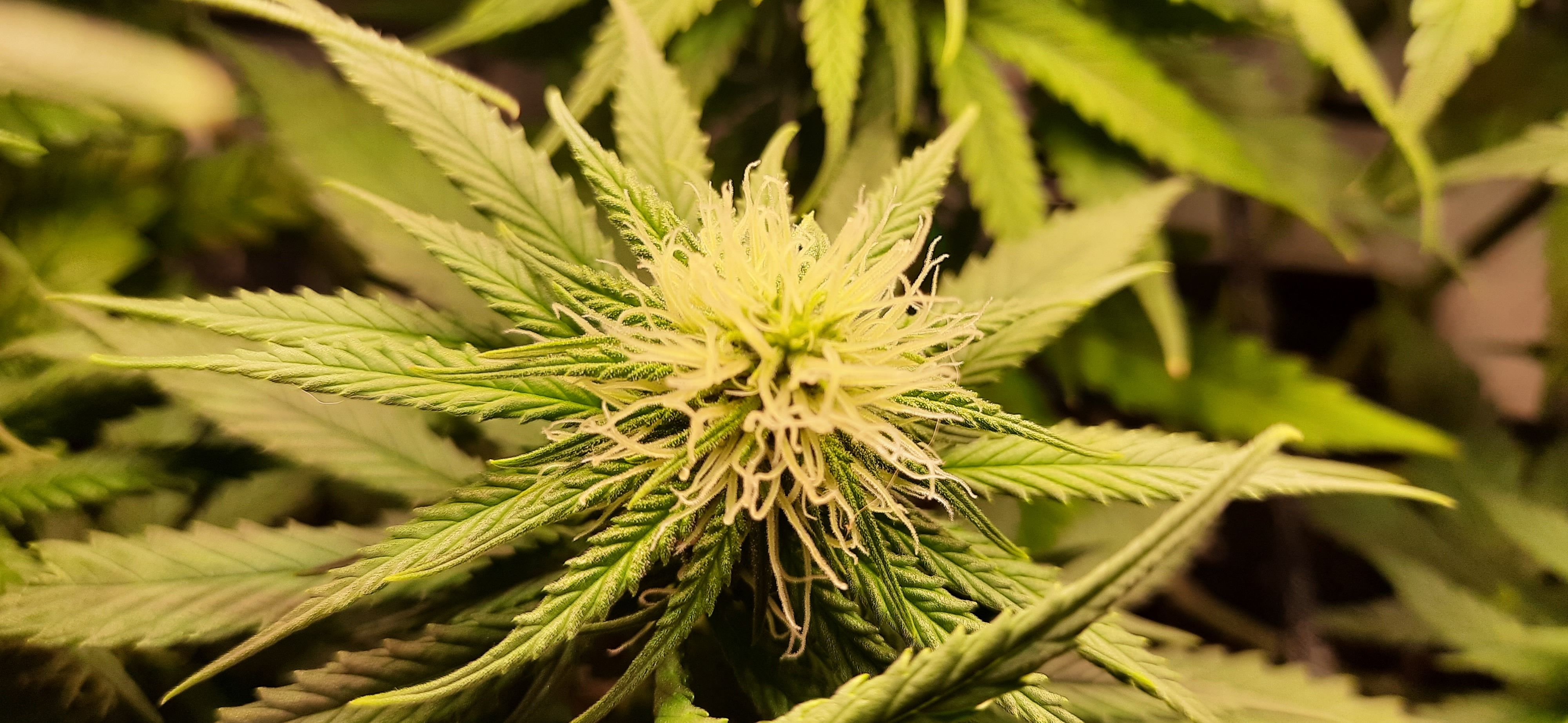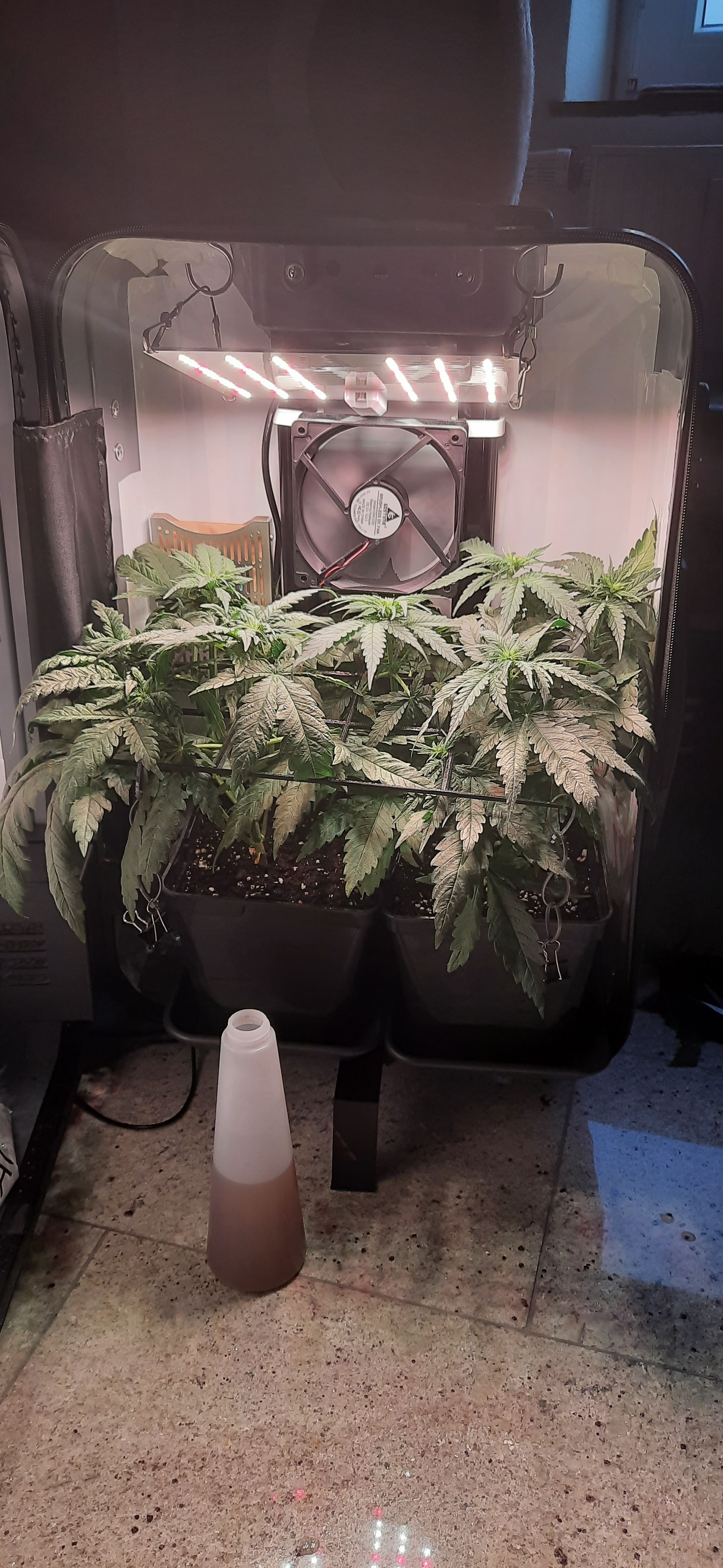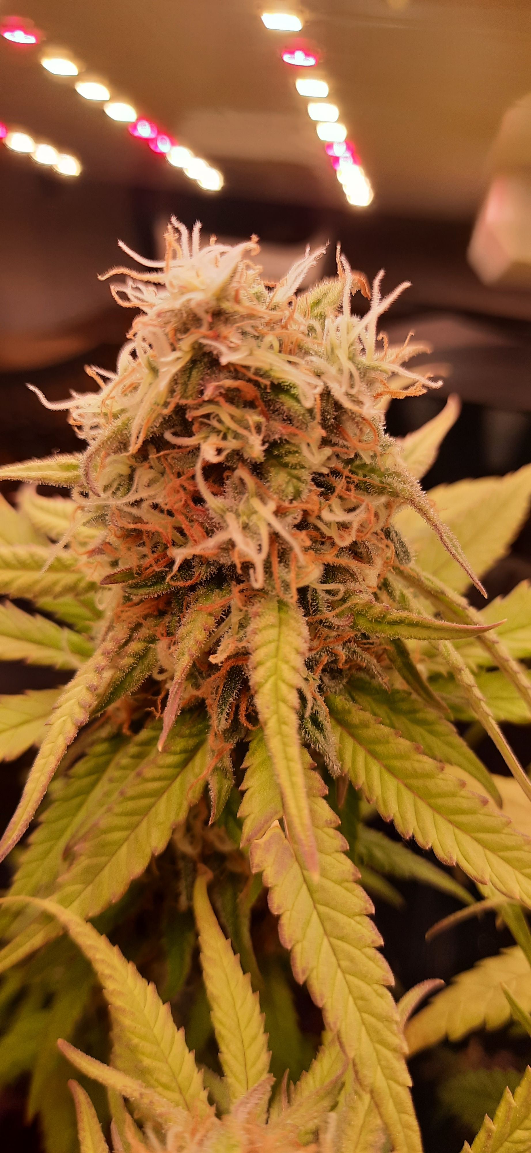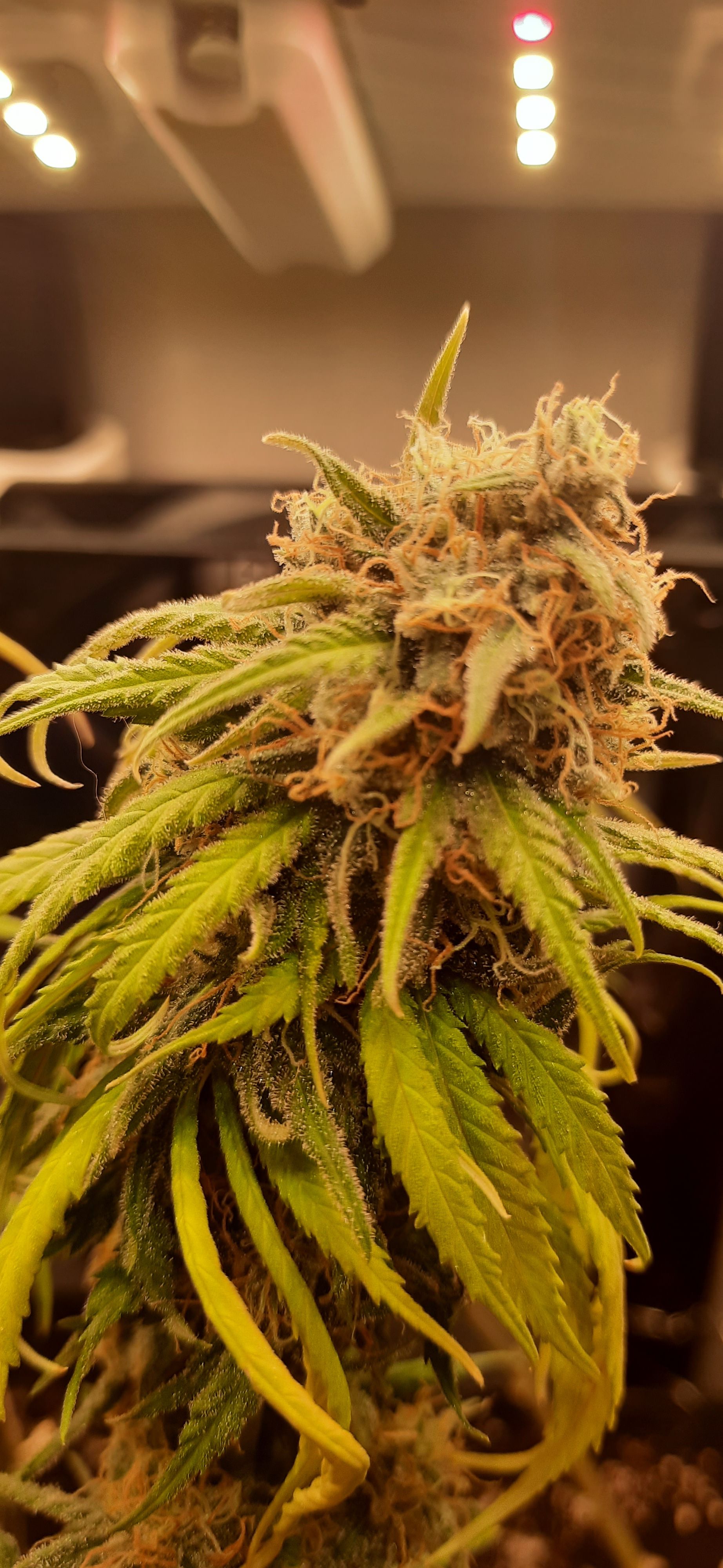 Blüte muss ggfs. diese Woche schon, spätestens nächste Woche, eingeleitet werden um durch Stretch der LED nicht zu nahe zu kommen.