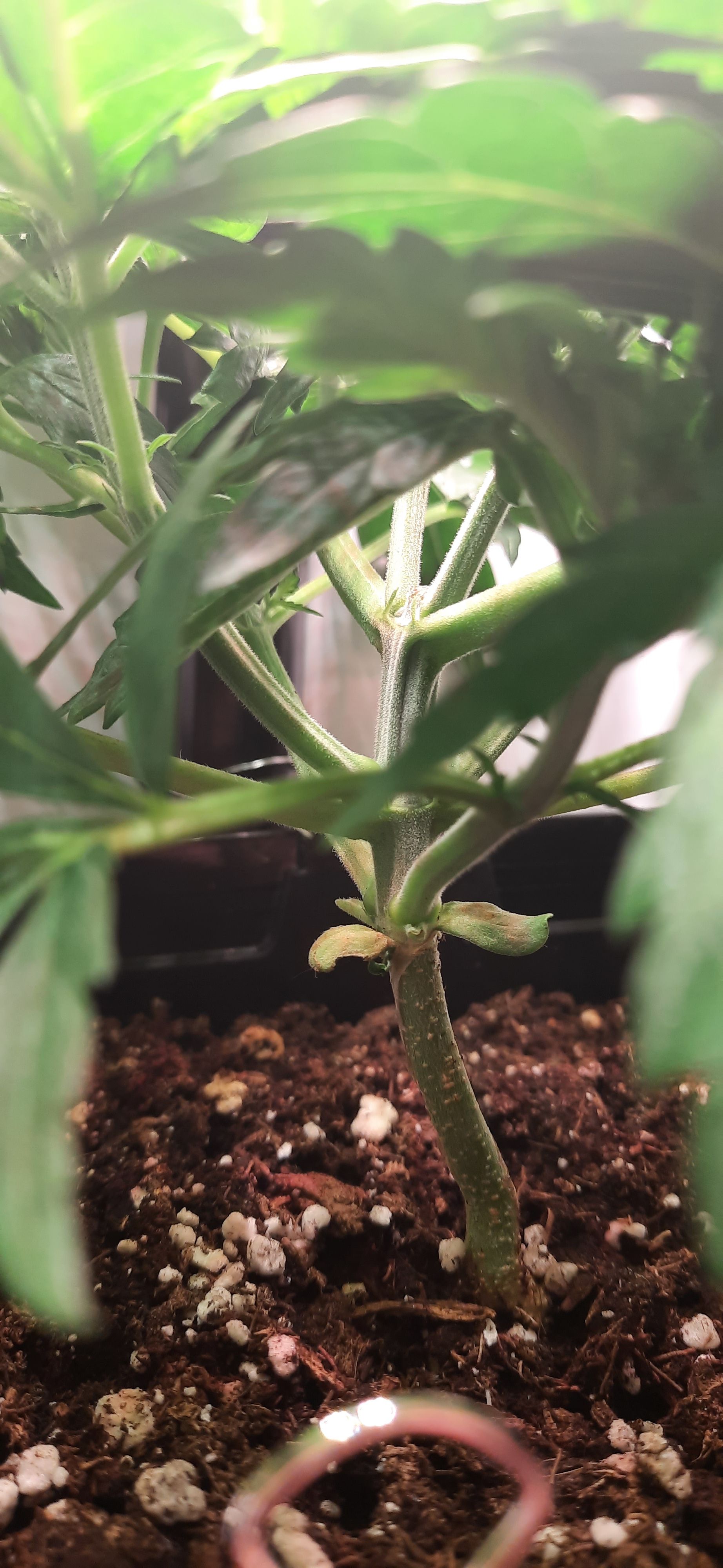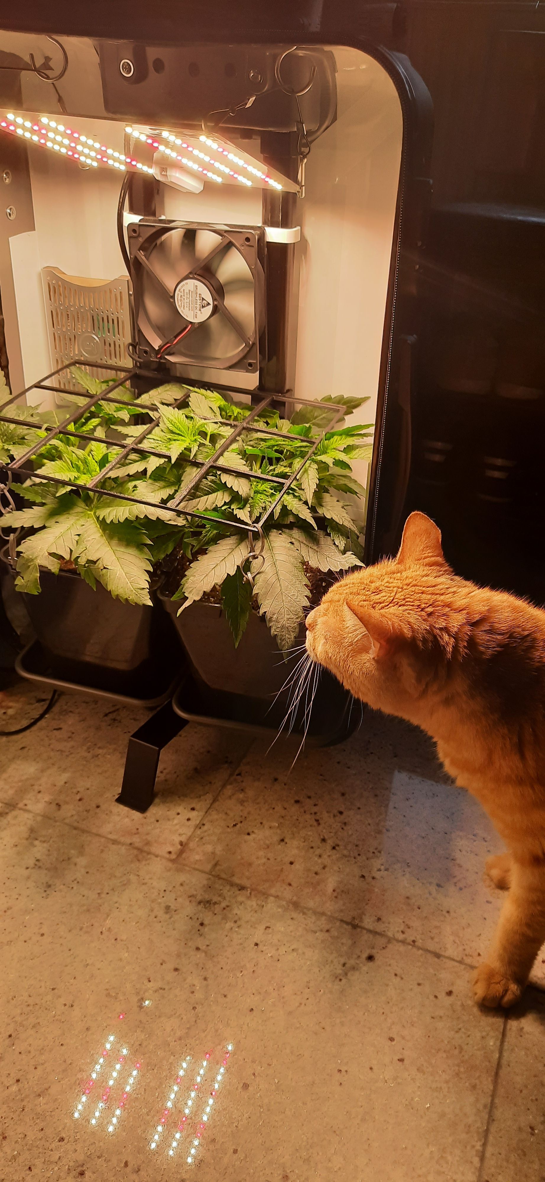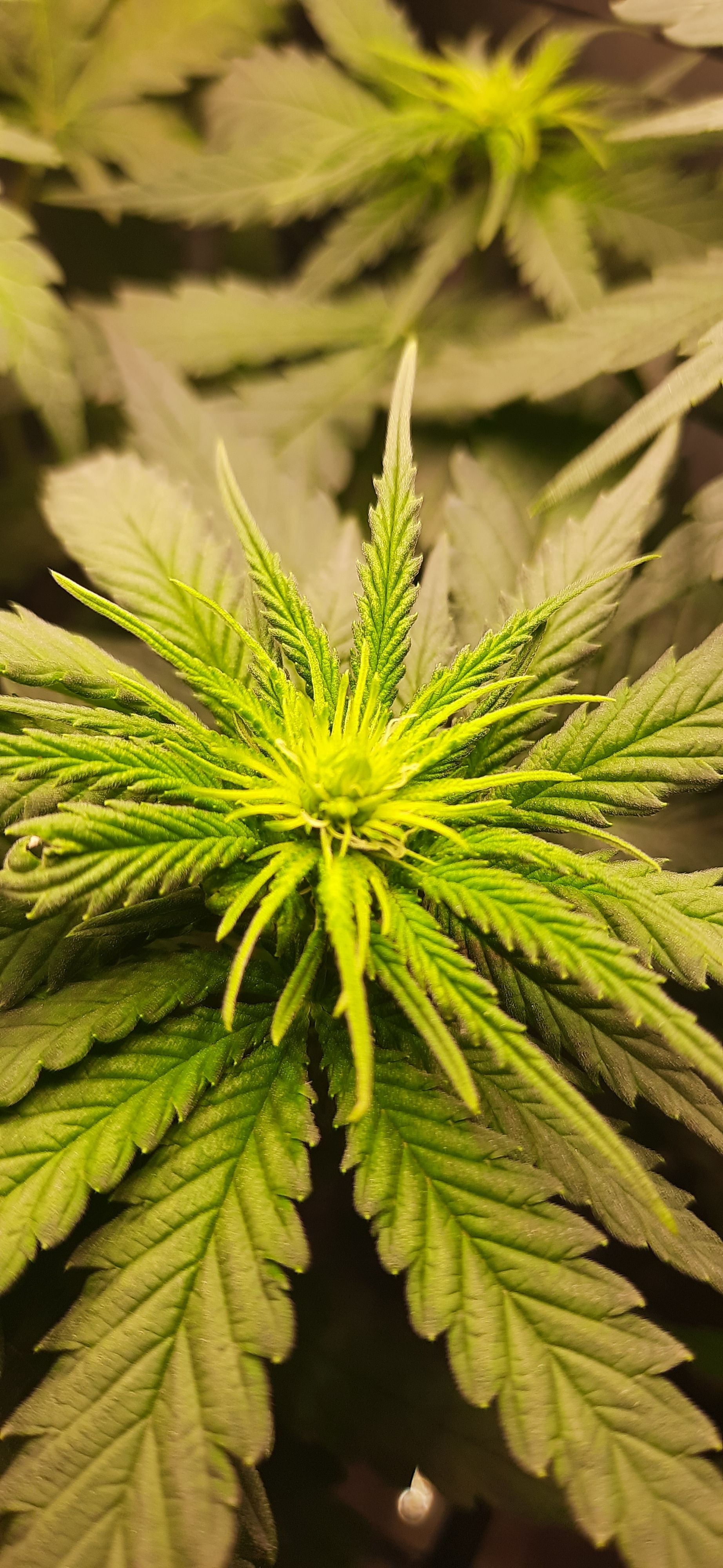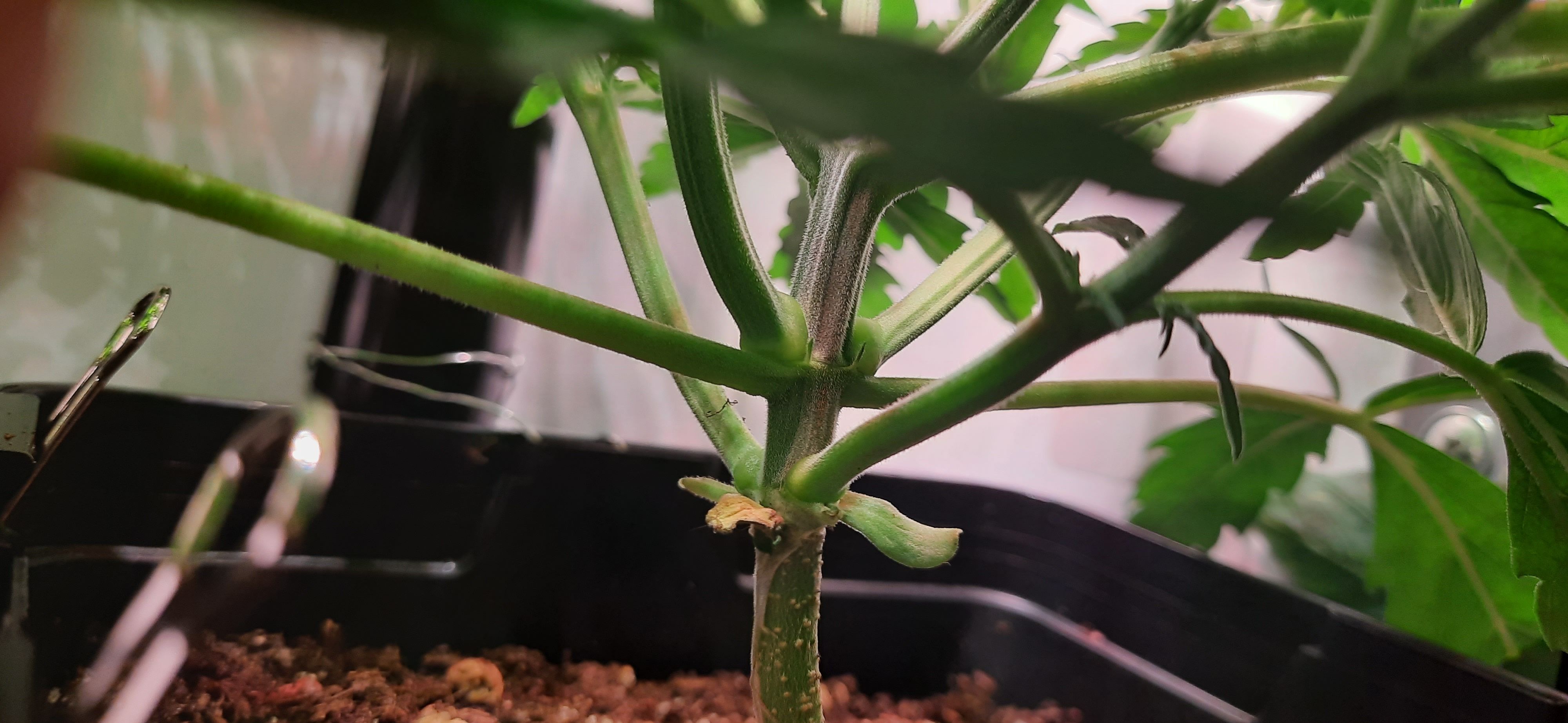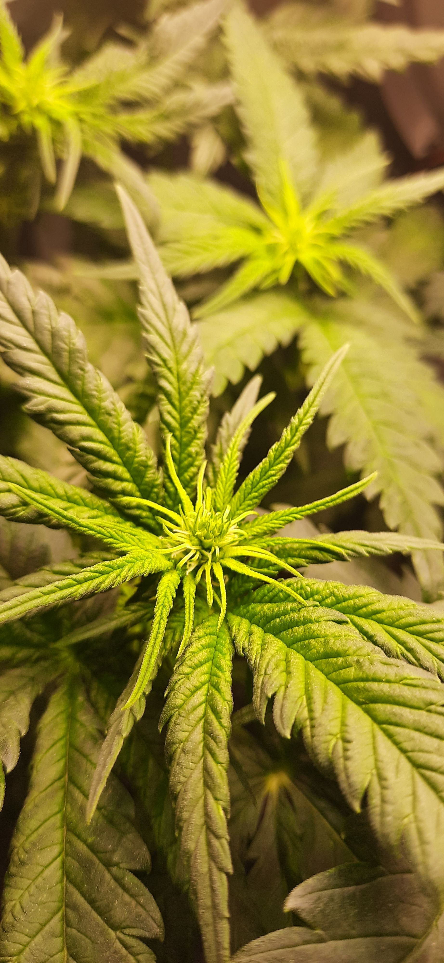 Blüte muss ggfs. diese Woche schon, spätestens nächste Woche, eingeleitet werden um durch Stretch der LED nicht zu nahe zu kommen.