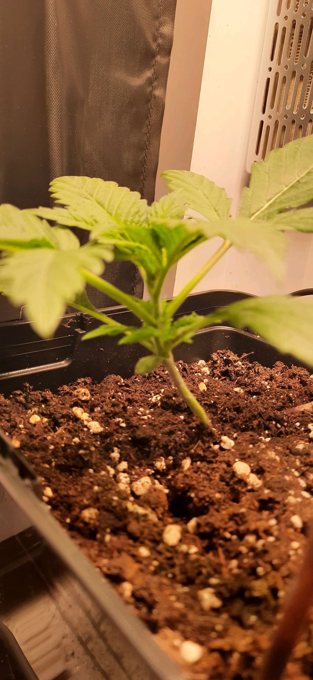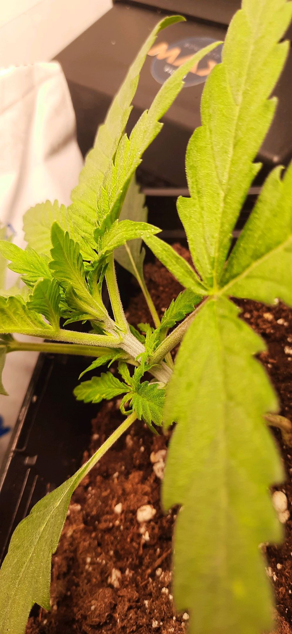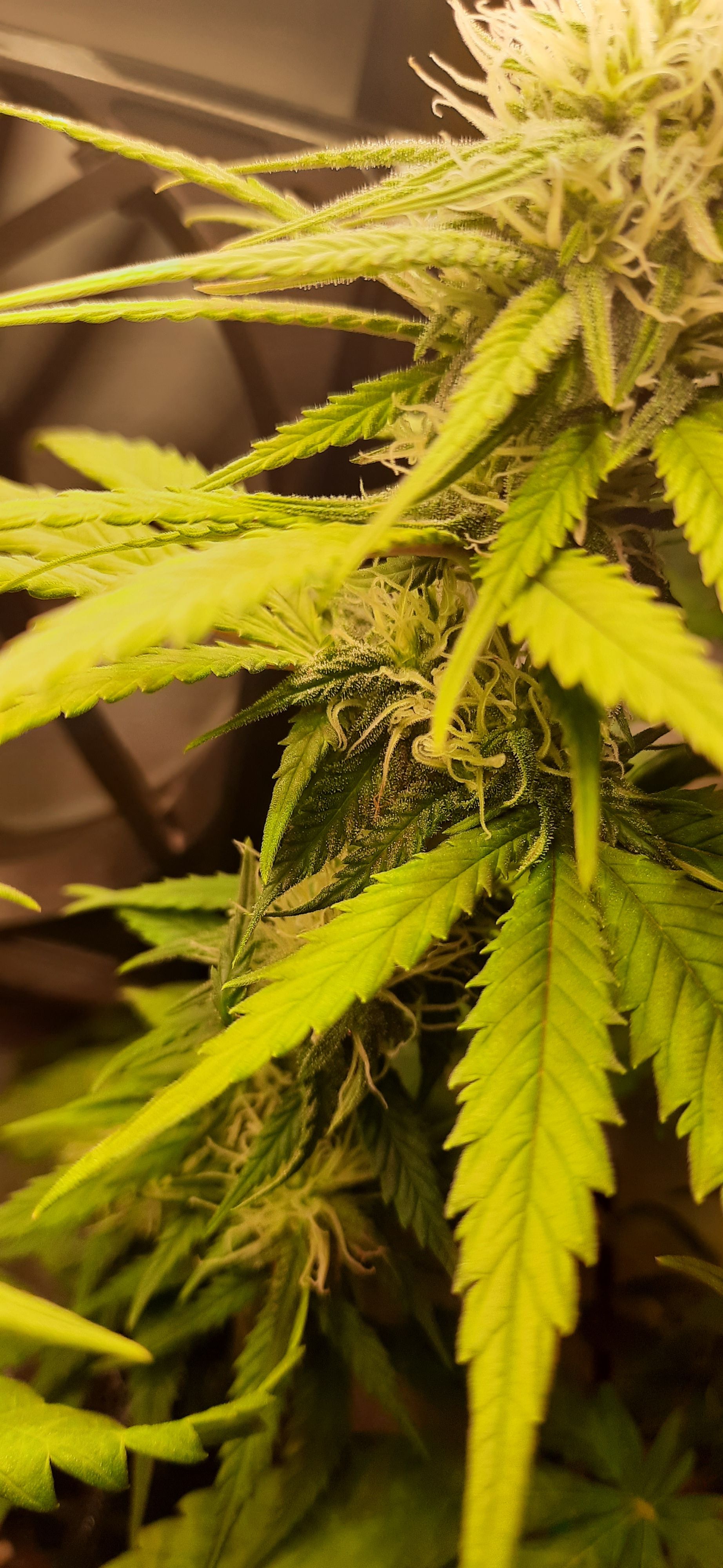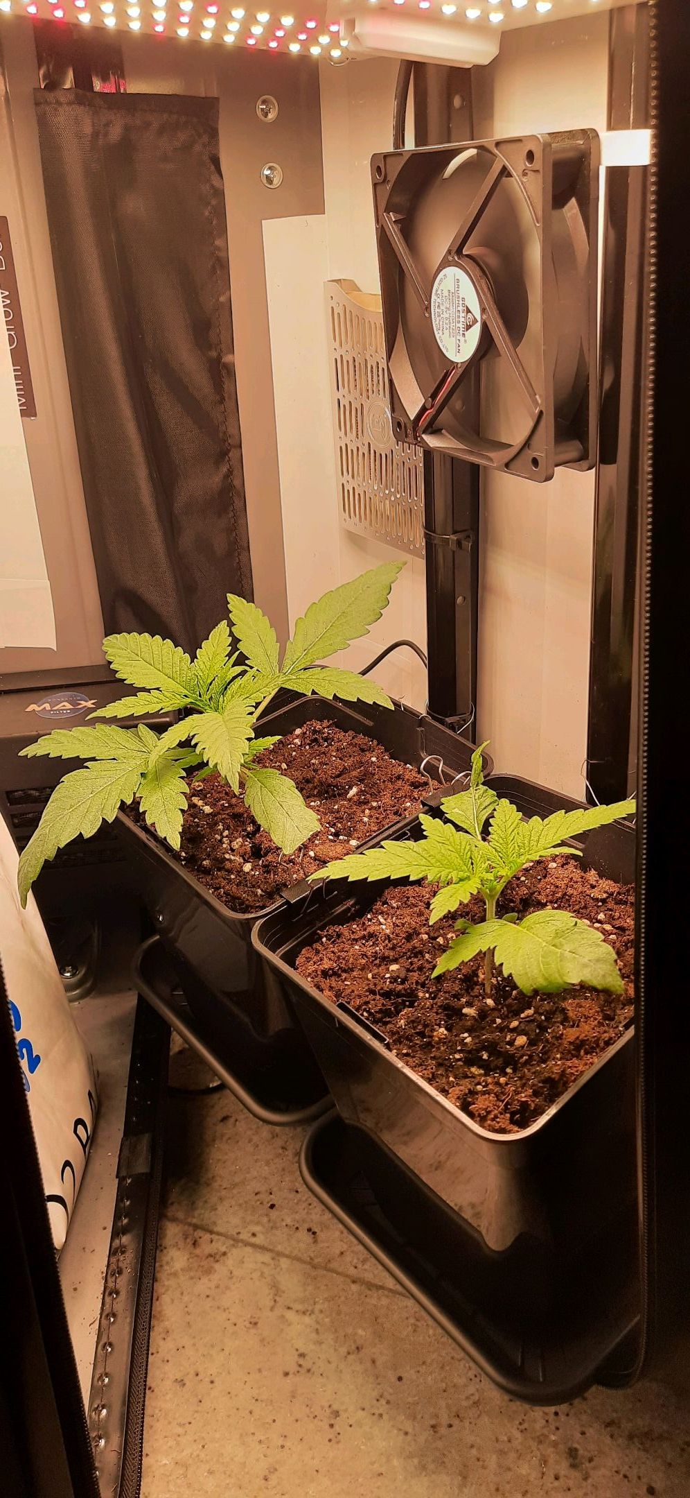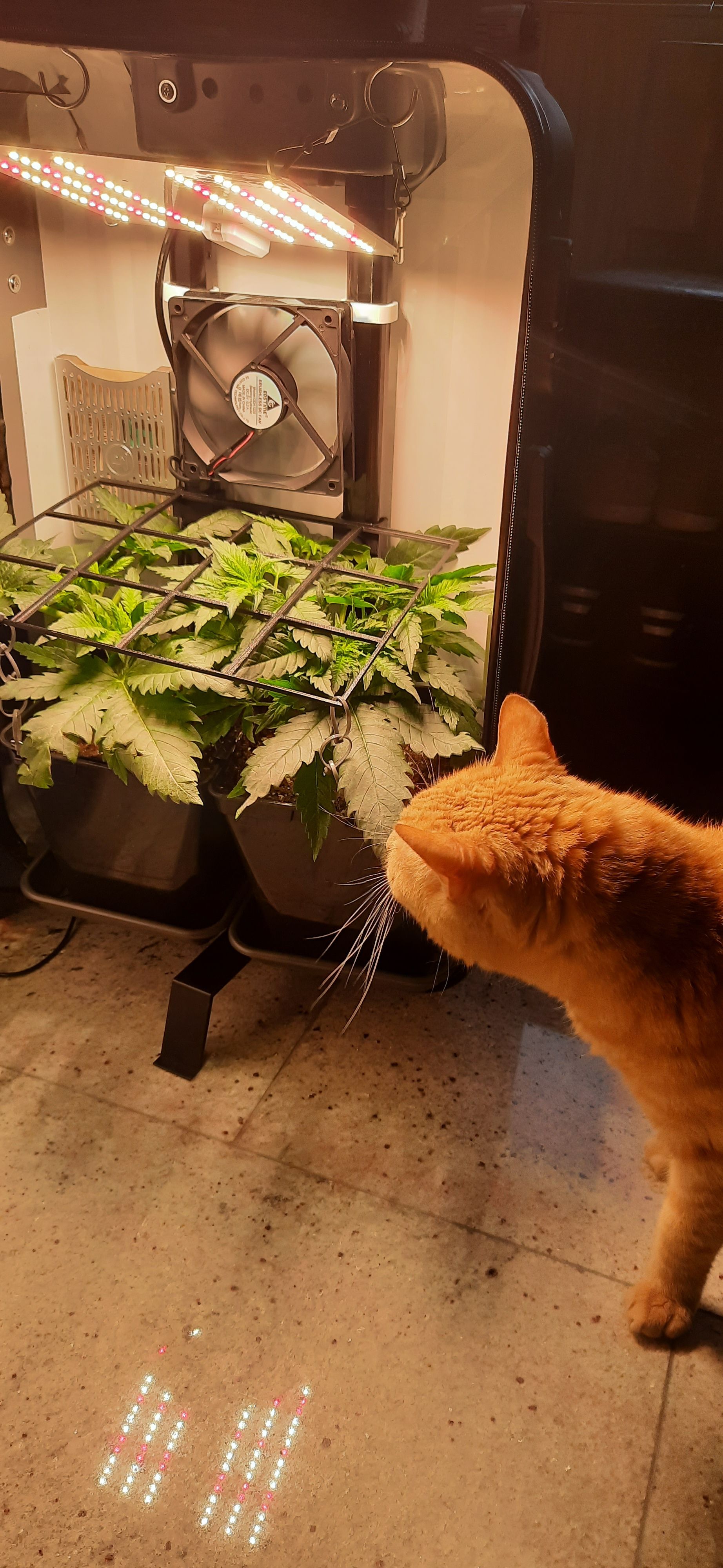 Blüte muss ggfs. diese Woche schon, spätestens nächste Woche, eingeleitet werden um durch Stretch der LED nicht zu nahe zu kommen.