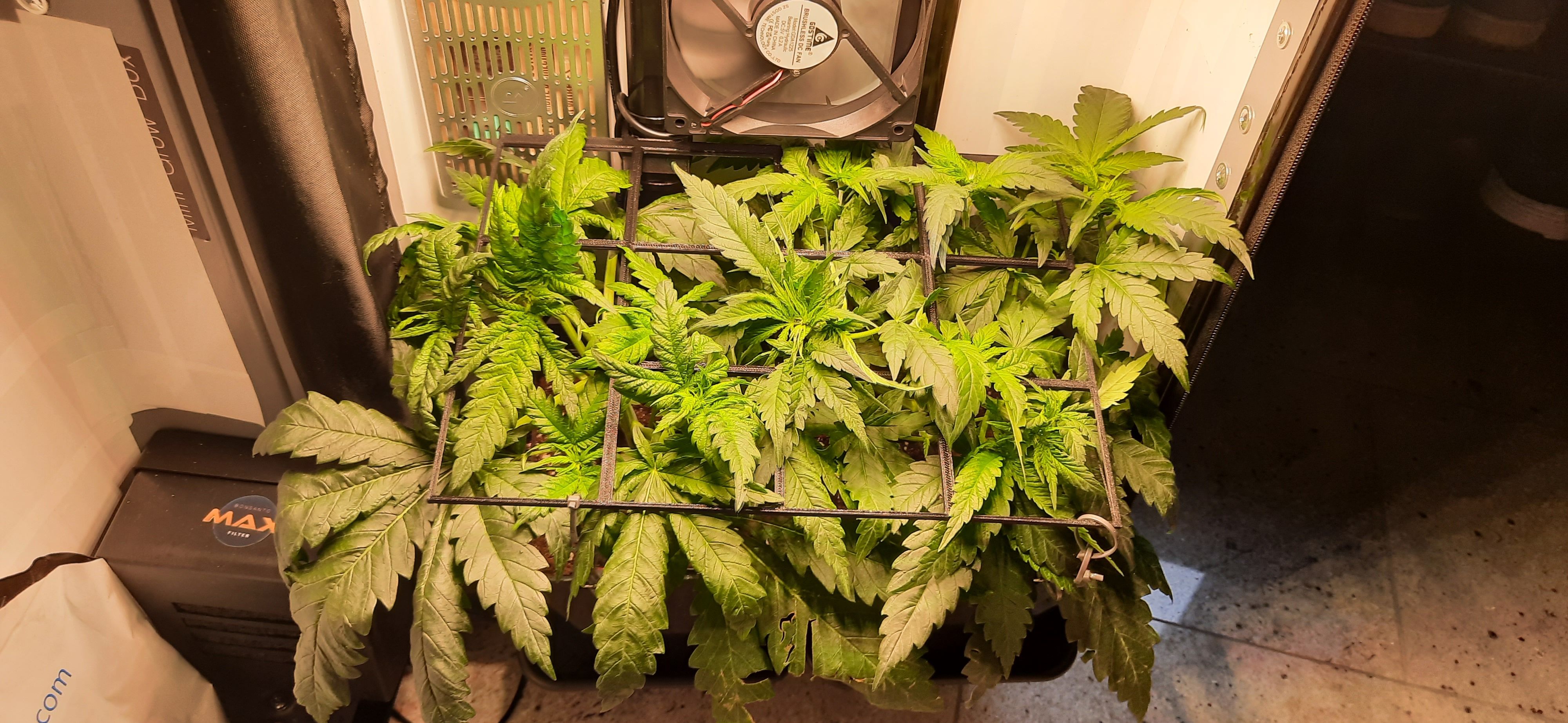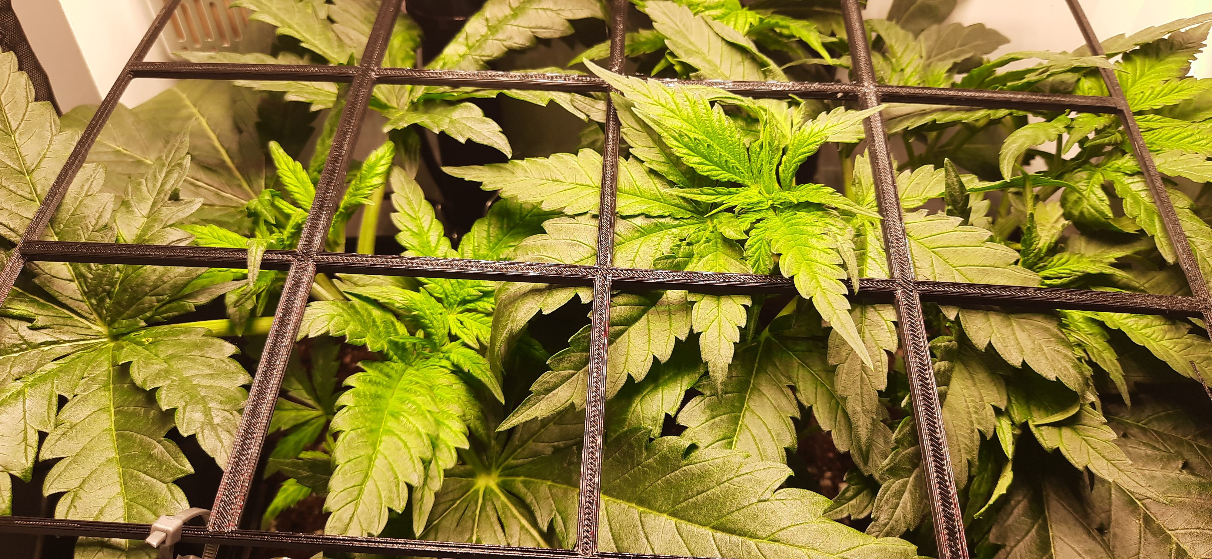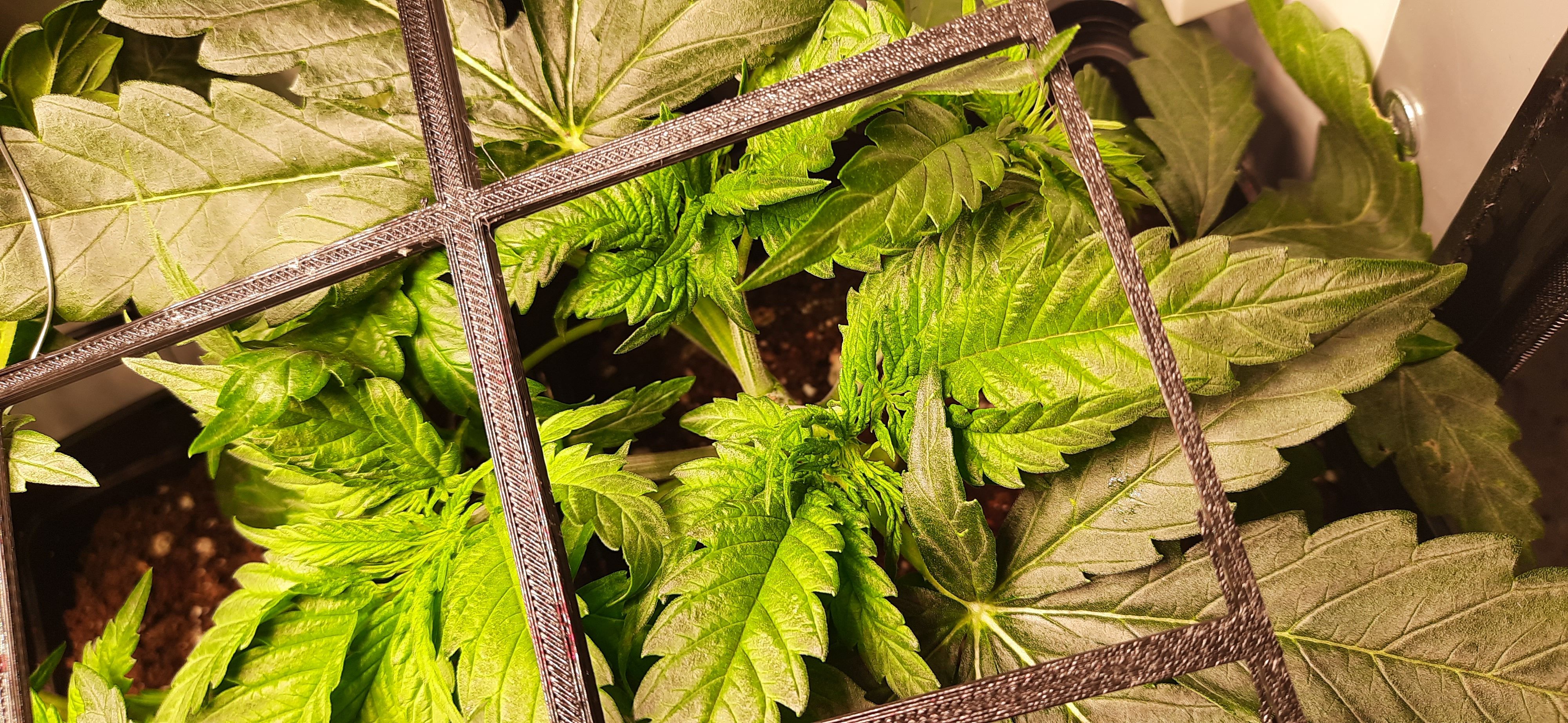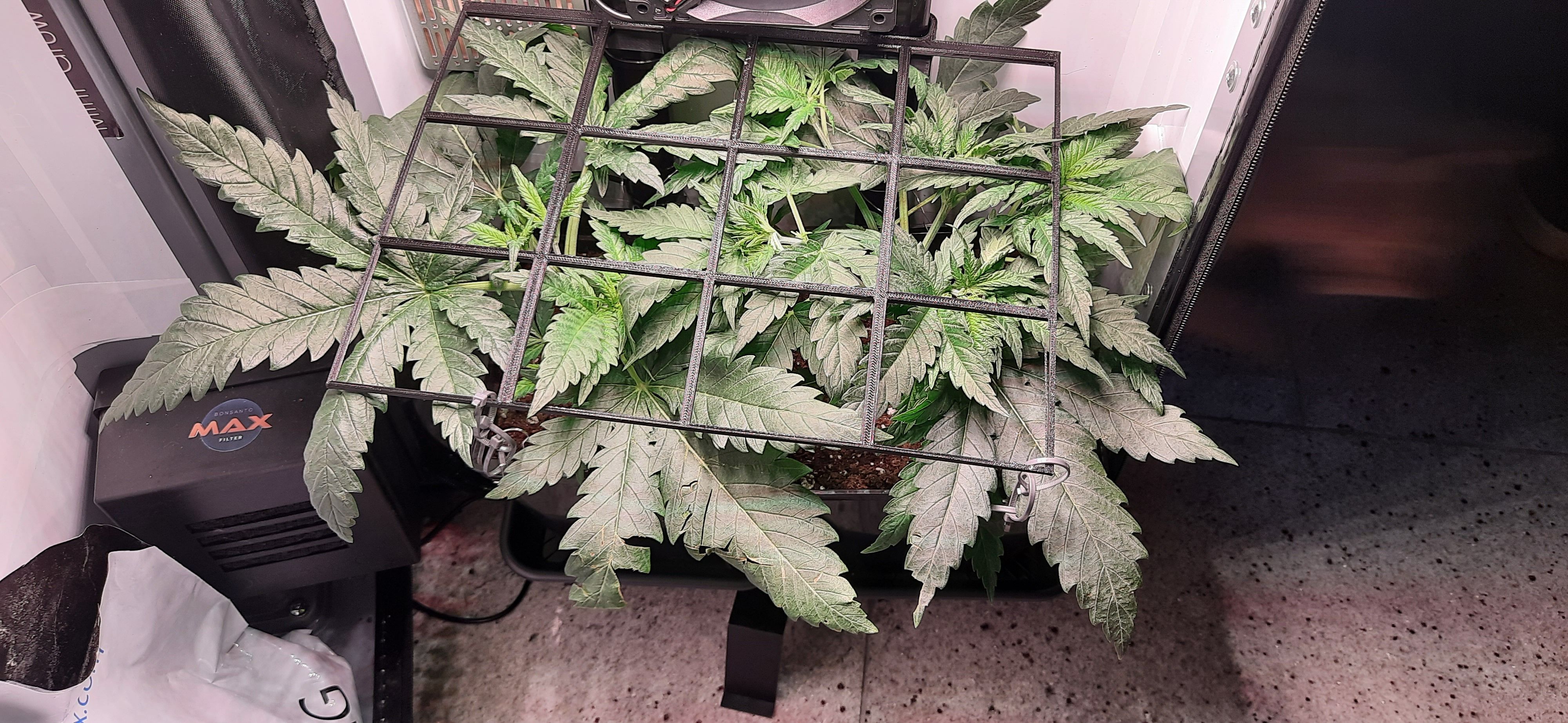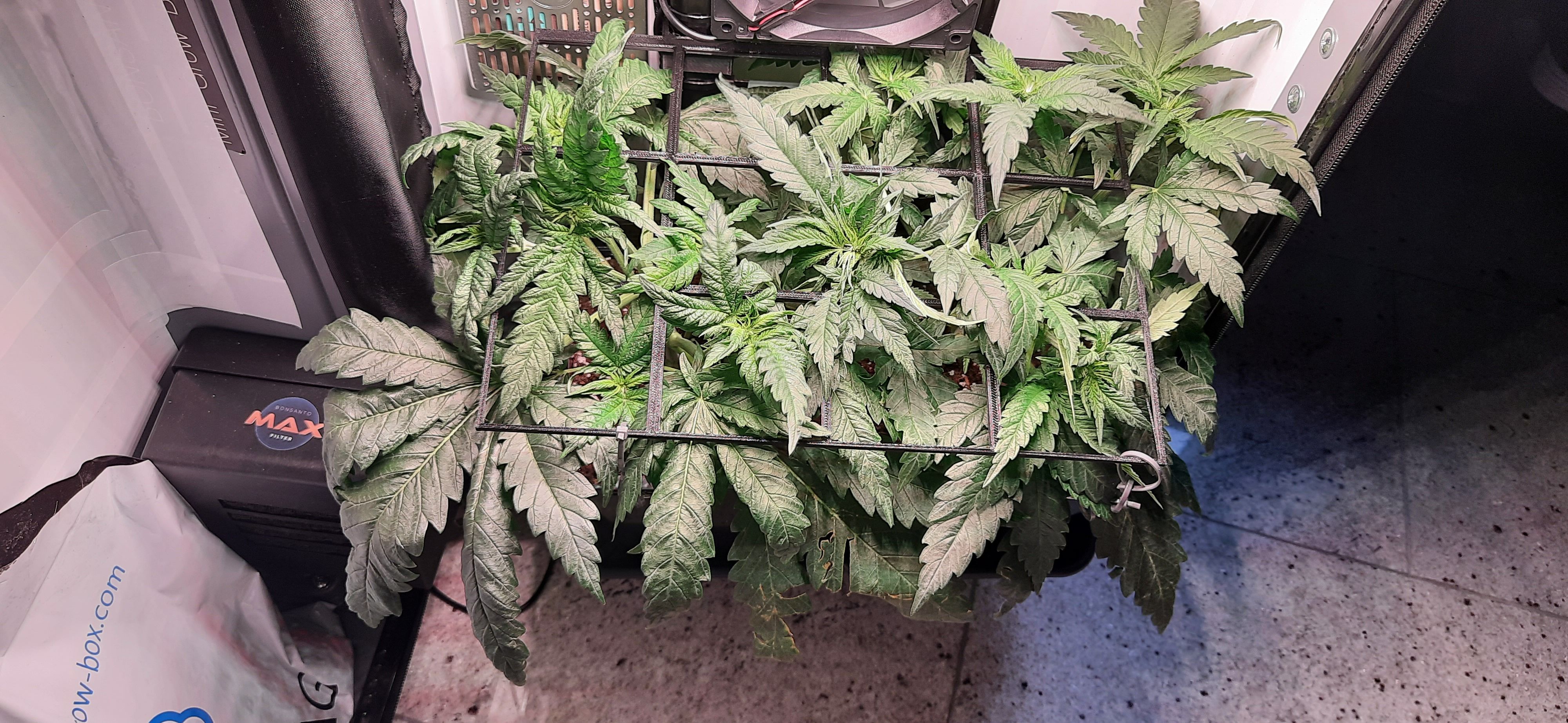 SCROG-Gitter wird nun schon leicht nach oben gedrĂĽckt.
