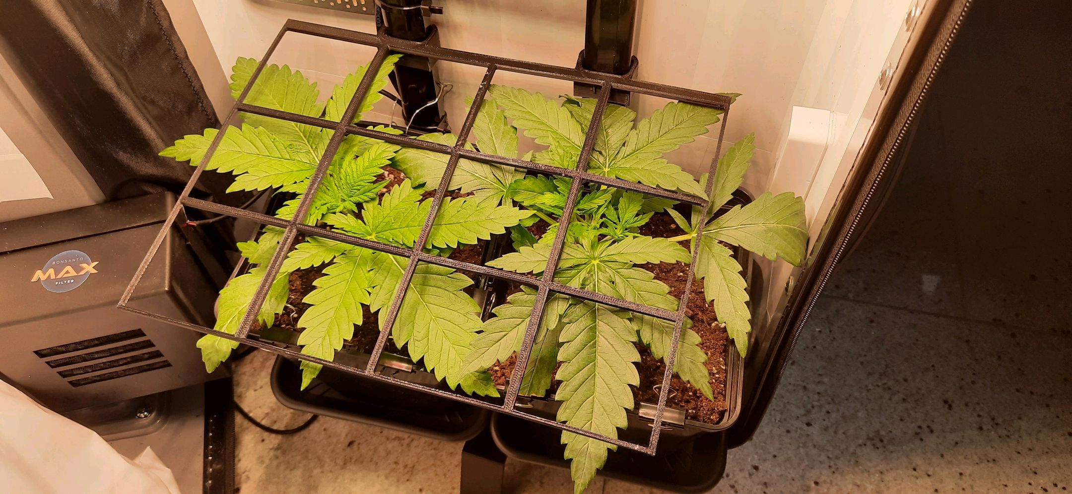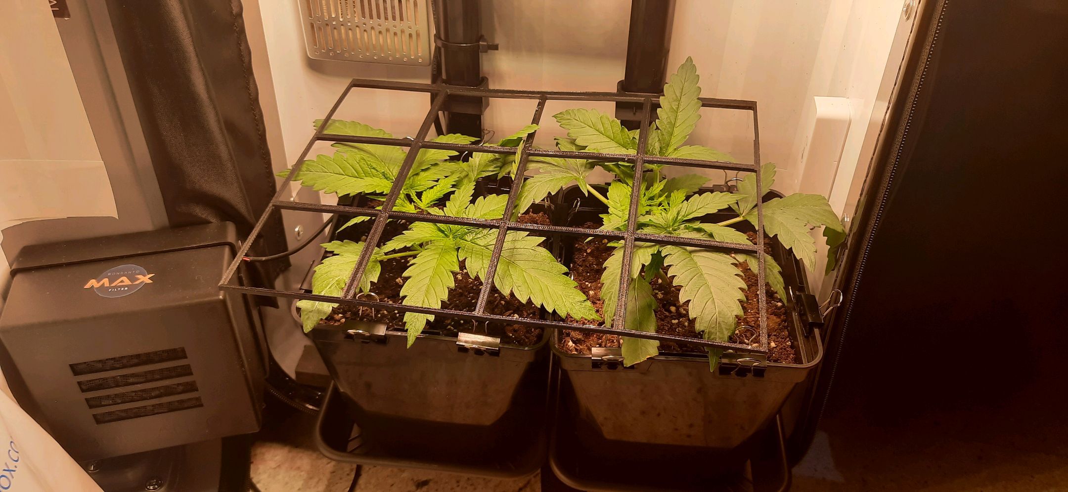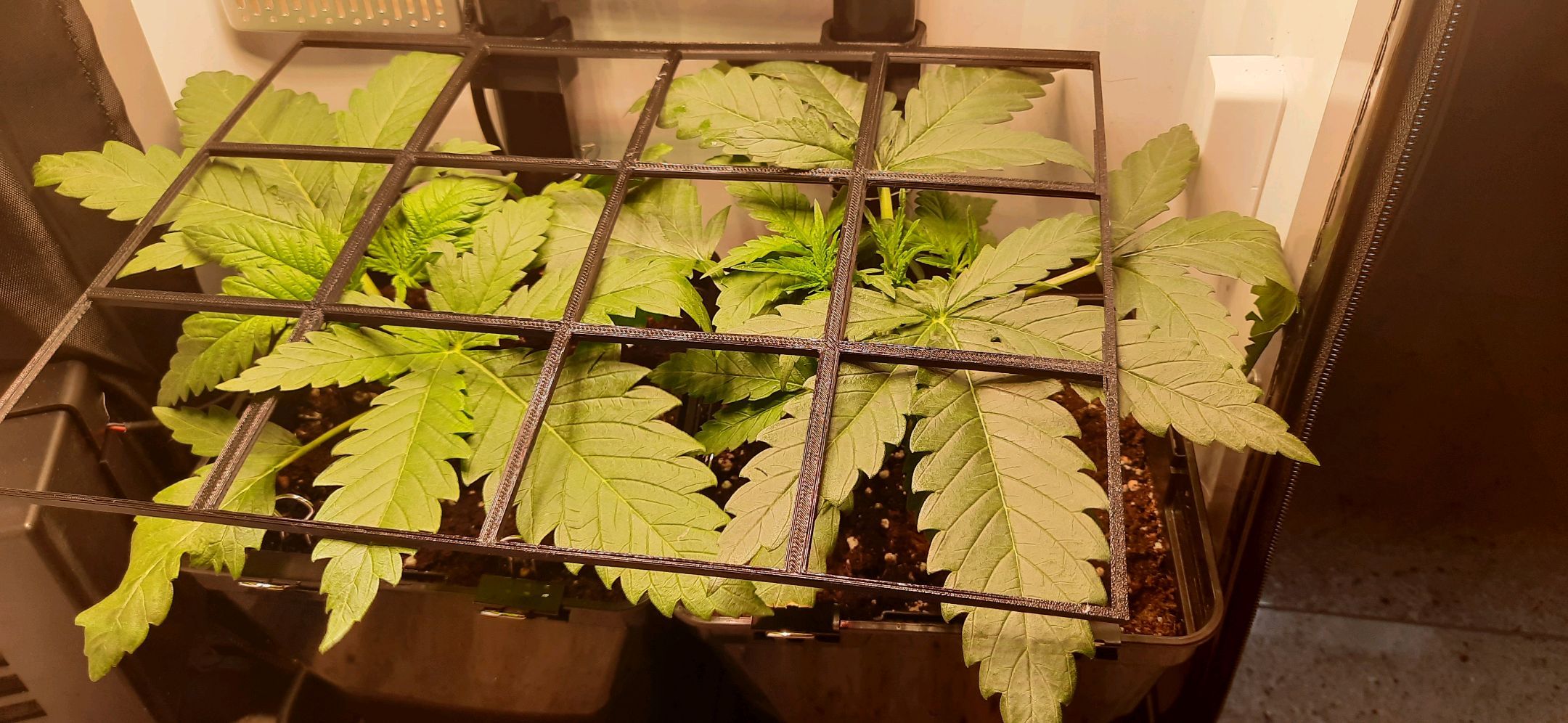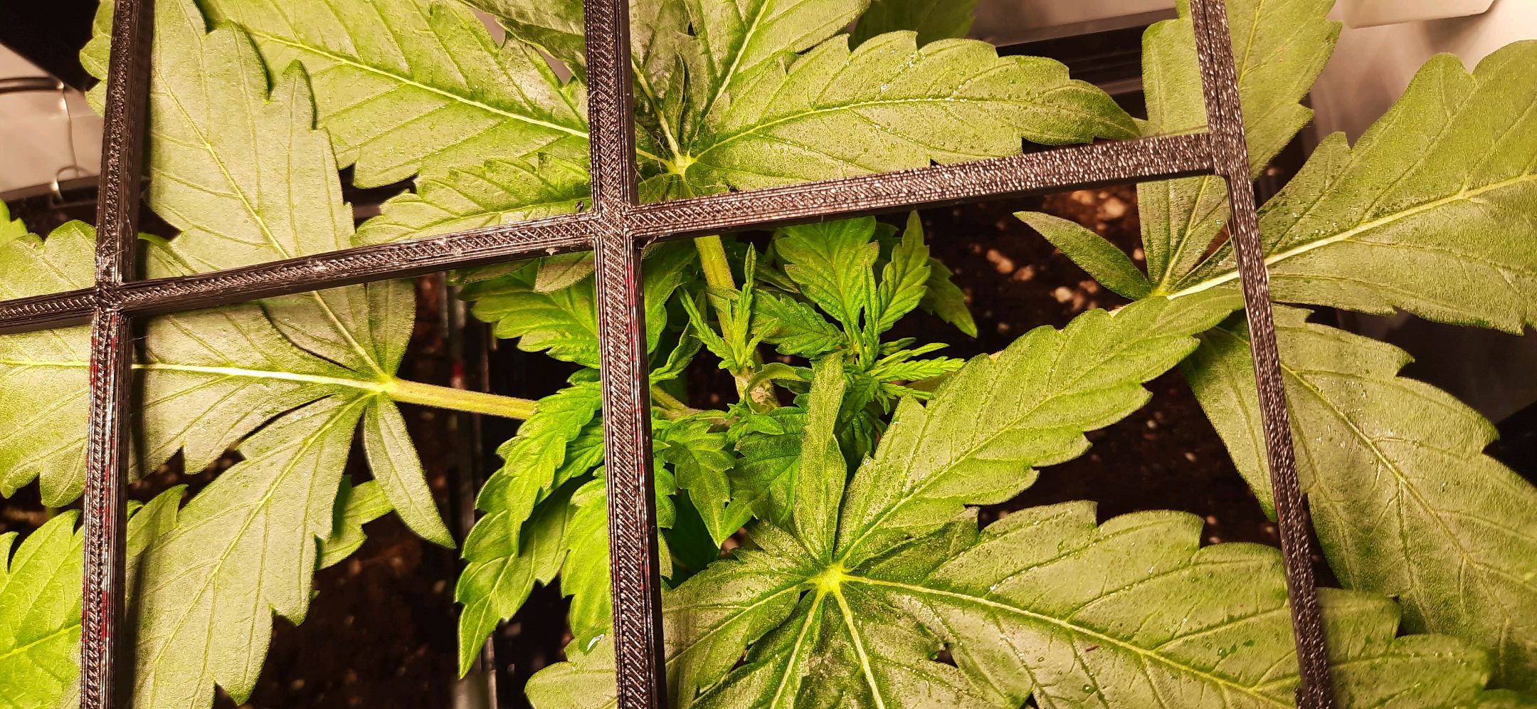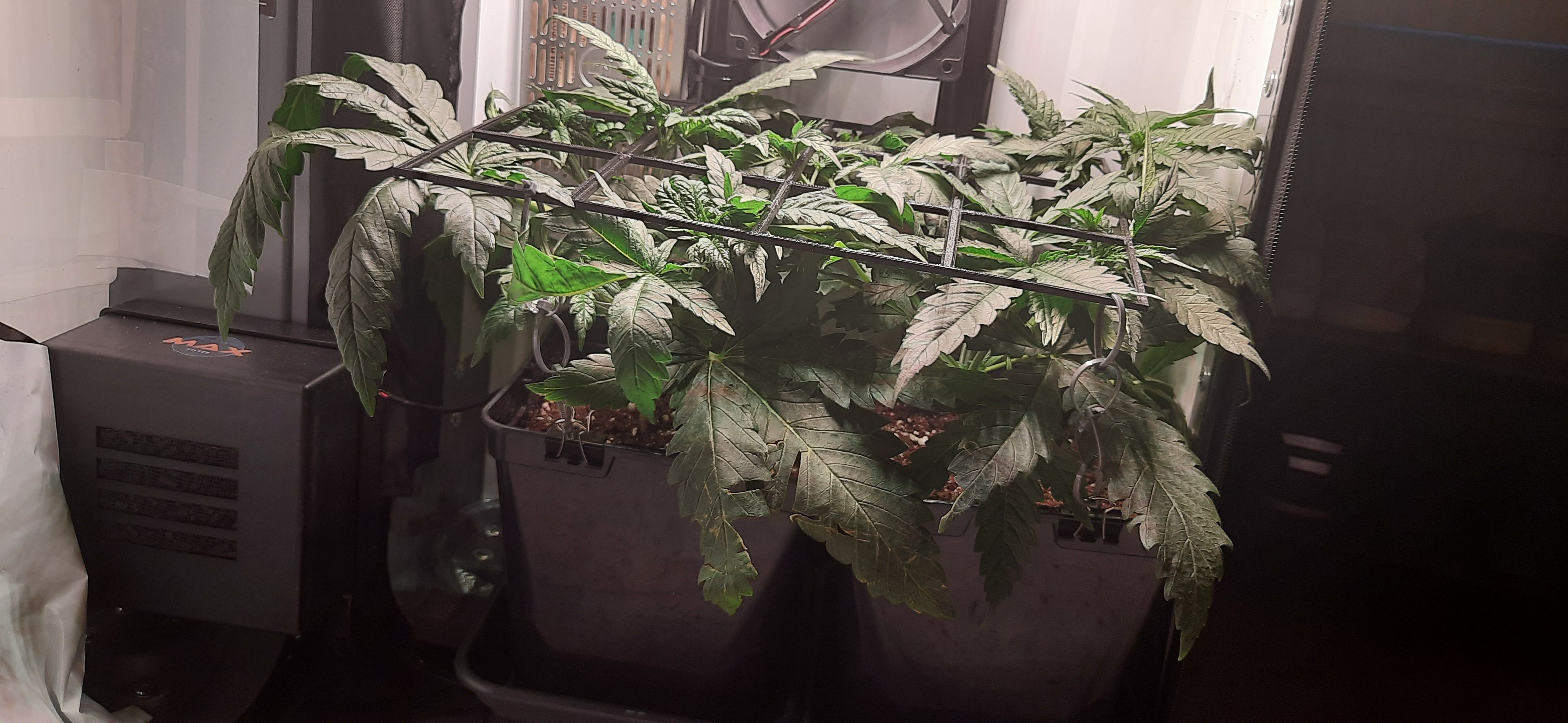 SCROG-Gitter wird nun schon leicht nach oben gedrĂĽckt.
