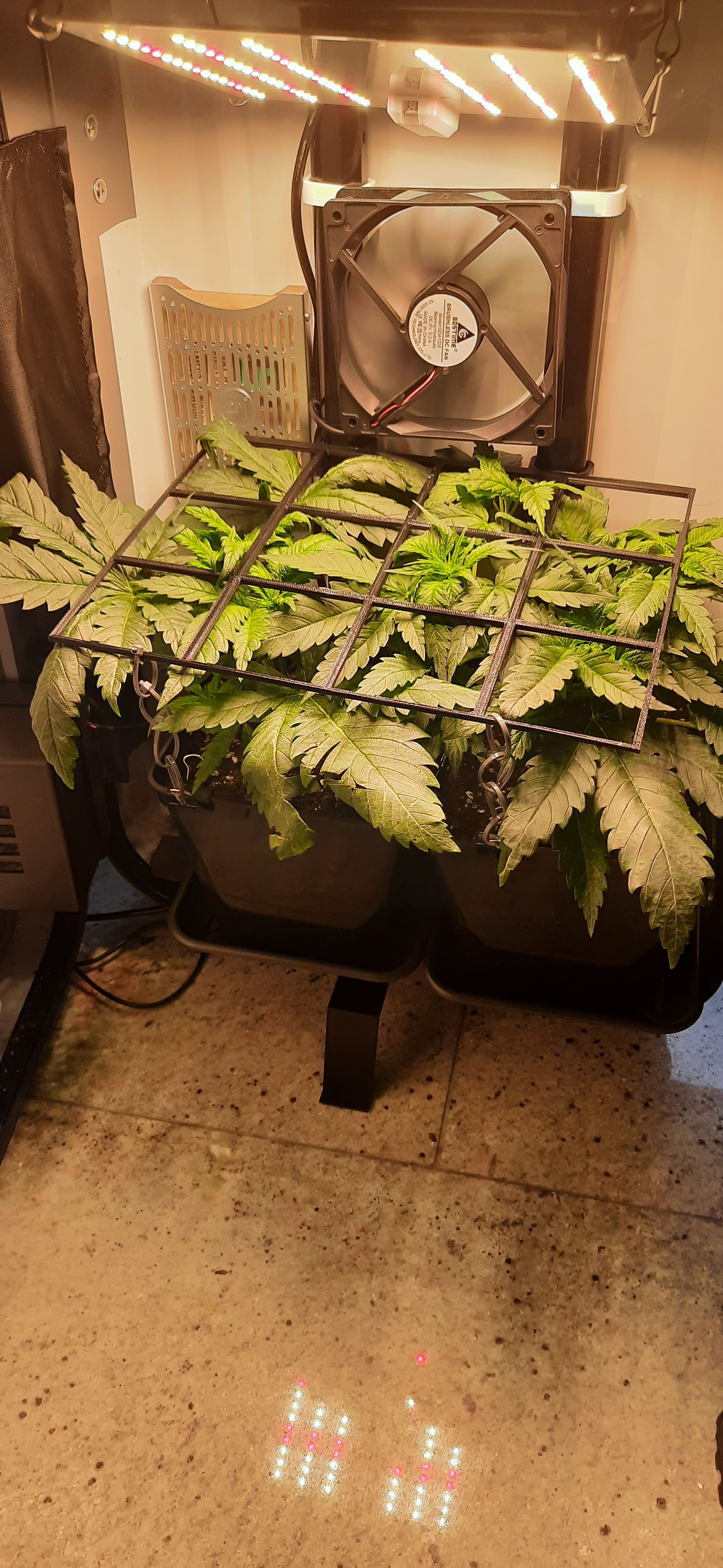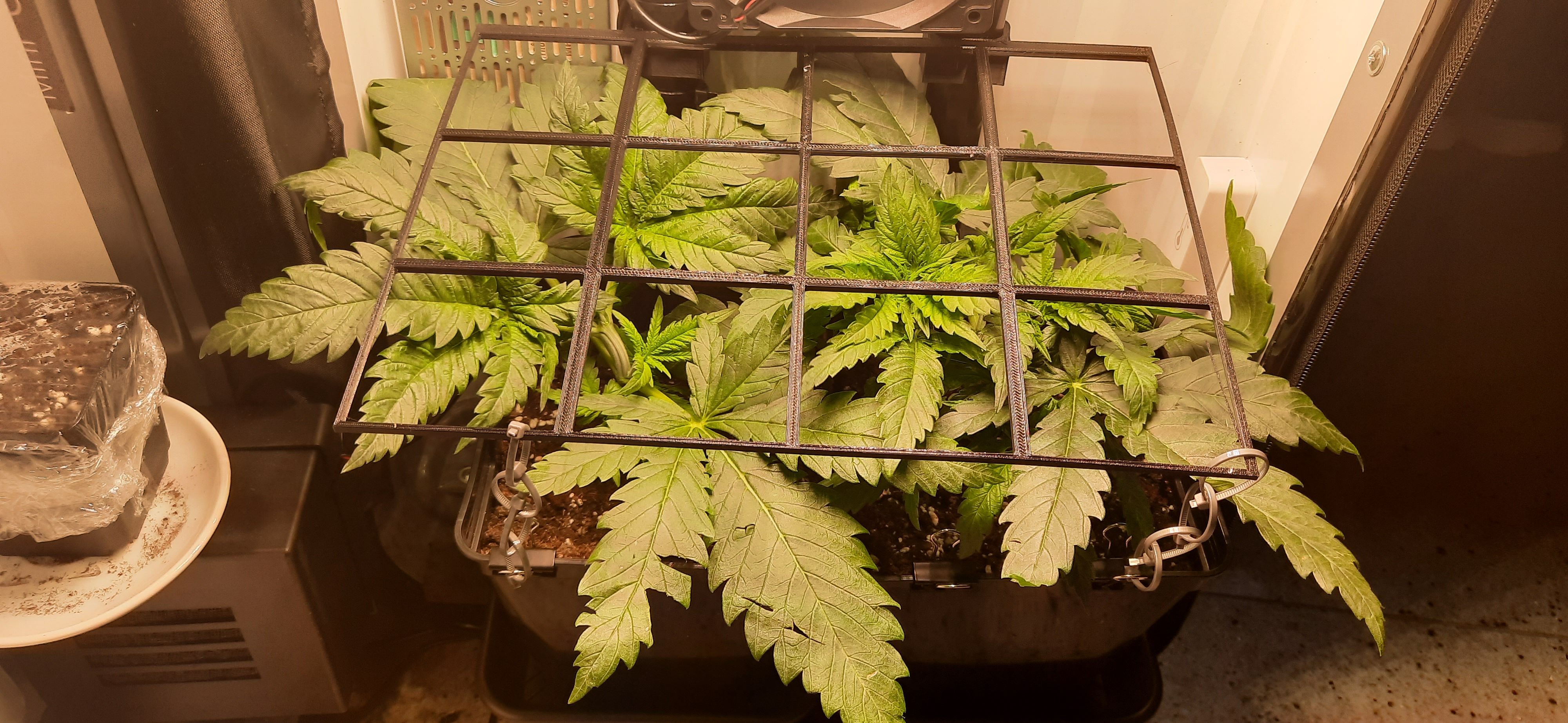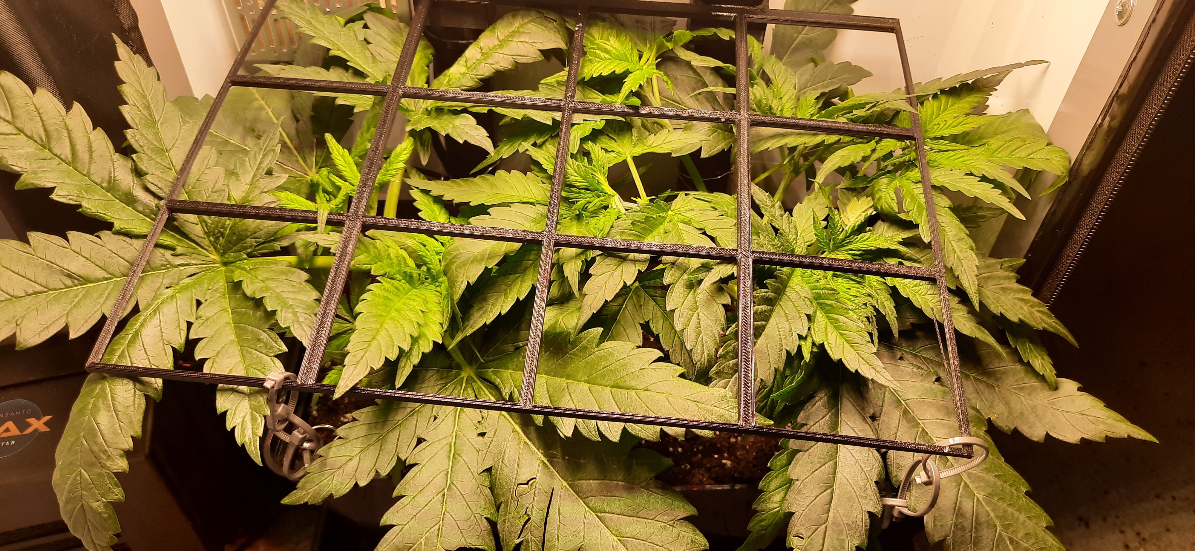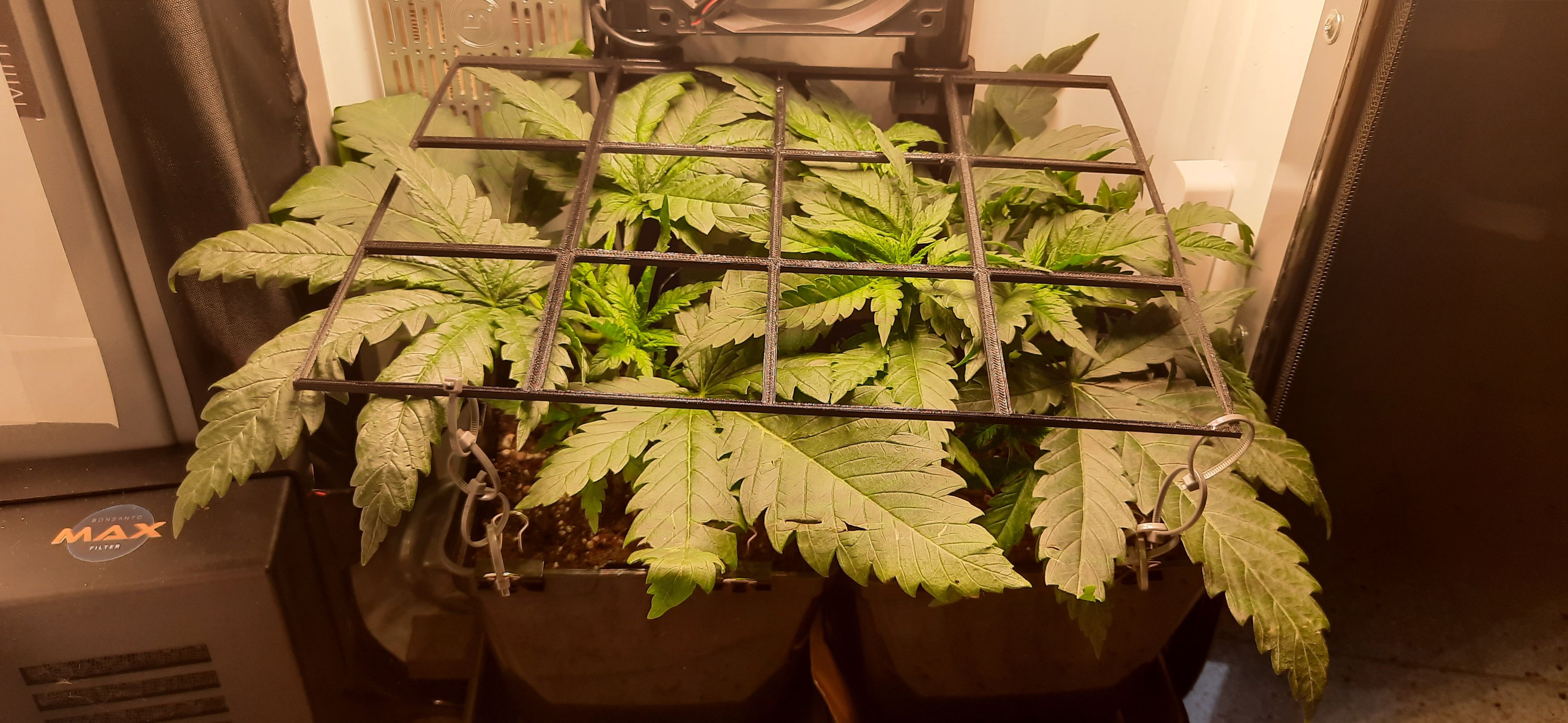 SCROG-Gitter etwas nach oben versetzt und neu gesichert.