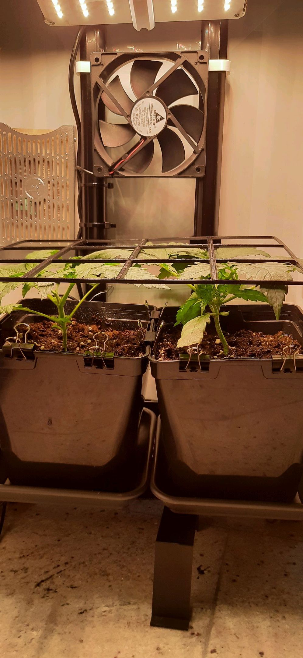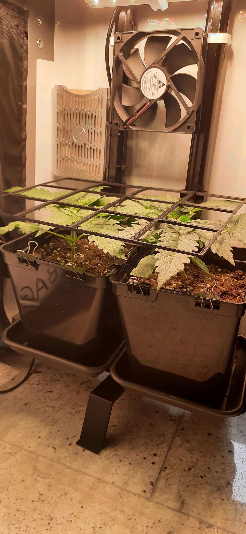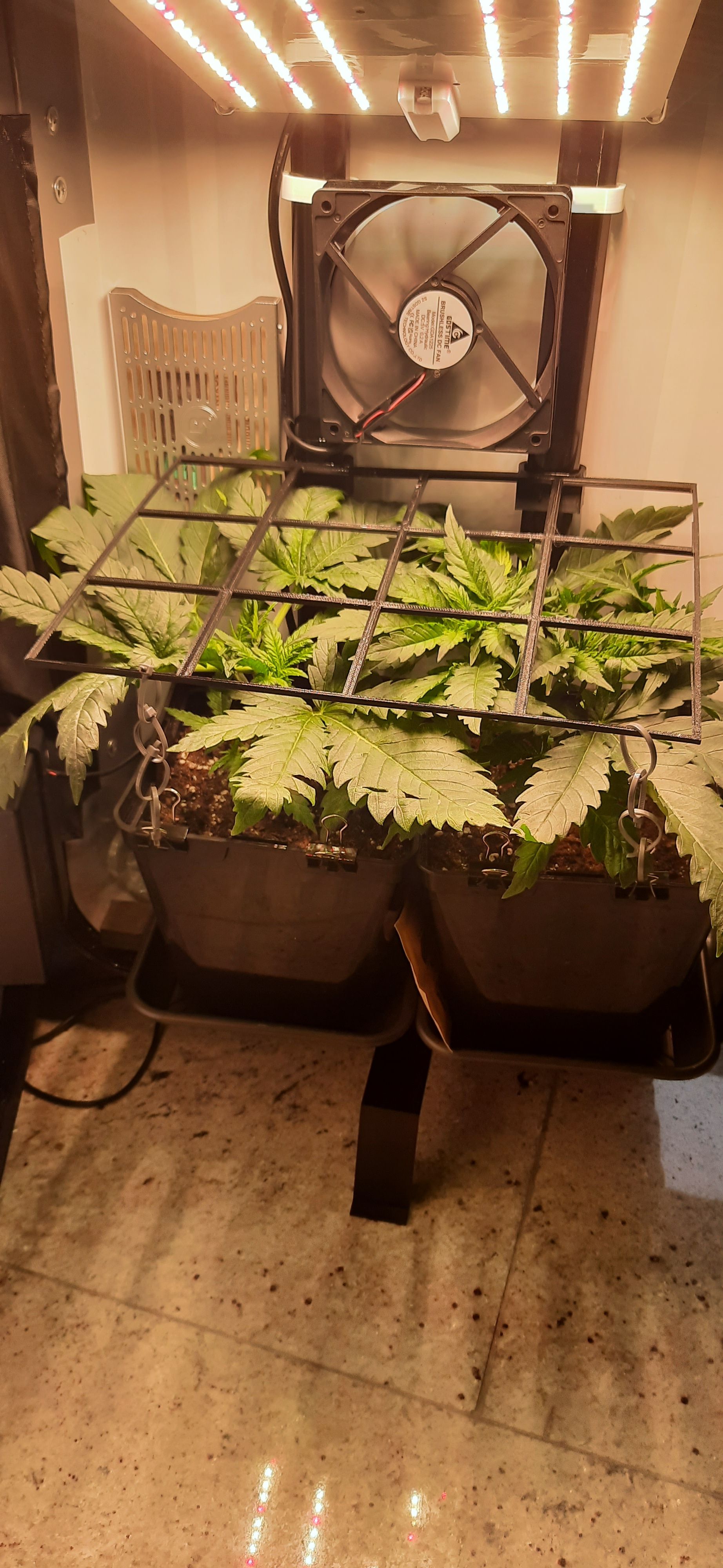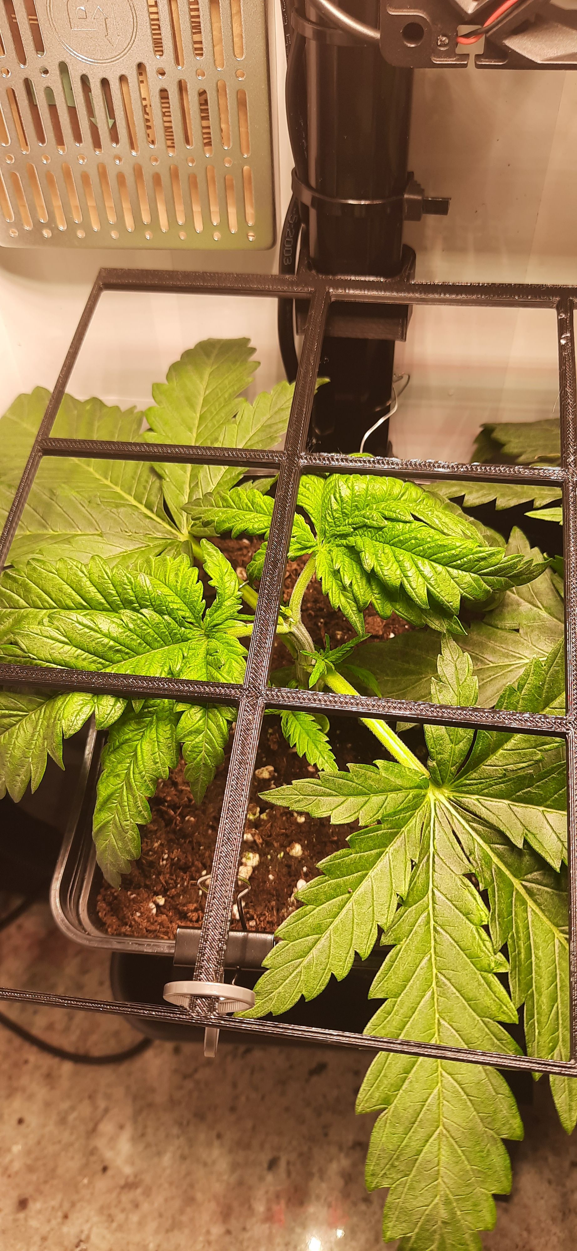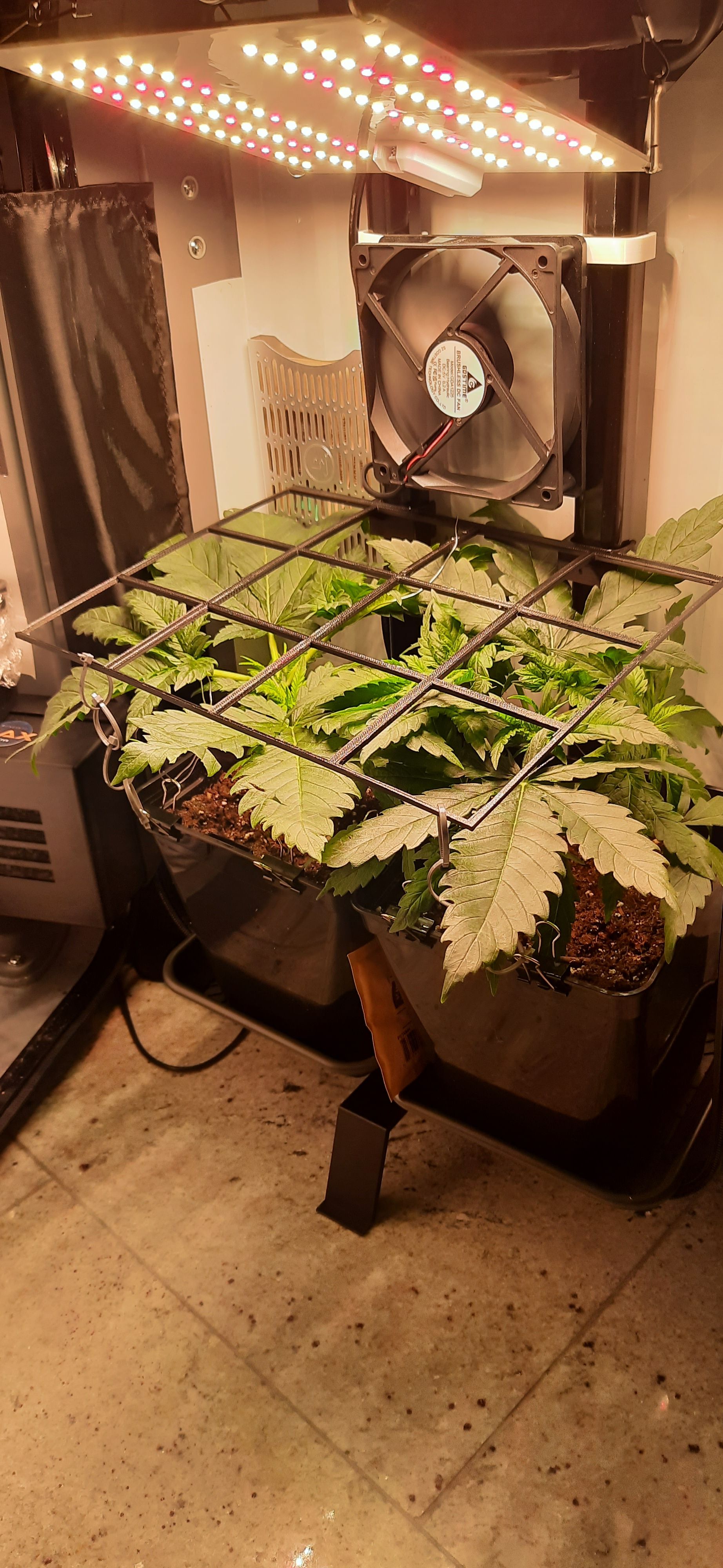 SCROG-Gitter etwas nach oben versetzt und neu gesichert.